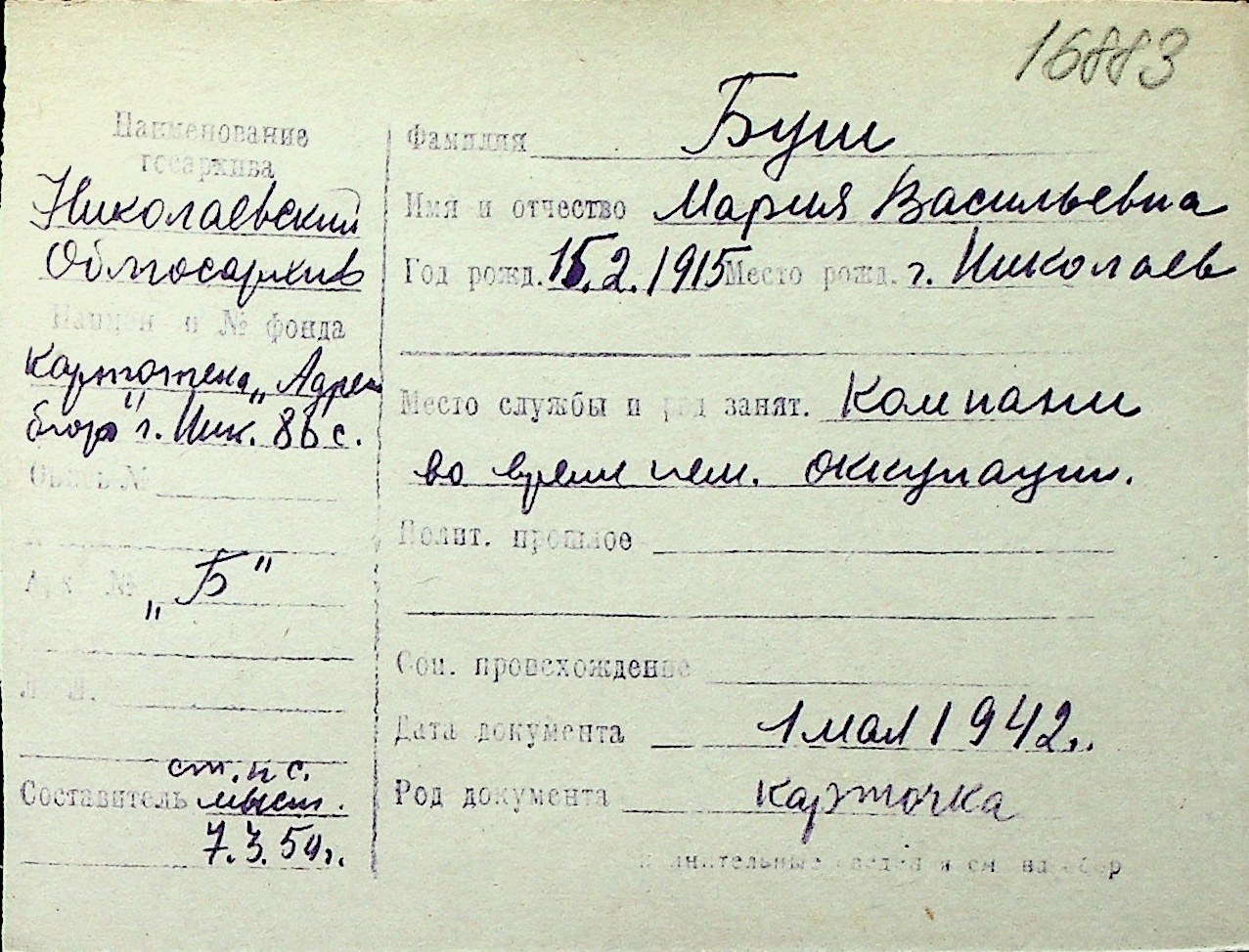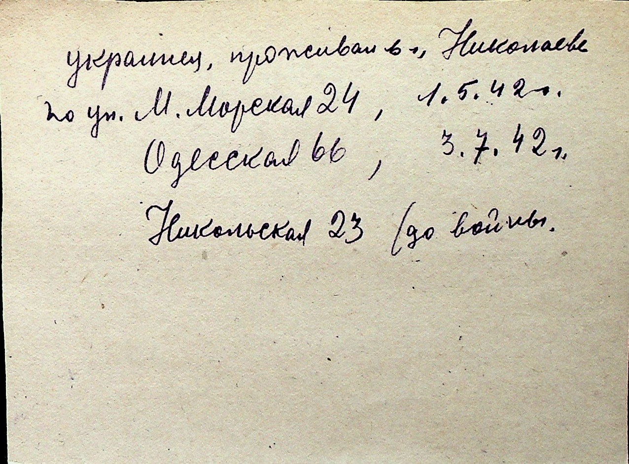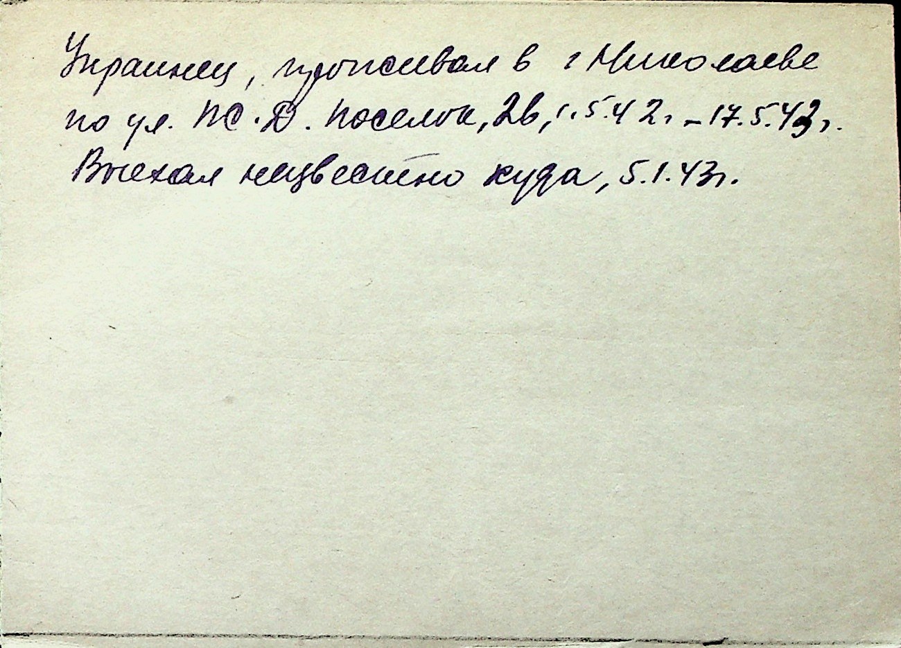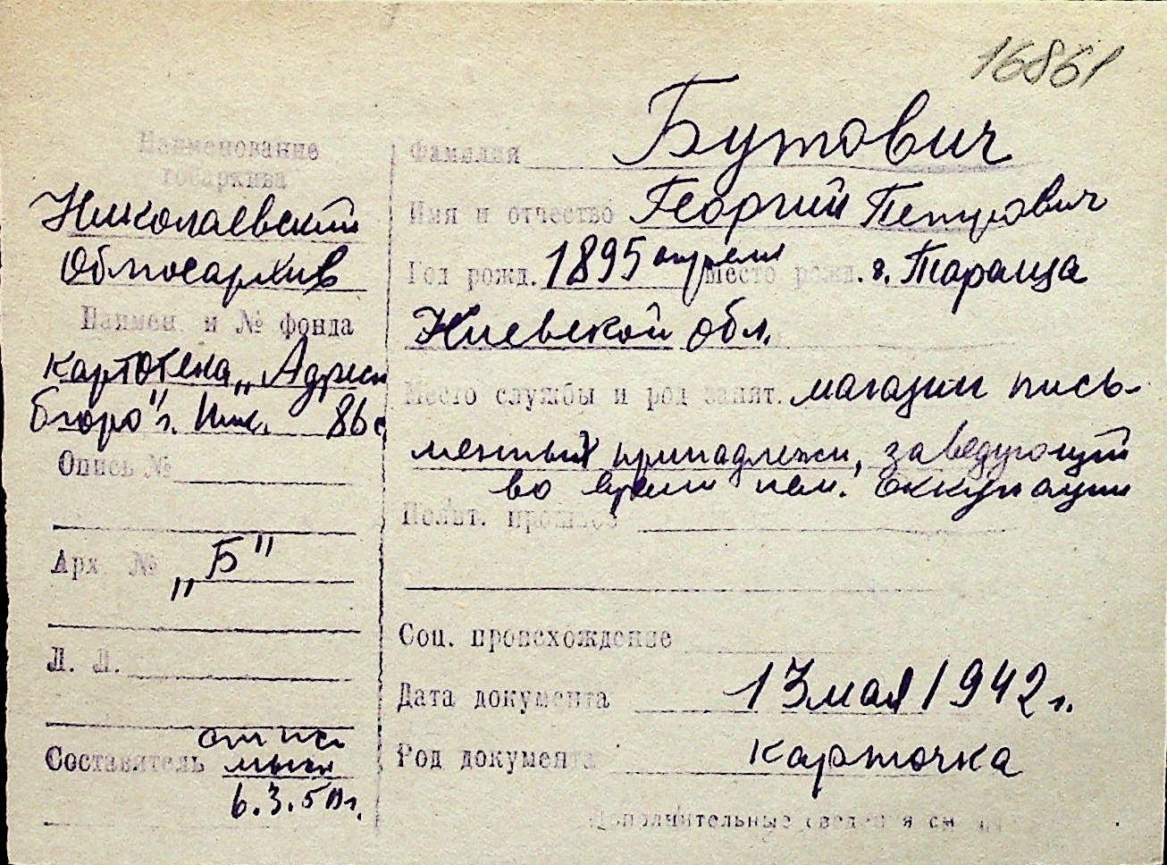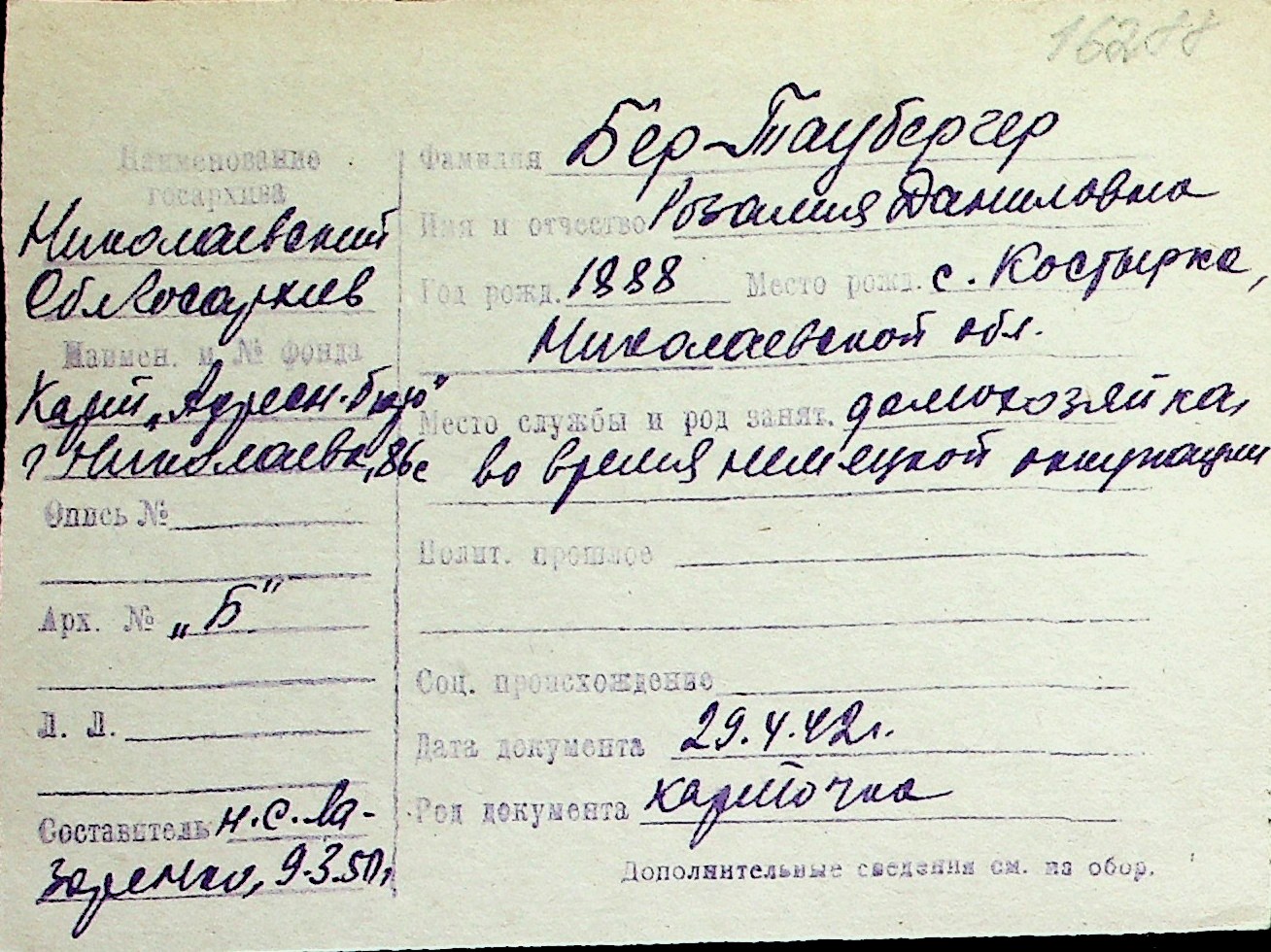 ◦ ◦ Перелік карток на осіб, які мешкали у м. Миколаїв у період окупації 1941–1944 років