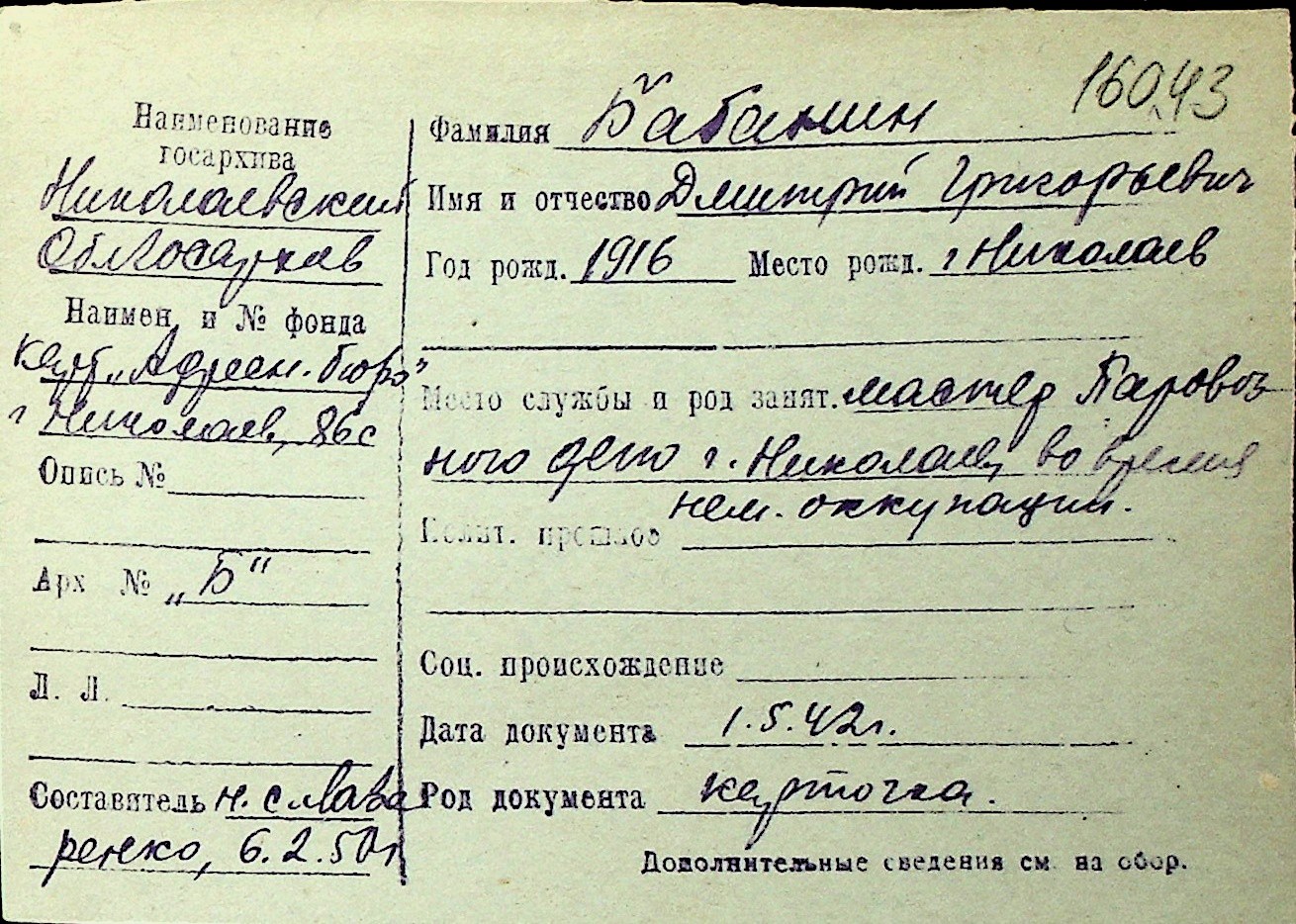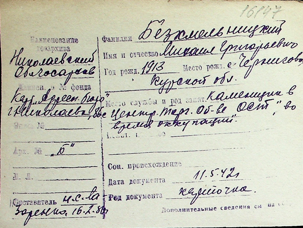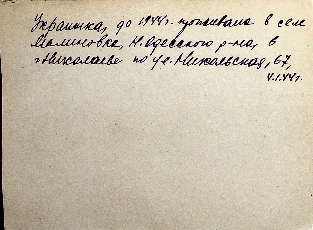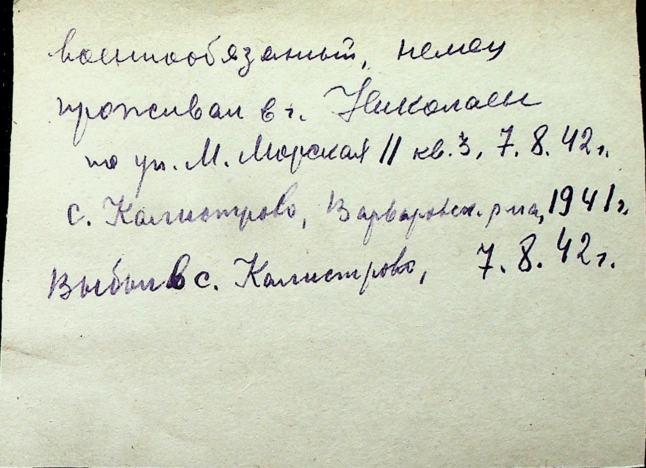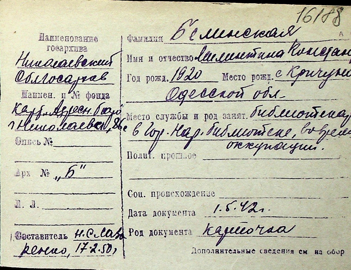 ◦ ◦ Перелік карток на осіб, які мешкали у м. Миколаїв у період окупації 1941–1944 років