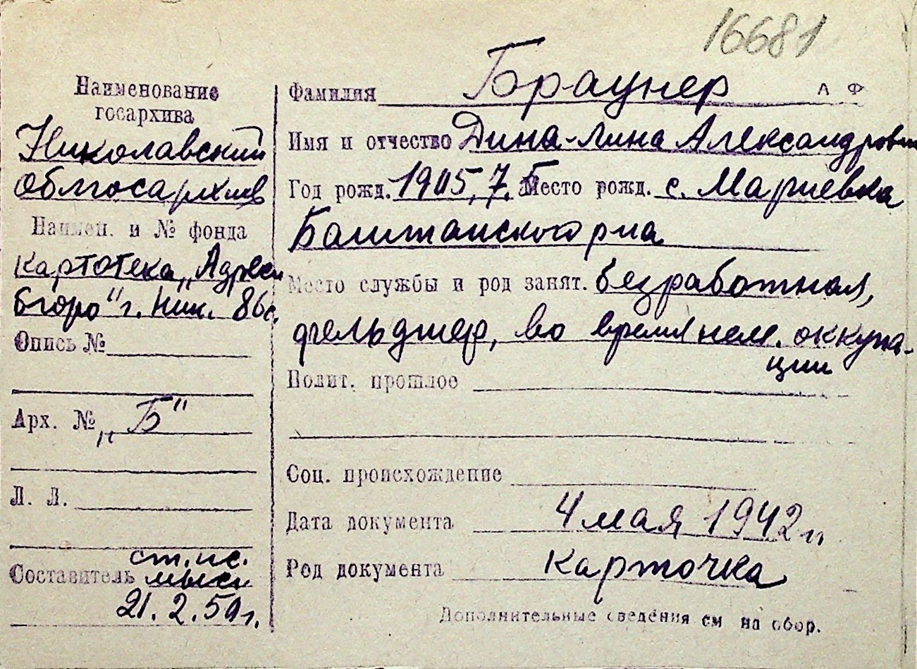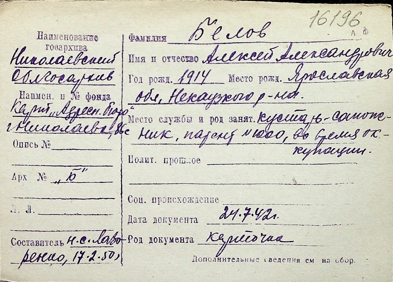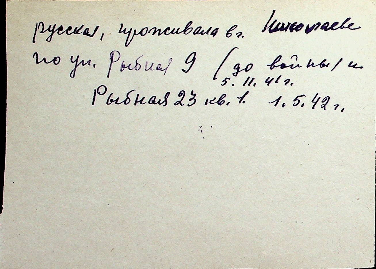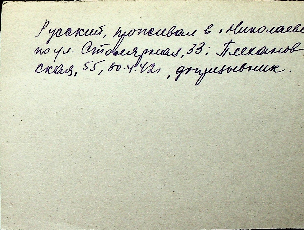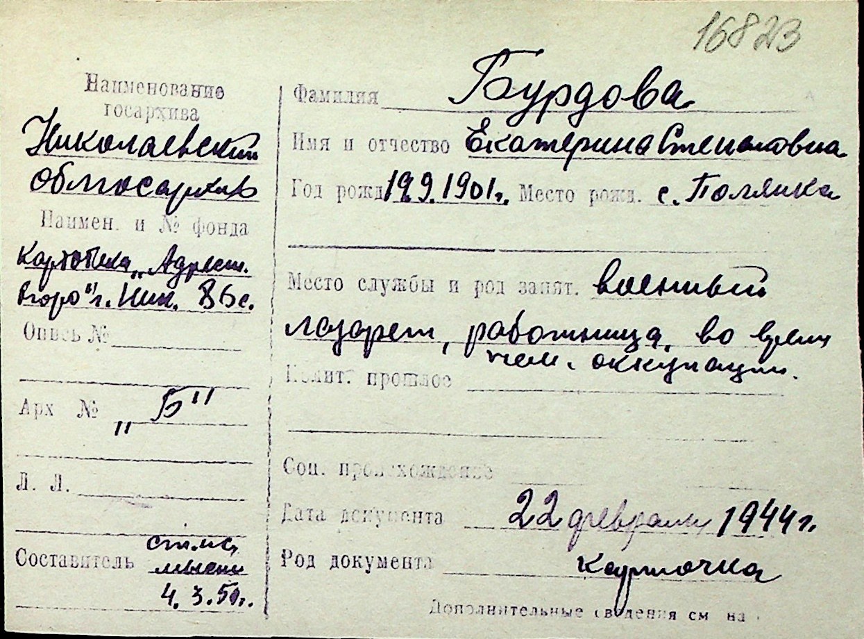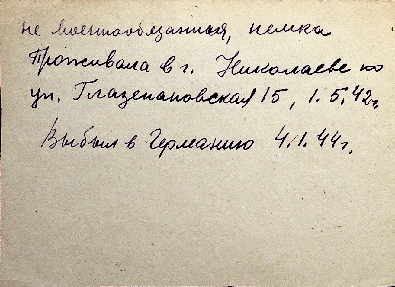 ◦ ◦ Перелік карток на осіб, які мешкали у м. Миколаїв у період окупації 1941–1944 років