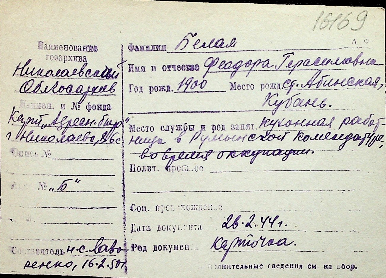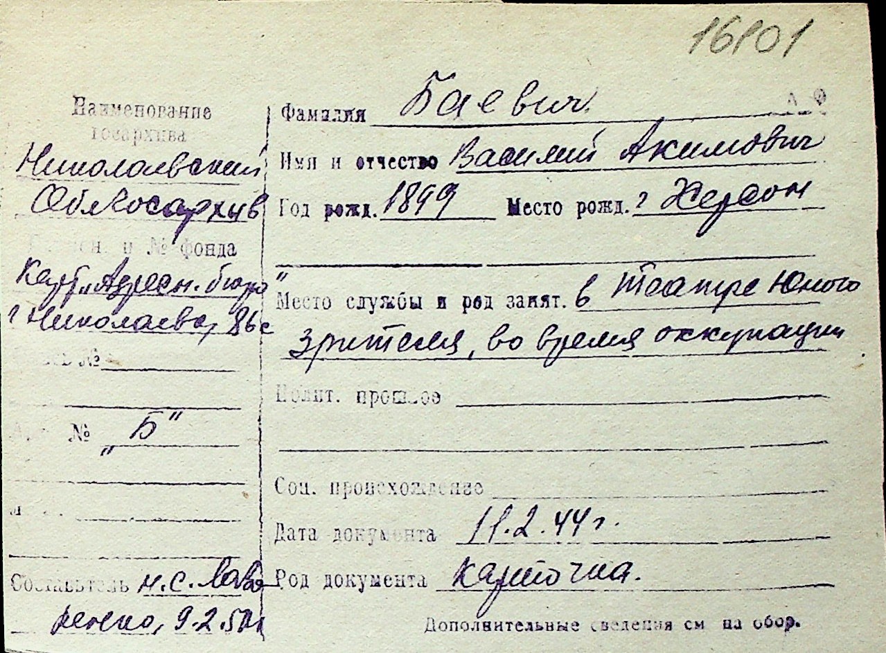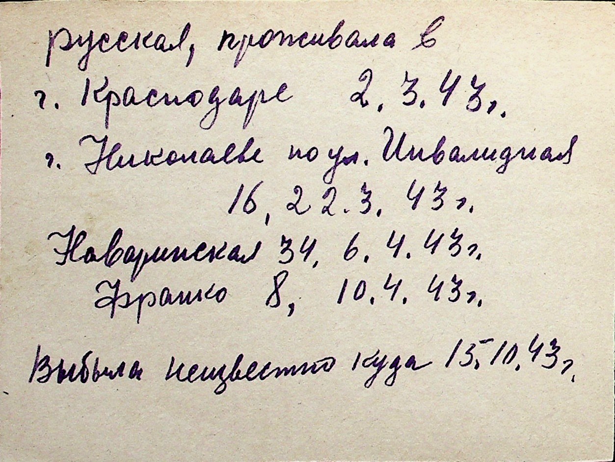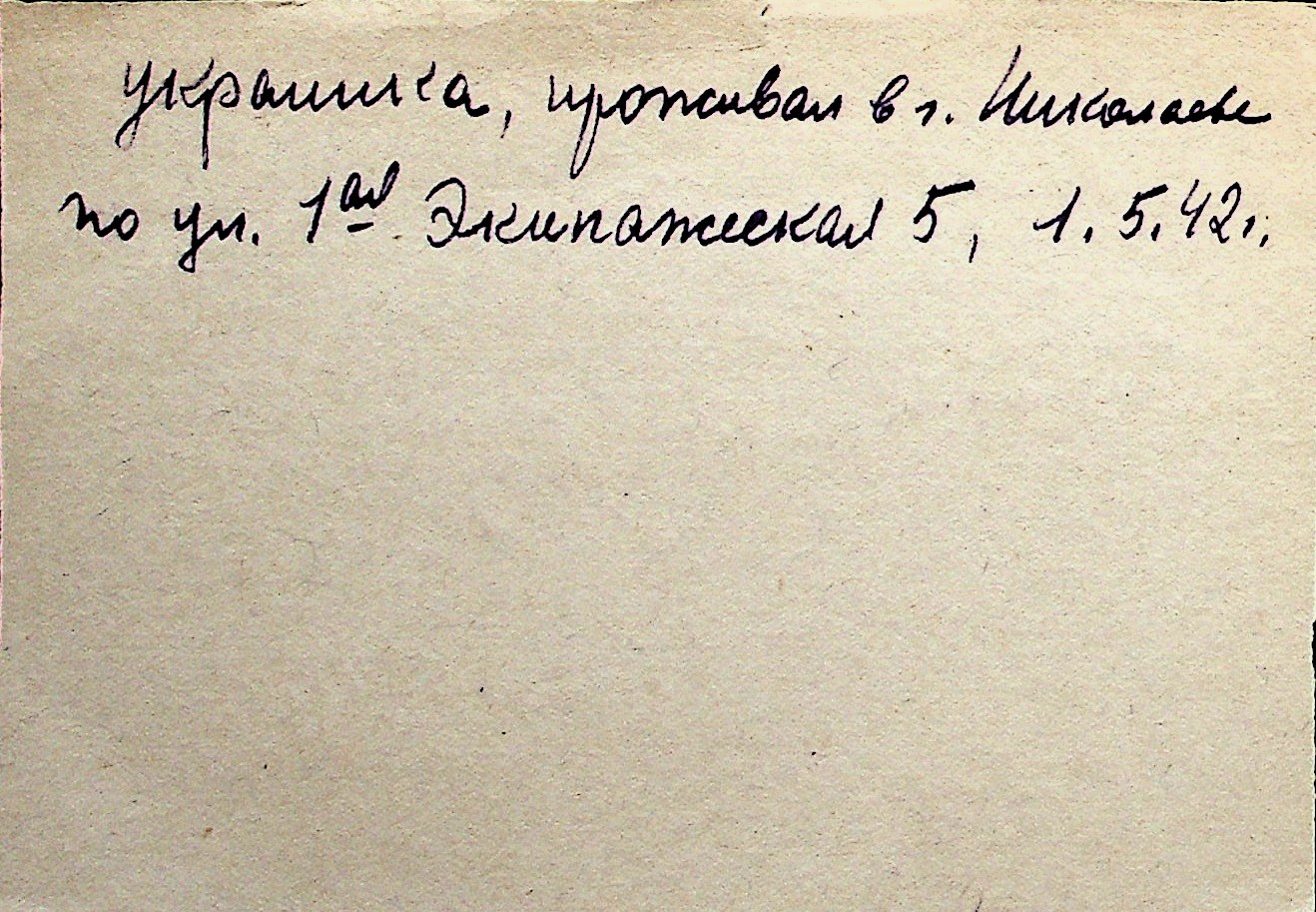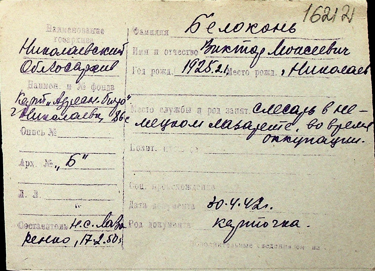 ◦ ◦ Перелік карток на осіб, які мешкали у м. Миколаїв у період окупації 1941–1944 років
