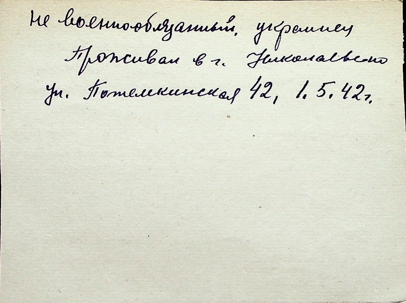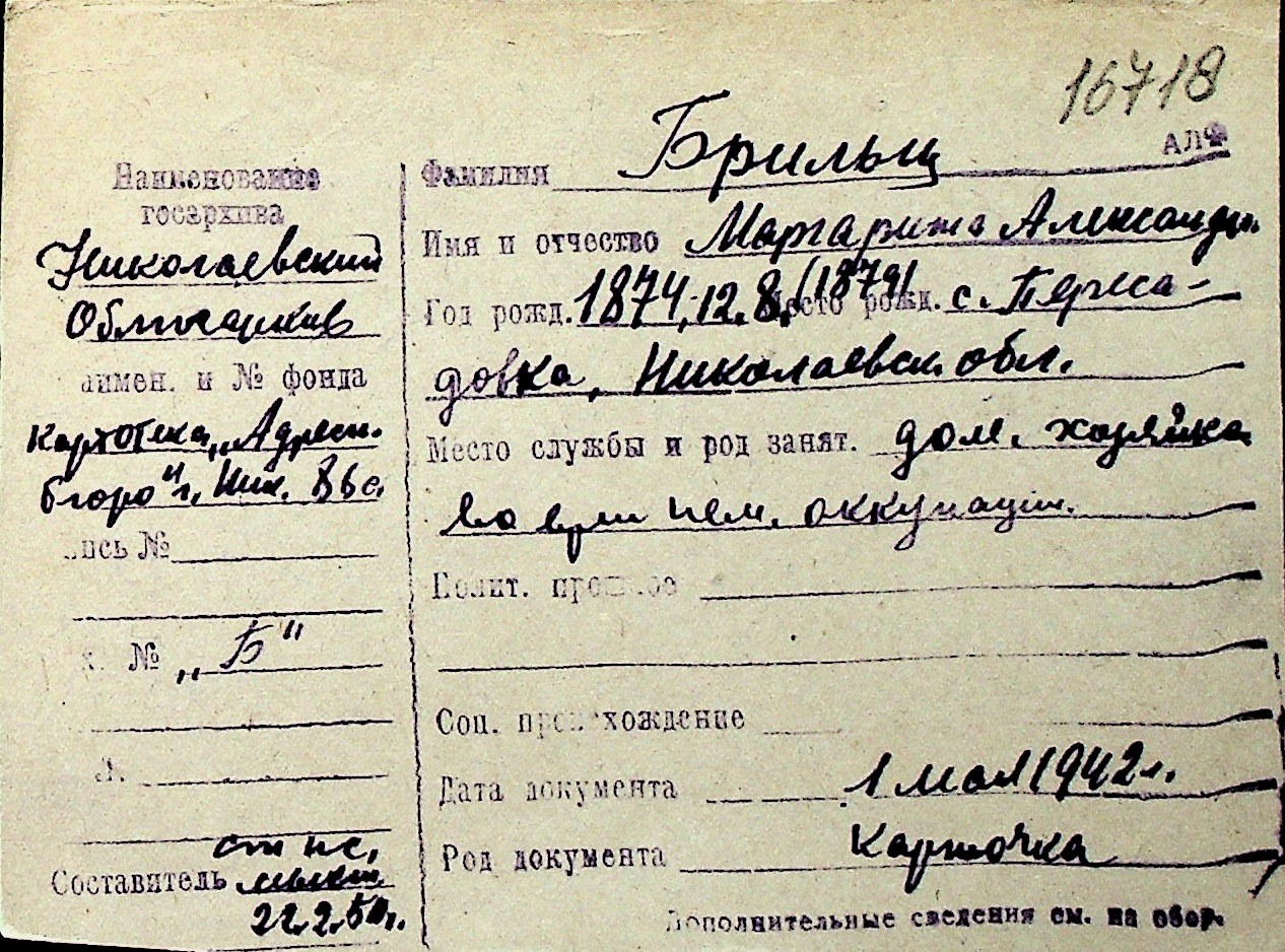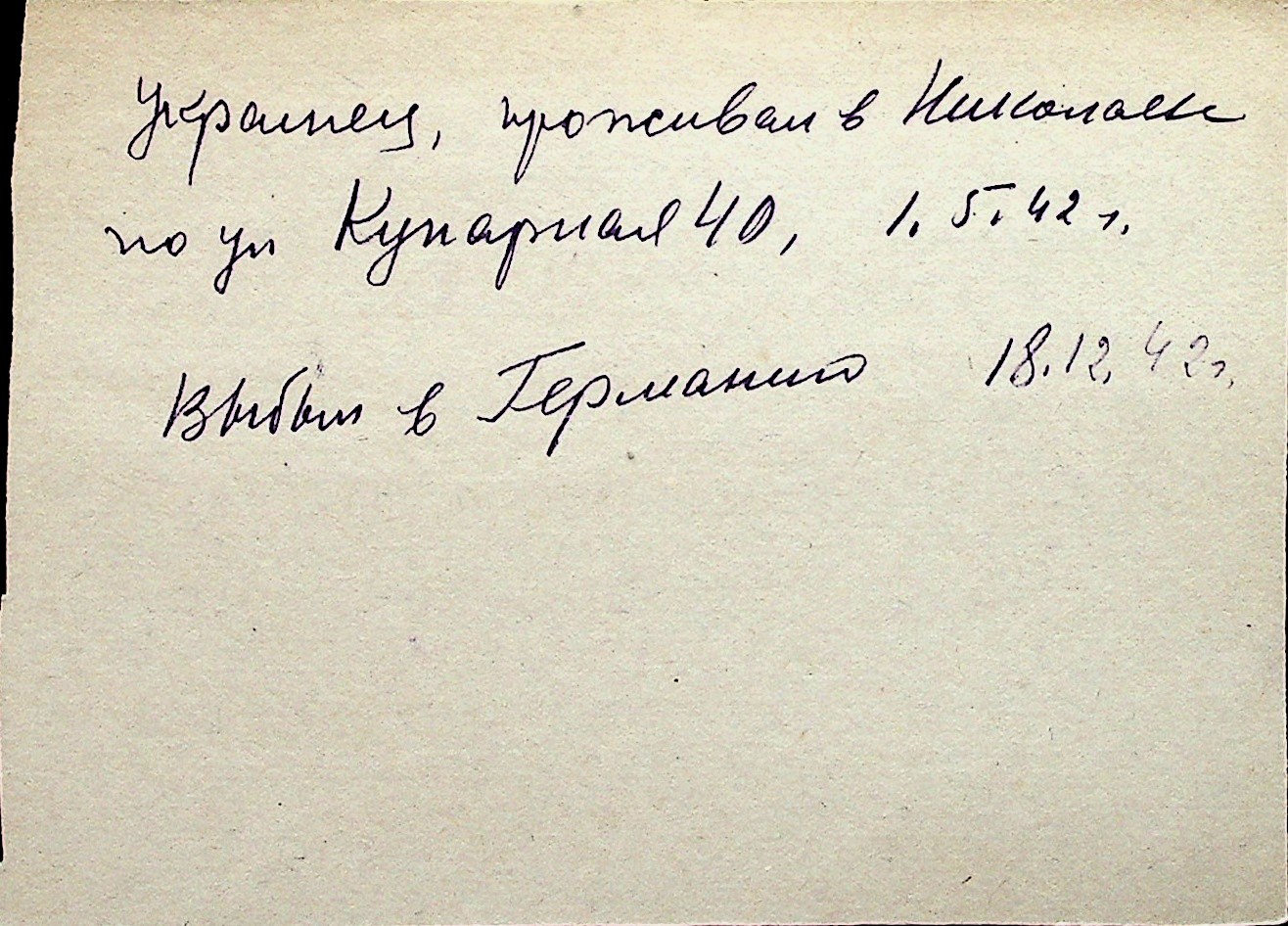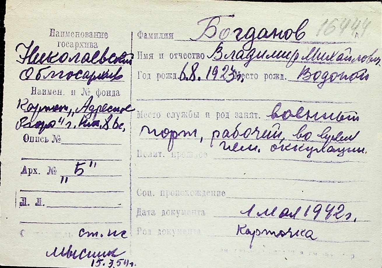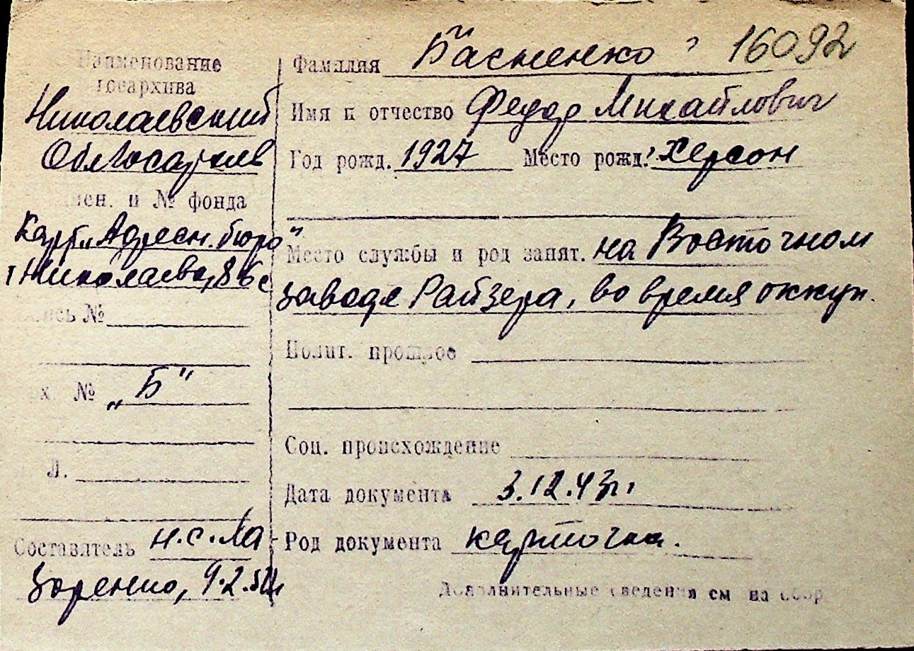 ◦ ◦ Перелік карток на осіб, які мешкали у м. Миколаїв у період окупації 1941–1944 років