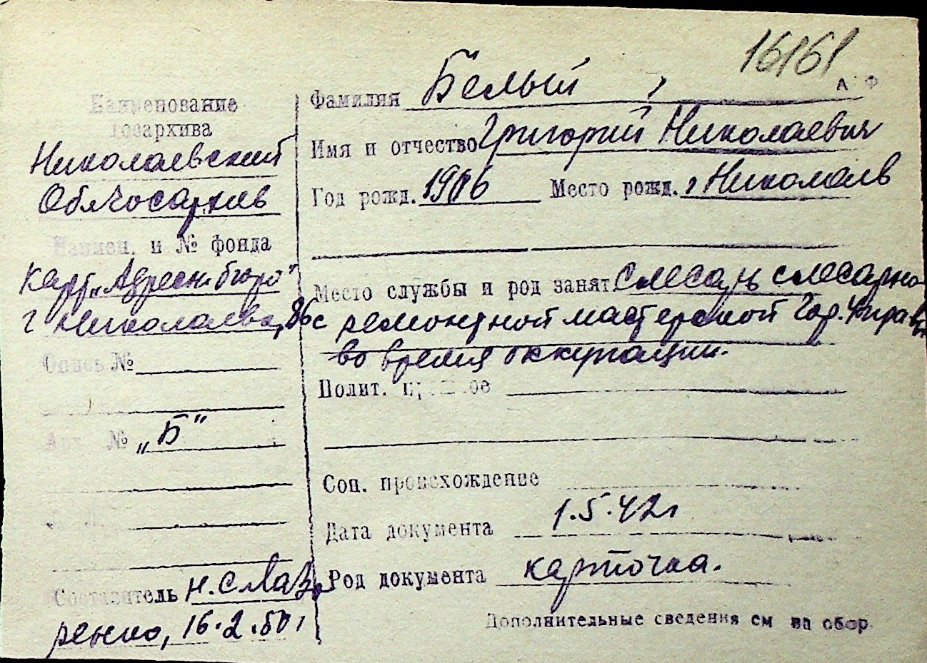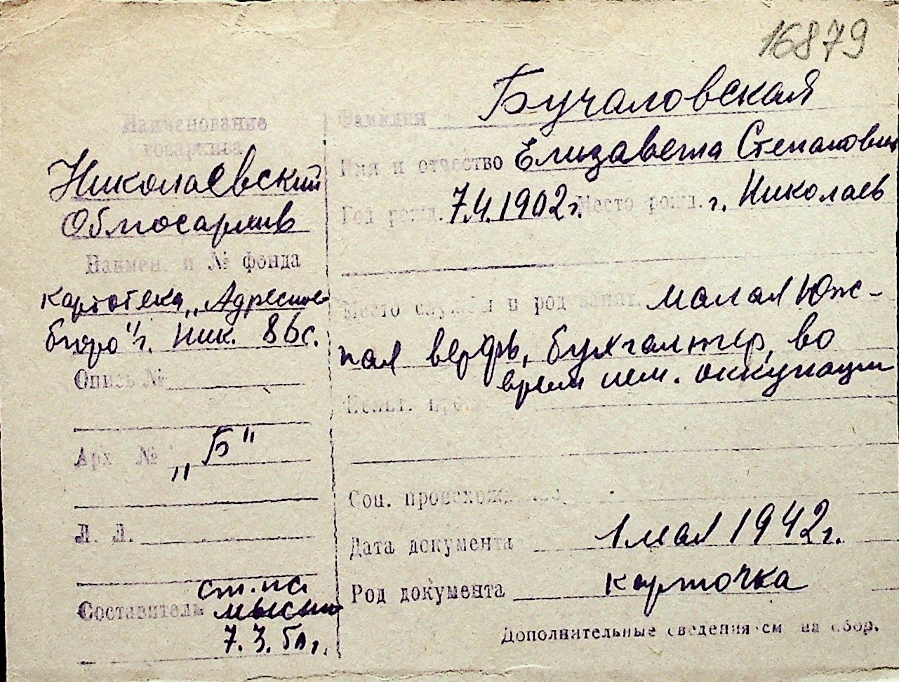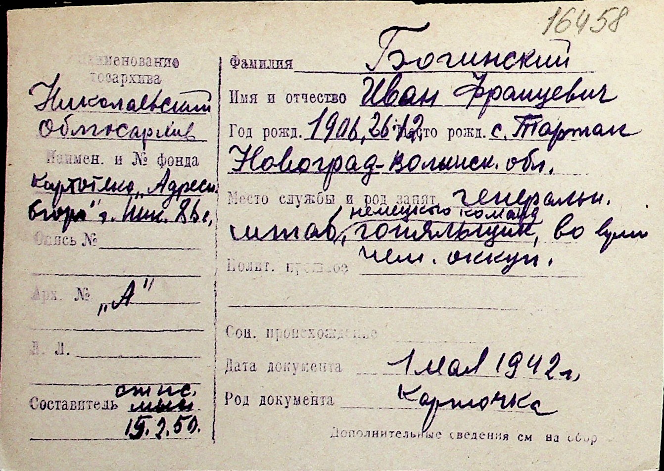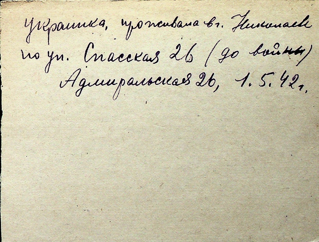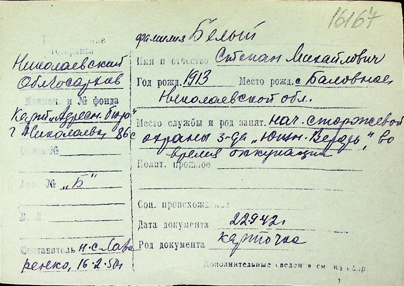 ◦ ◦ Перелік карток на осіб, які мешкали у м. Миколаїв у період окупації 1941–1944 років