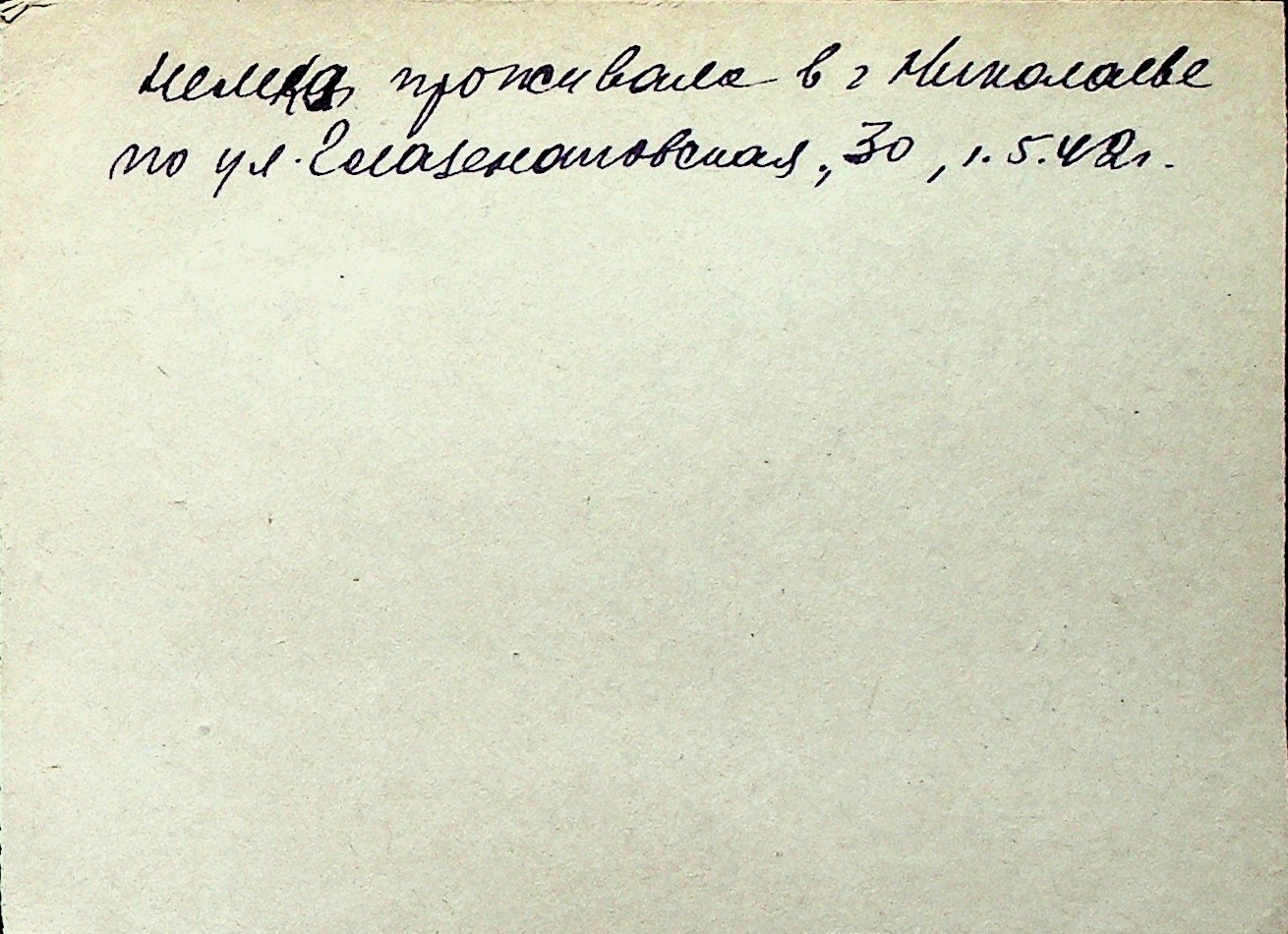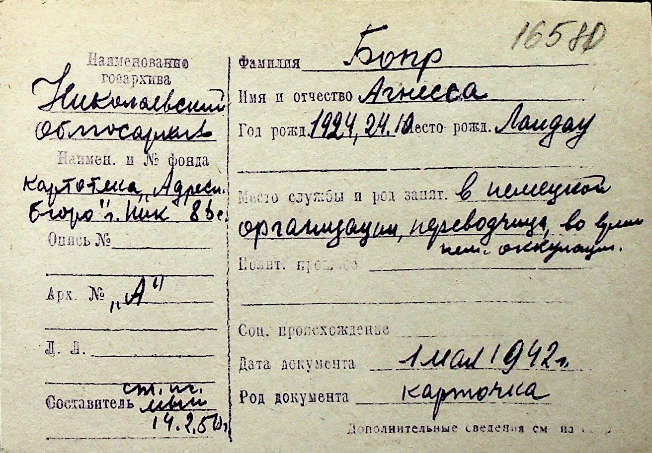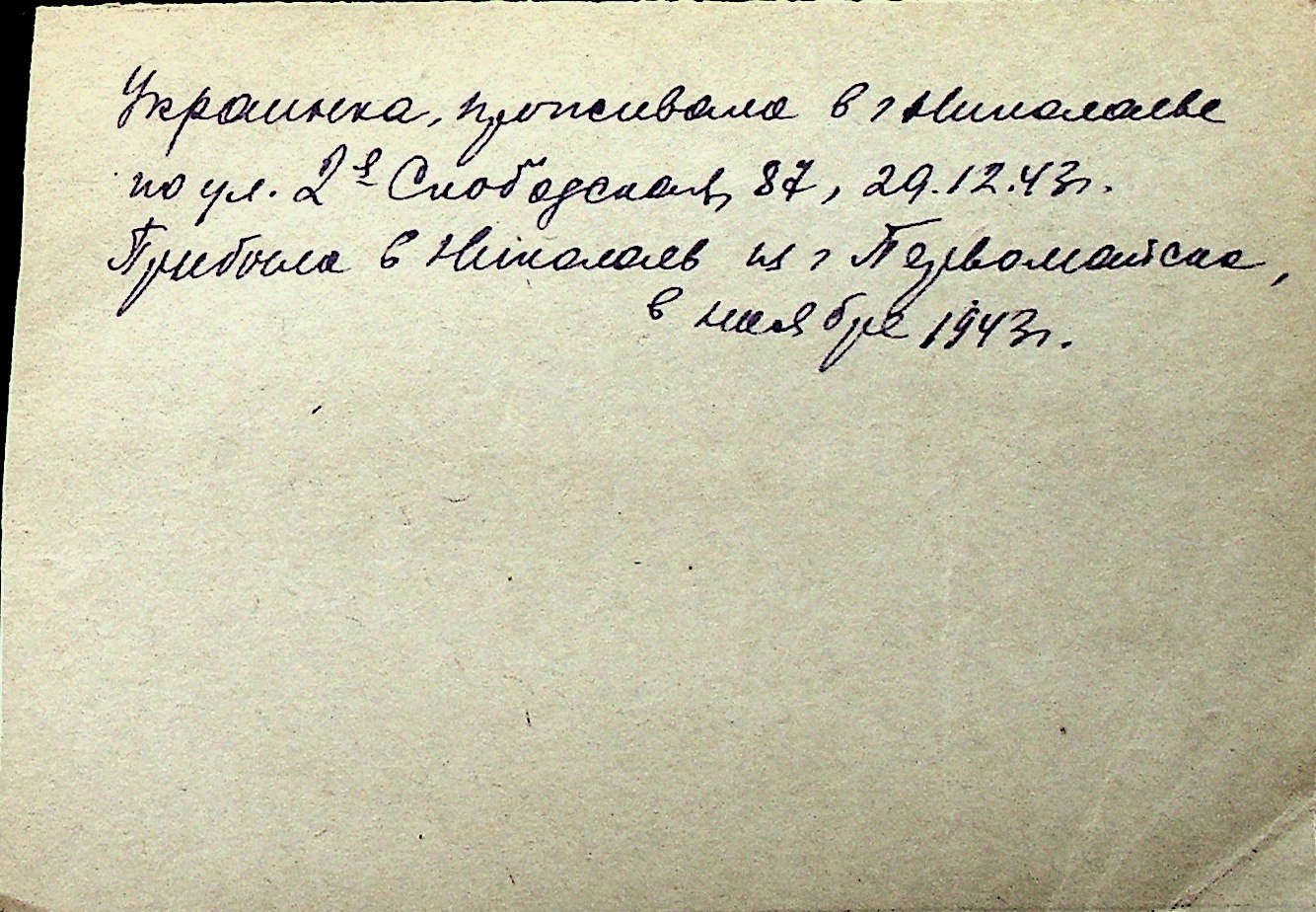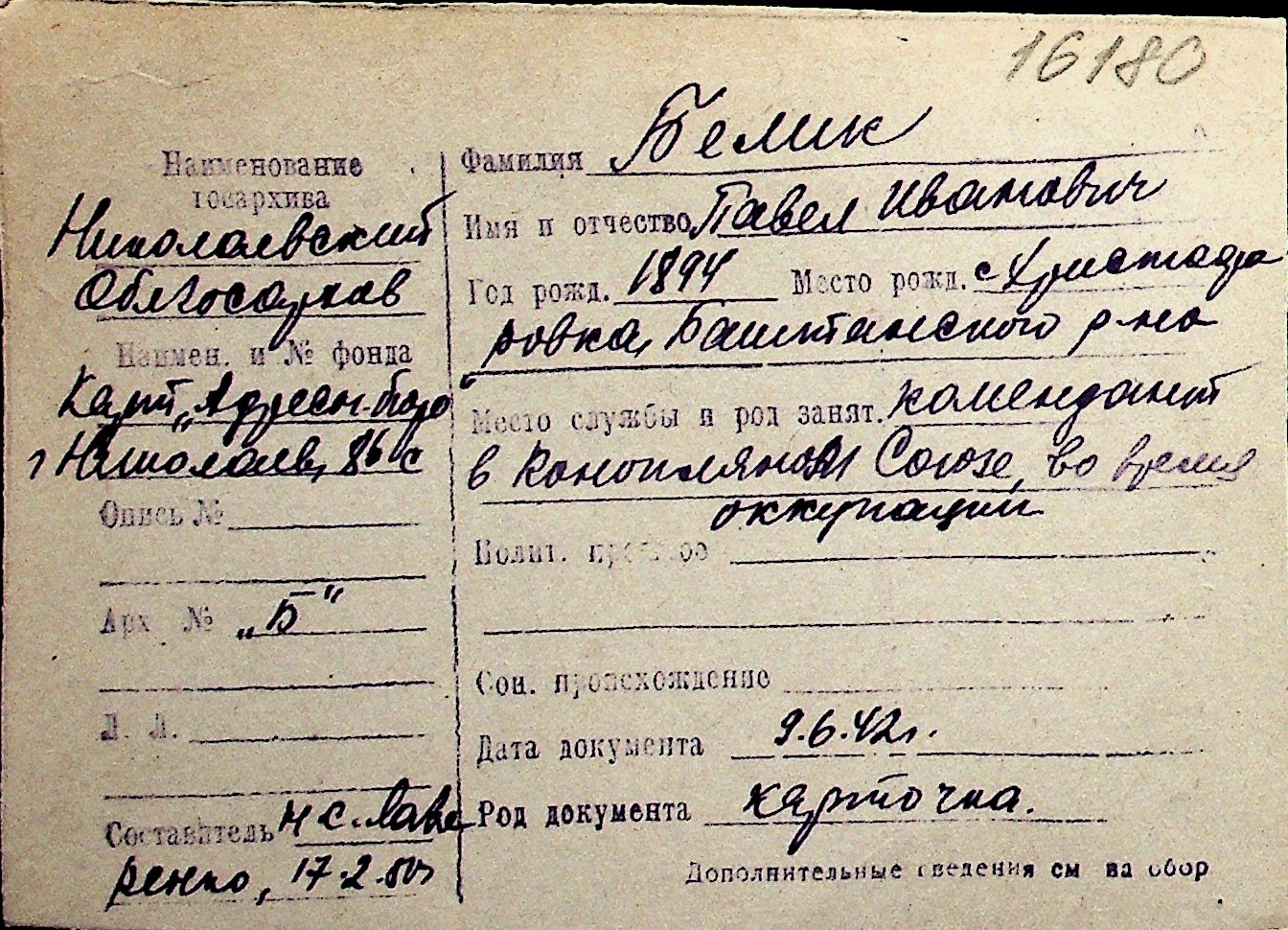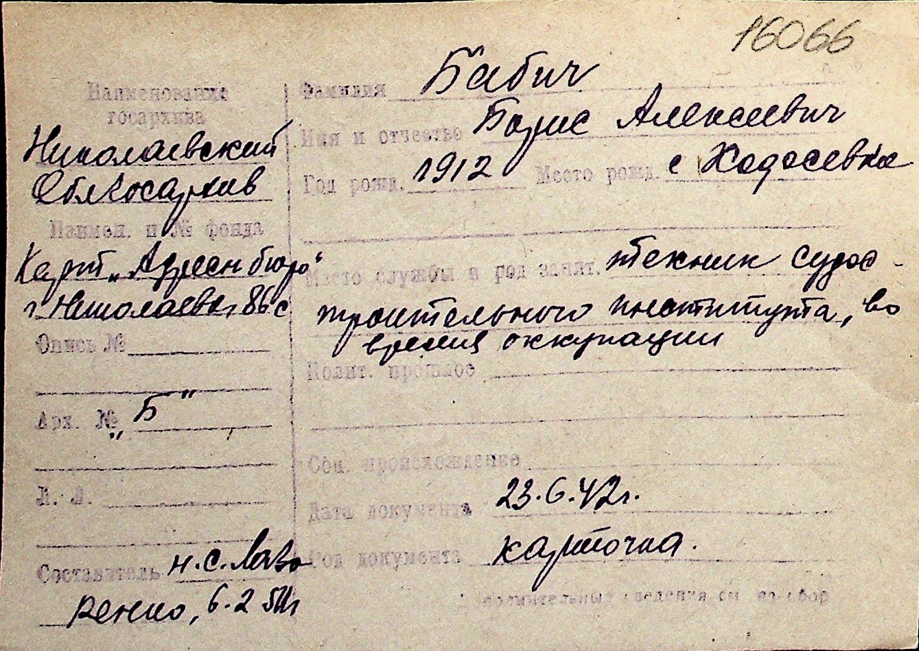◦ ◦ Перелік карток на осіб, які мешкали у м. Миколаїв у період окупації 1941–1944 років