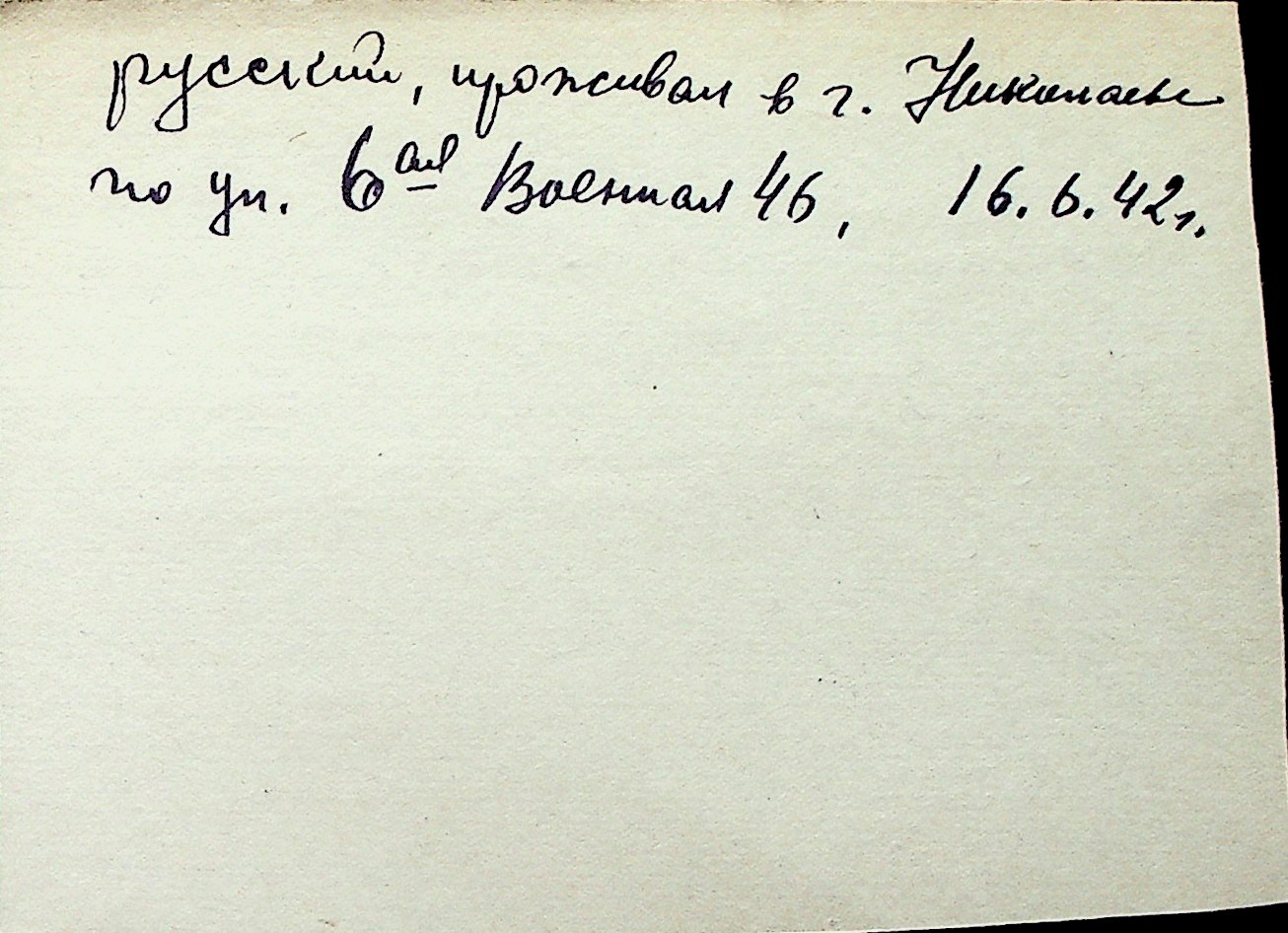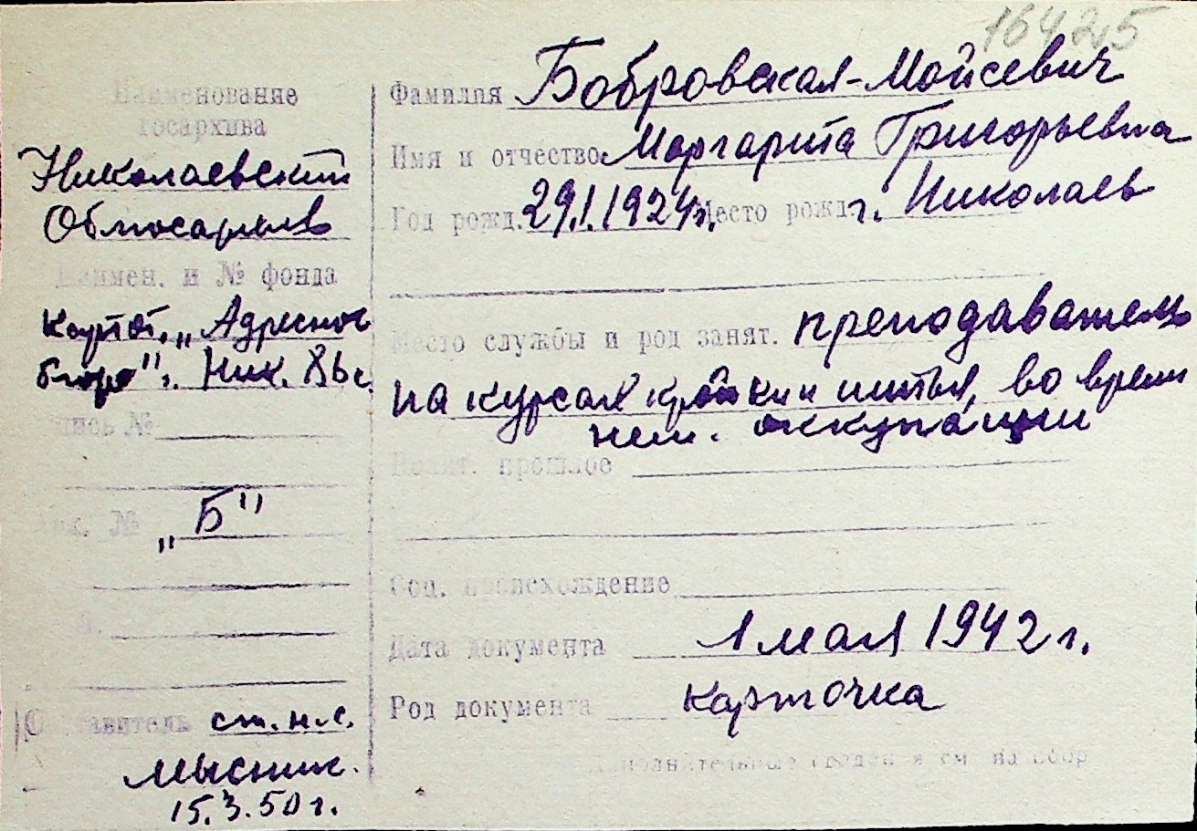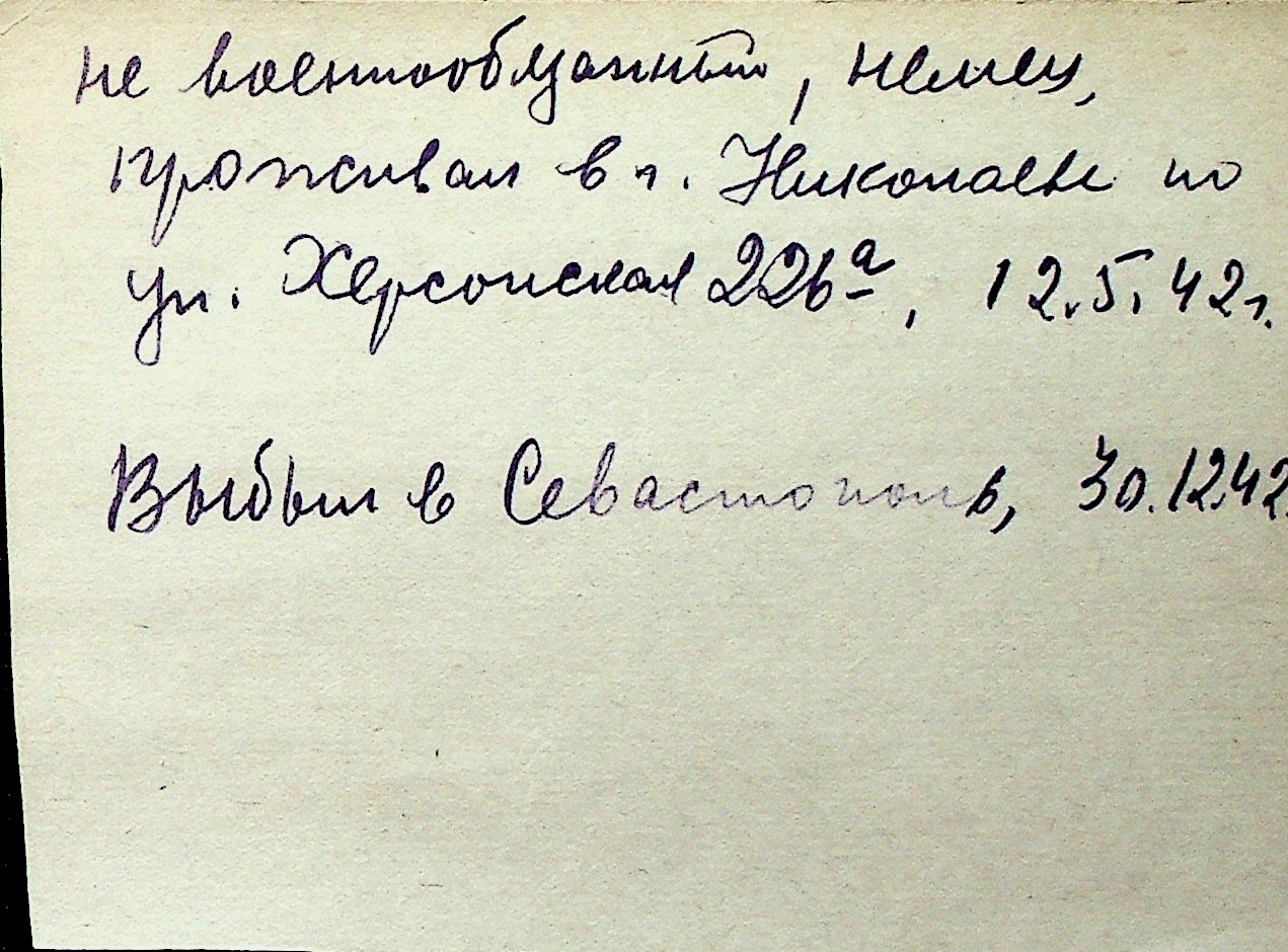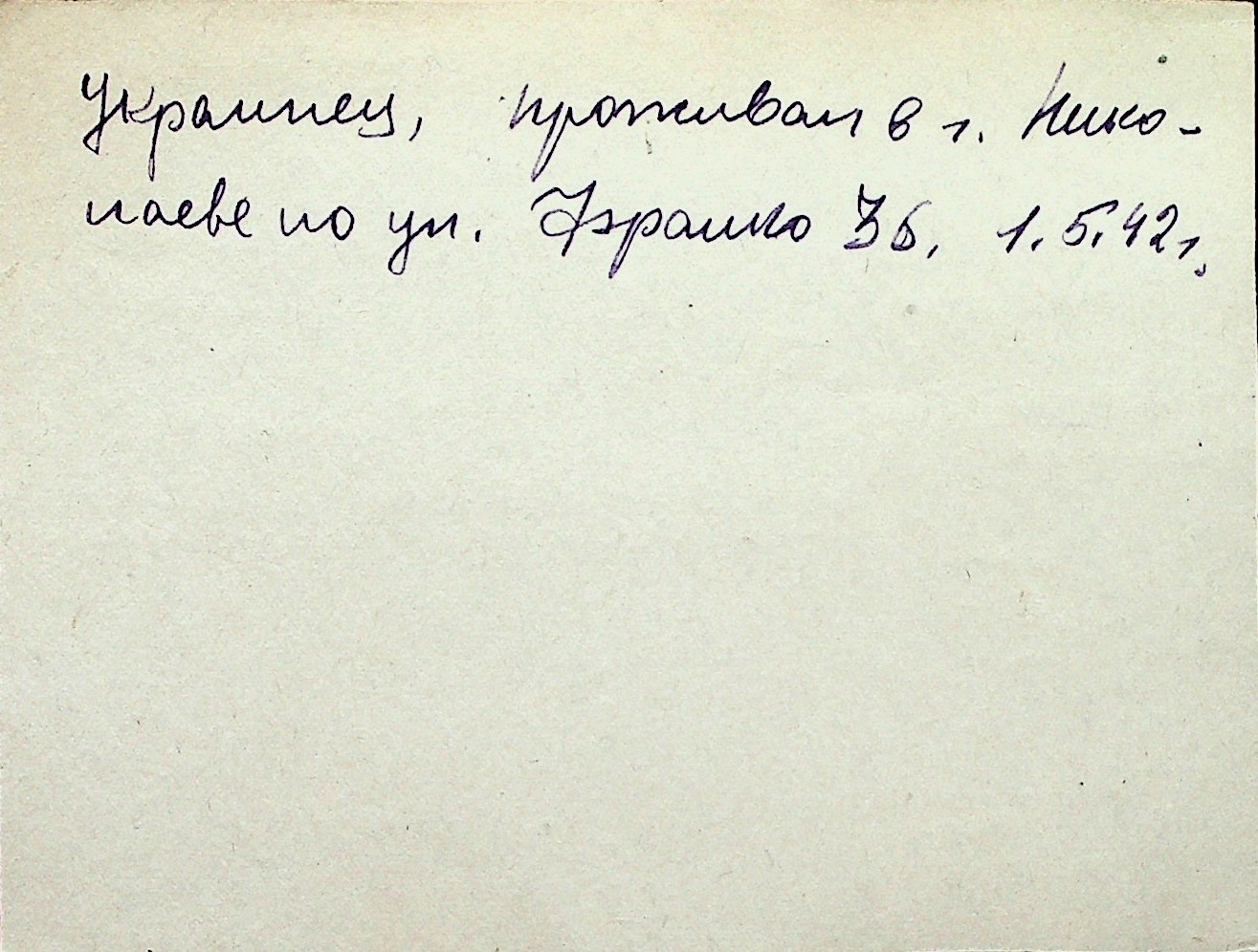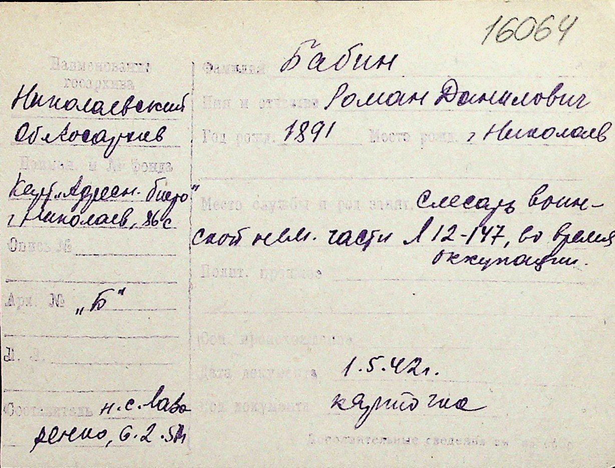 ◦ ◦ Перелік карток на осіб, які мешкали у м. Миколаїв у період окупації 1941–1944 років