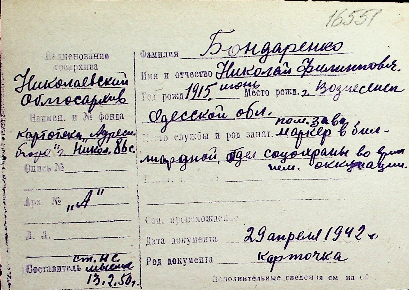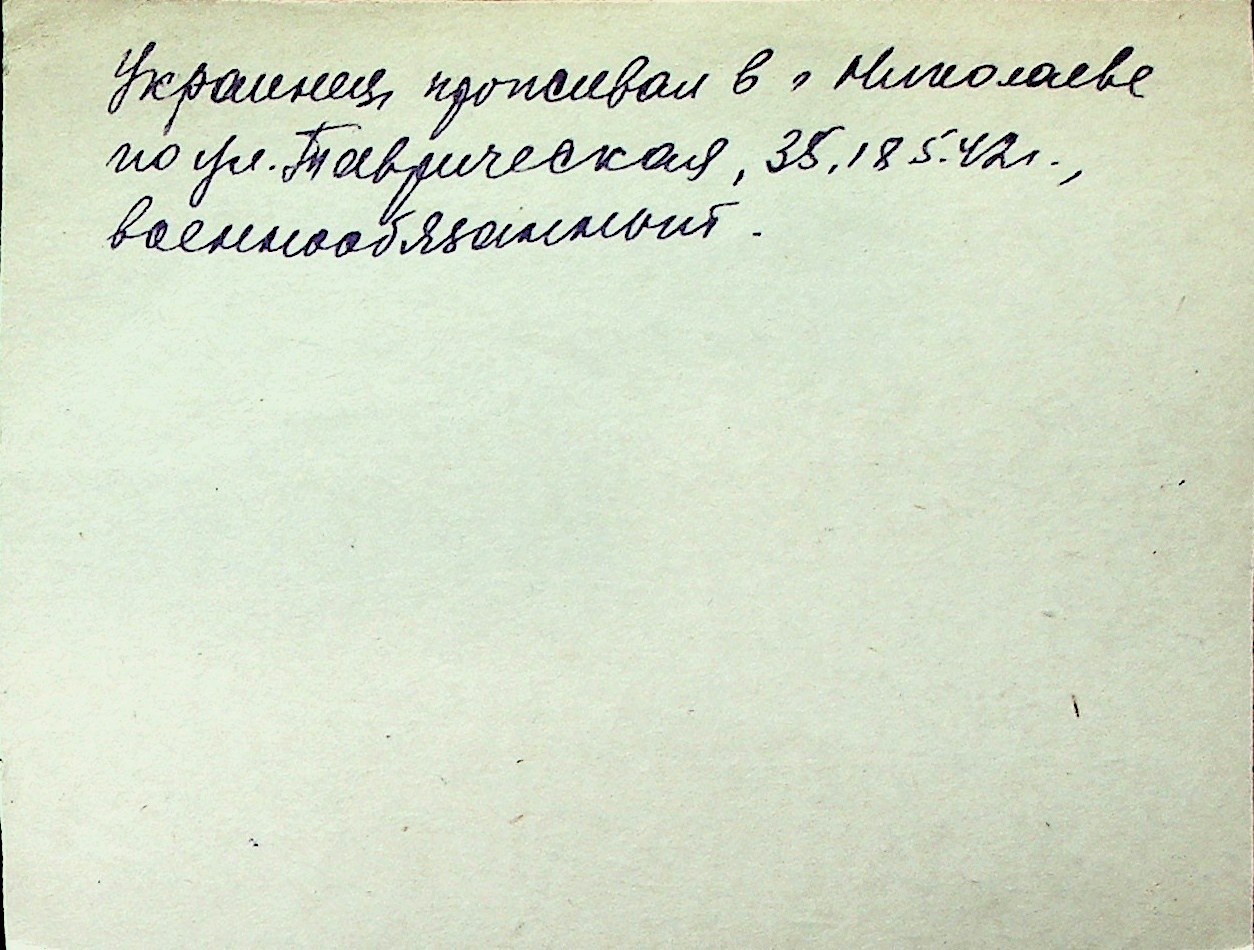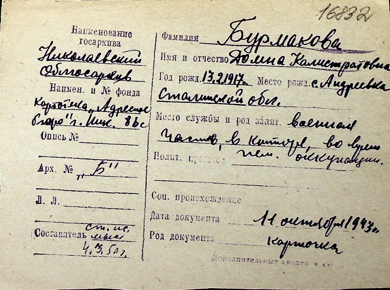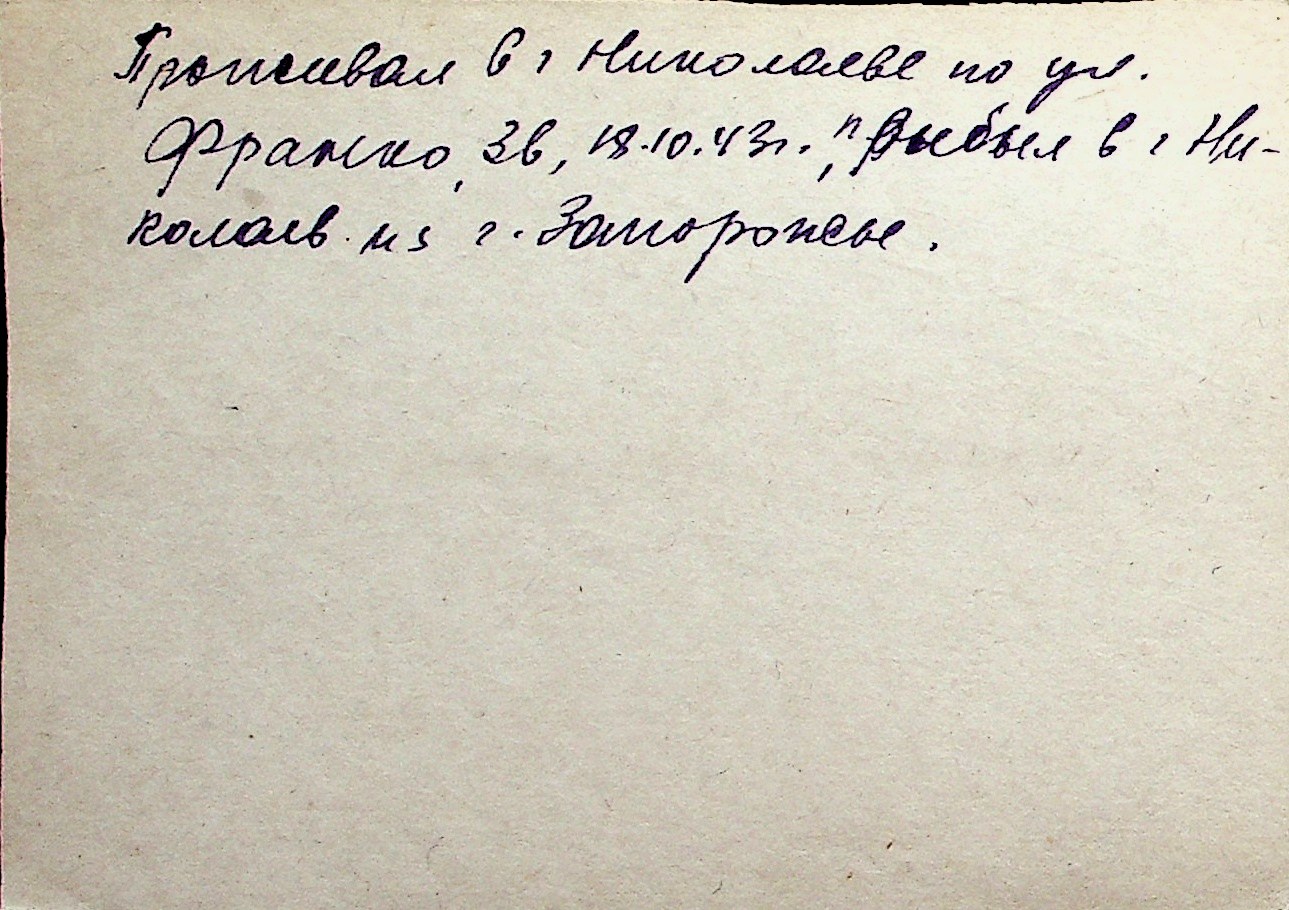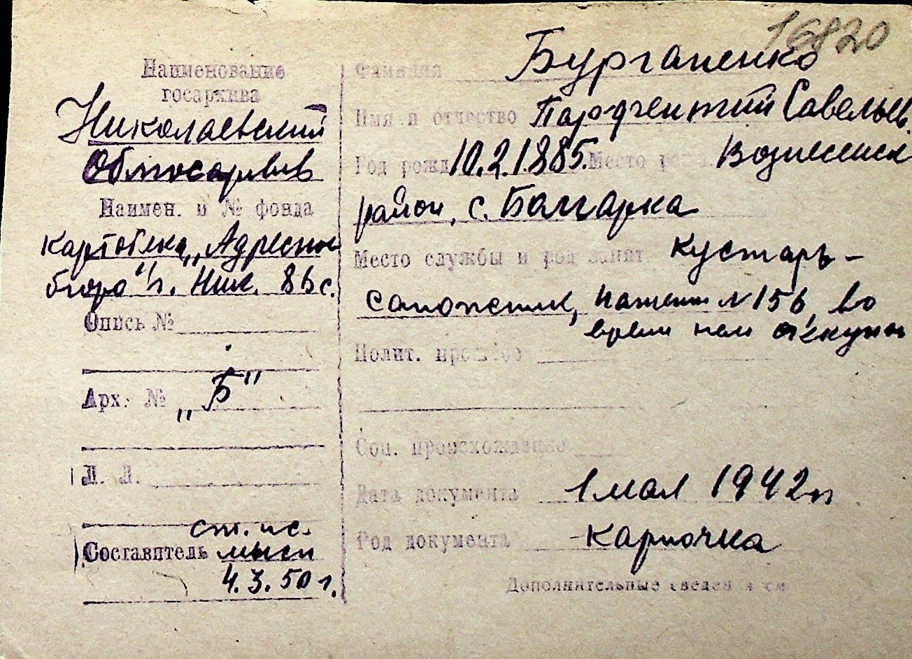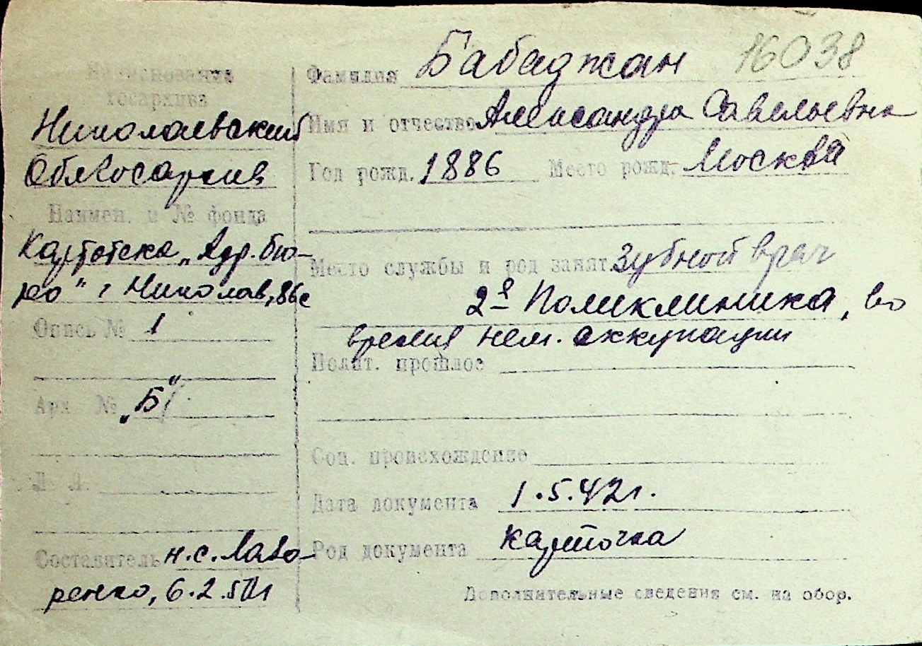 ◦ ◦ Перелік карток на осіб, які мешкали у м. Миколаїв у період окупації 1941–1944 років