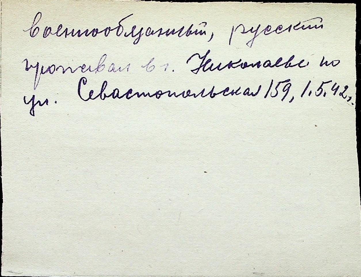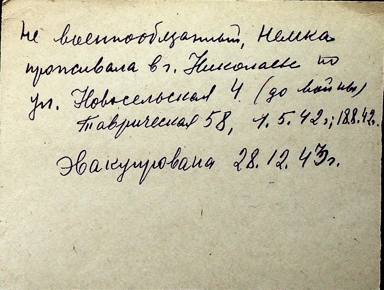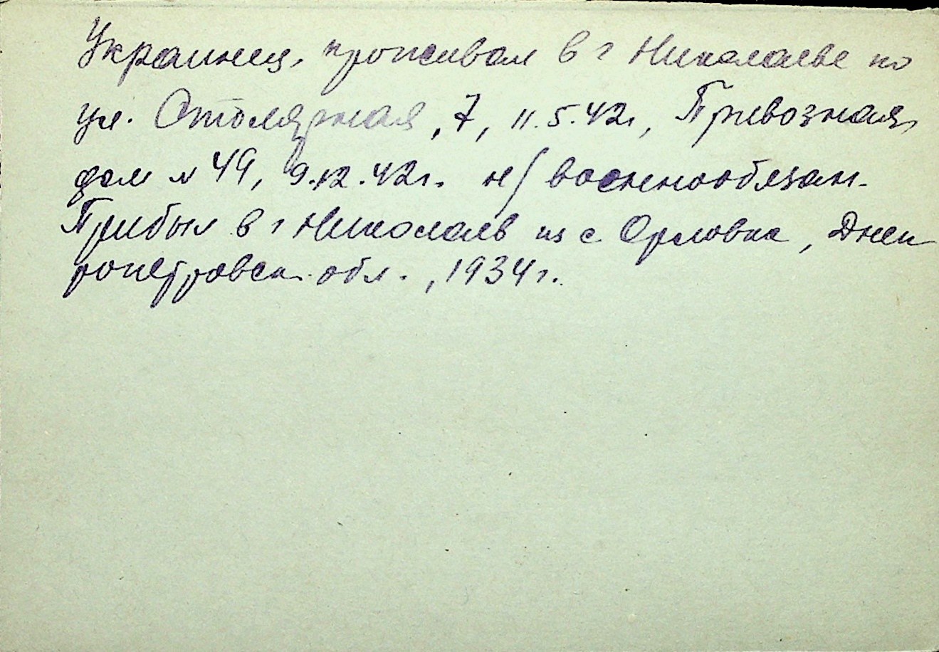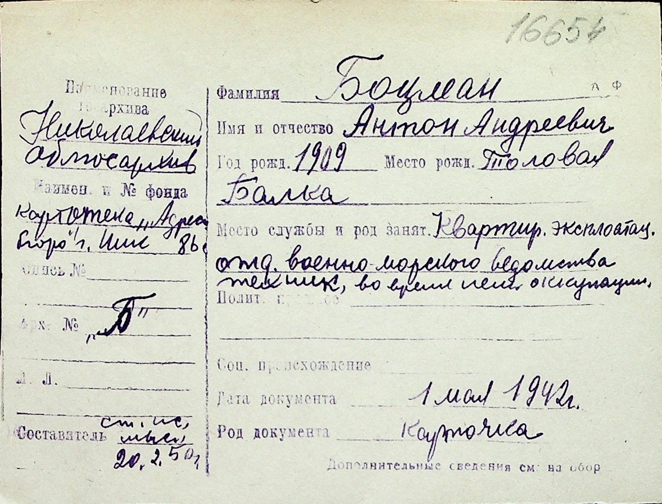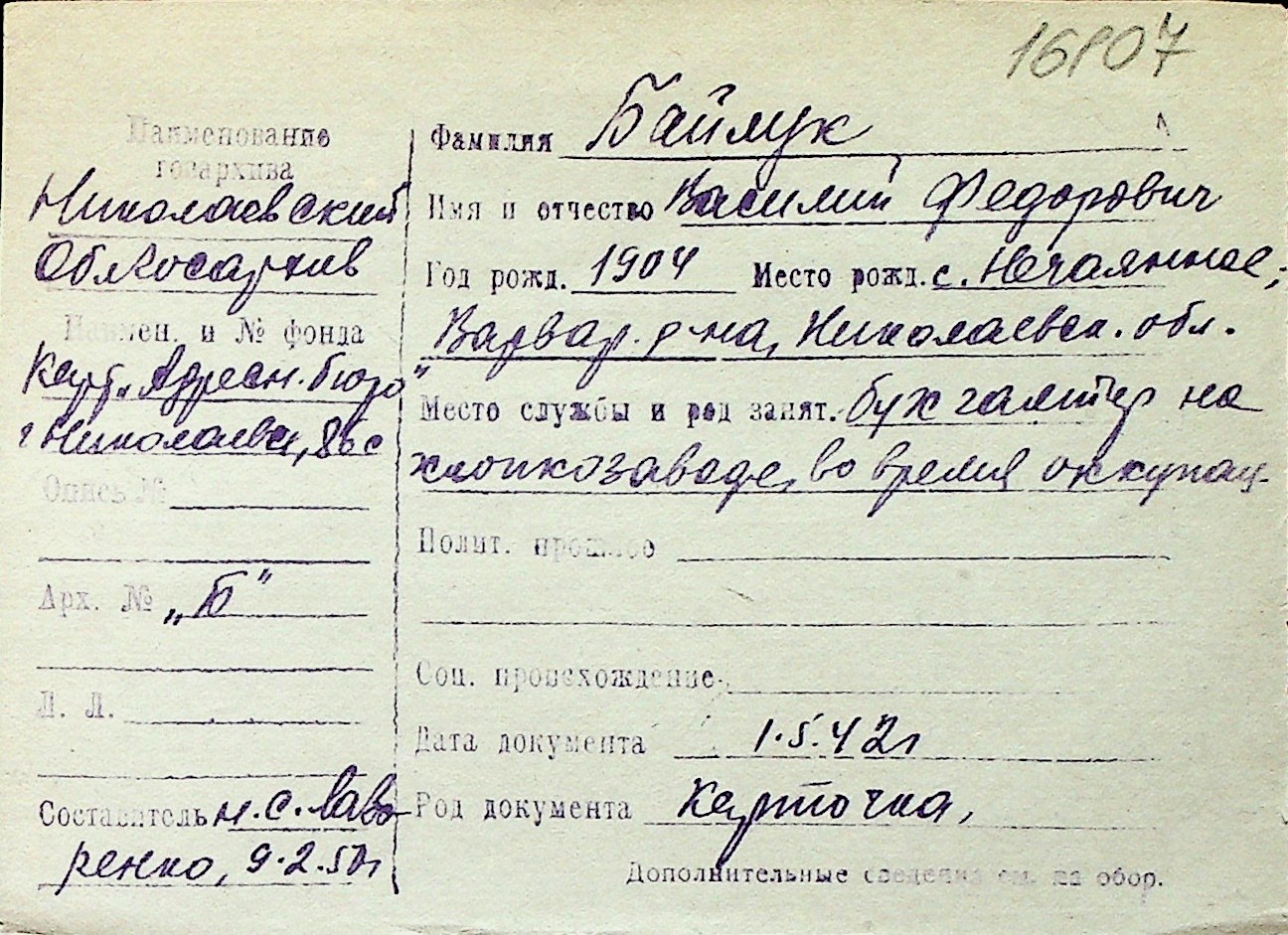 ◦ ◦ Перелік карток на осіб, які мешкали у м. Миколаїв у період окупації 1941–1944 років