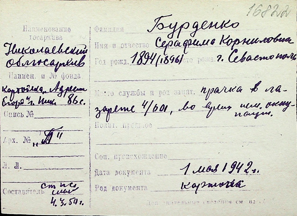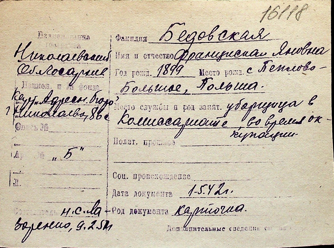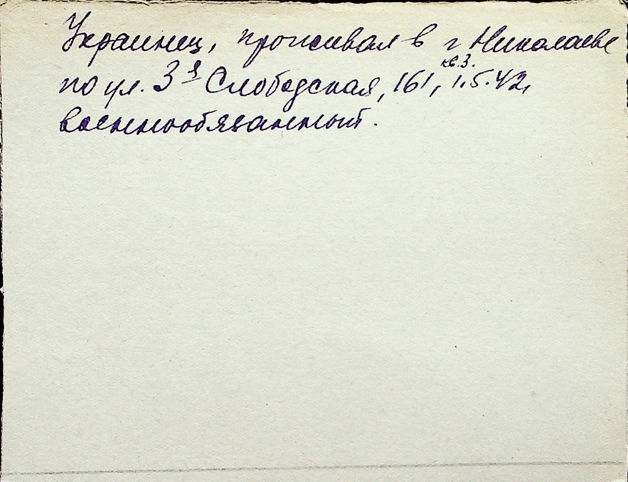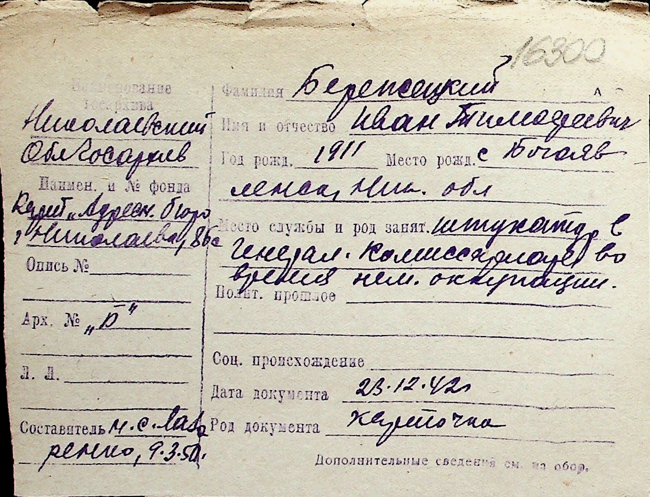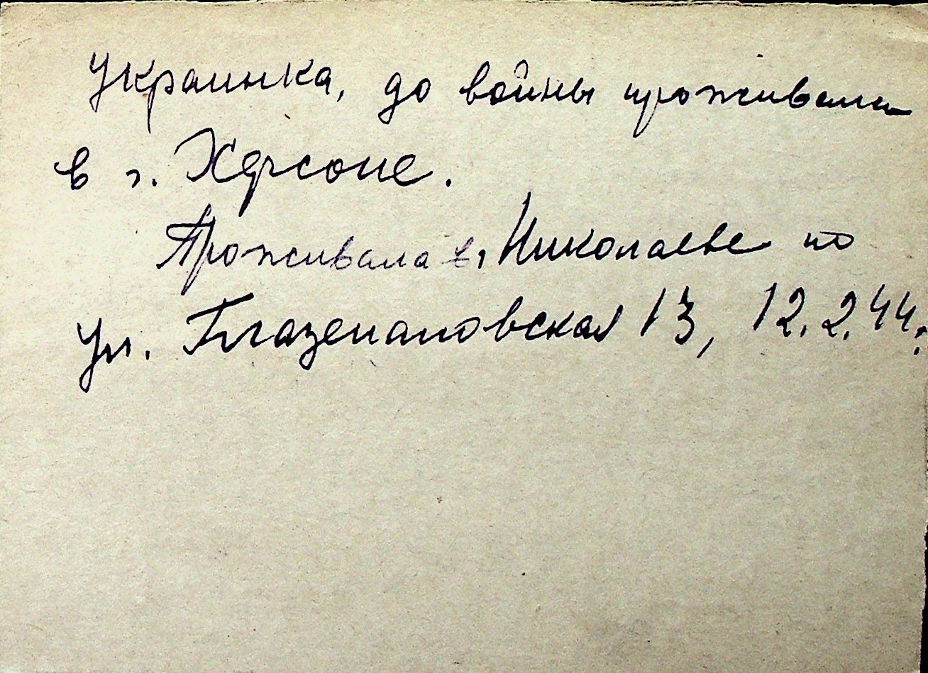 ◦ ◦ Перелік карток на осіб, які мешкали у м. Миколаїв у період окупації 1941–1944 років