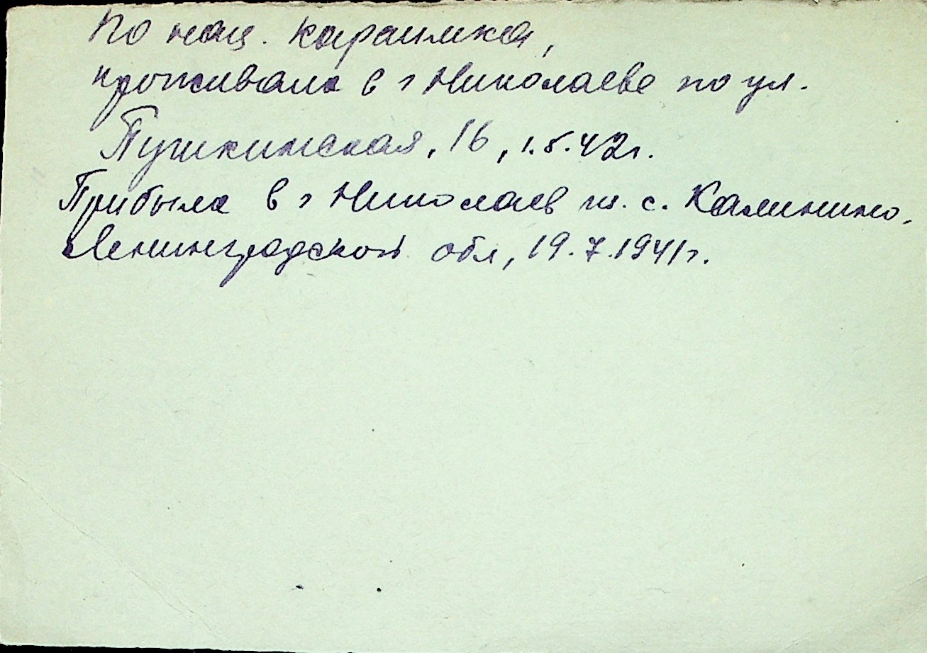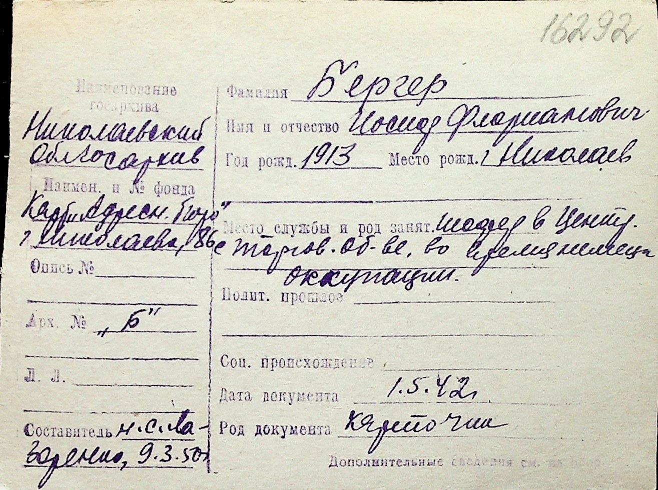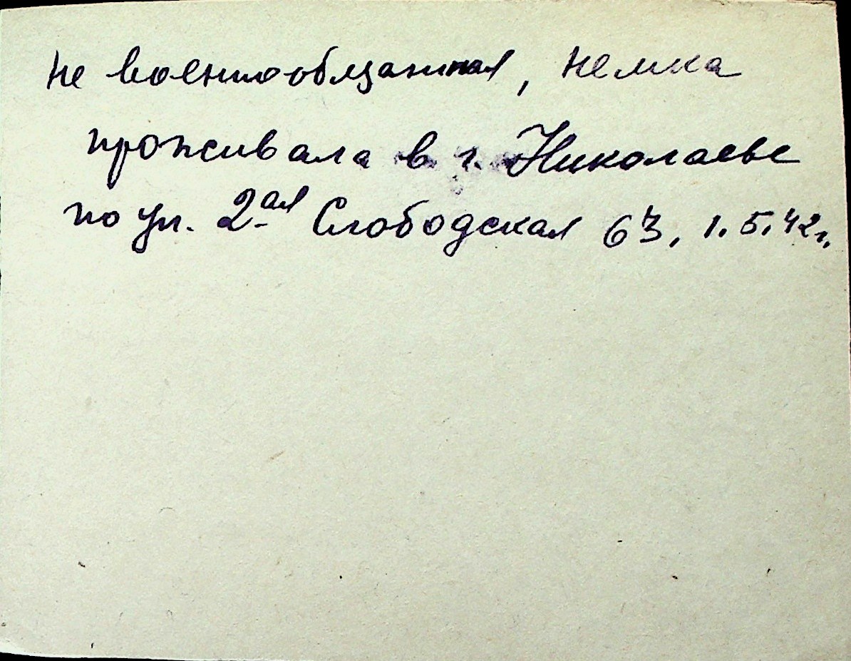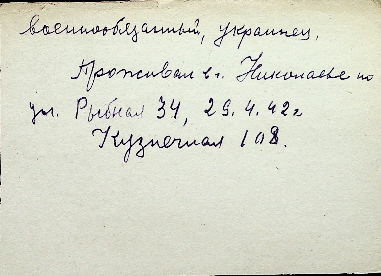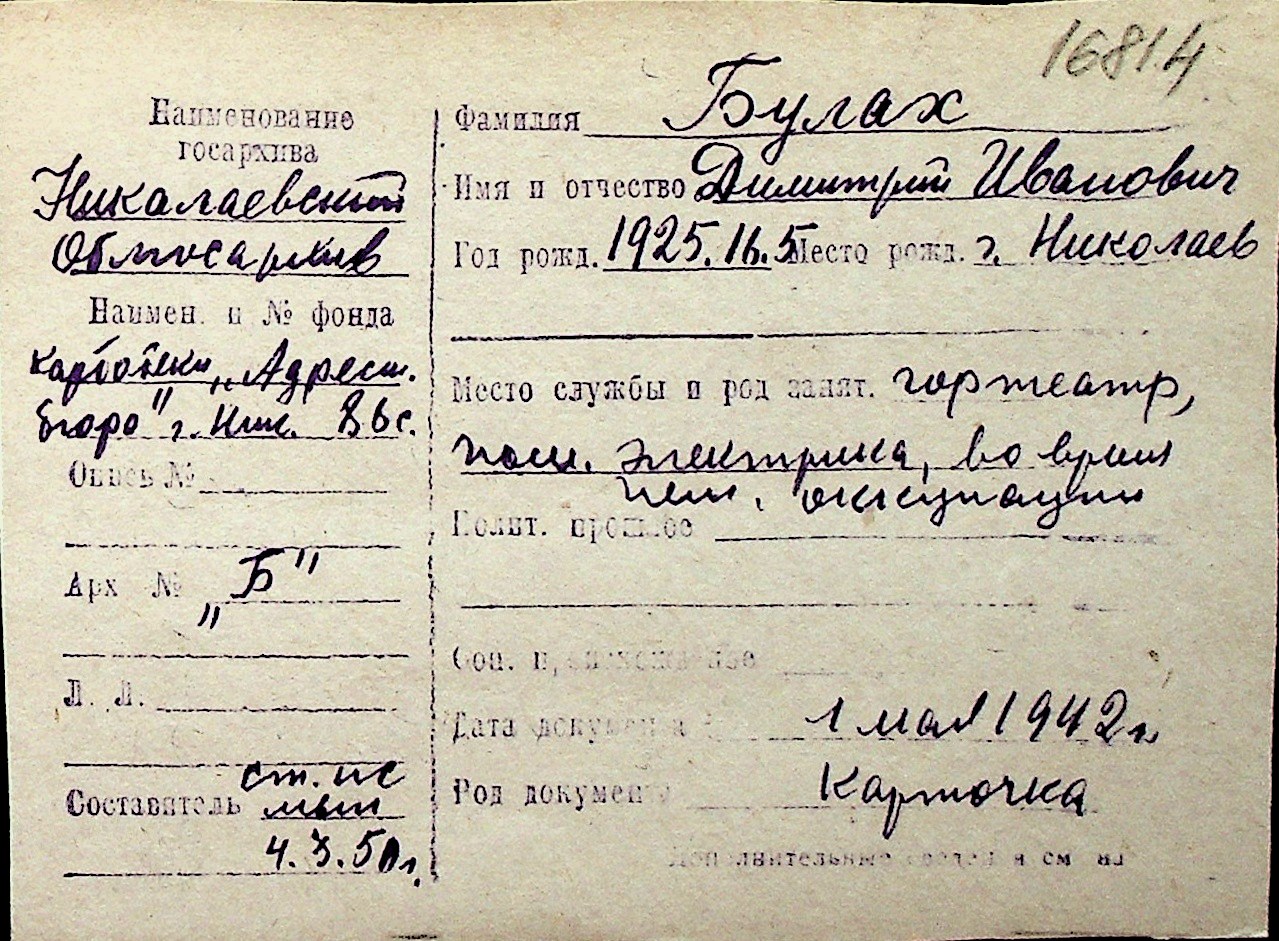 ◦ ◦ Перелік карток на осіб, які мешкали у м. Миколаїв у період окупації 1941–1944 років