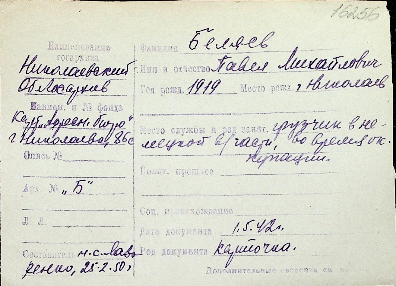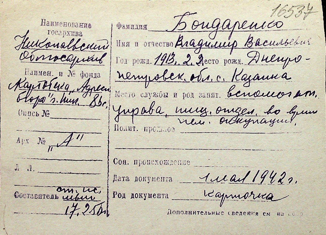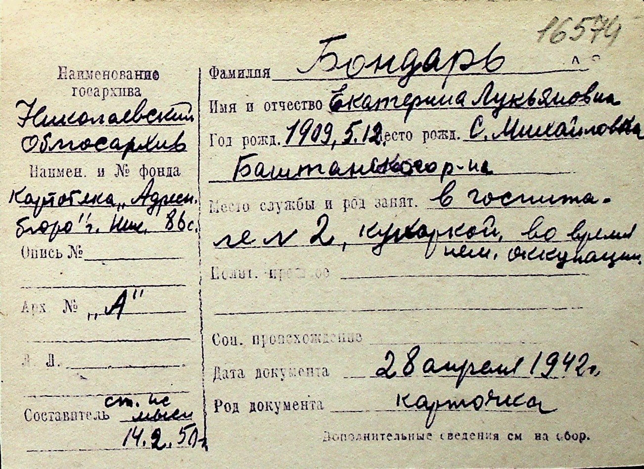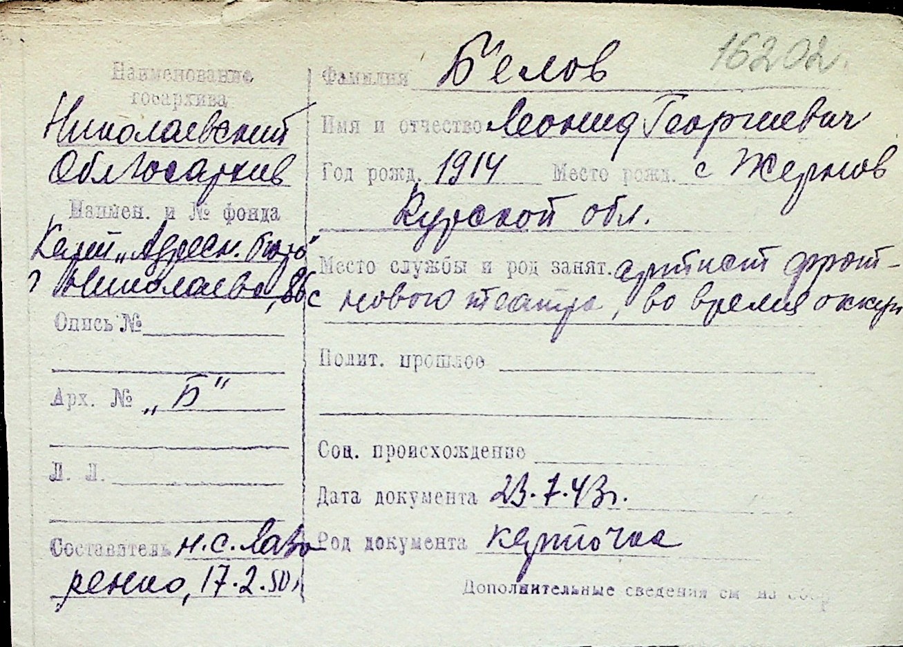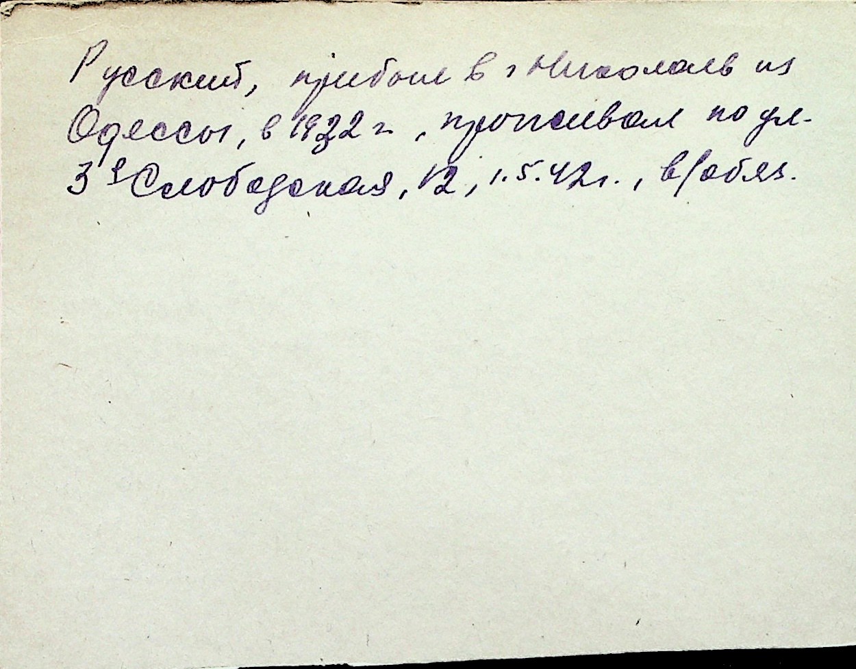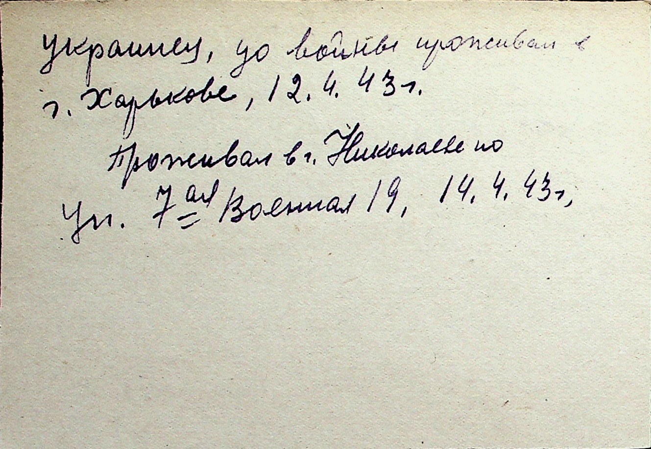 ◦ ◦ Перелік карток на осіб, які мешкали у м. Миколаїв у період окупації 1941–1944 років