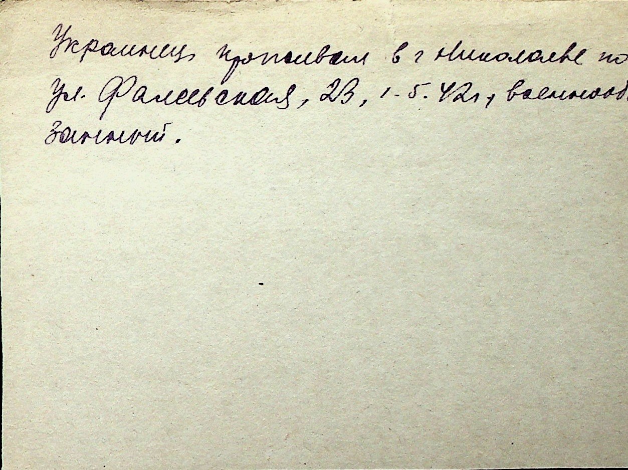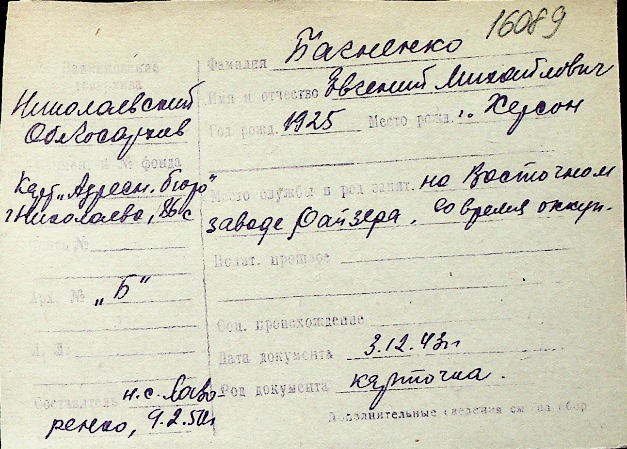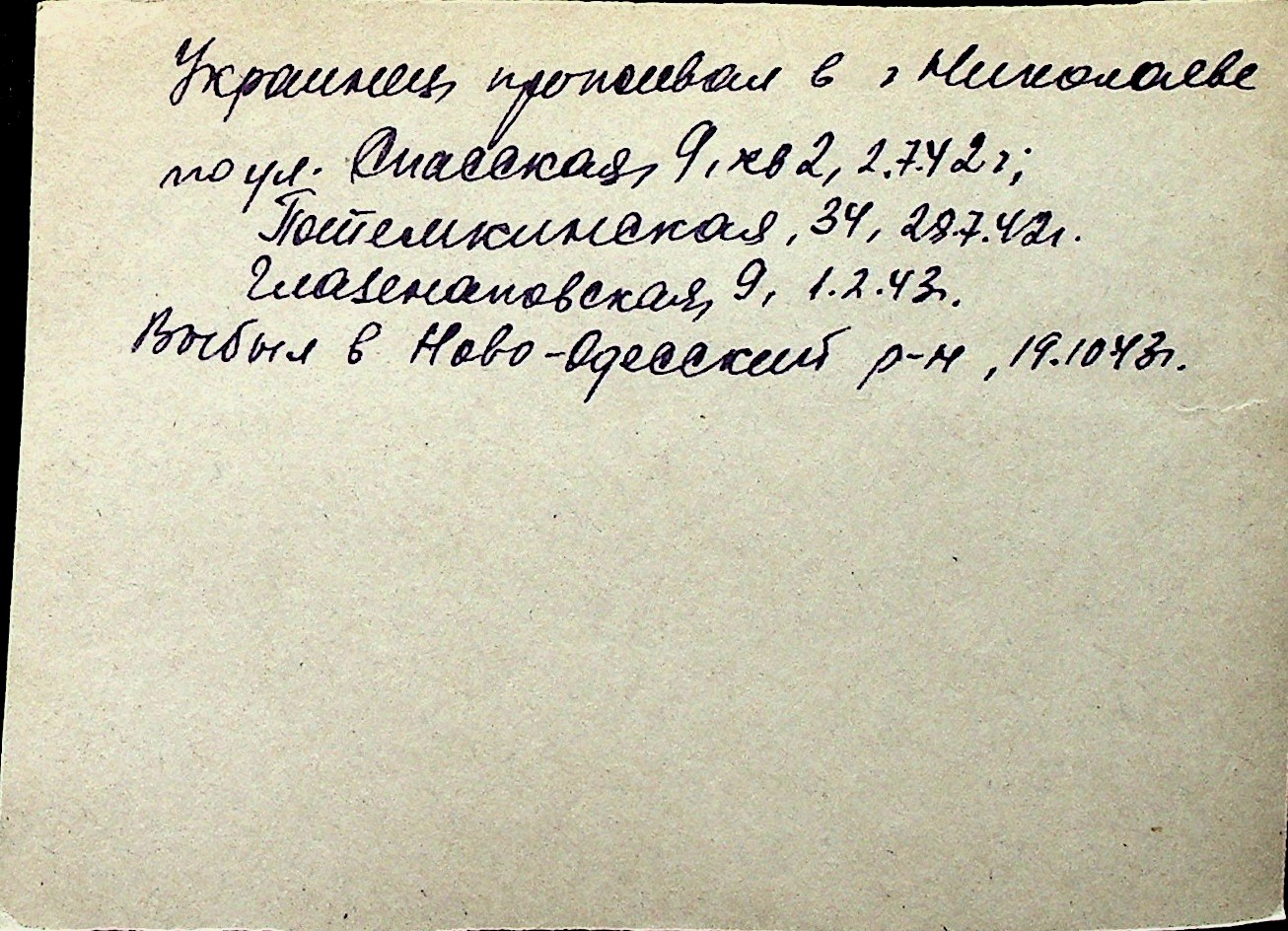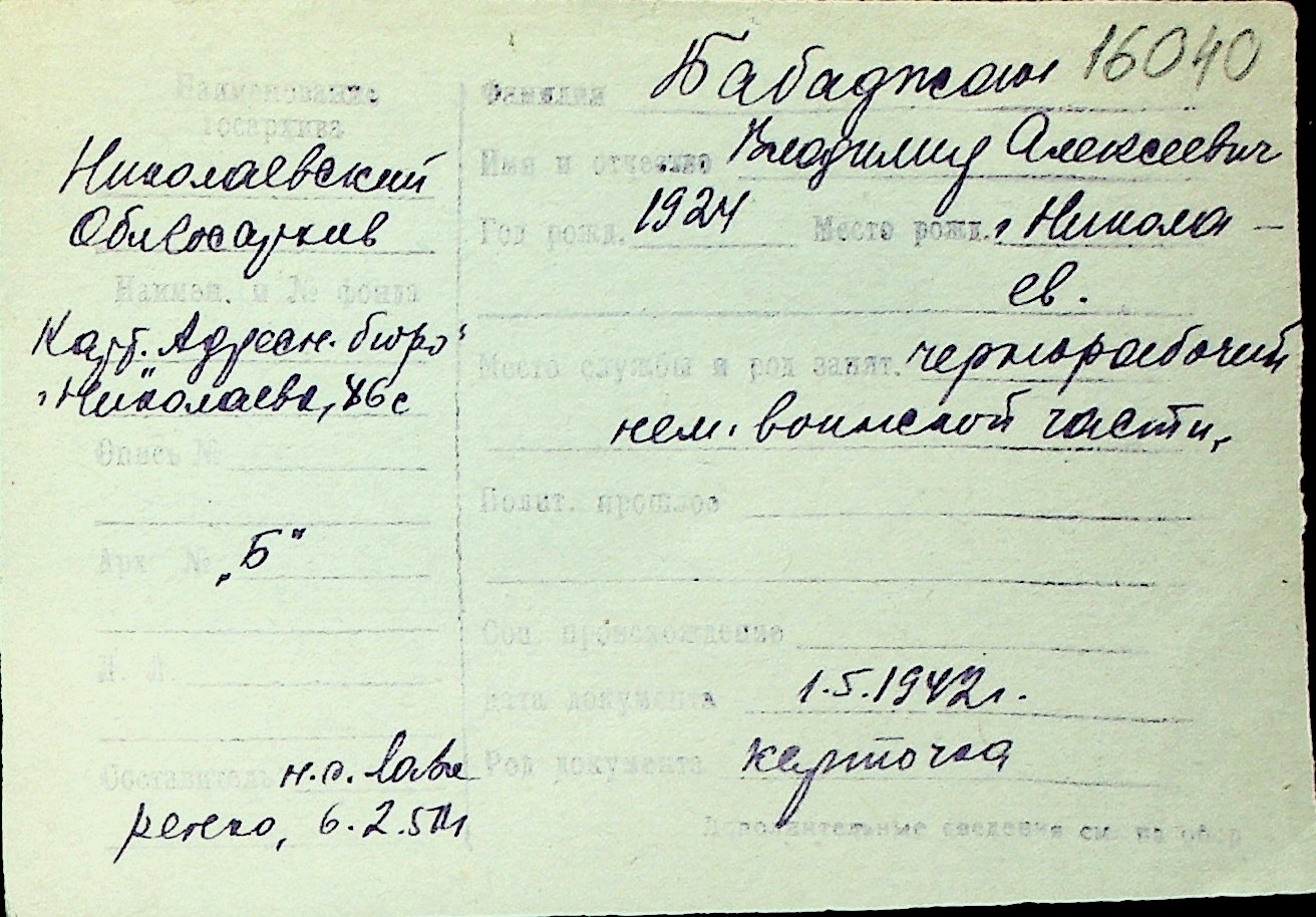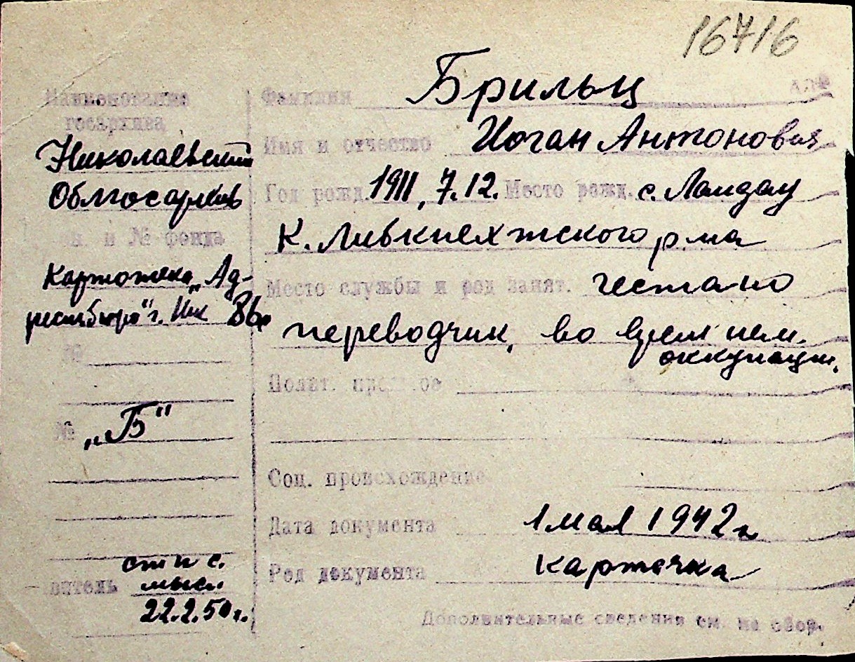 ◦ ◦ Перелік карток на осіб, які мешкали у м. Миколаїв у період окупації 1941–1944 років