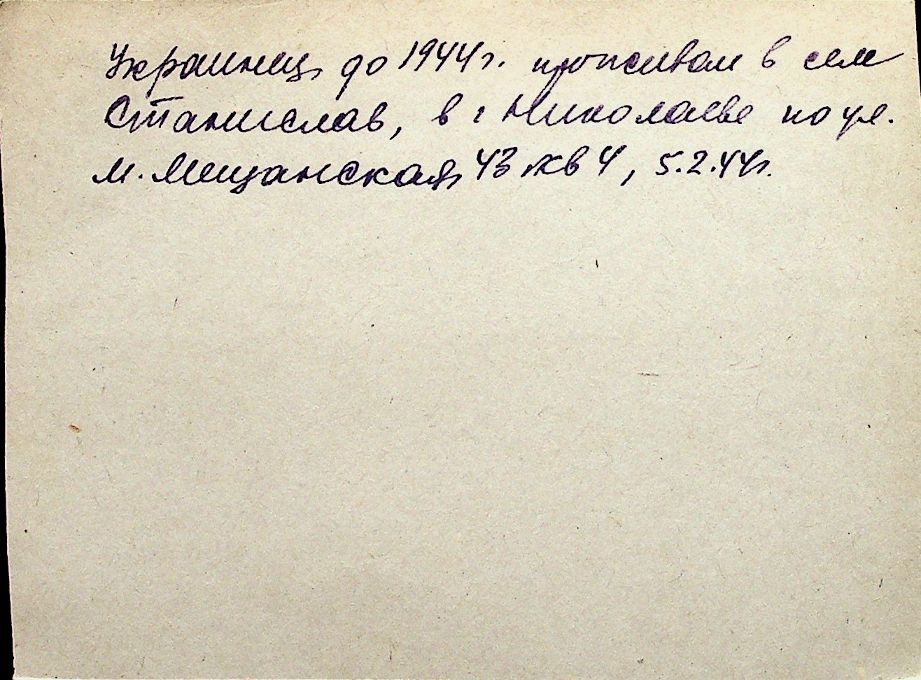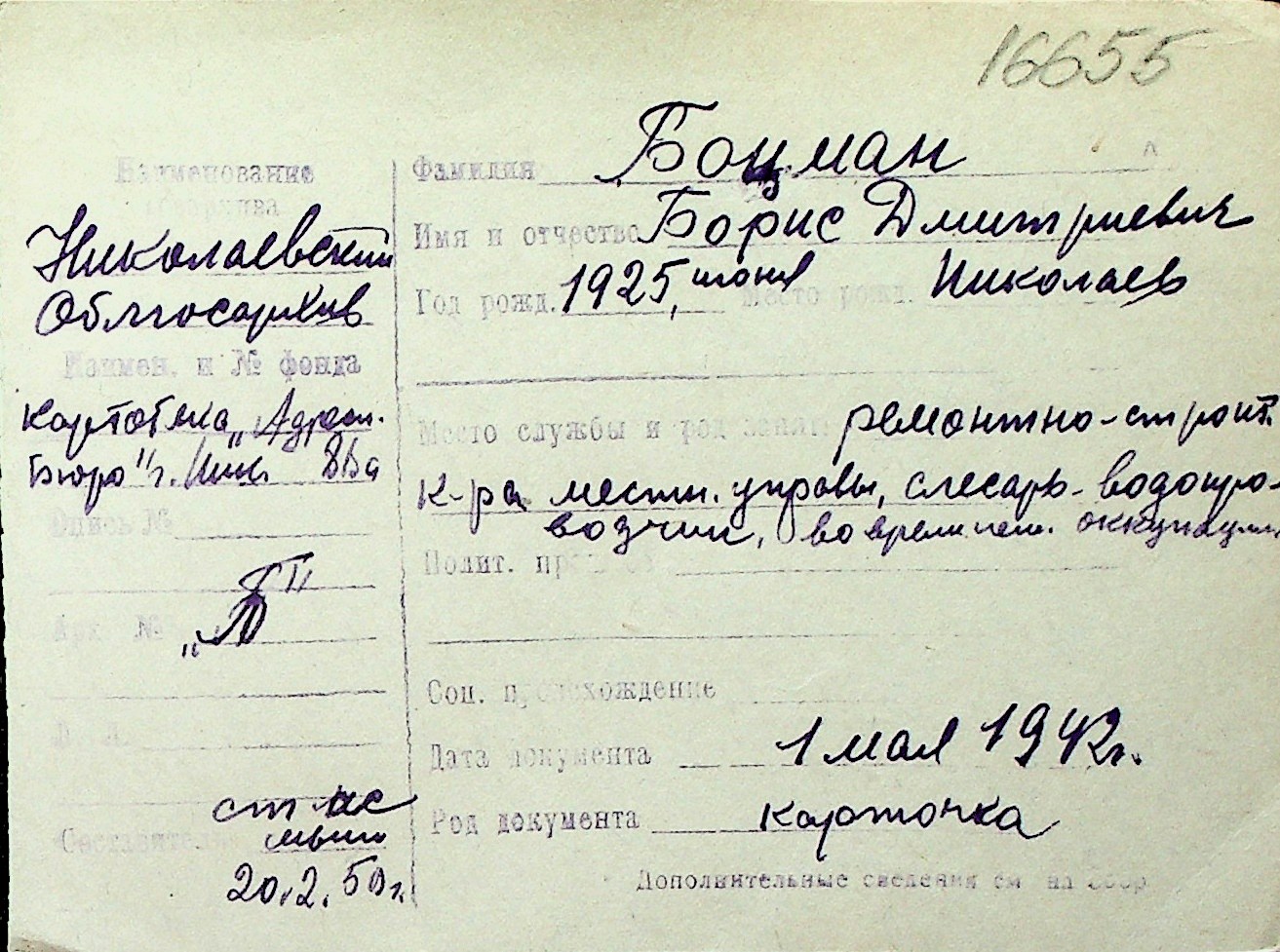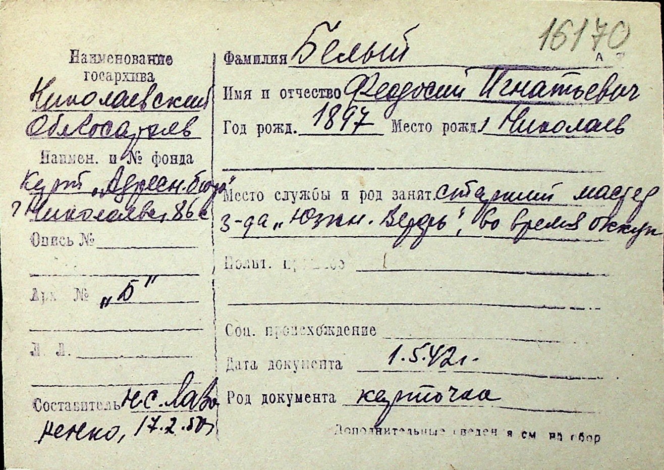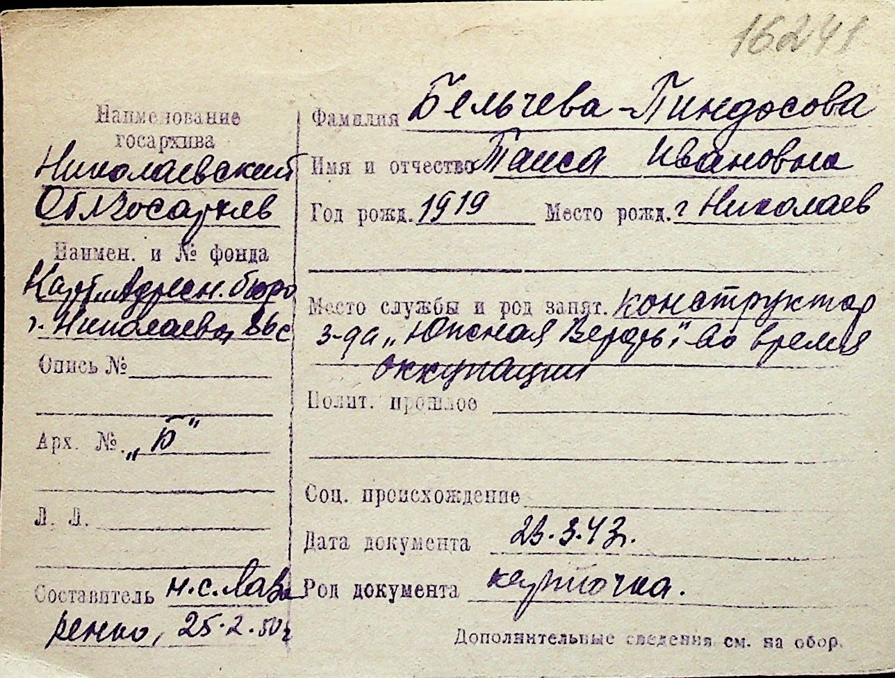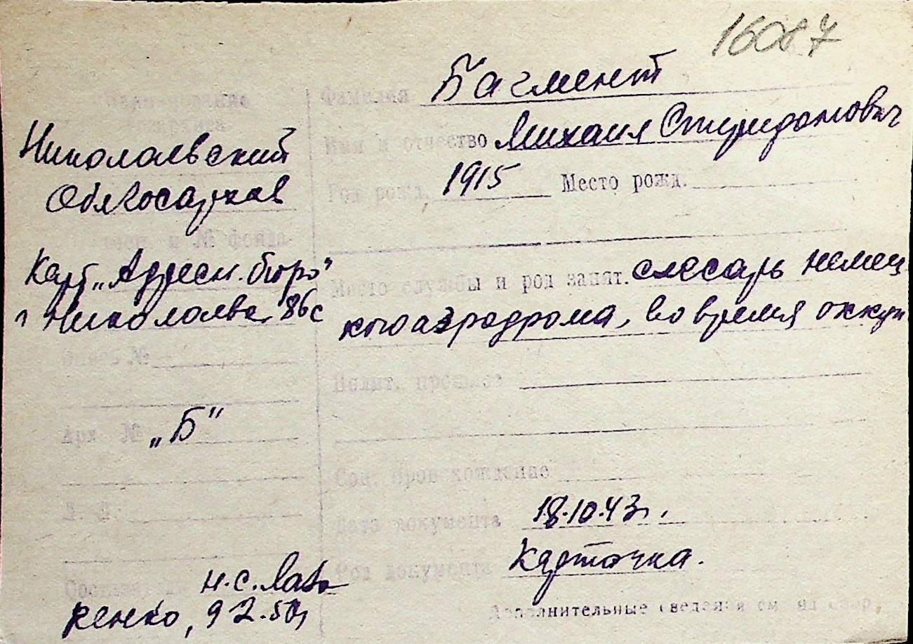 ◦ ◦ Перелік карток на осіб, які мешкали у м. Миколаїв у період окупації 1941–1944 років