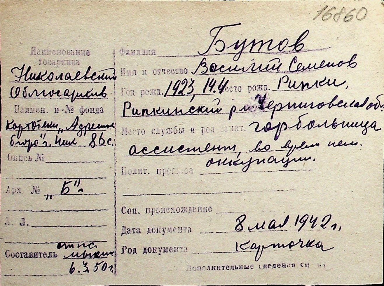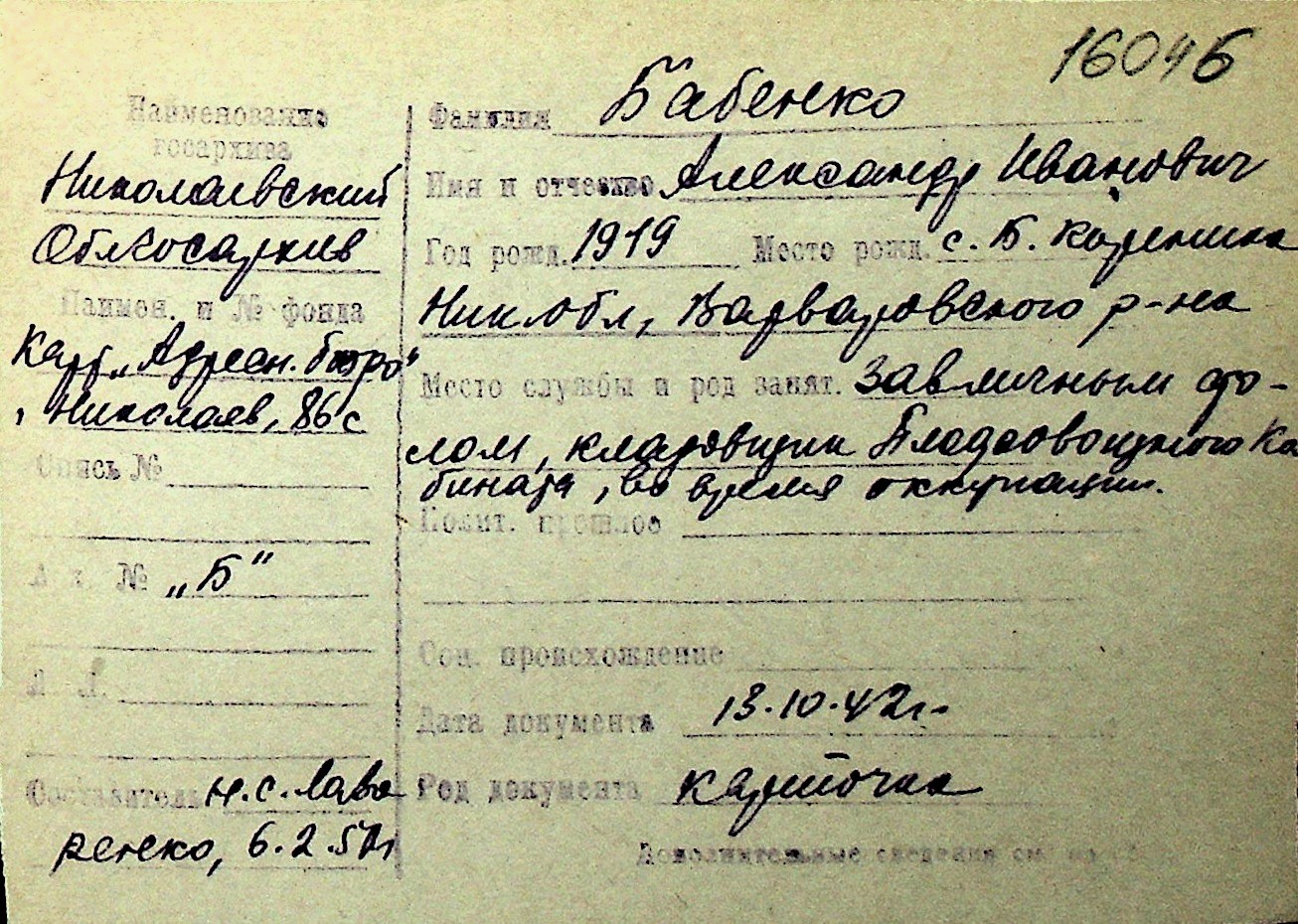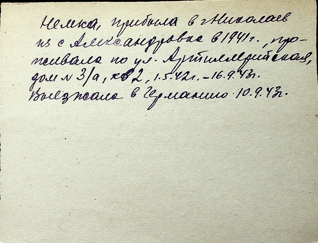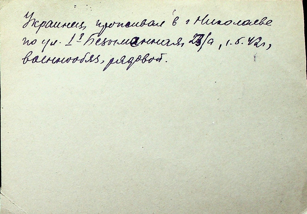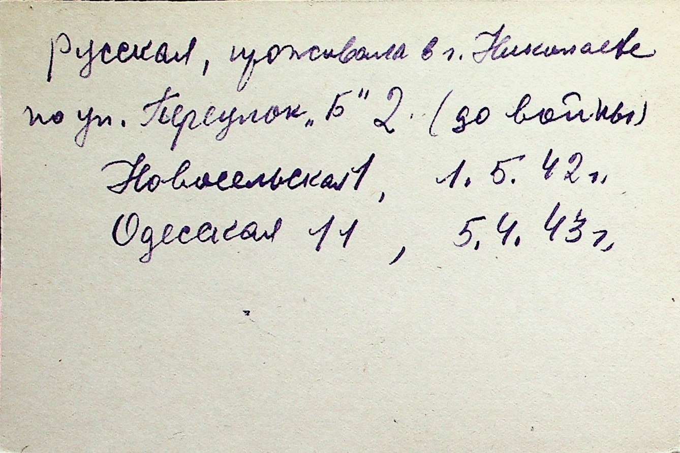 ◦ ◦ Перелік карток на осіб, які мешкали у м. Миколаїв у період окупації 1941–1944 років
