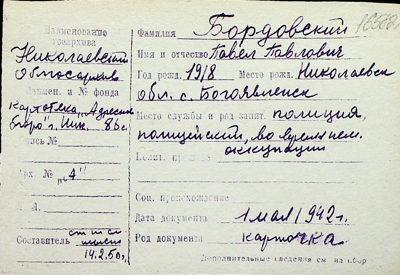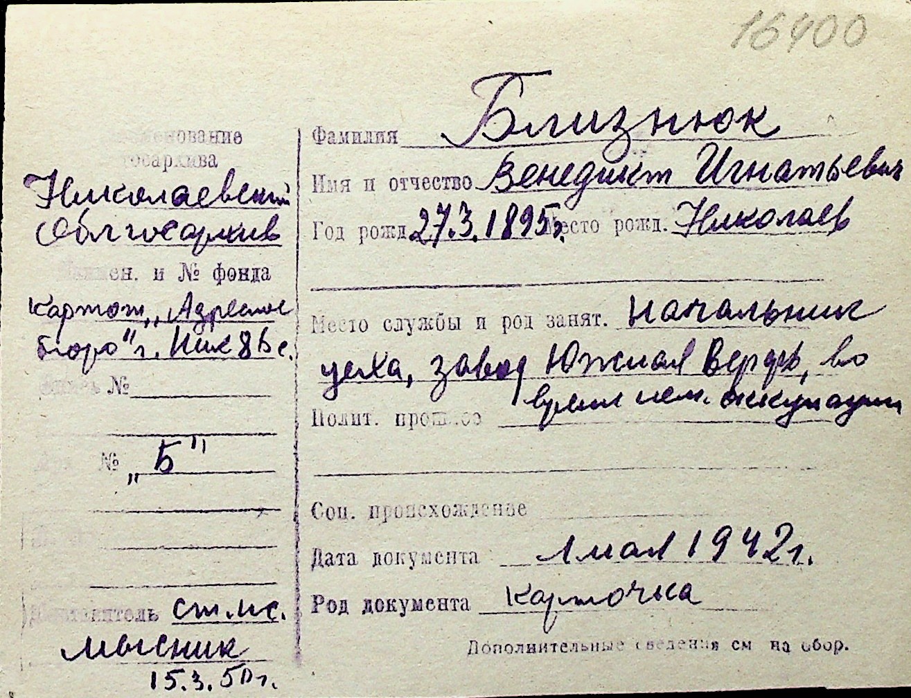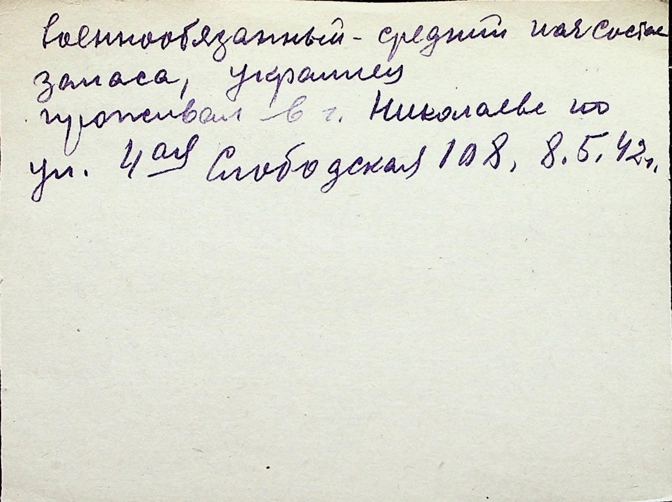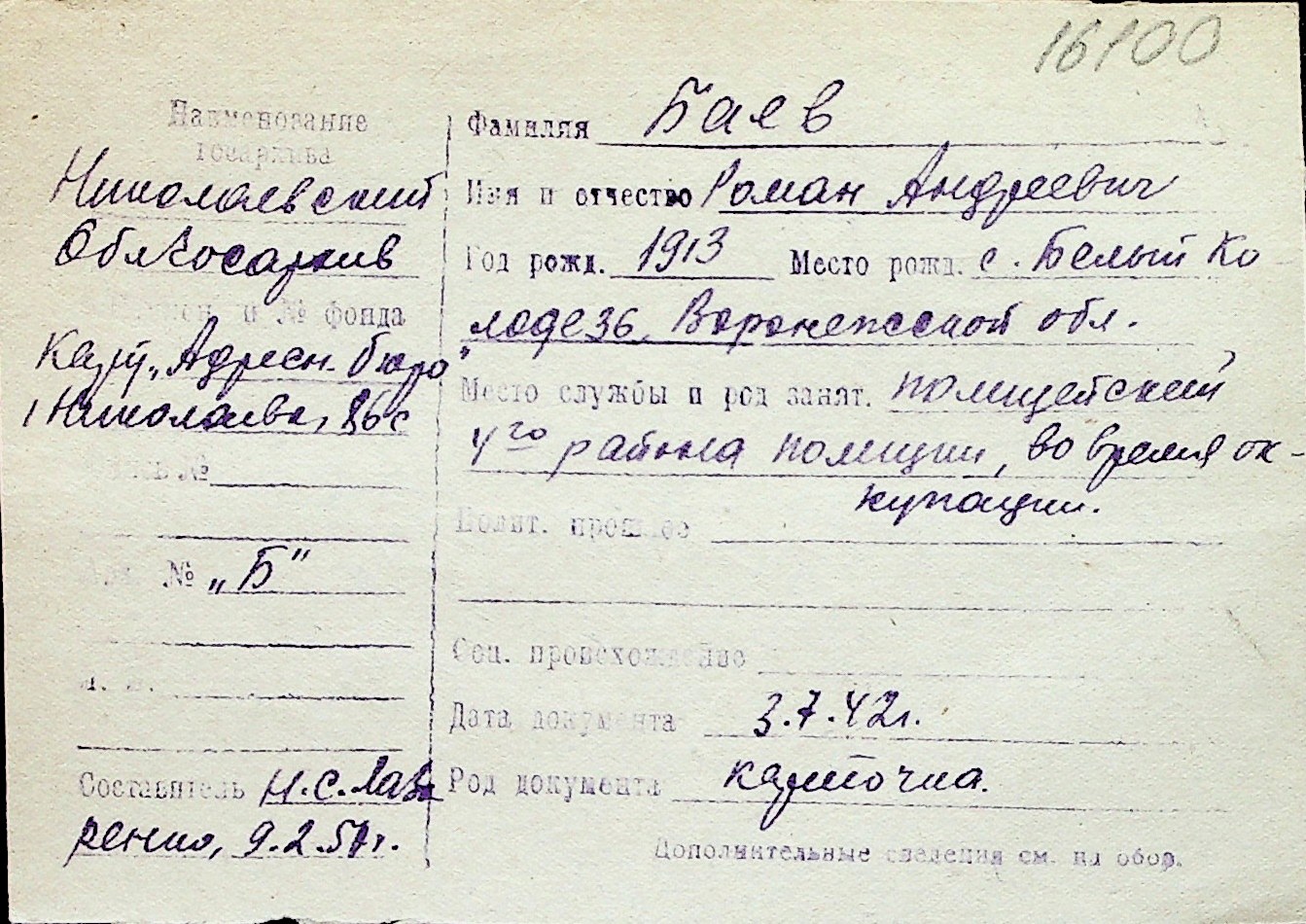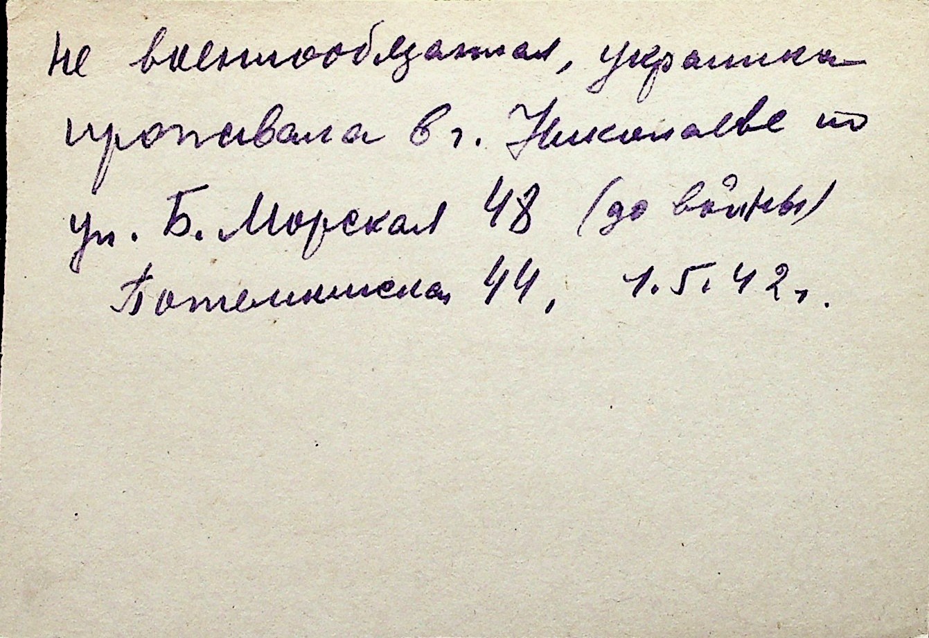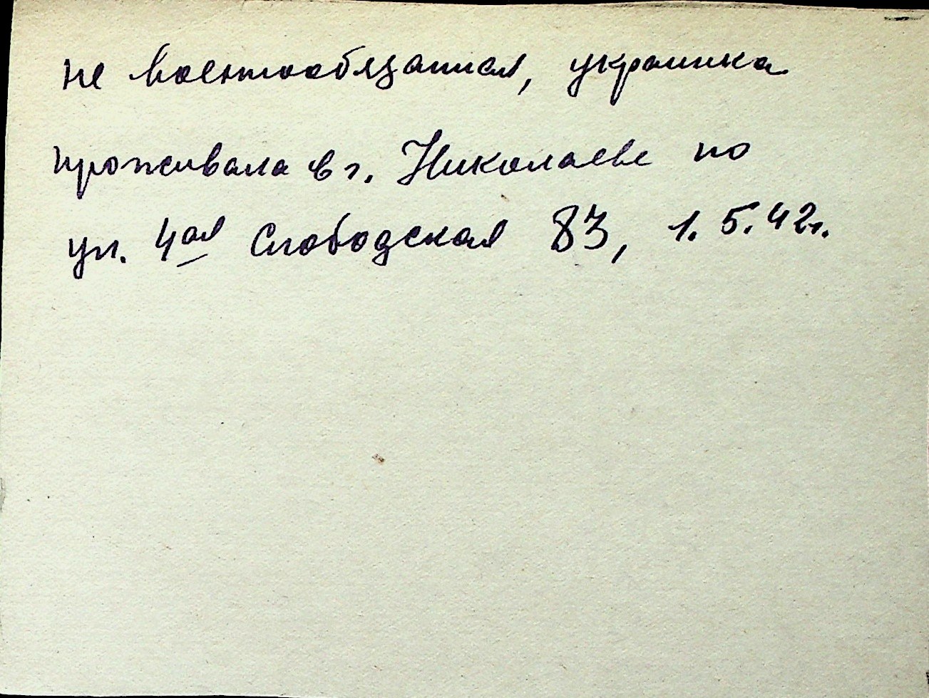 ◦ ◦ Перелік карток на осіб, які мешкали у м. Миколаїв у період окупації 1941–1944 років