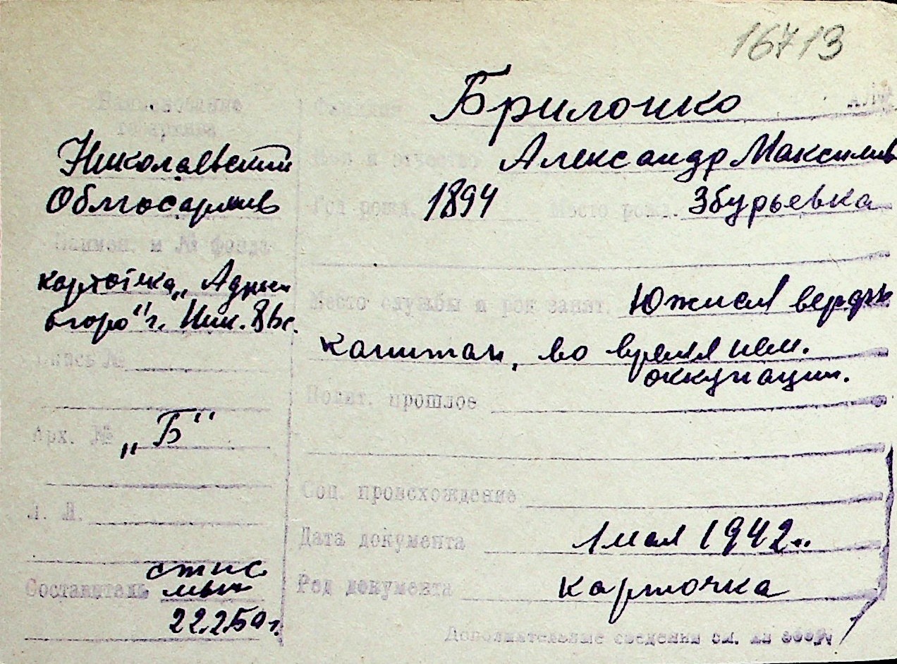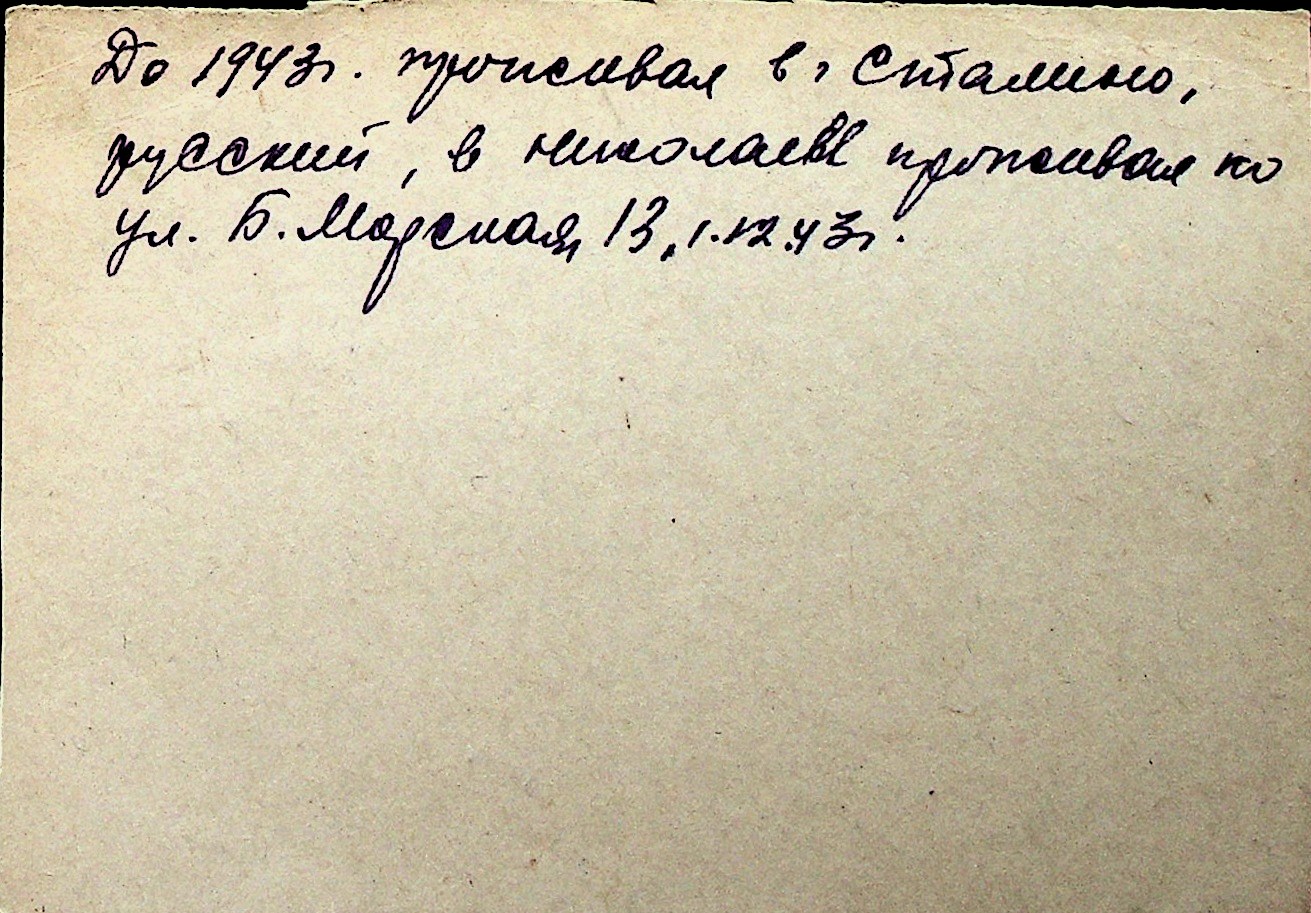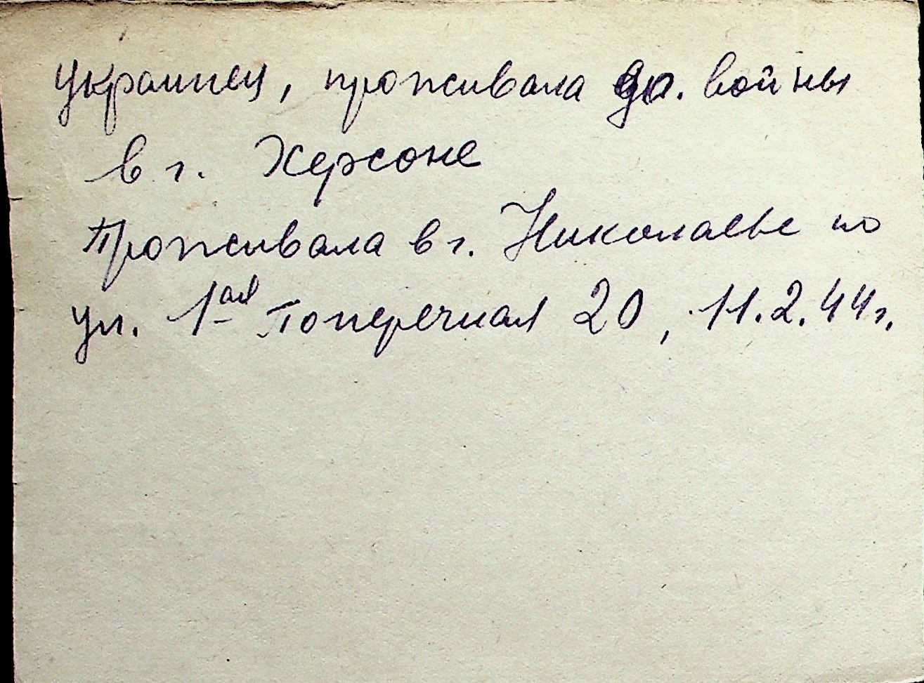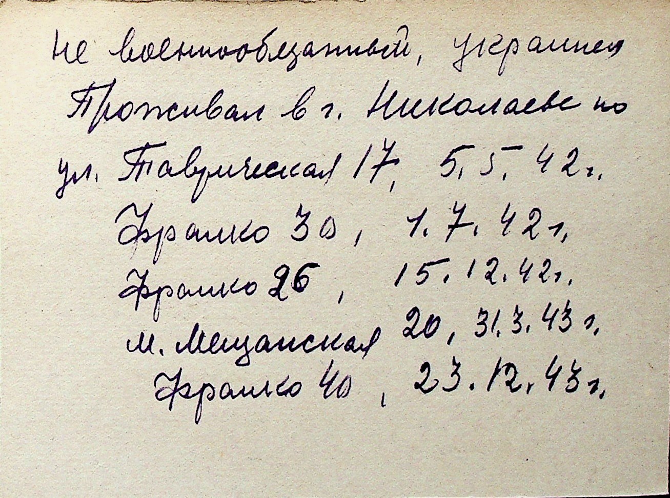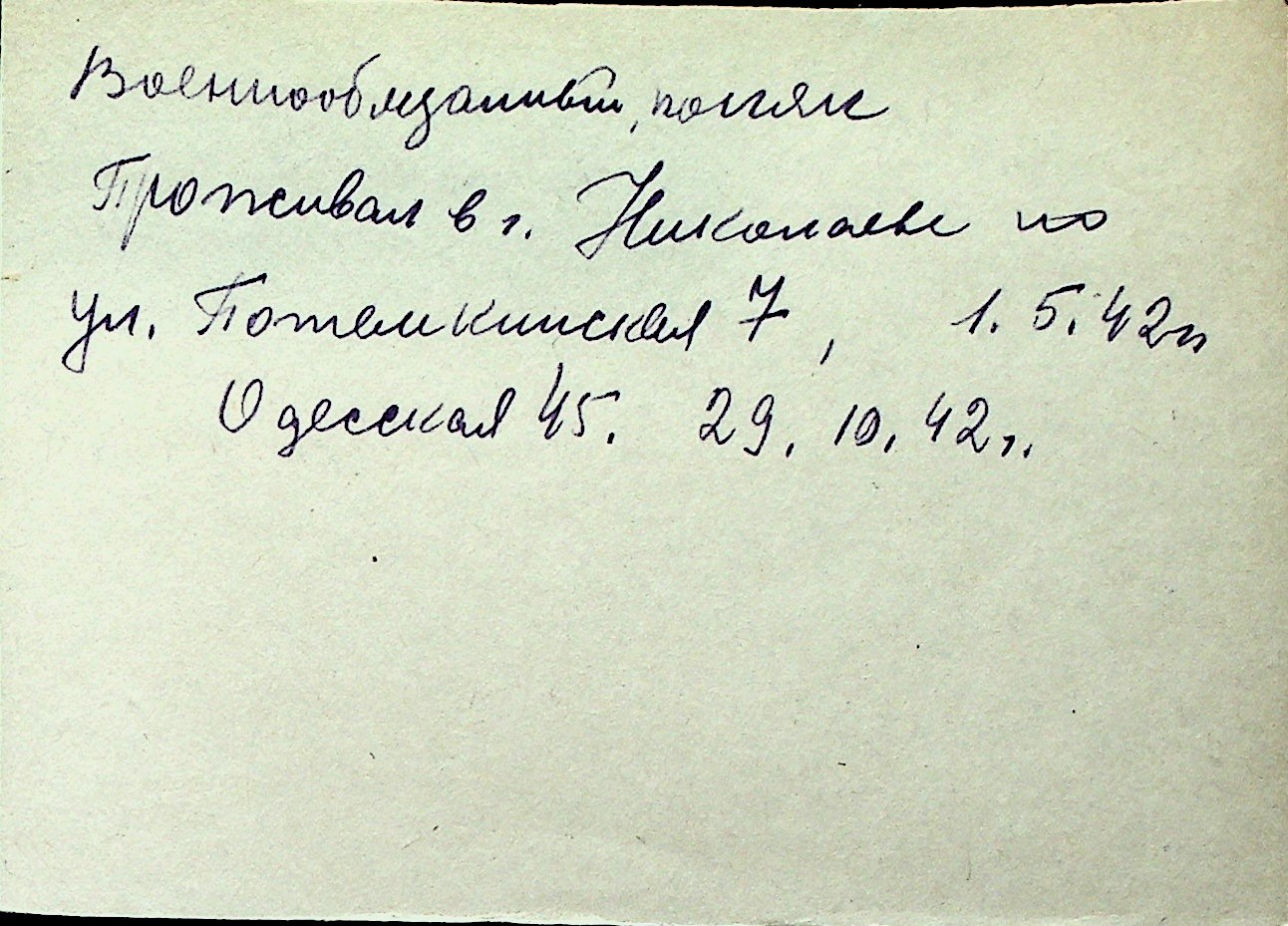 ◦ ◦ Перелік карток на осіб, які мешкали у м. Миколаїв у період окупації 1941–1944 років