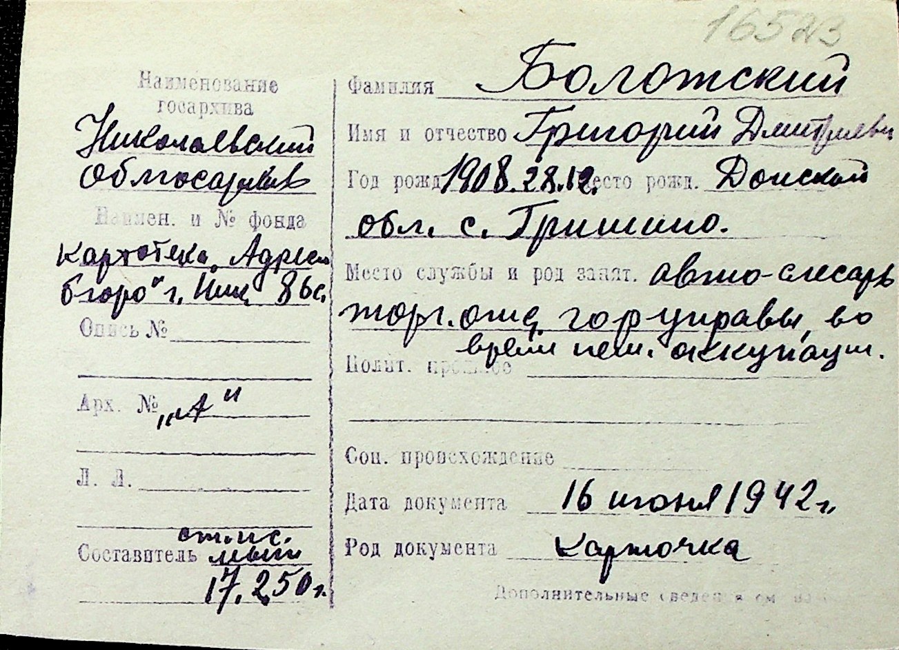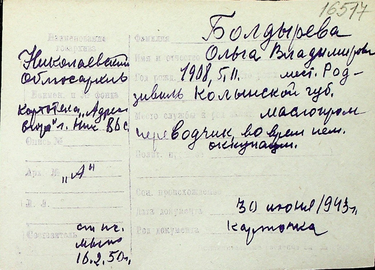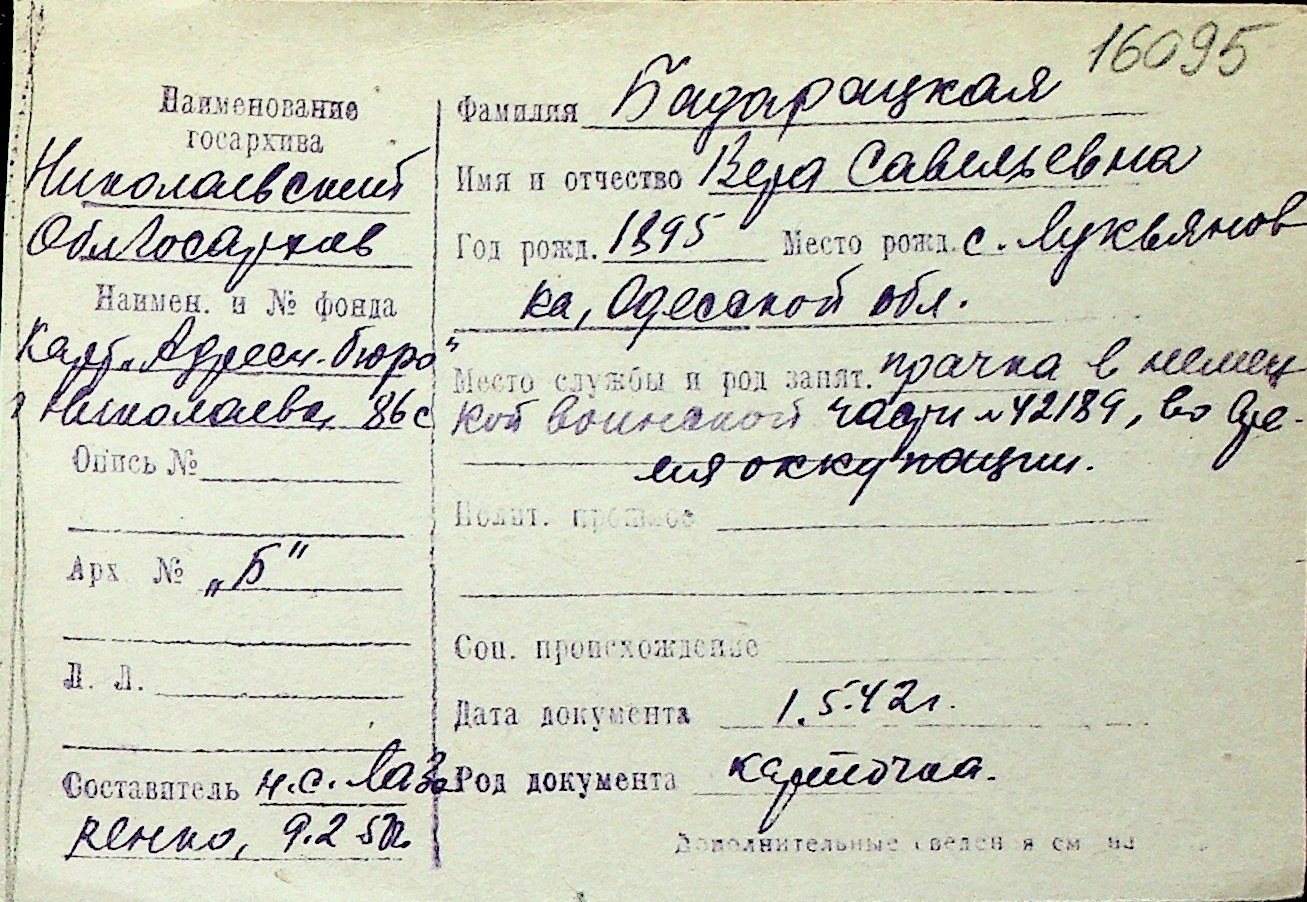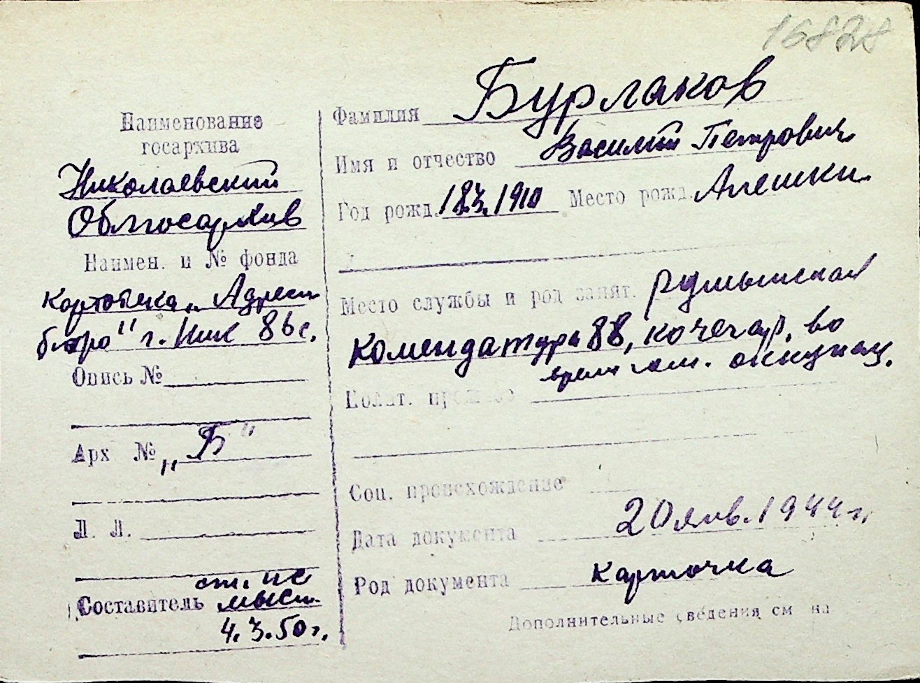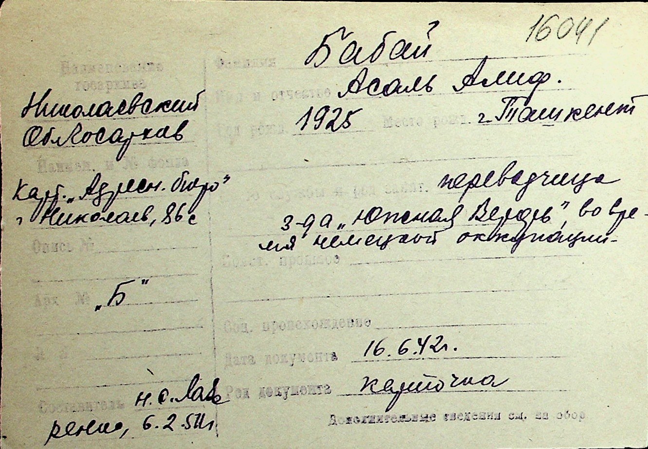 ◦ ◦ Перелік карток на осіб, які мешкали у м. Миколаїв у період окупації 1941–1944 років