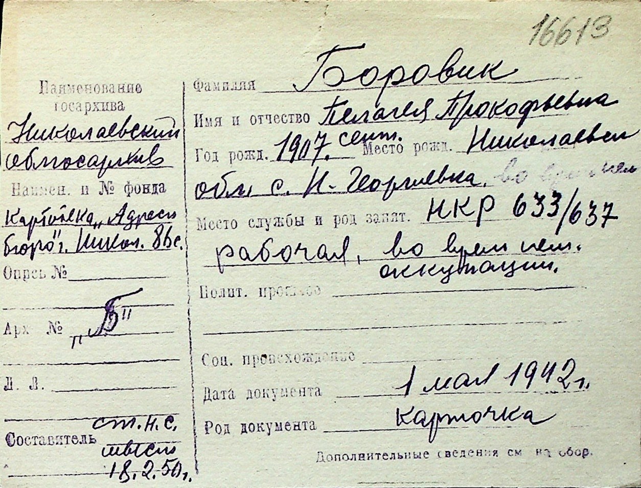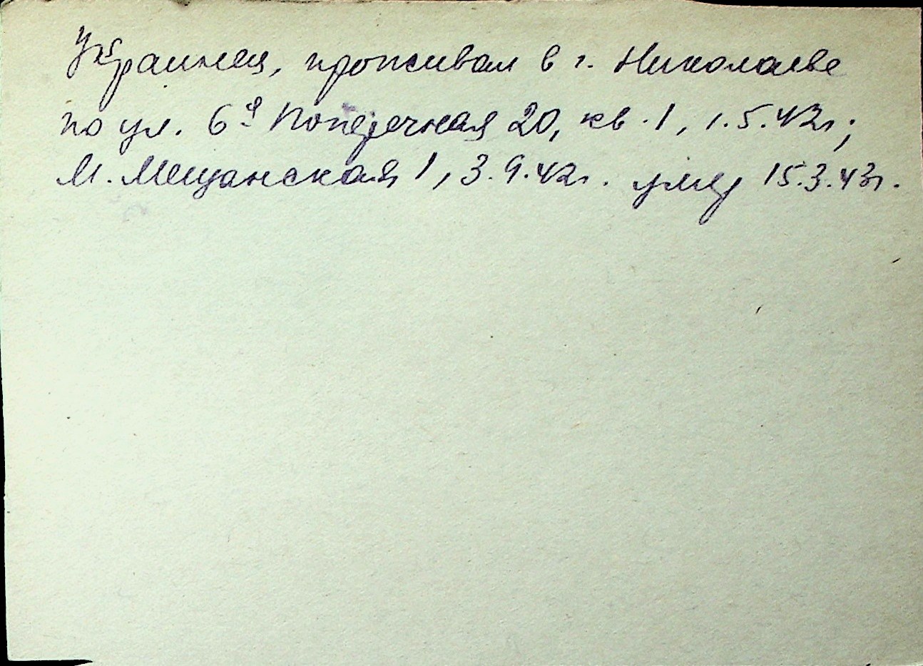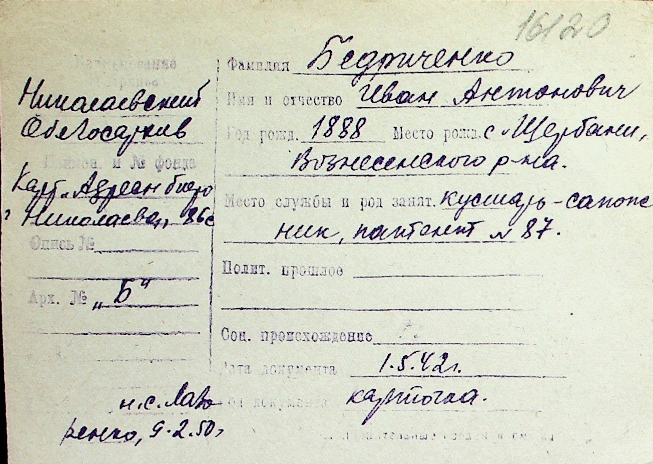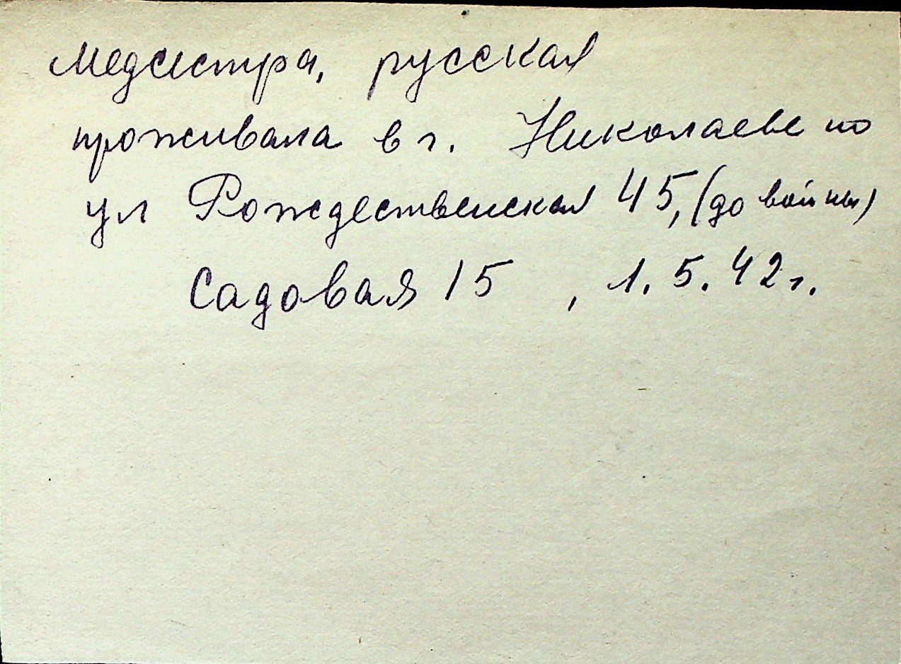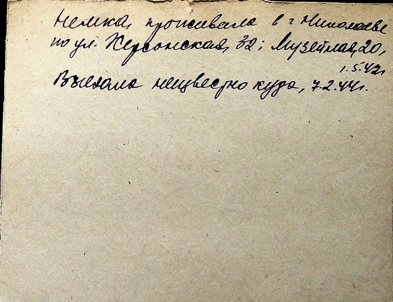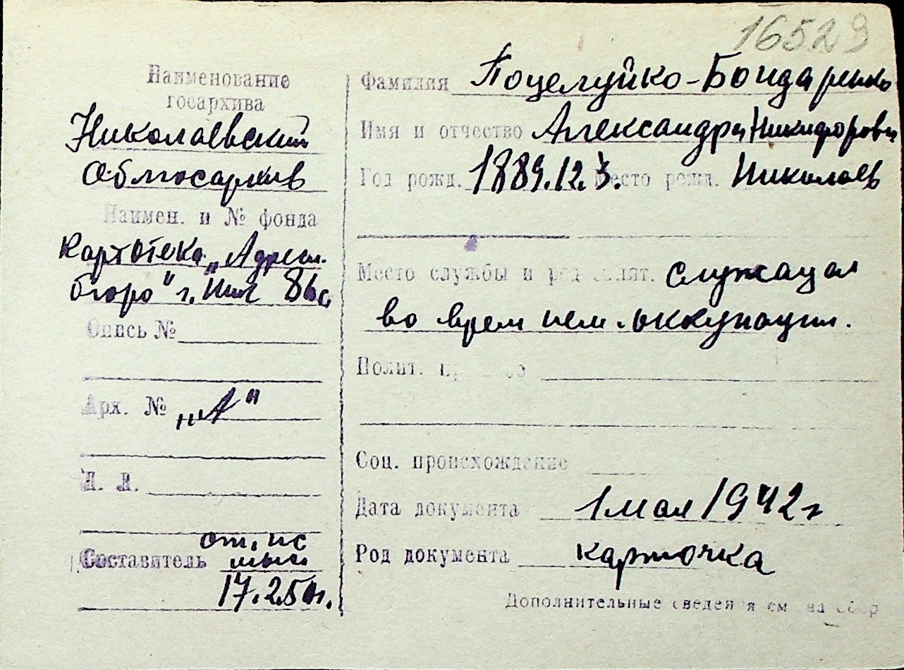 ◦ ◦ Перелік карток на осіб, які мешкали у м. Миколаїв у період окупації 1941–1944 років