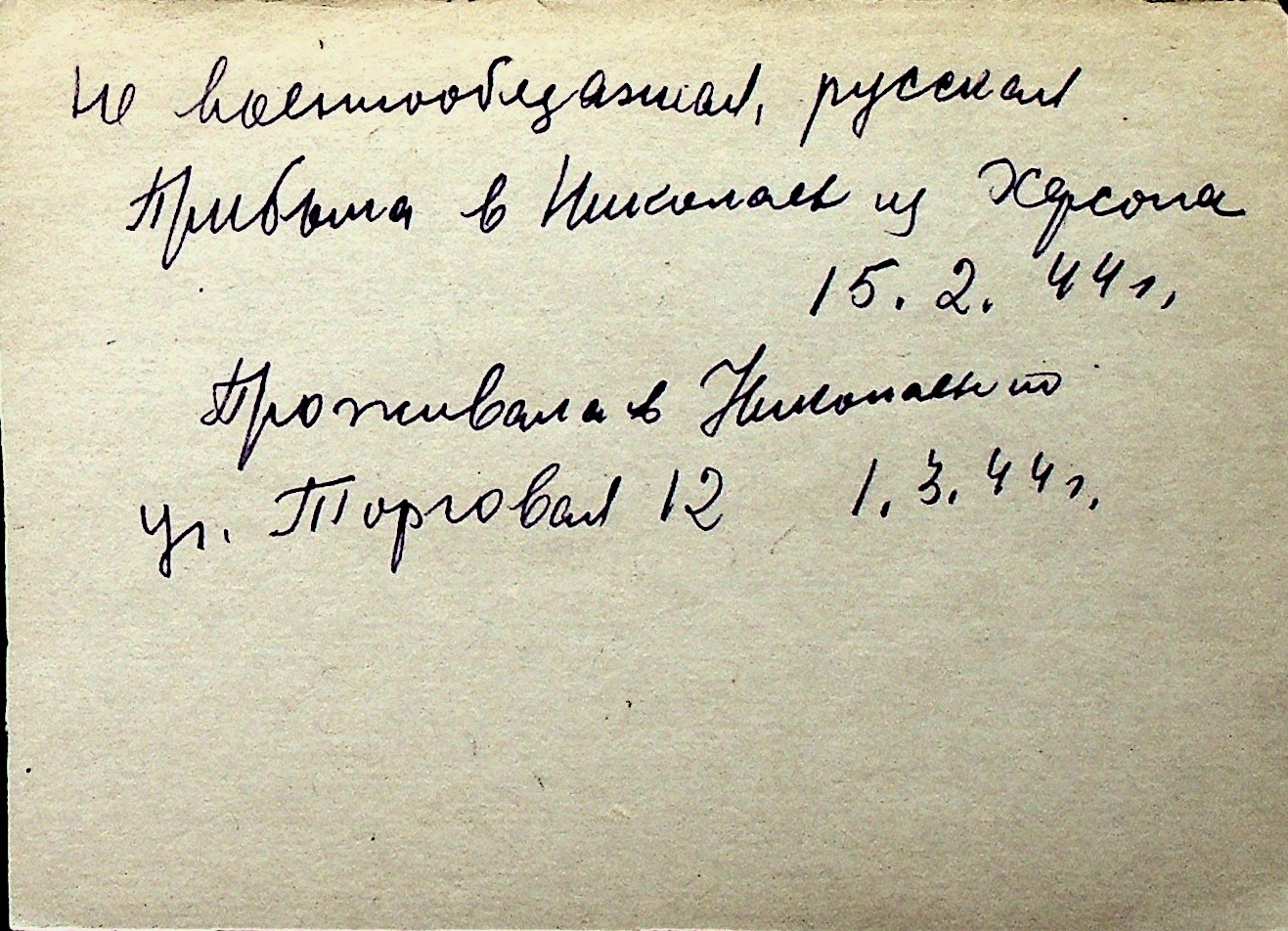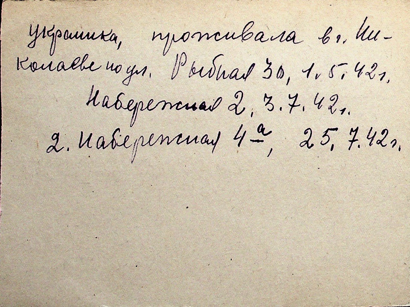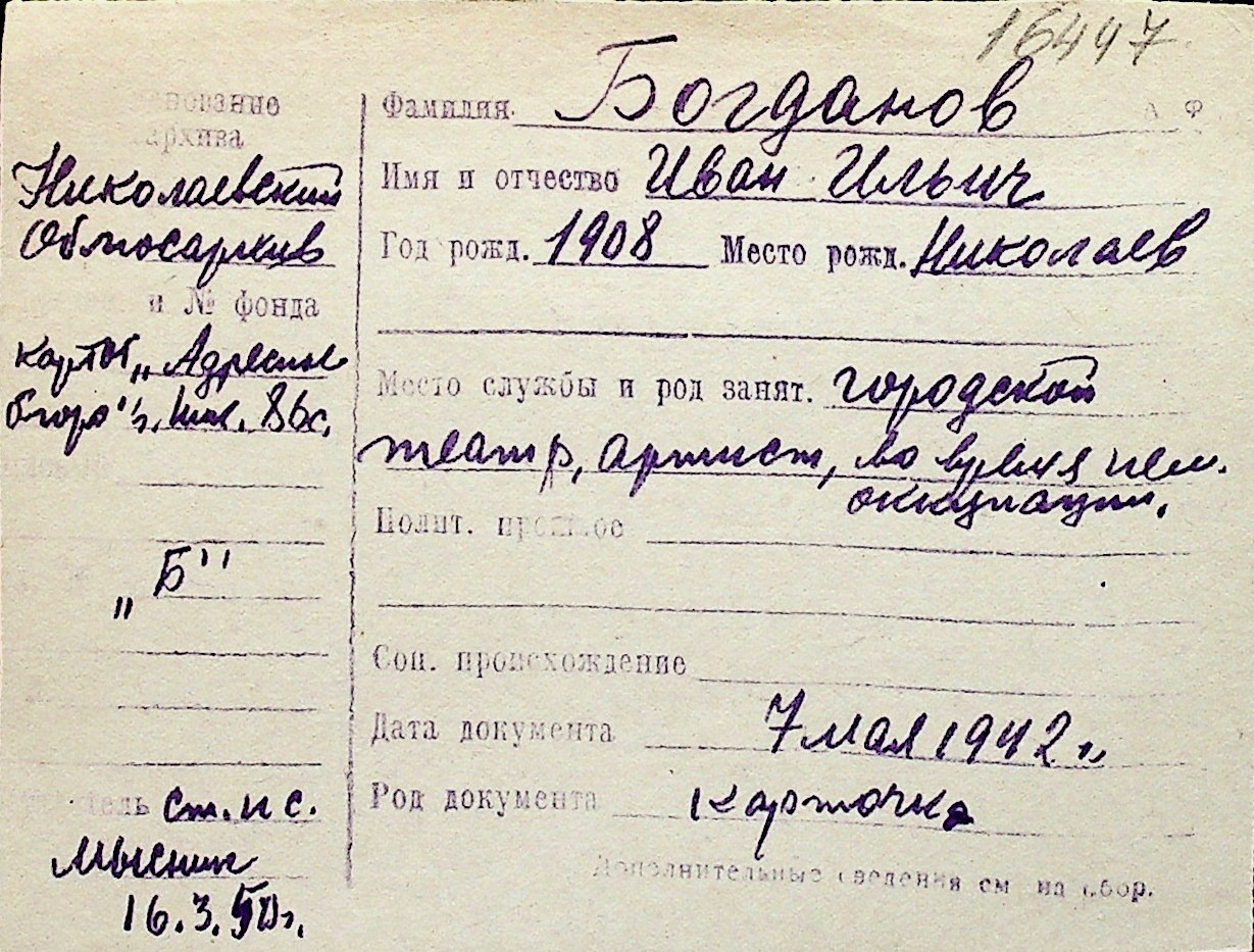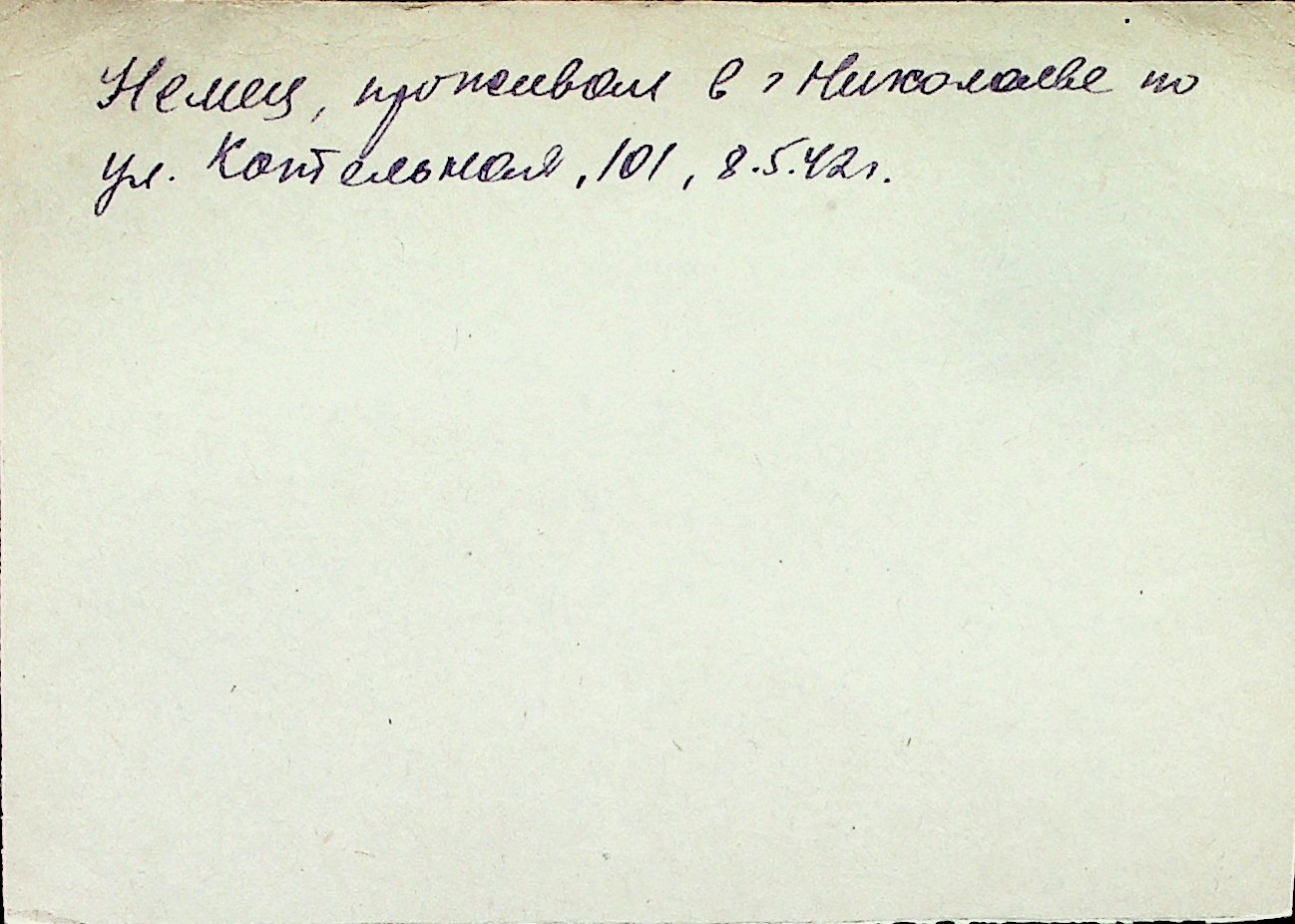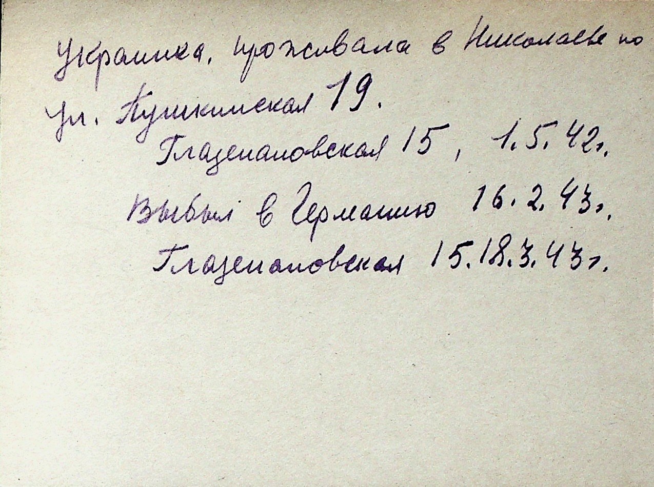 ◦ ◦ Перелік карток на осіб, які мешкали у м. Миколаїв у період окупації 1941–1944 років