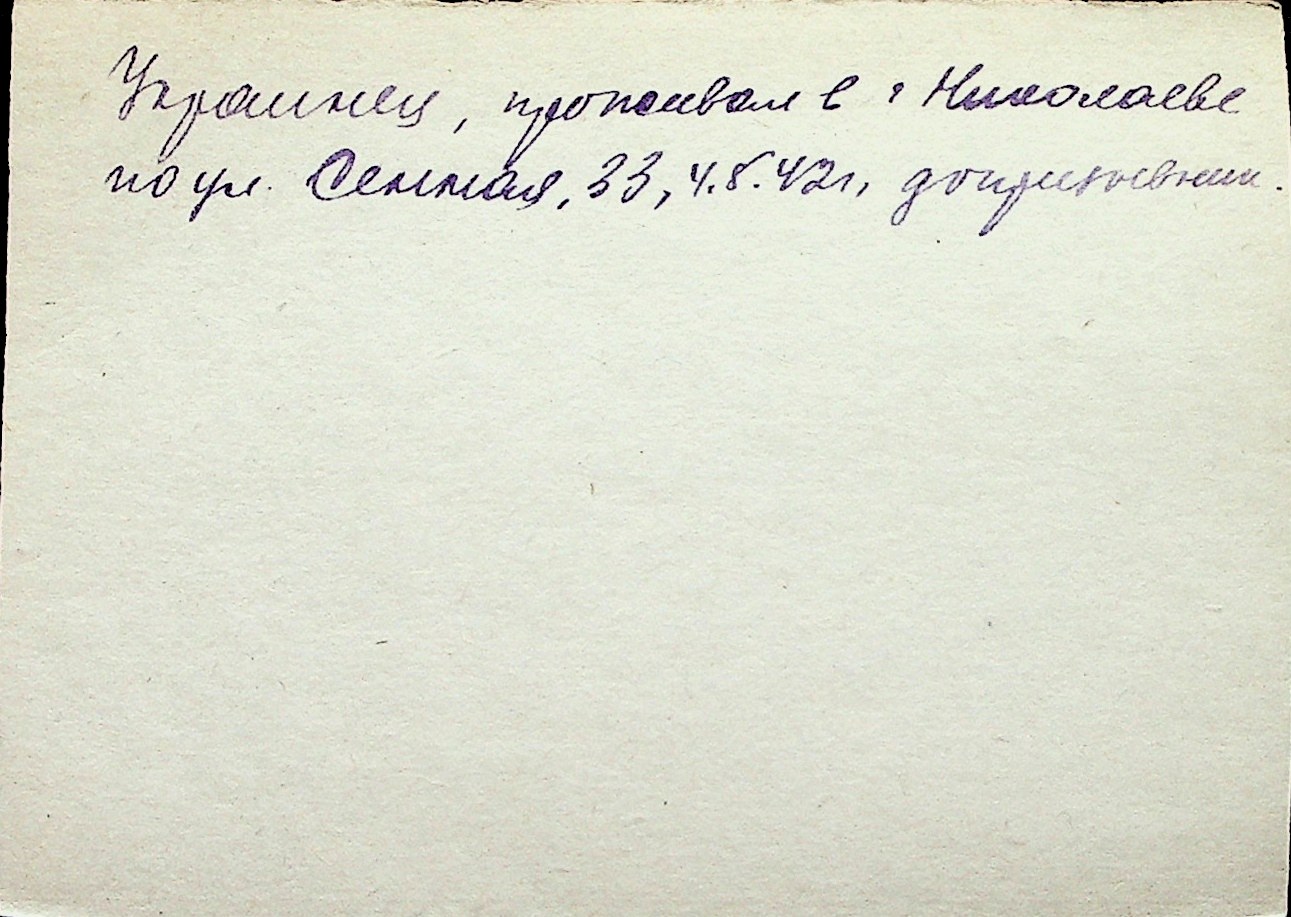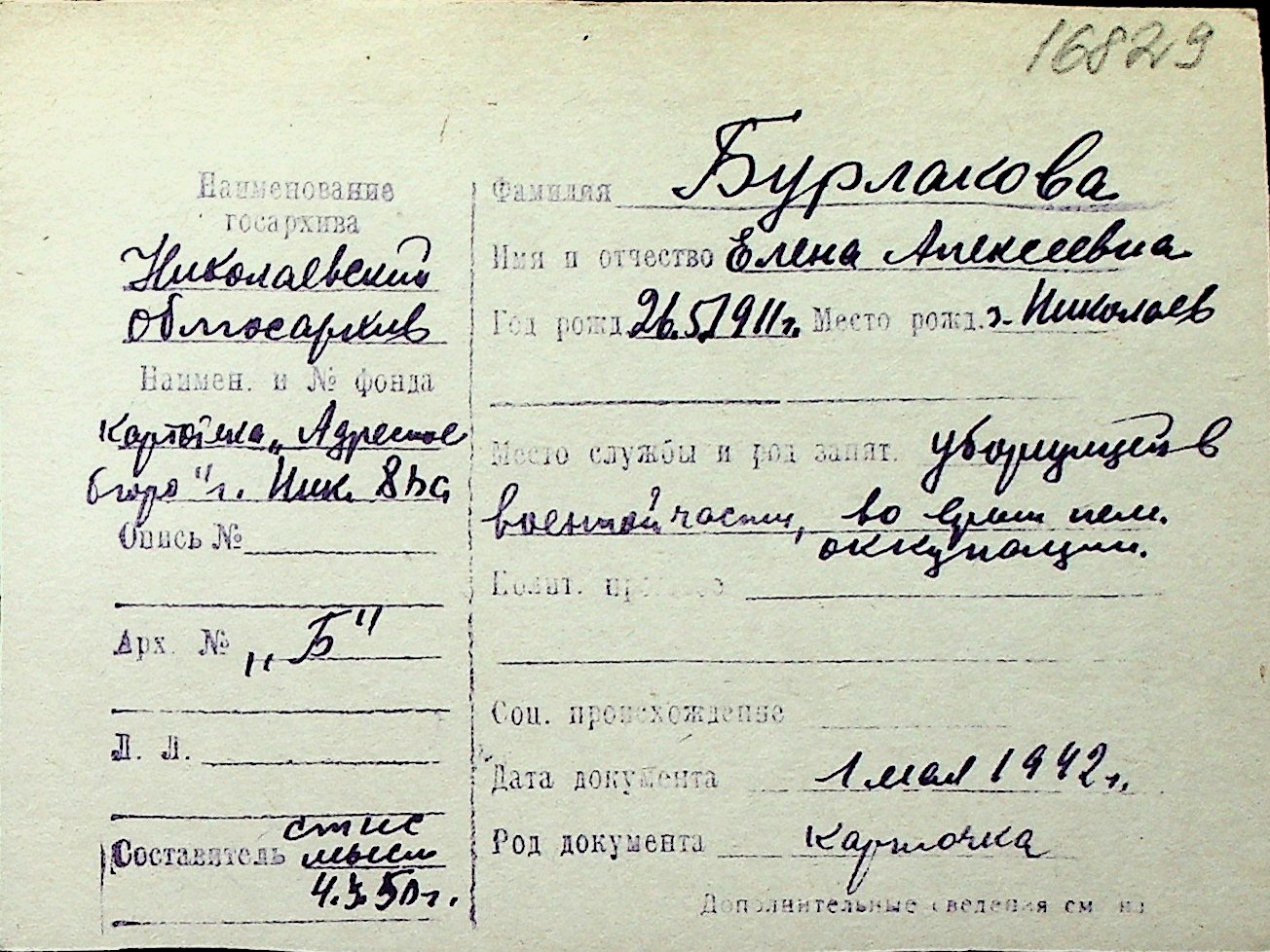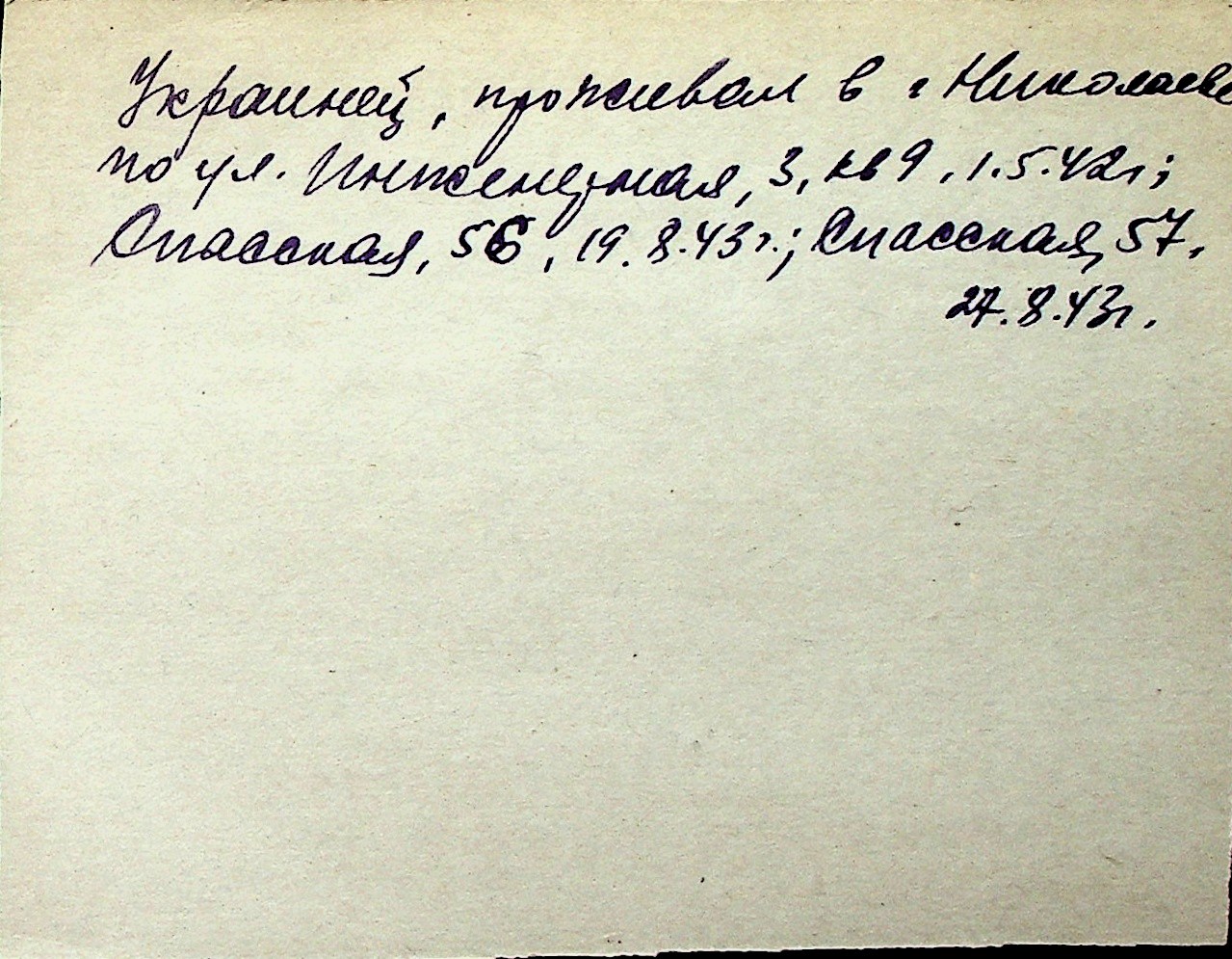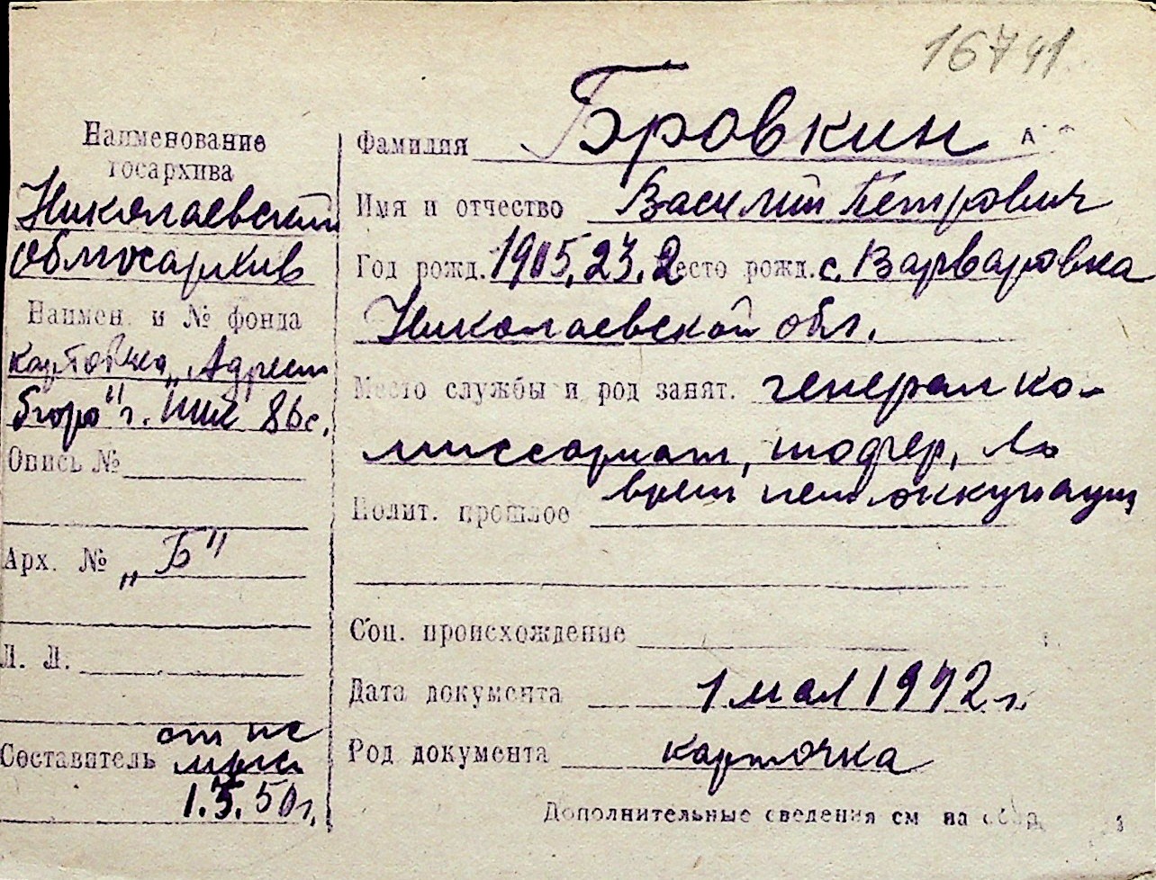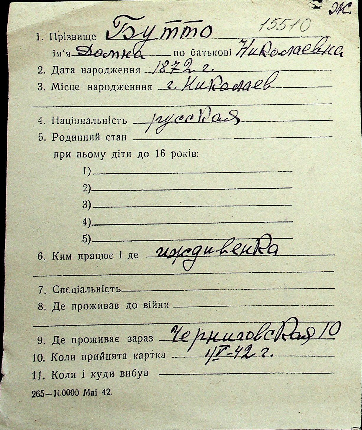 ◦ ◦ Перелік карток на осіб, які мешкали у м. Миколаїв у період окупації 1941–1944 років