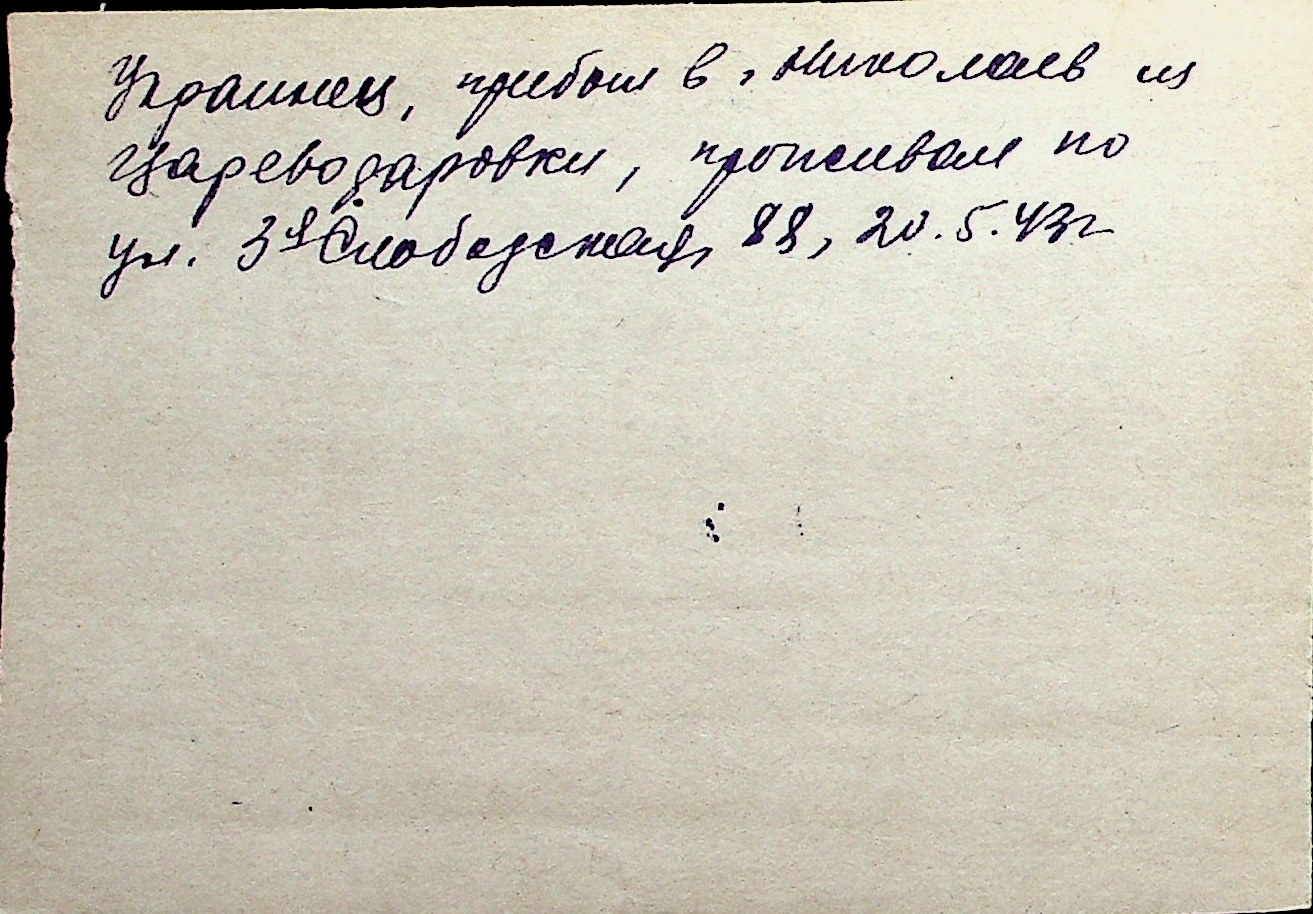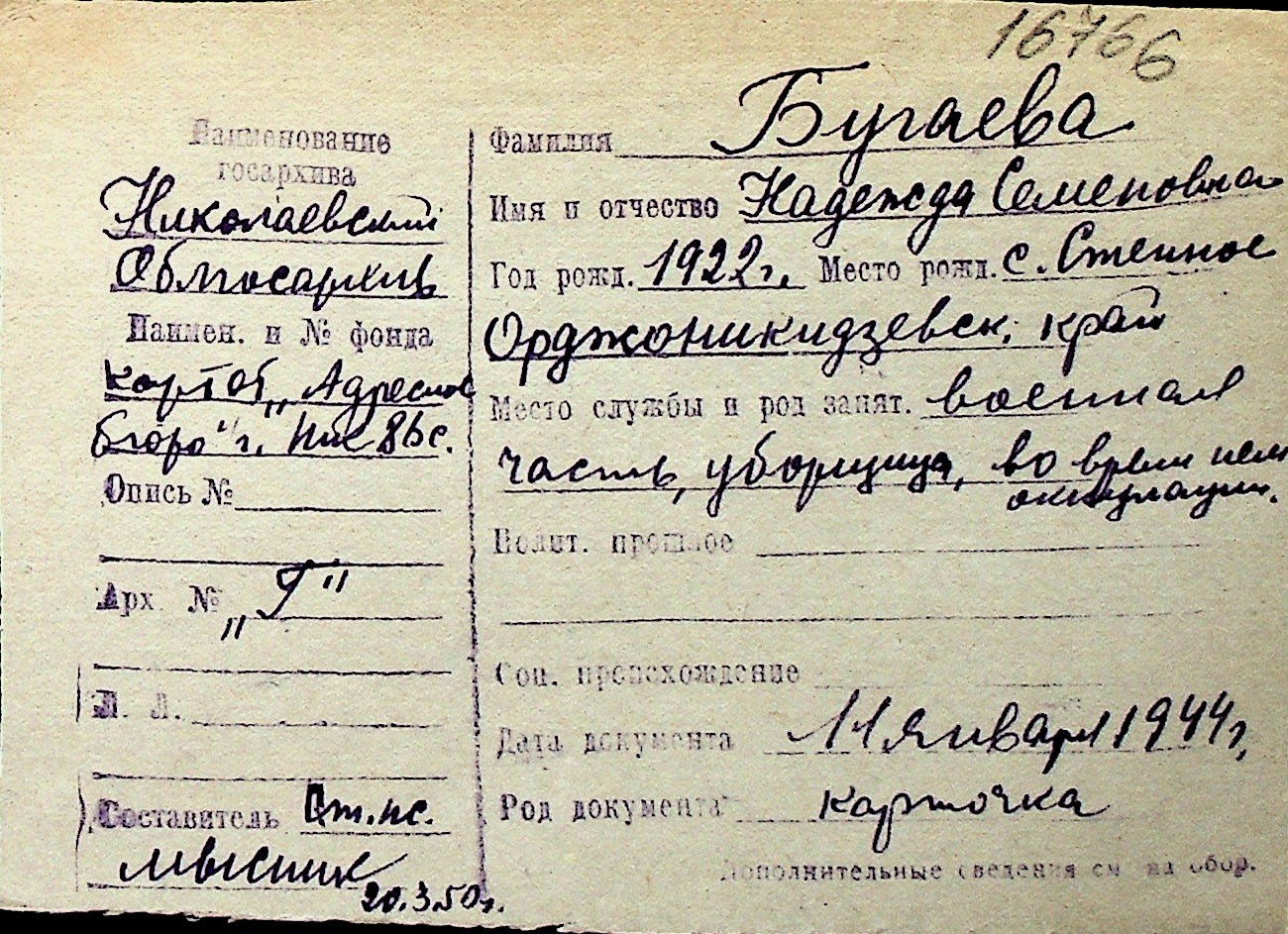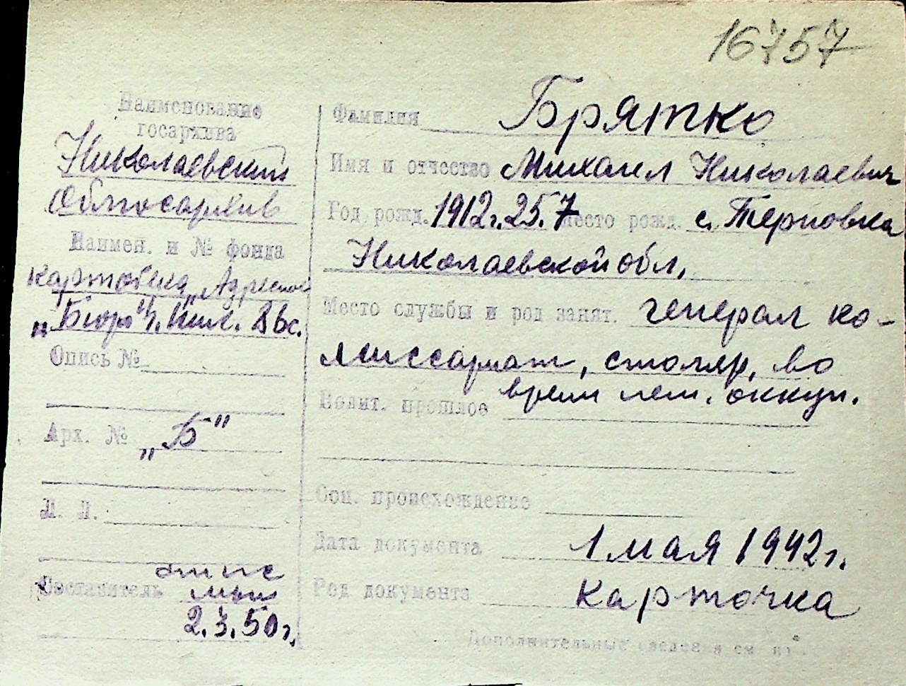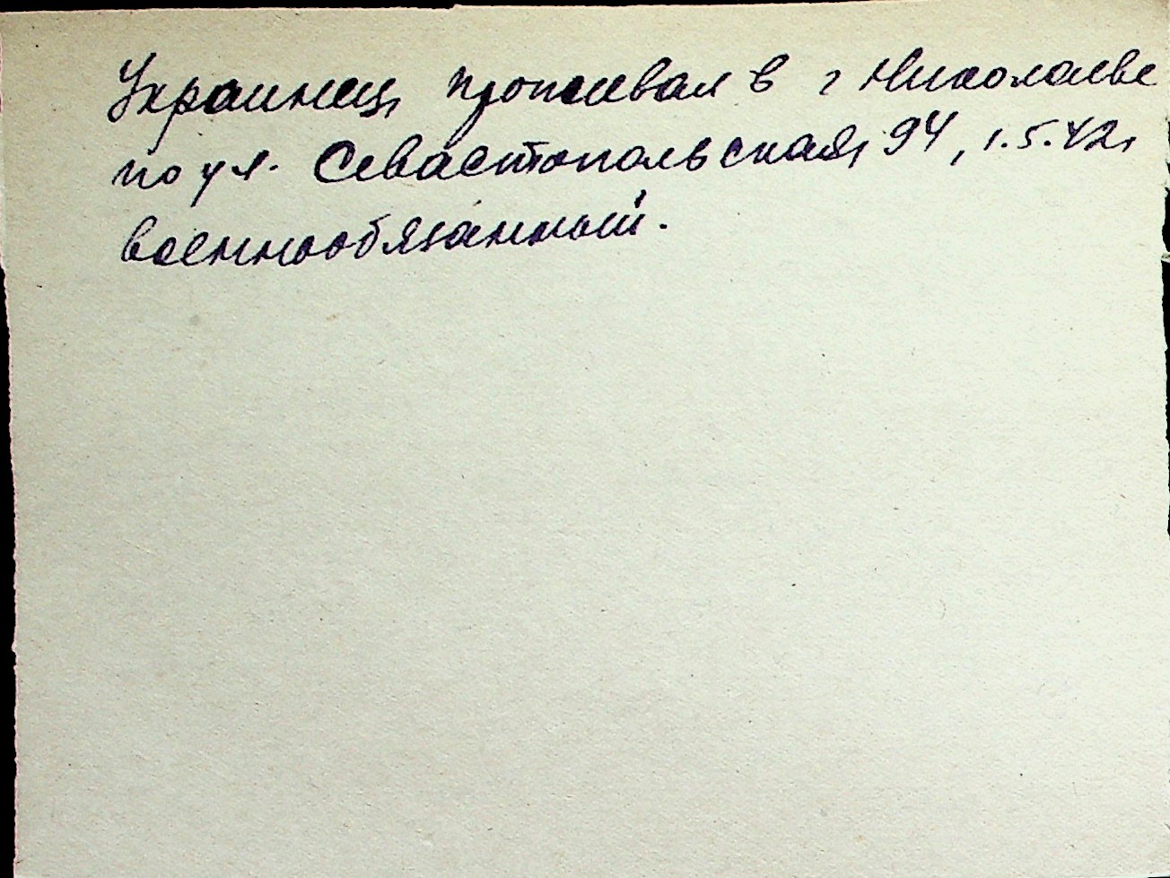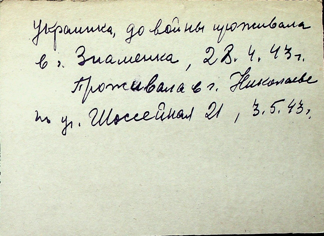 ◦ ◦ Перелік карток на осіб, які мешкали у м. Миколаїв у період окупації 1941–1944 років