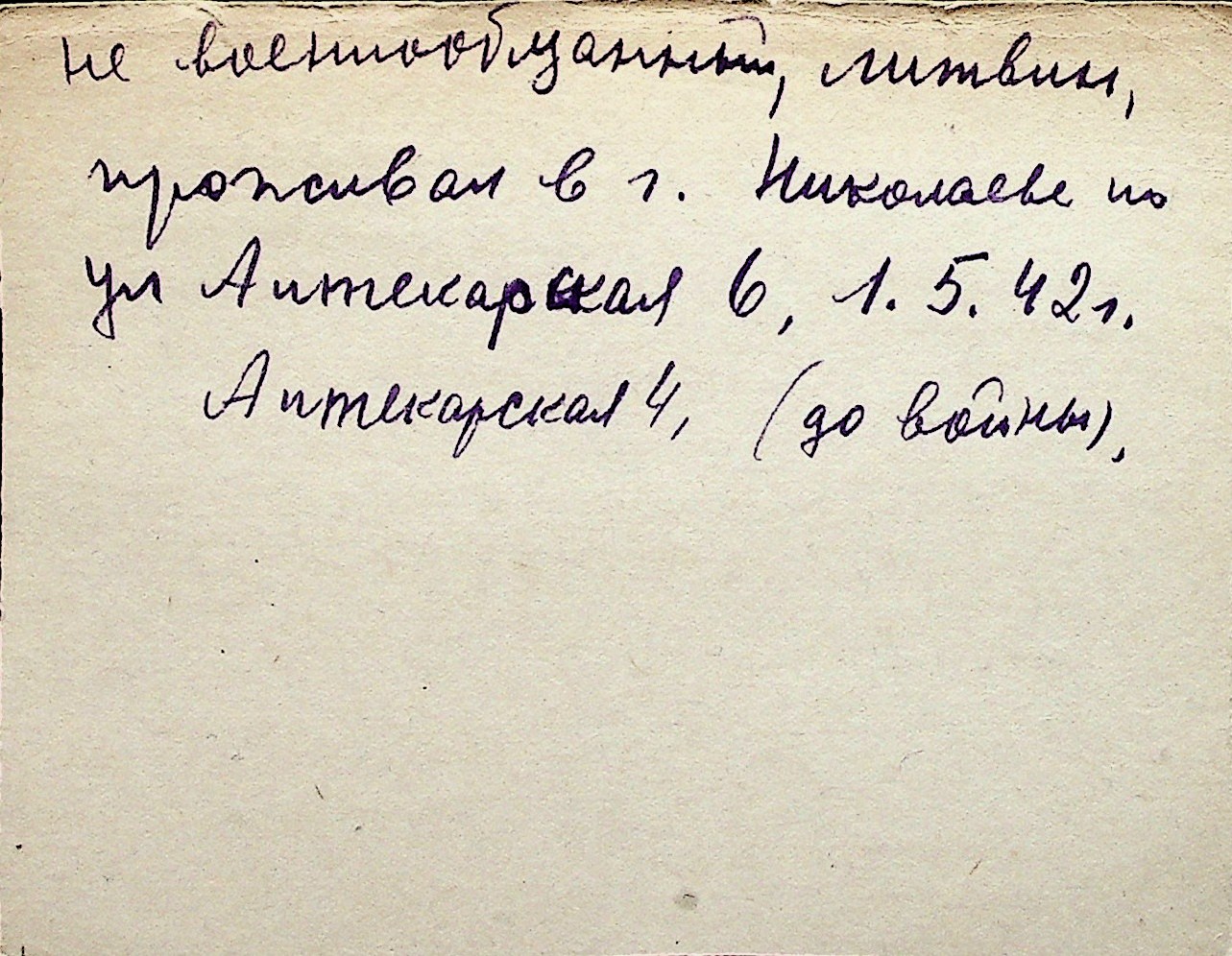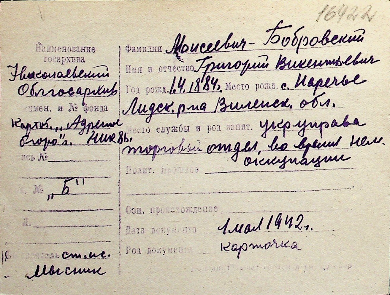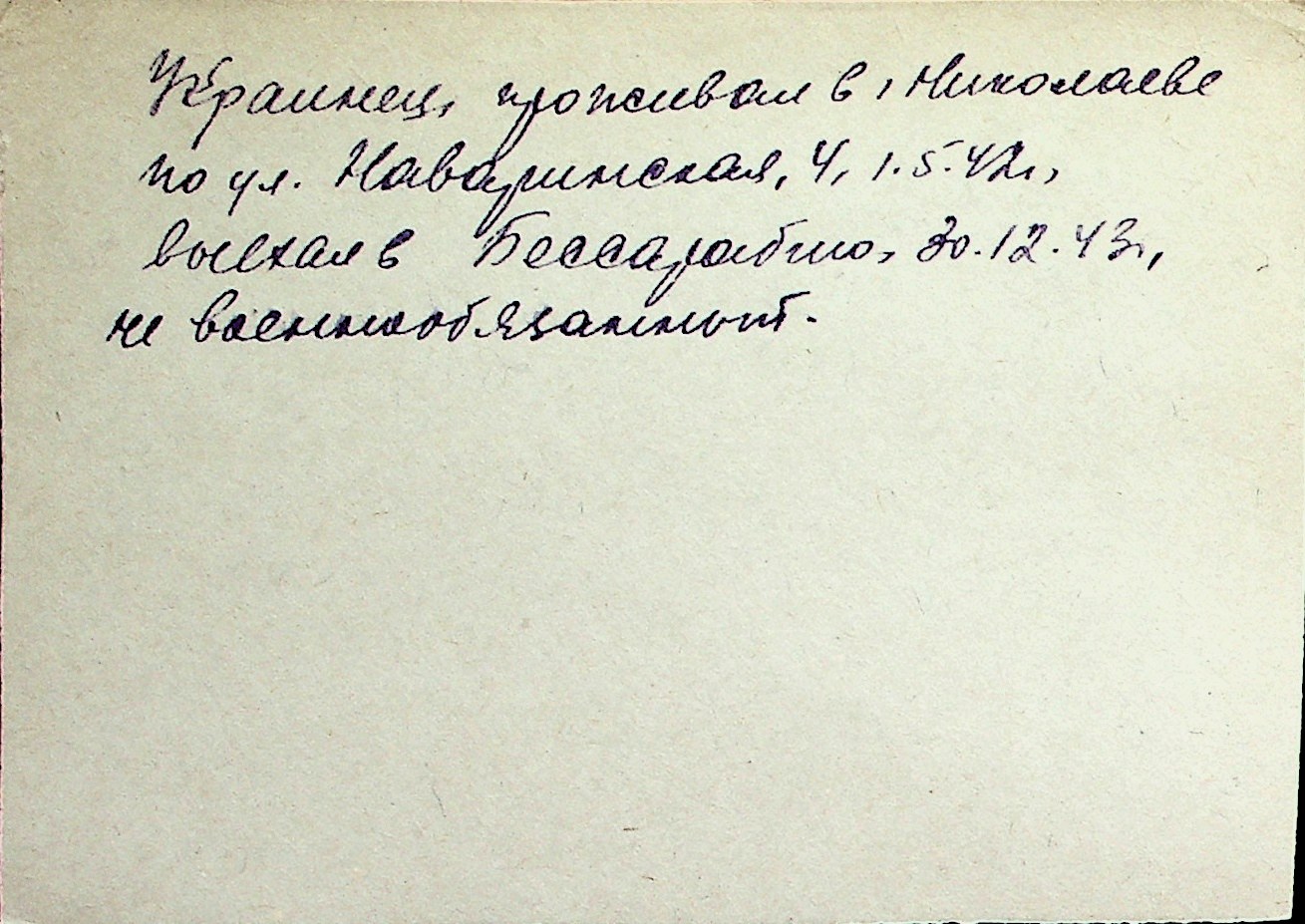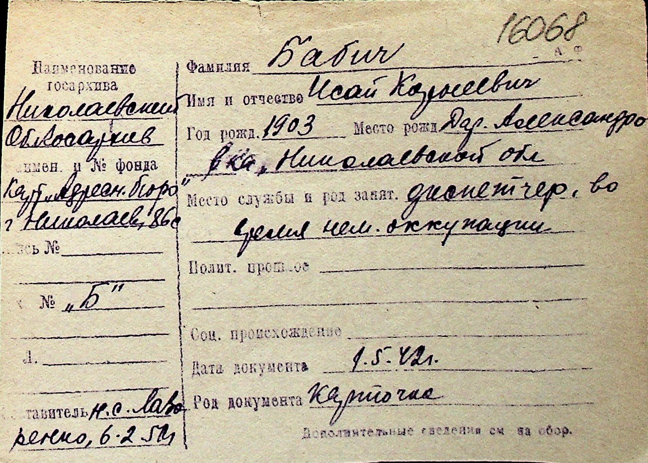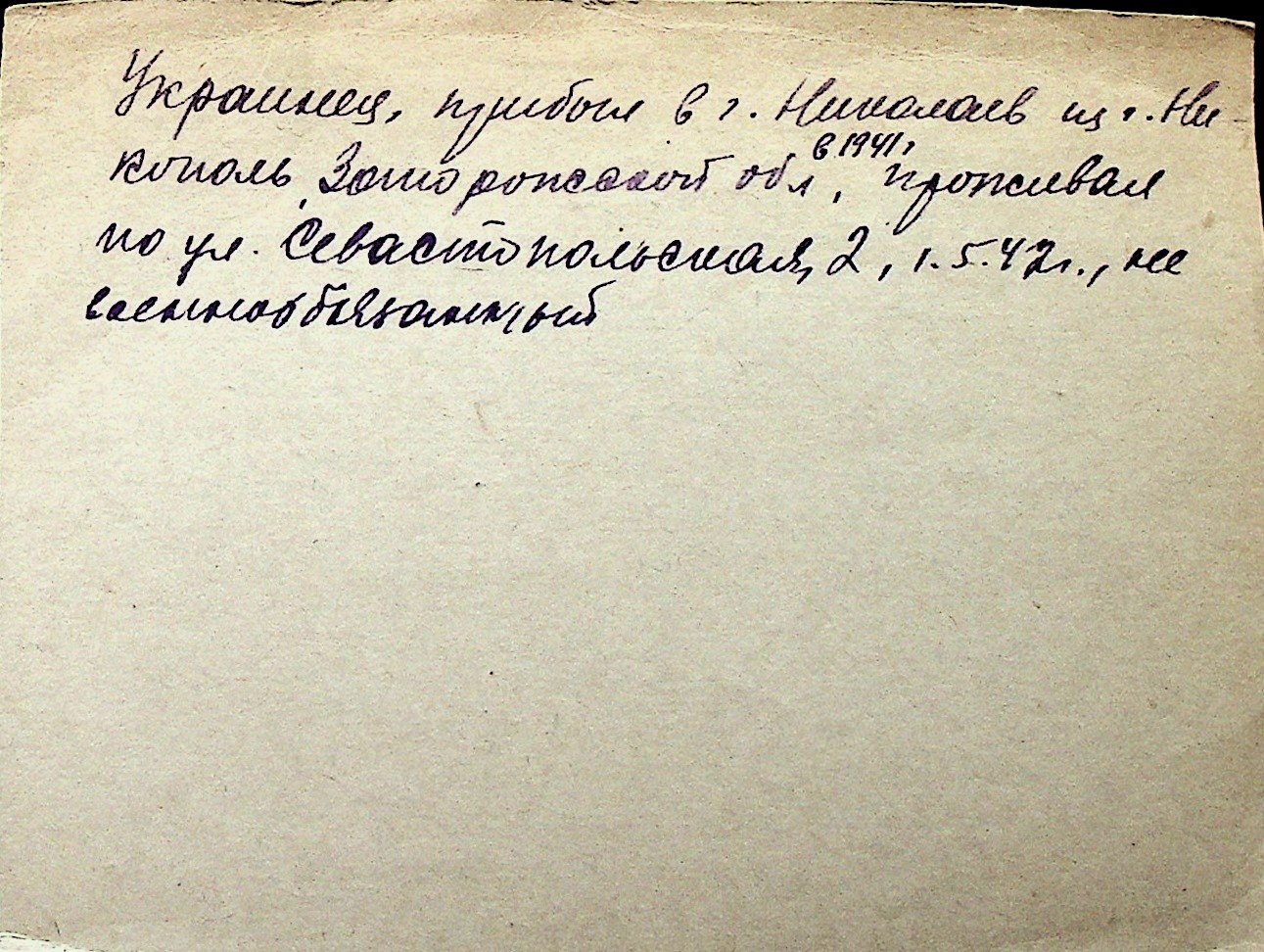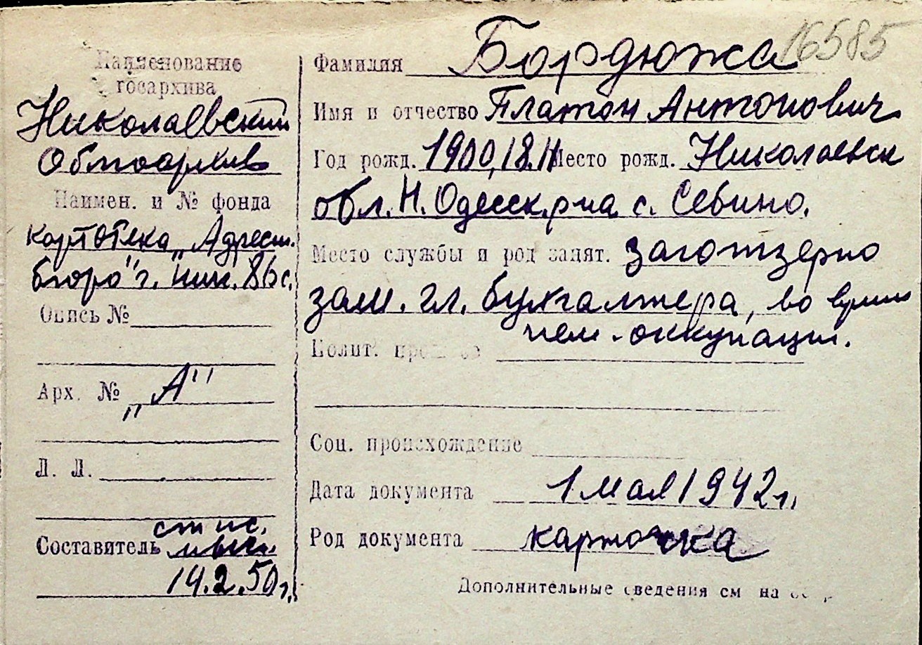◦ ◦ Перелік карток на осіб, які мешкали у м. Миколаїв у період окупації 1941–1944 років