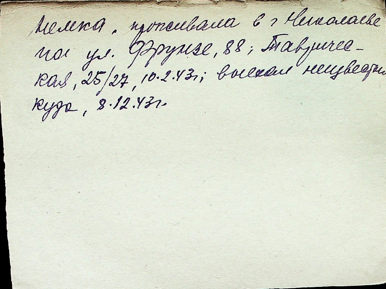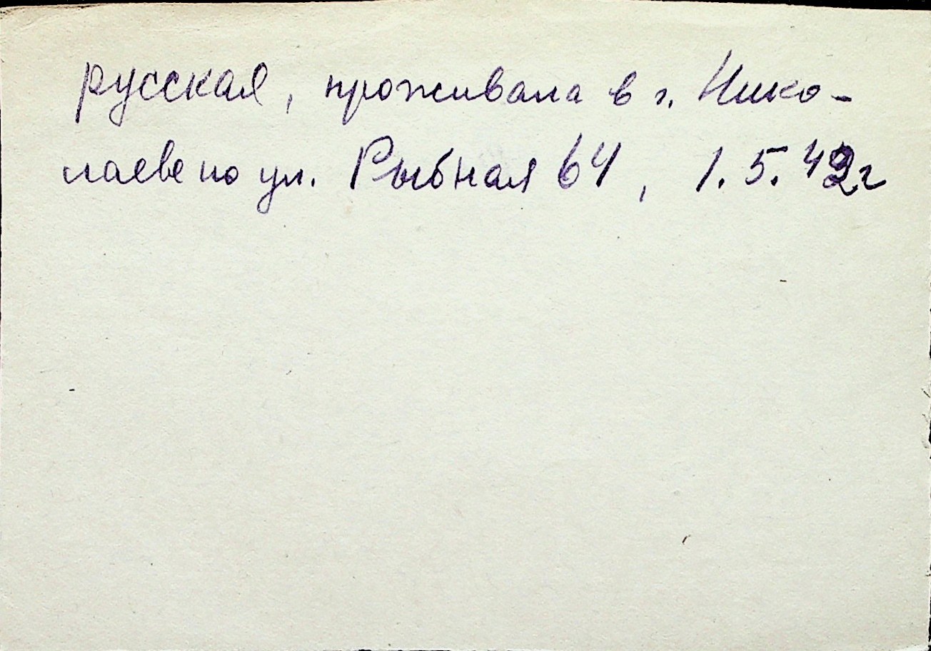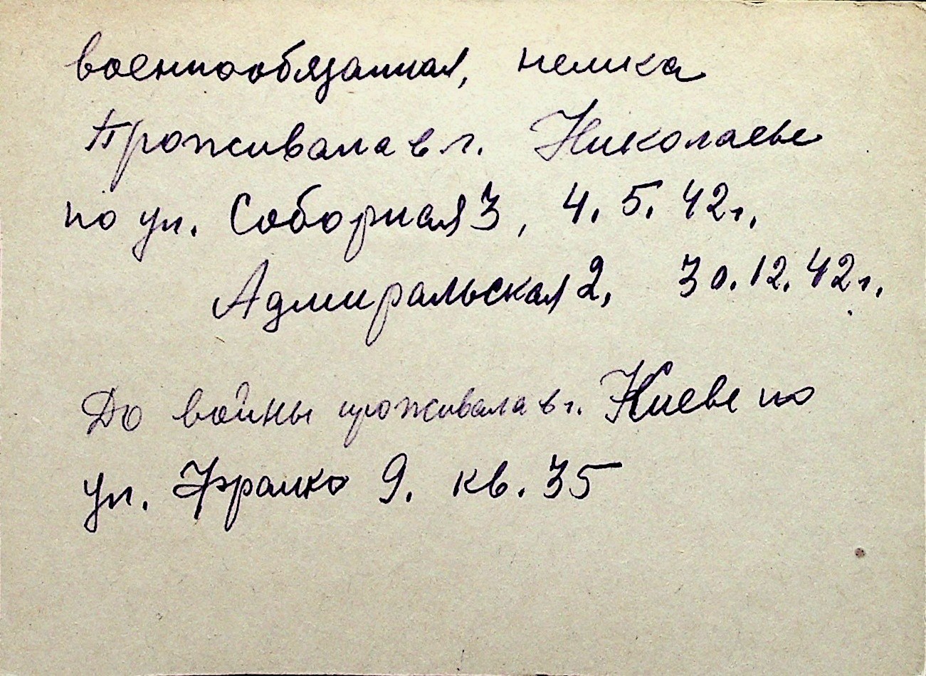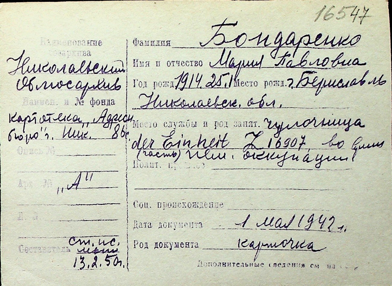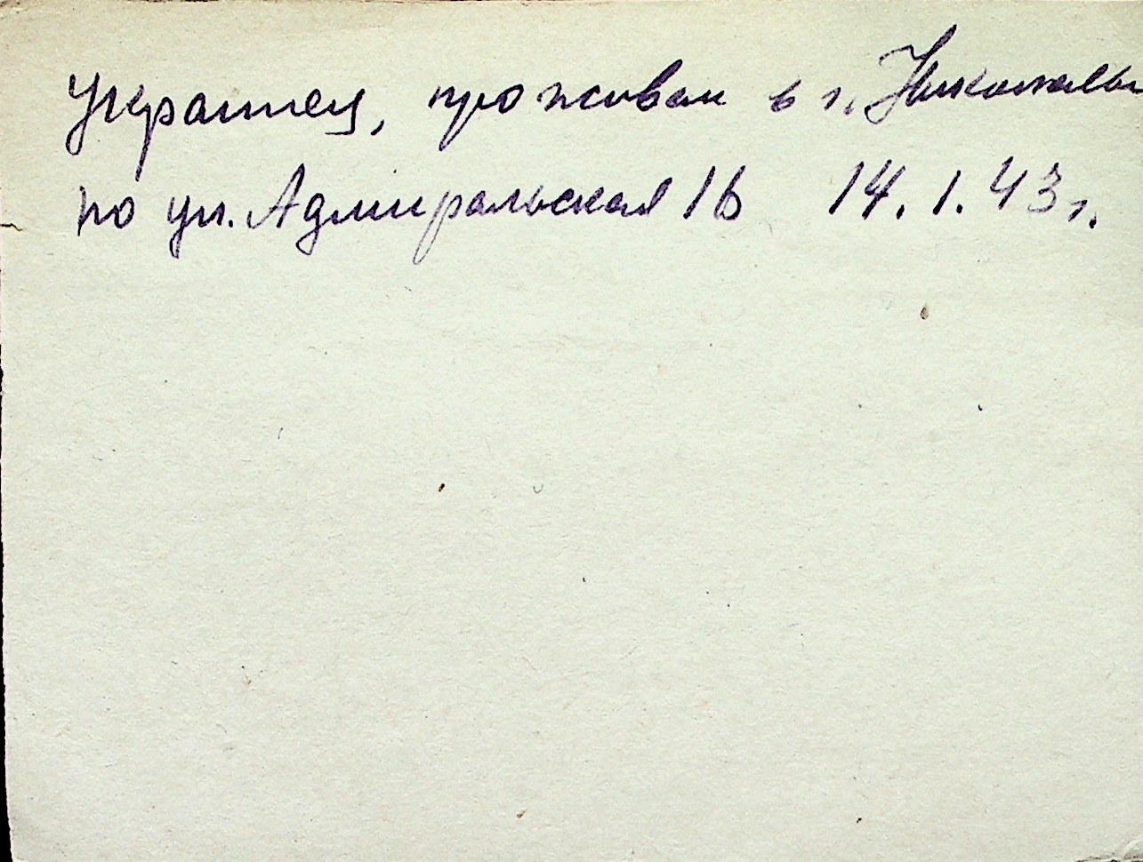◦ ◦ Перелік карток на осіб, які мешкали у м. Миколаїв у період окупації 1941–1944 років