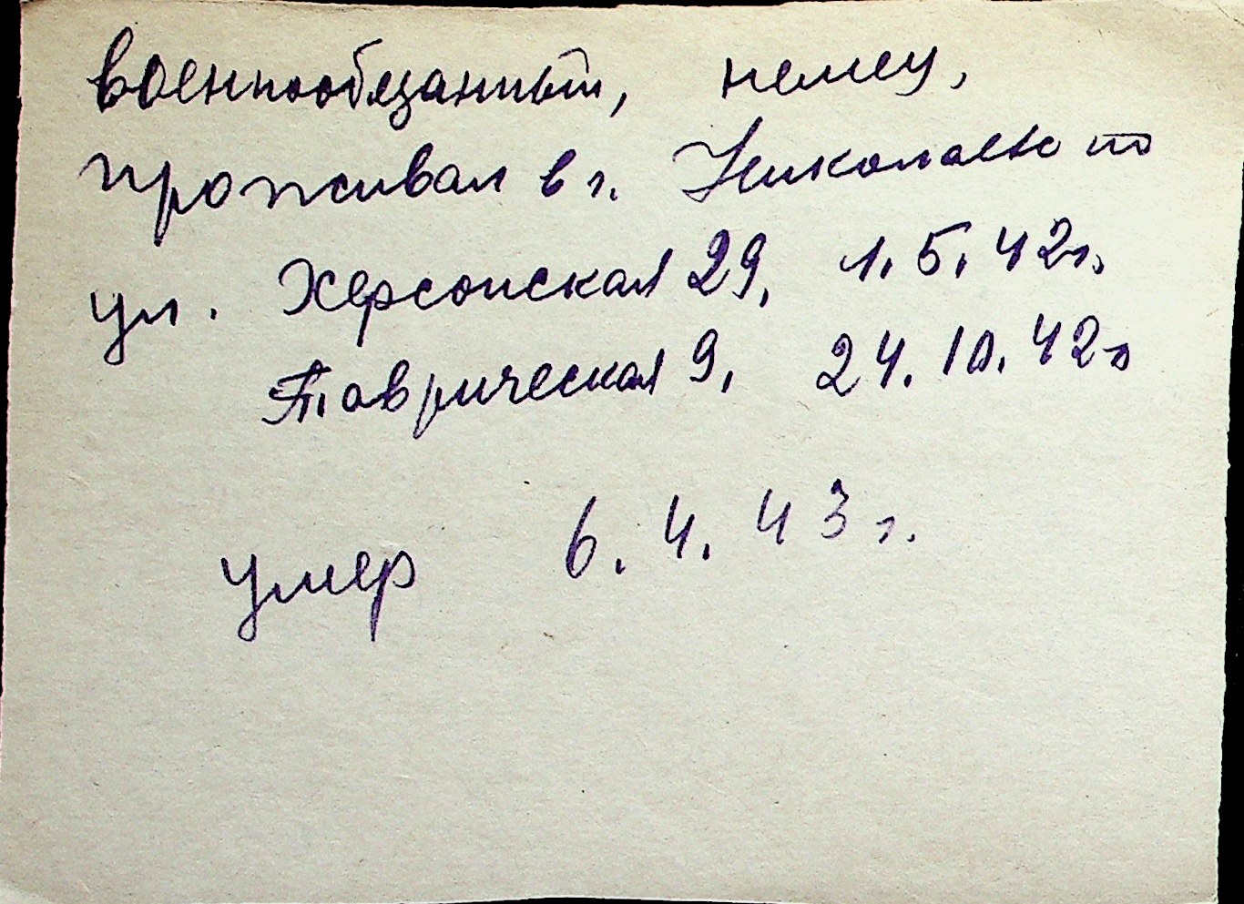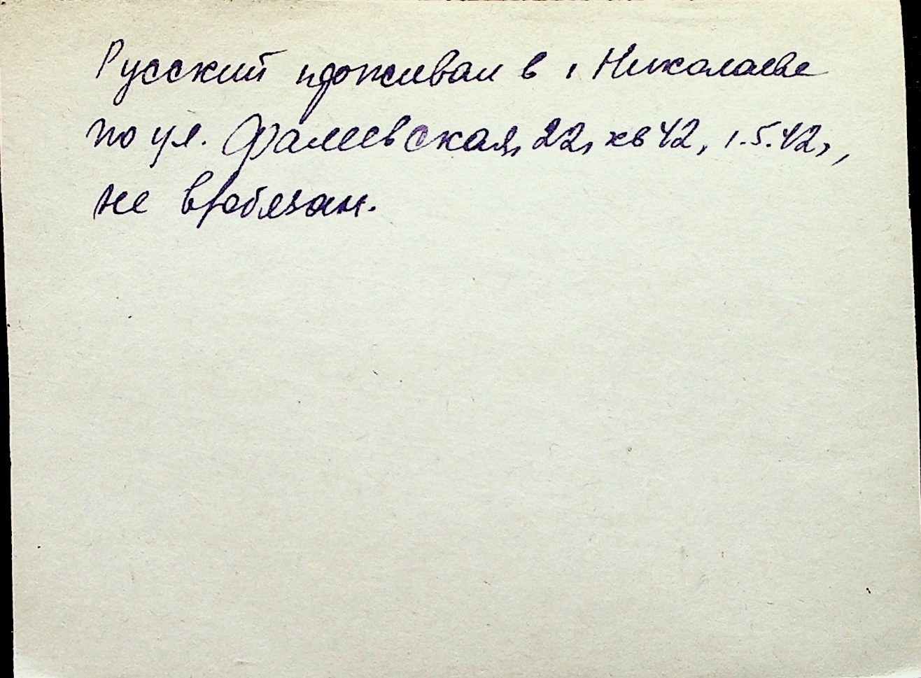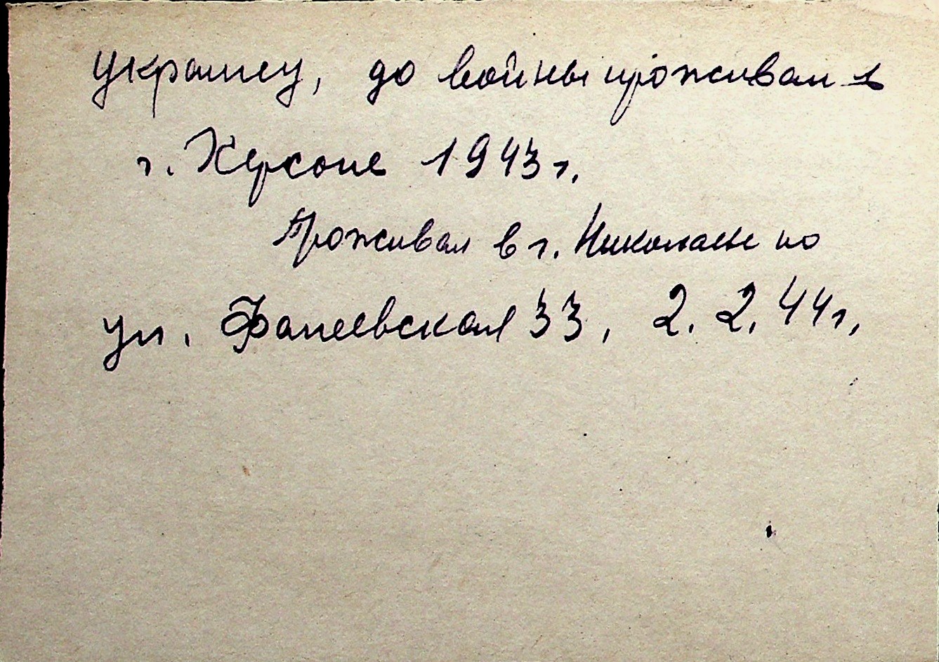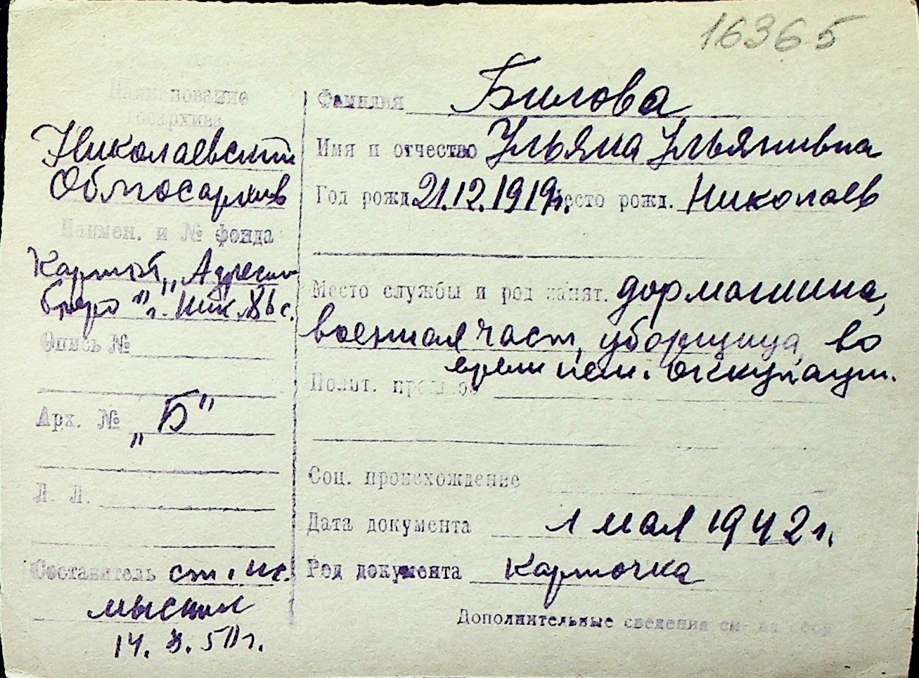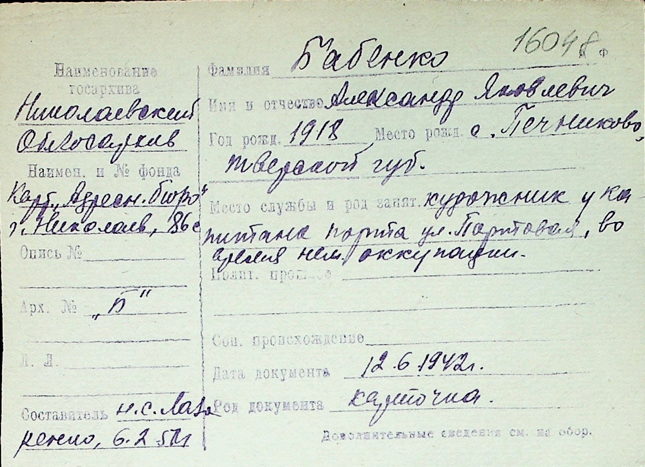 ◦ ◦ Перелік карток на осіб, які мешкали у м. Миколаїв у період окупації 1941–1944 років