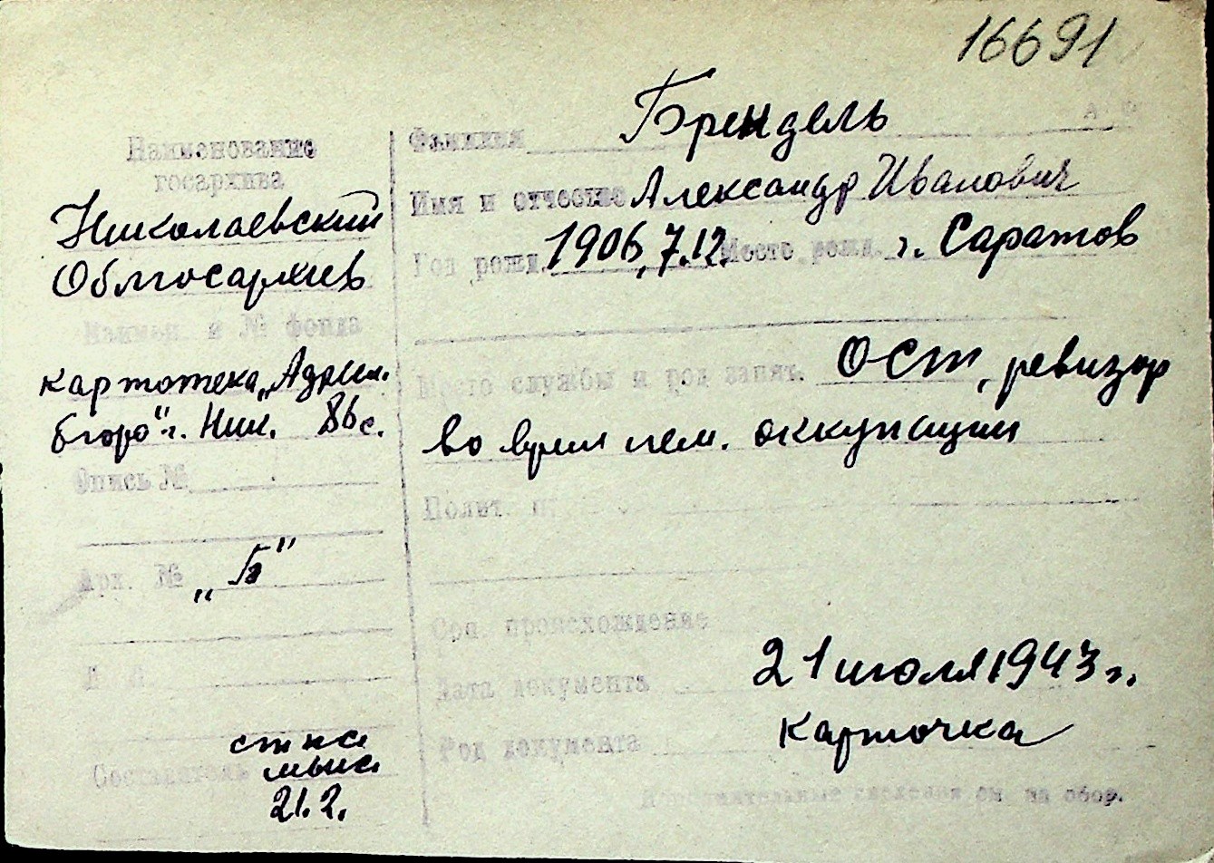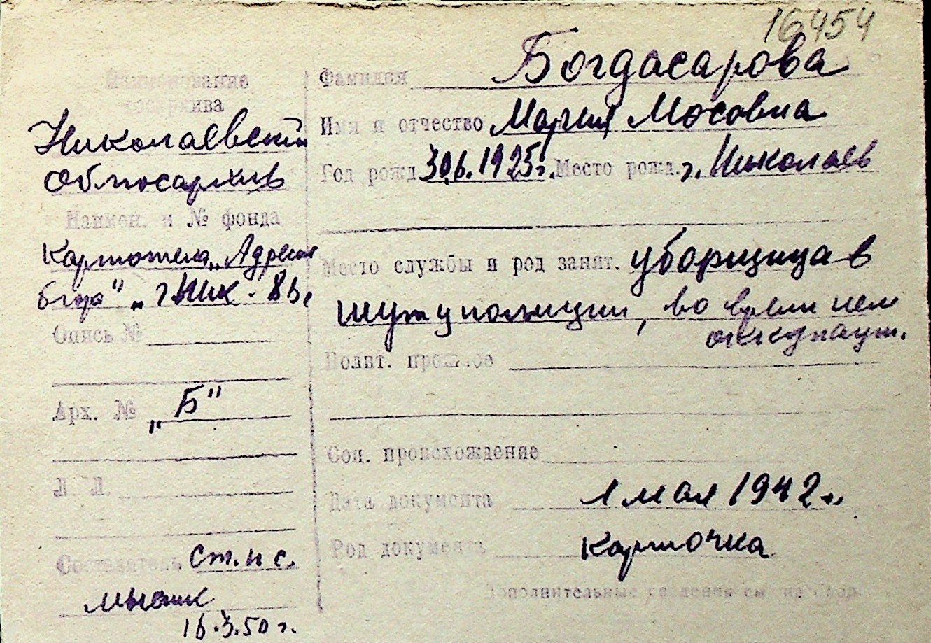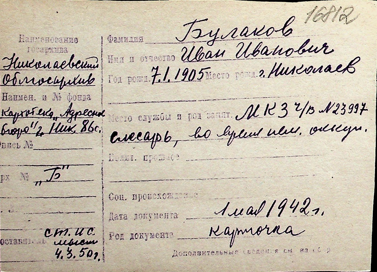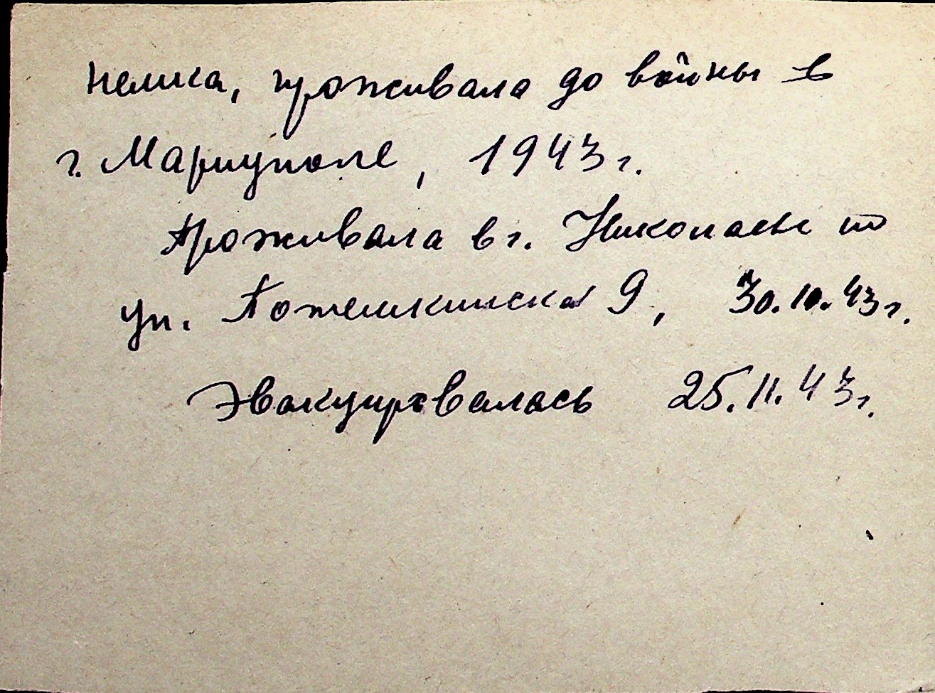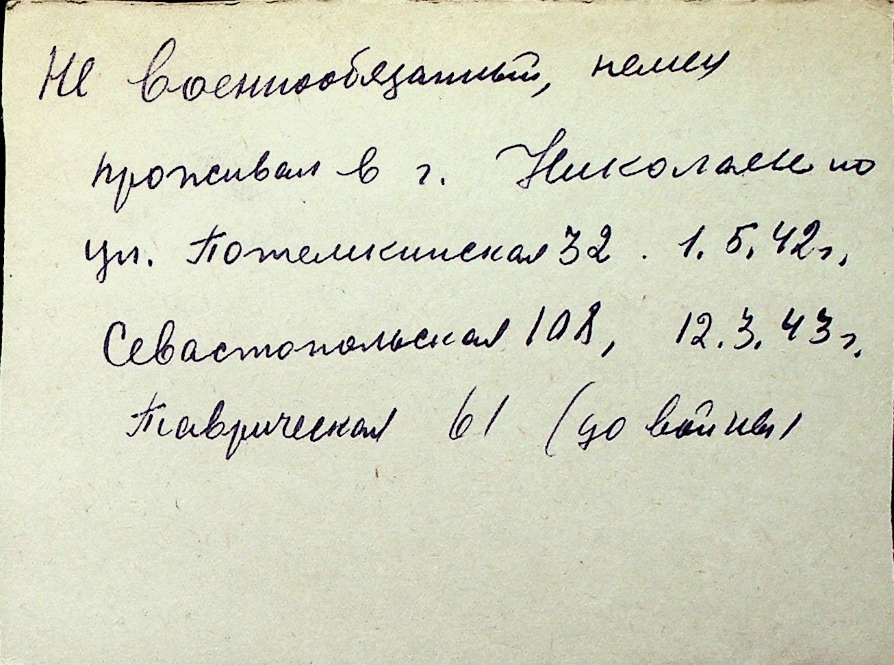 ◦ ◦ Перелік карток на осіб, які мешкали у м. Миколаїв у період окупації 1941–1944 років