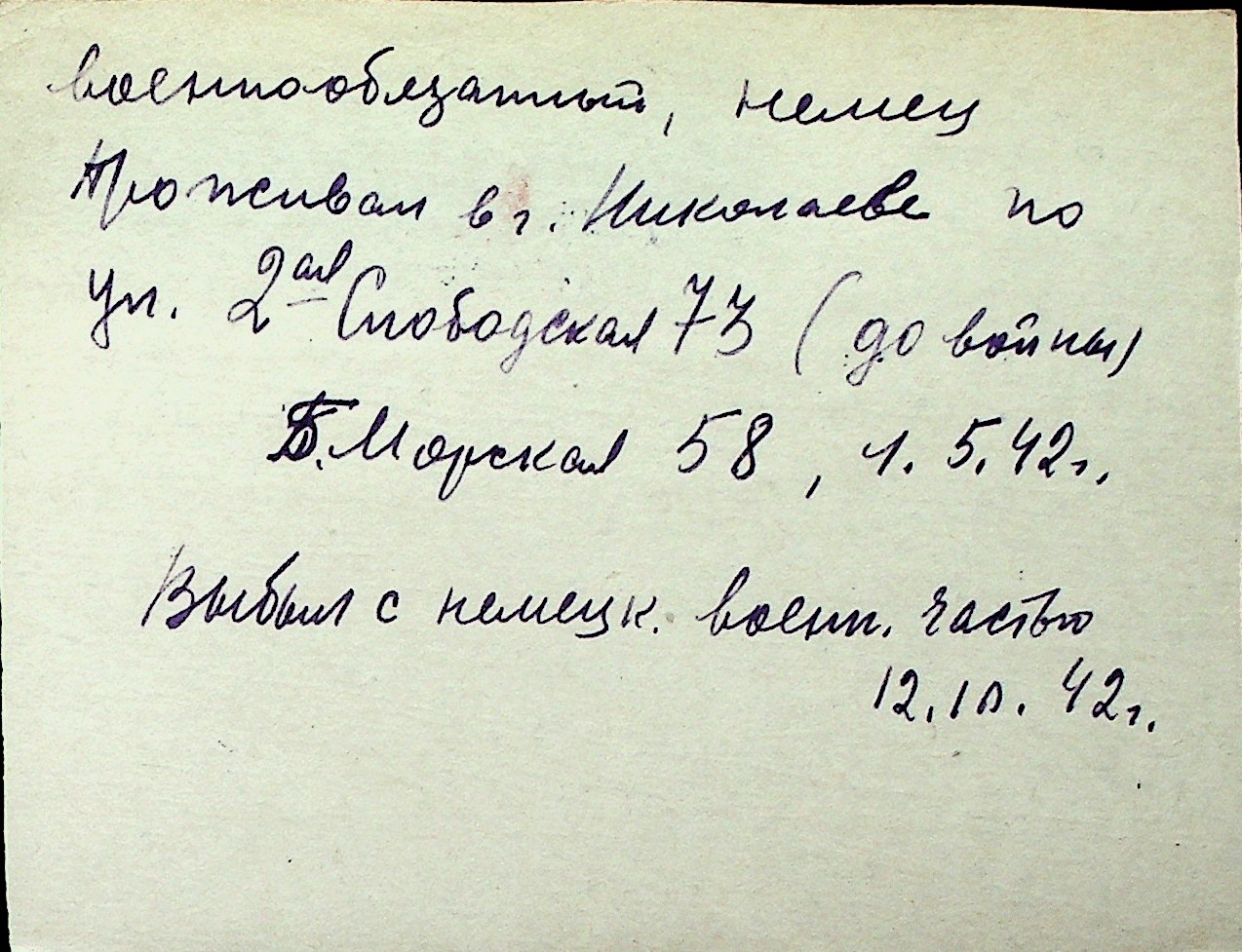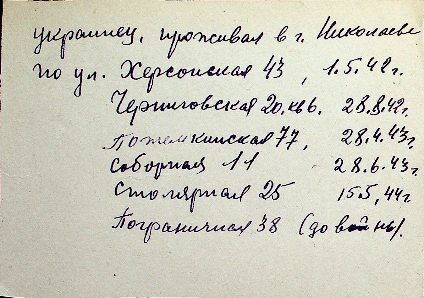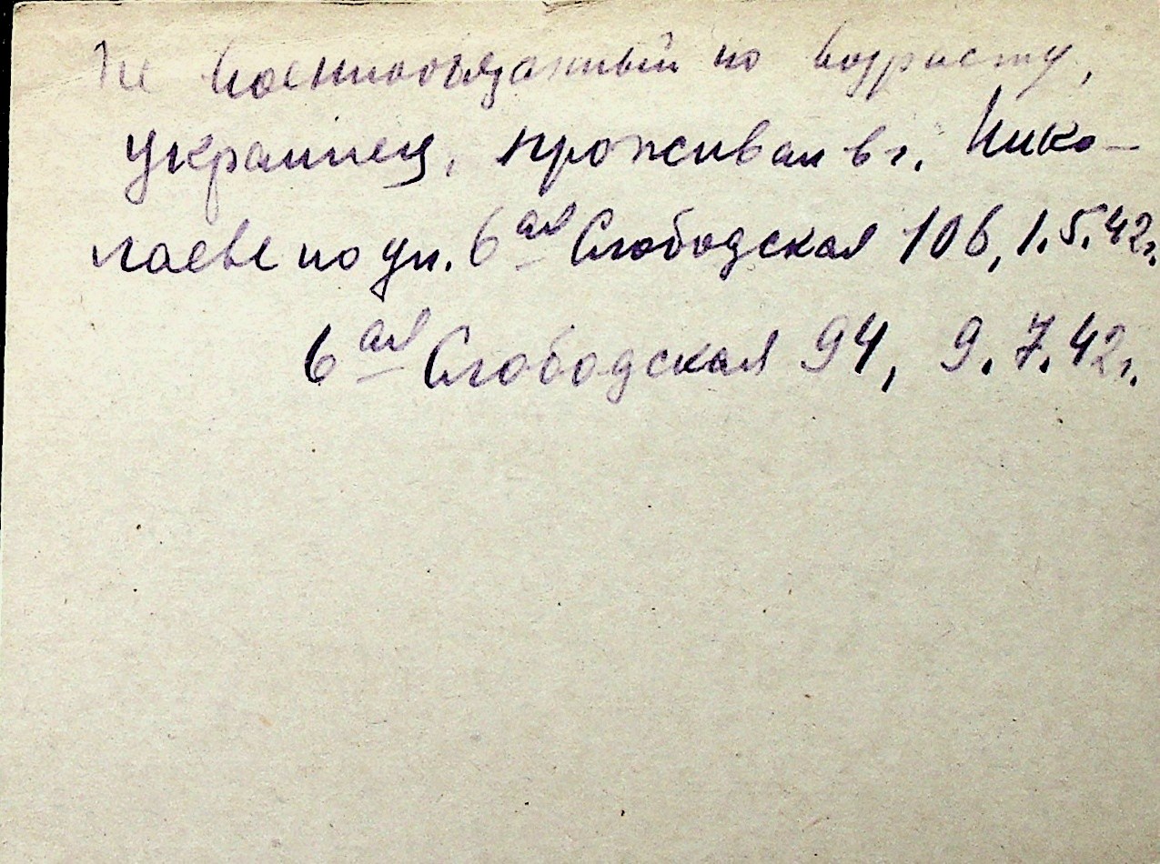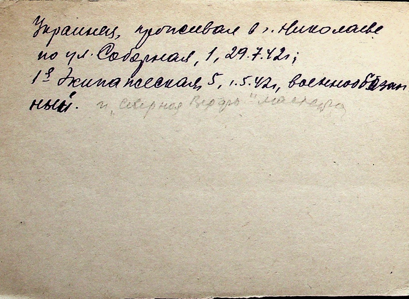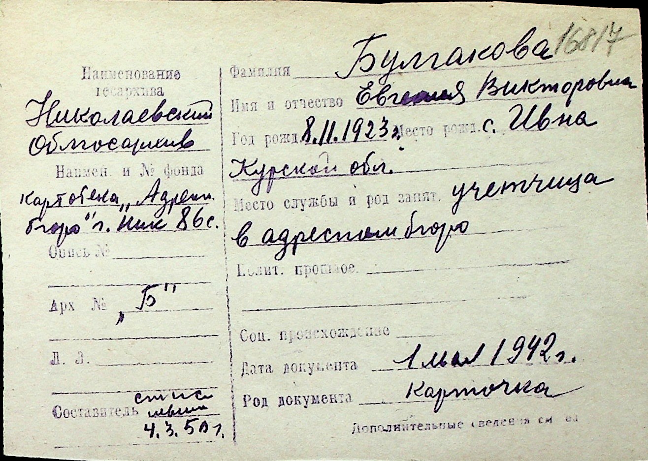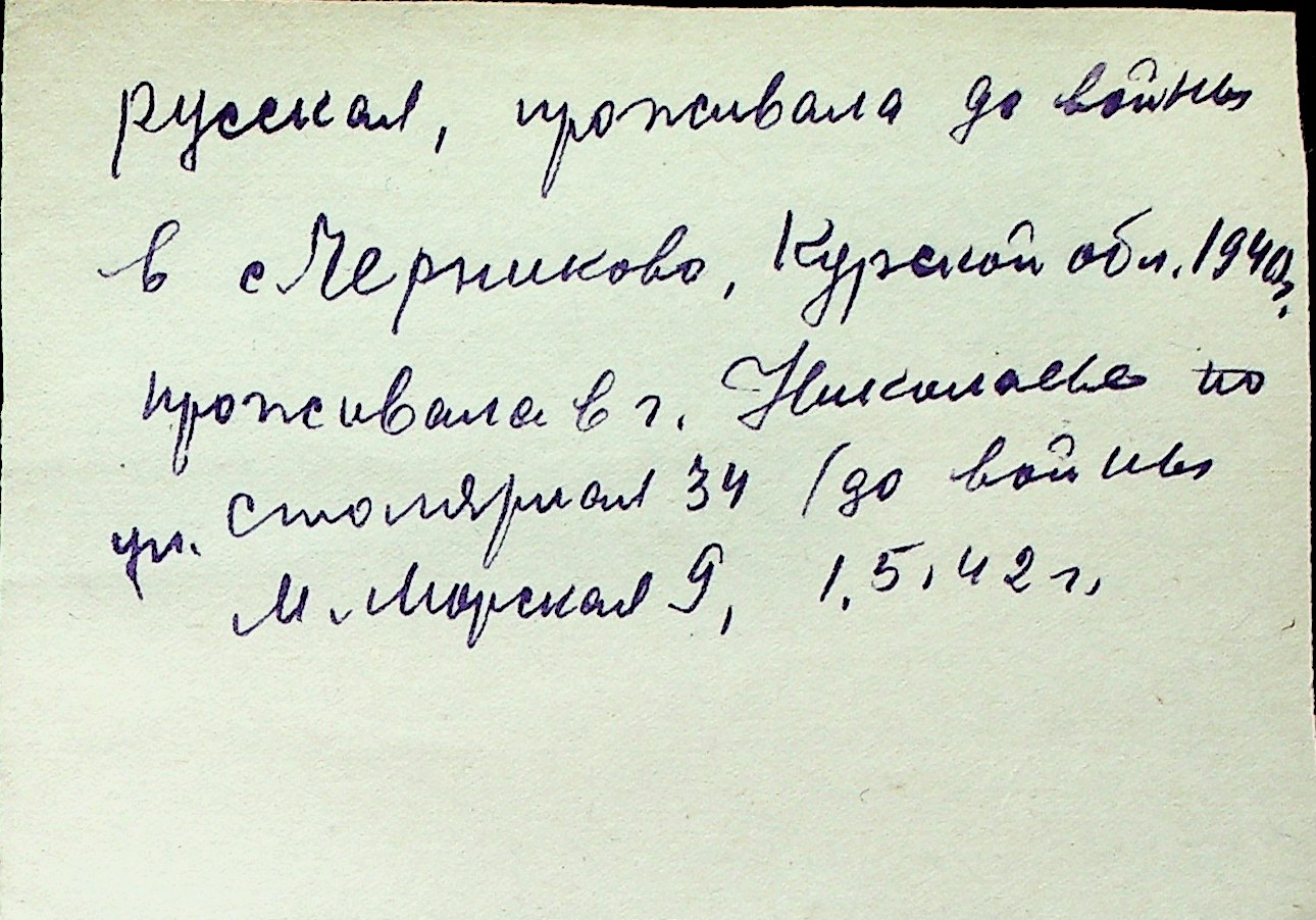 ◦ ◦ Перелік карток на осіб, які мешкали у м. Миколаїв у період окупації 1941–1944 років