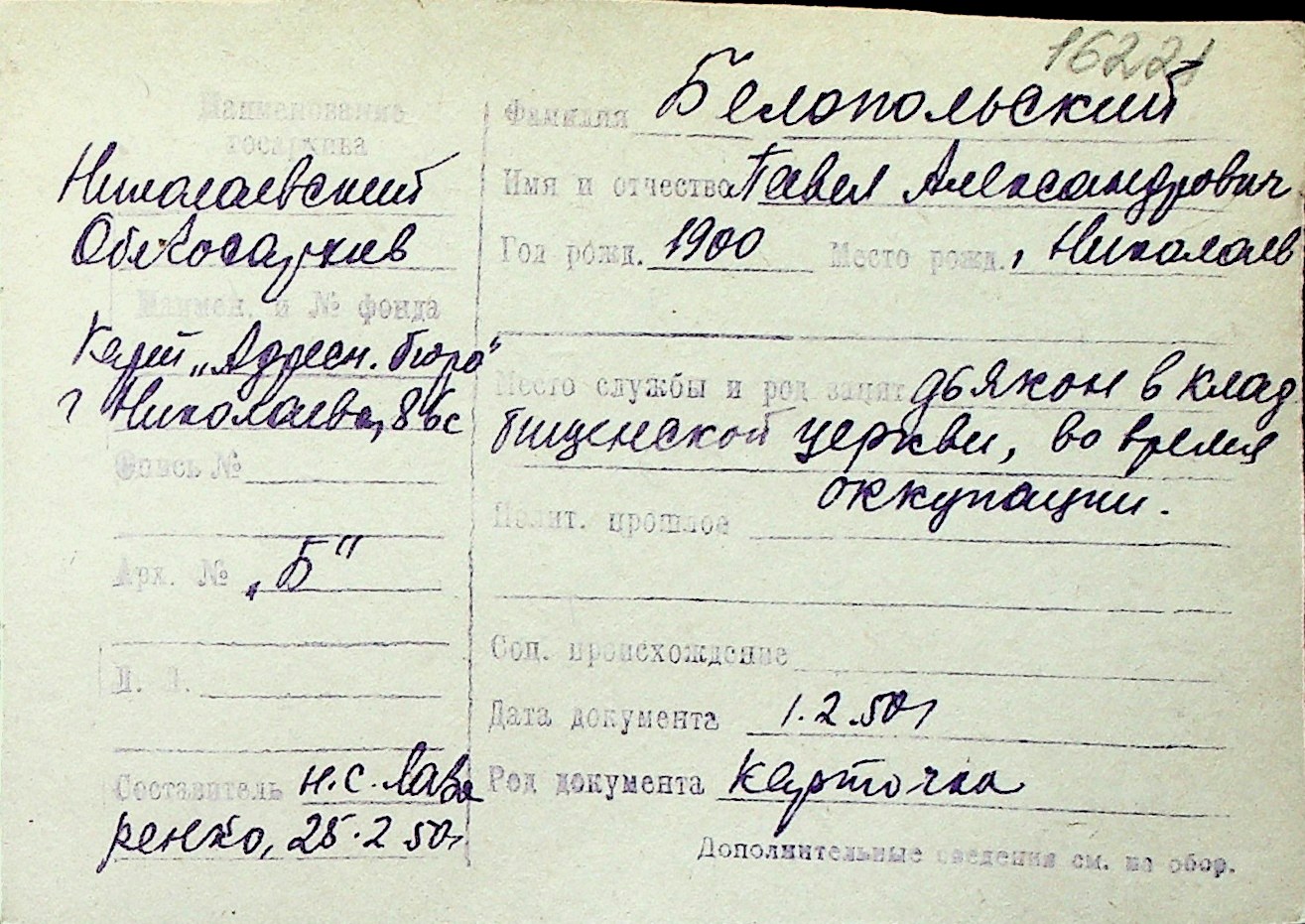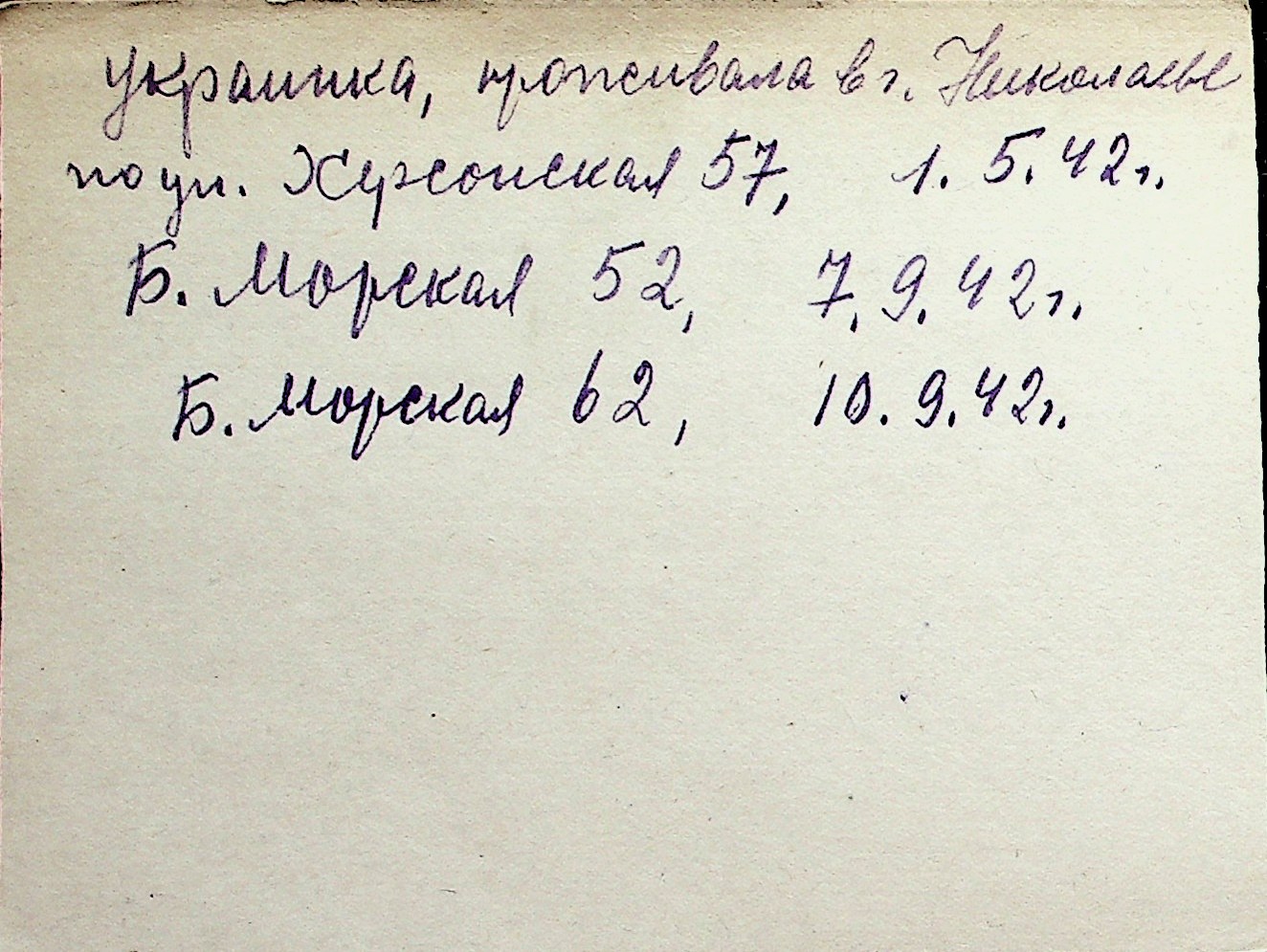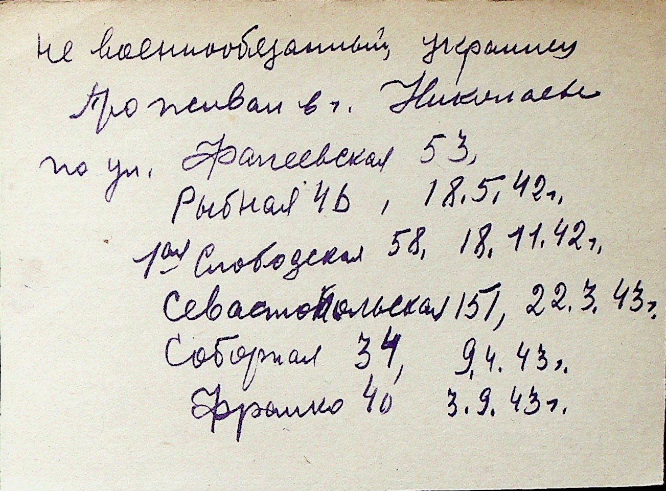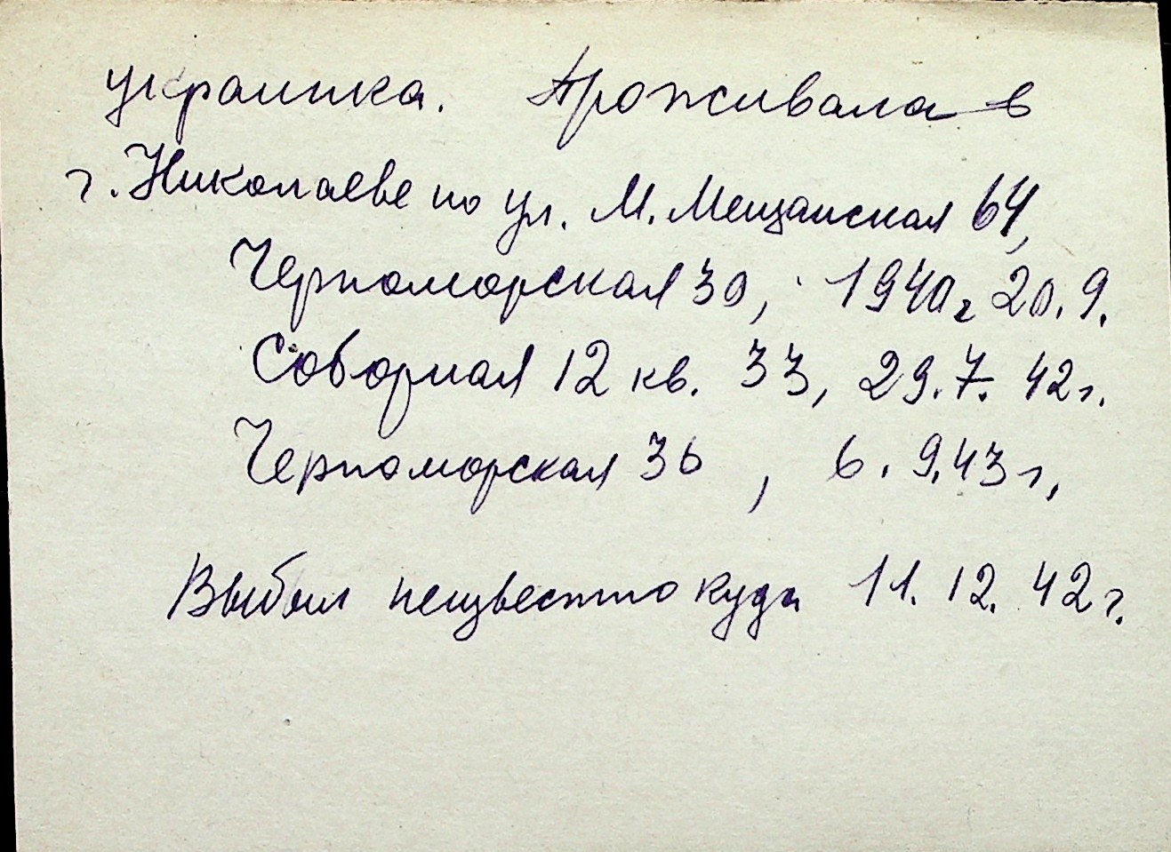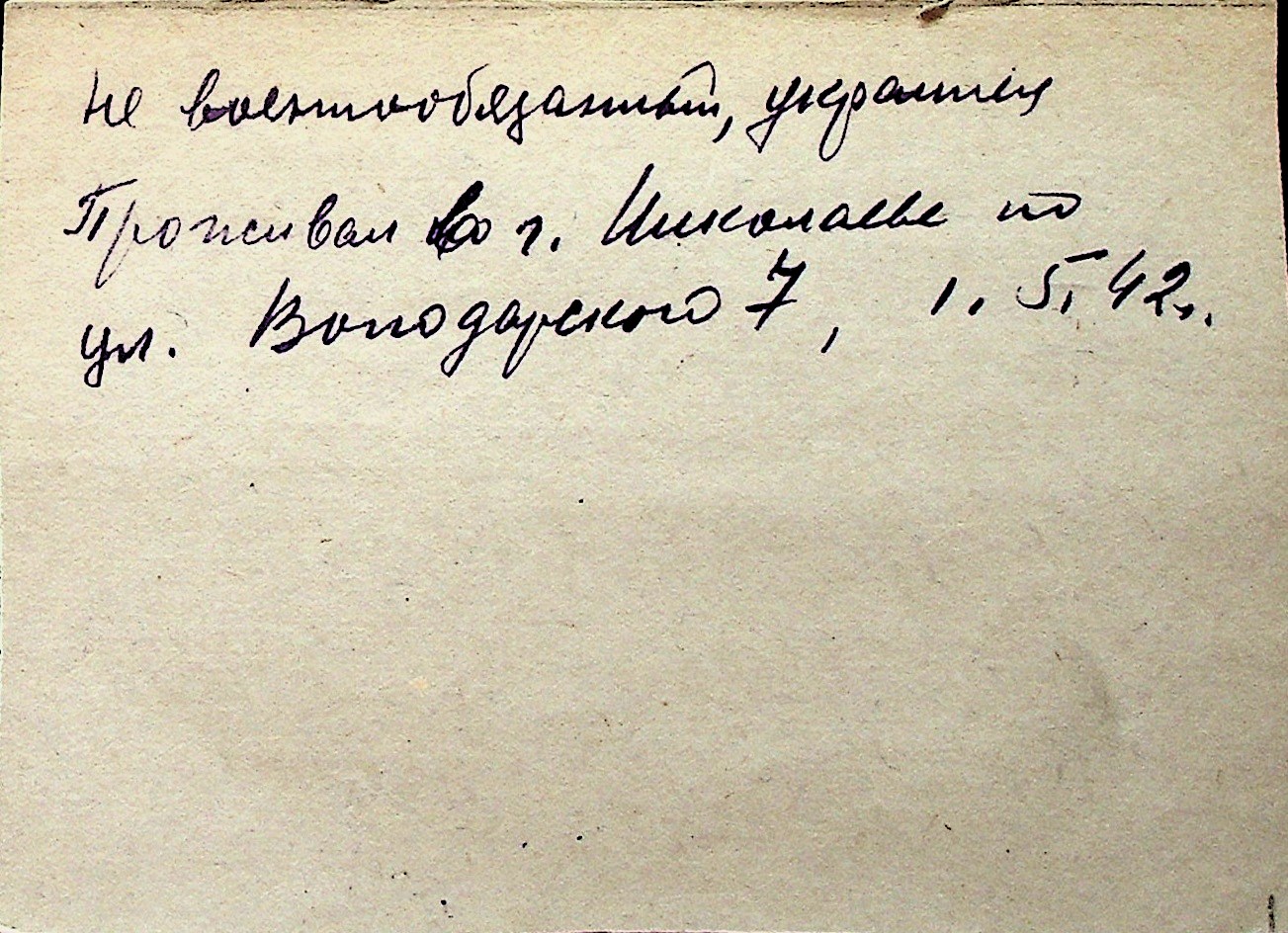 ◦ ◦ Перелік карток на осіб, які мешкали у м. Миколаїв у період окупації 1941–1944 років