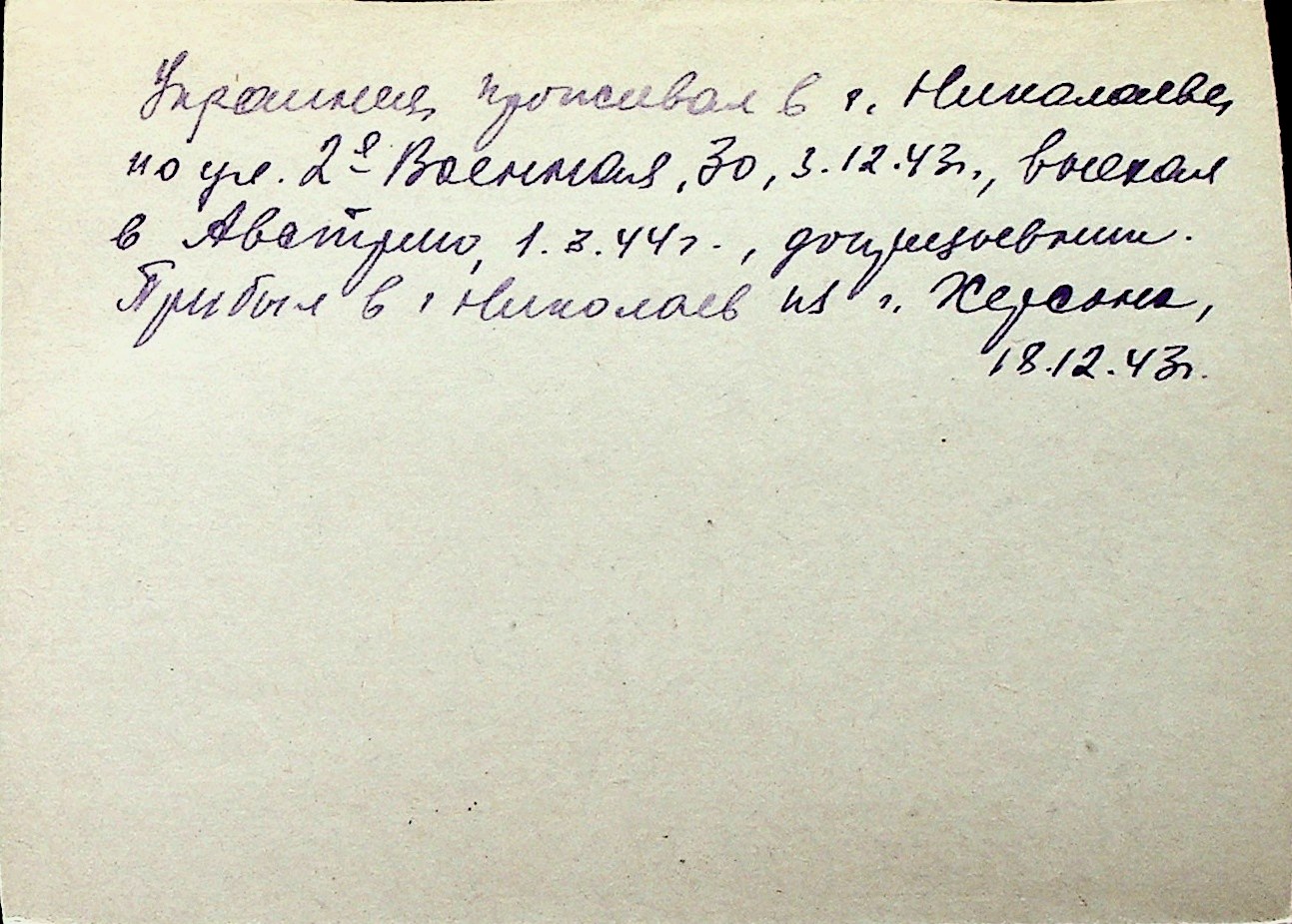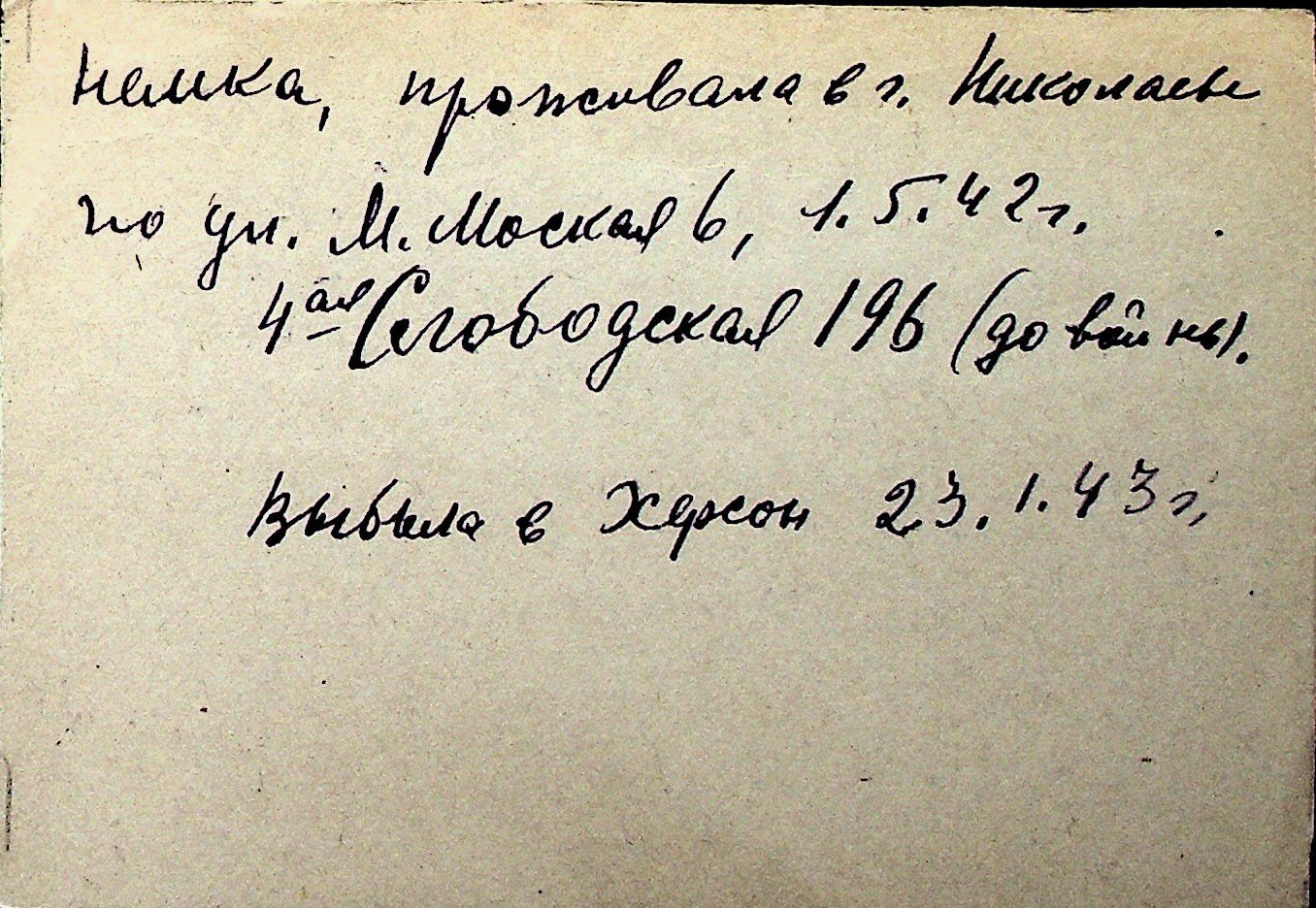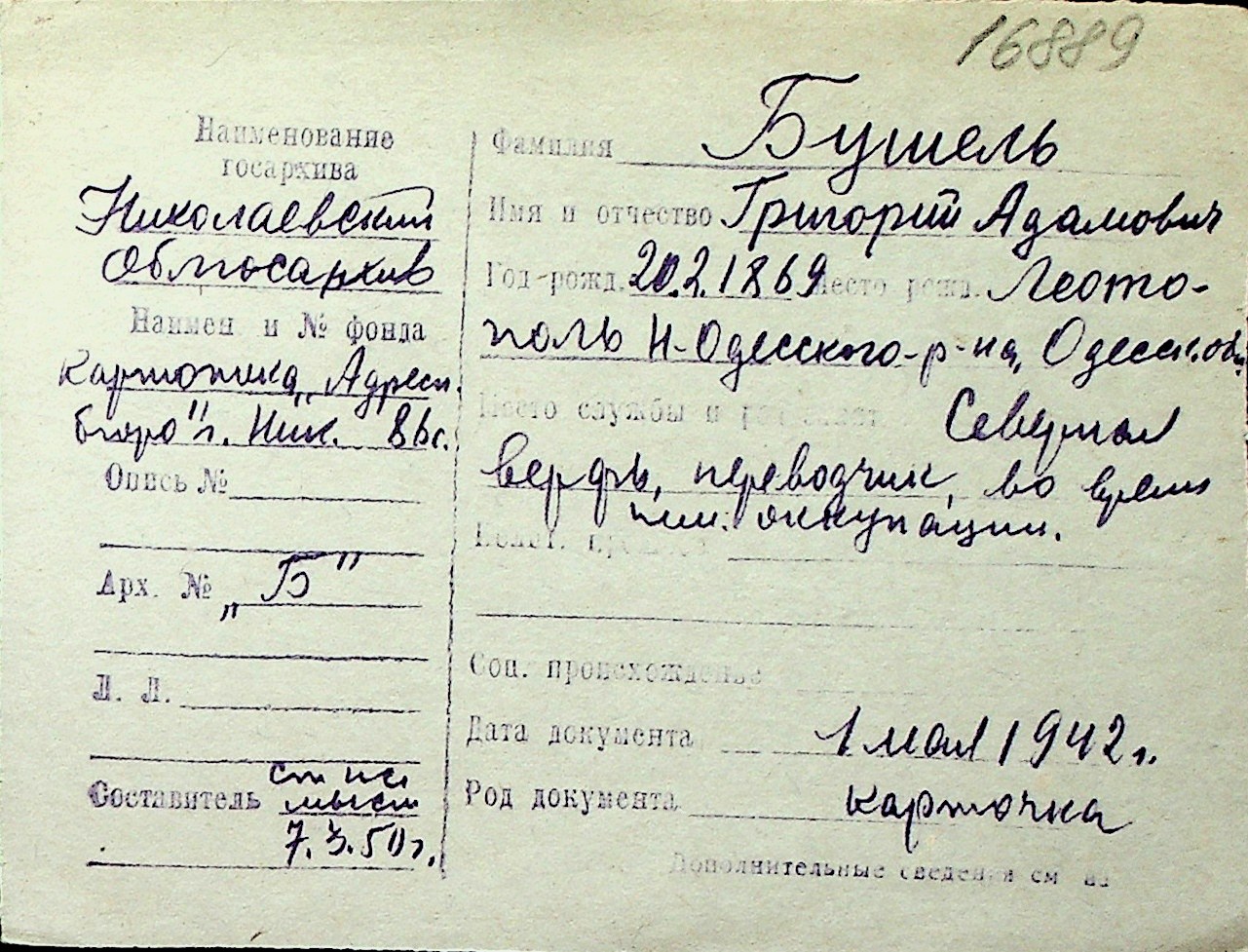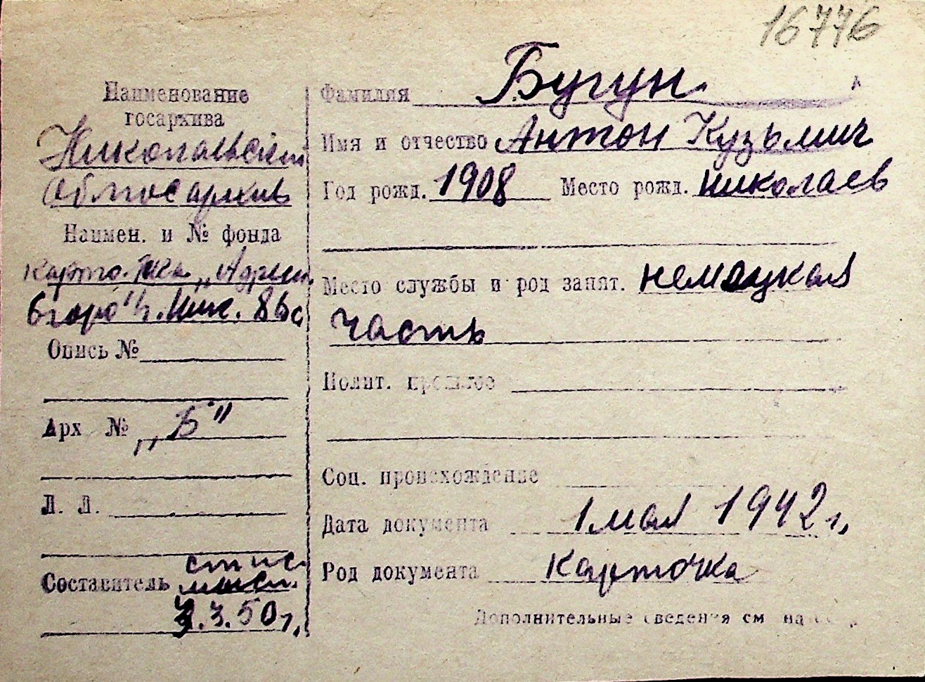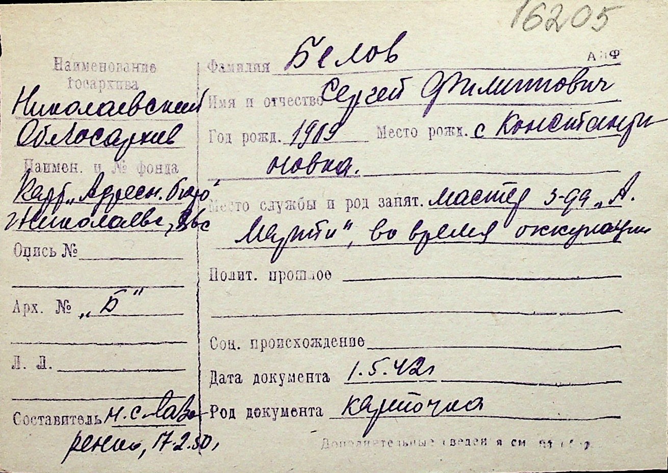◦ ◦ Перелік карток на осіб, які мешкали у м. Миколаїв у період окупації 1941–1944 років