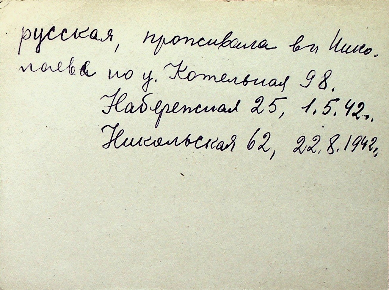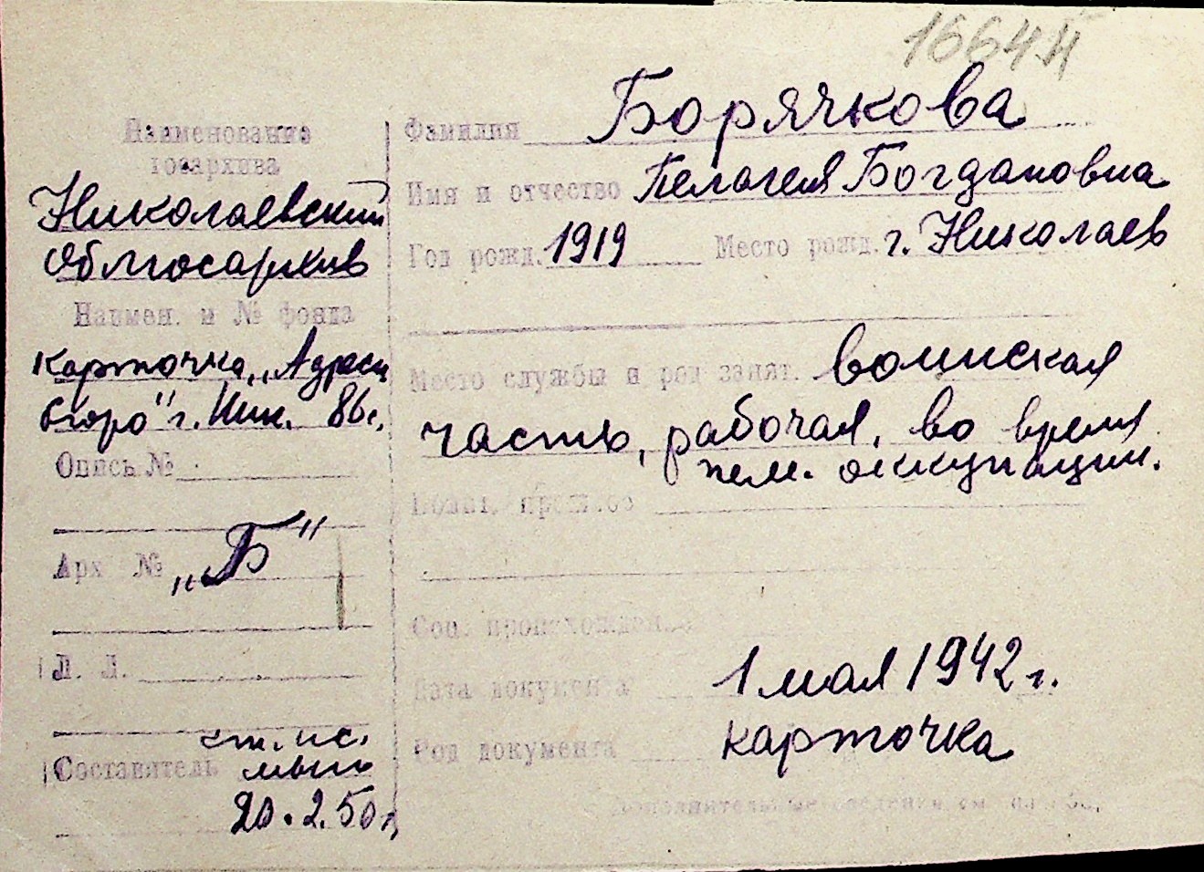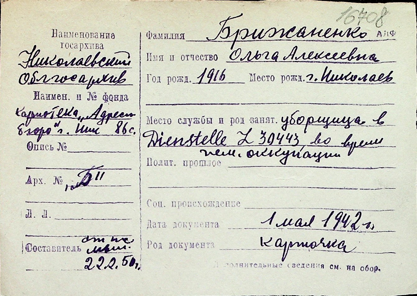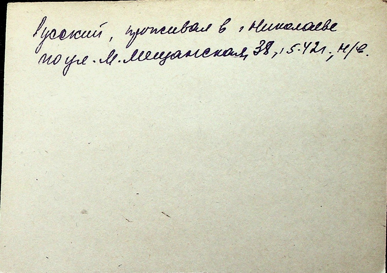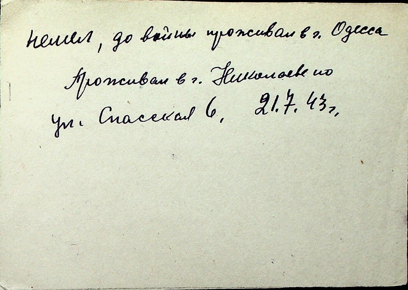 ◦ ◦ Перелік карток на осіб, які мешкали у м. Миколаїв у період окупації 1941–1944 років