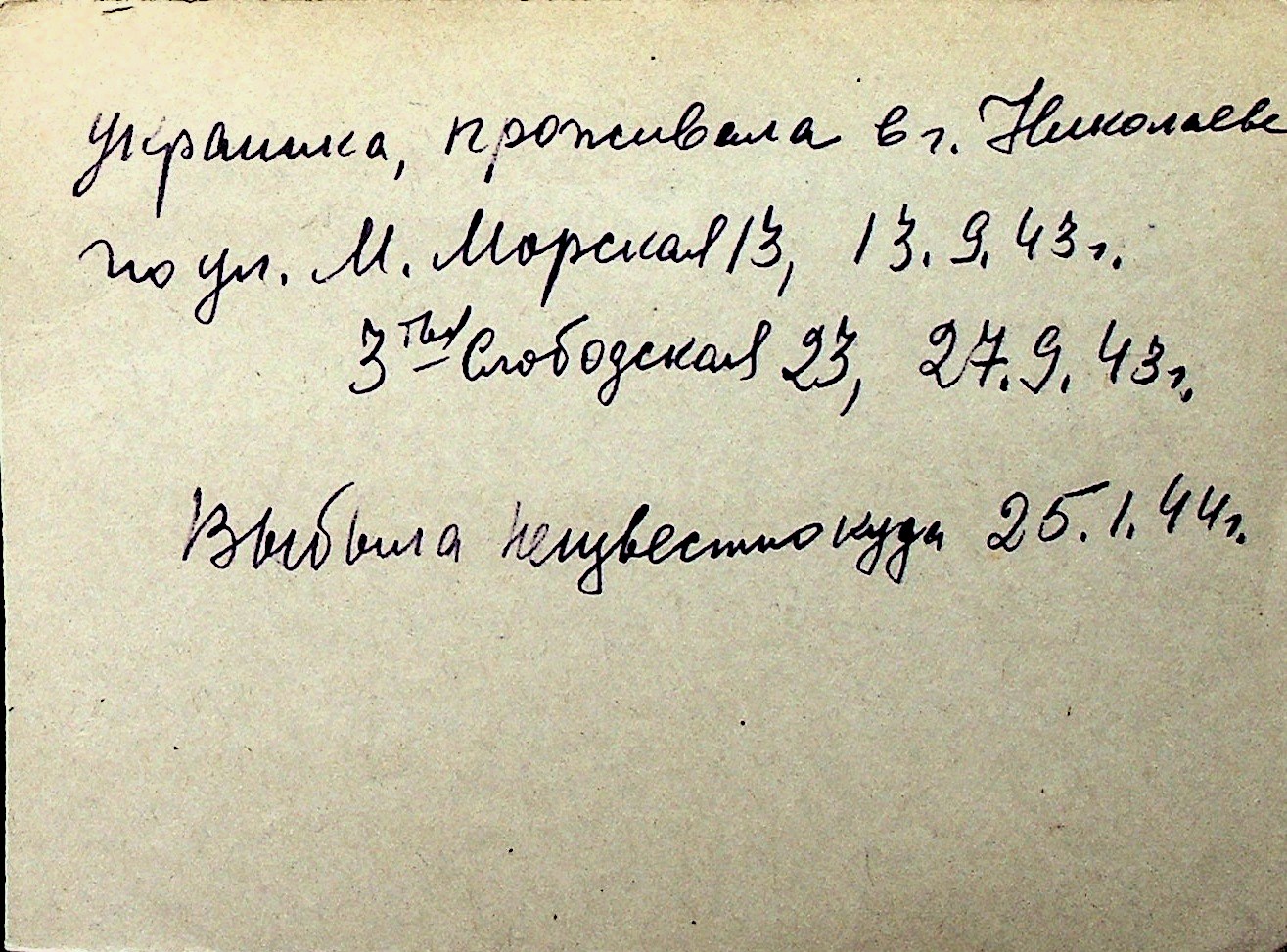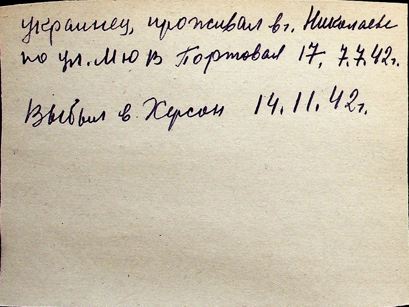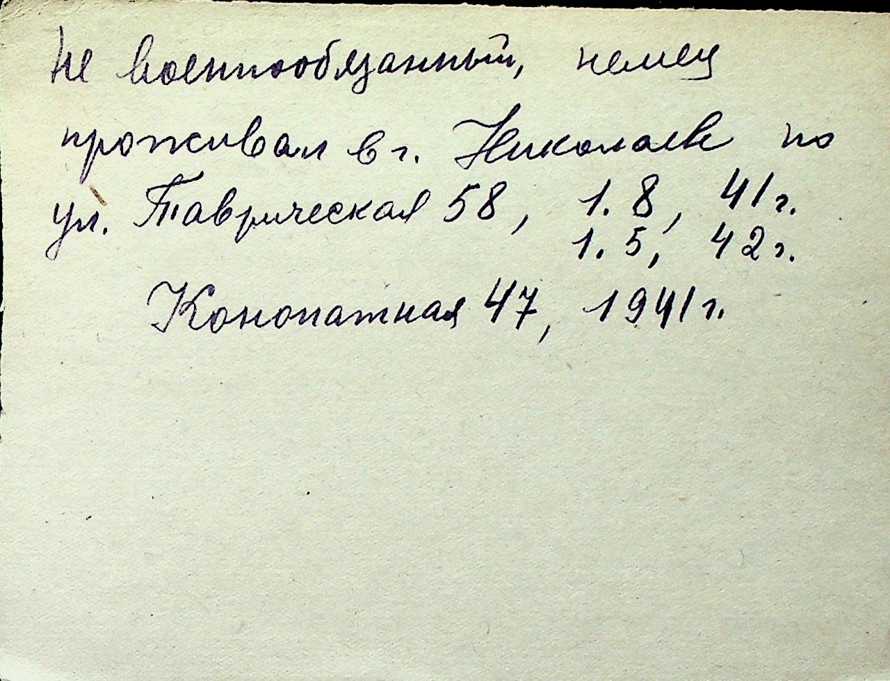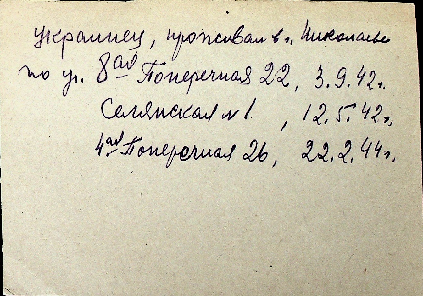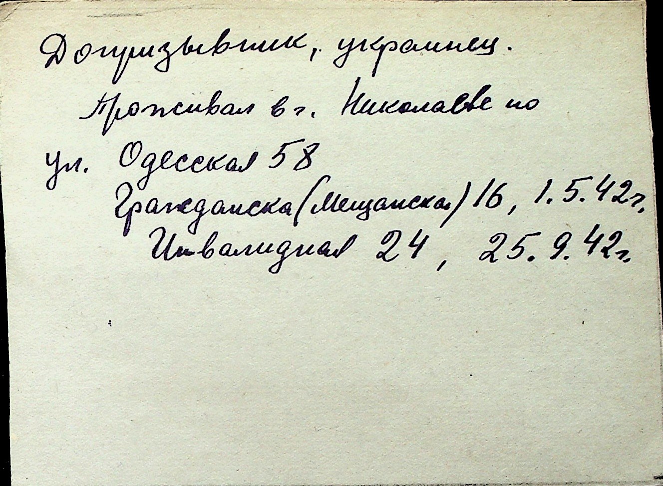 ◦ ◦ Перелік карток на осіб, які мешкали у м. Миколаїв у період окупації 1941–1944 років