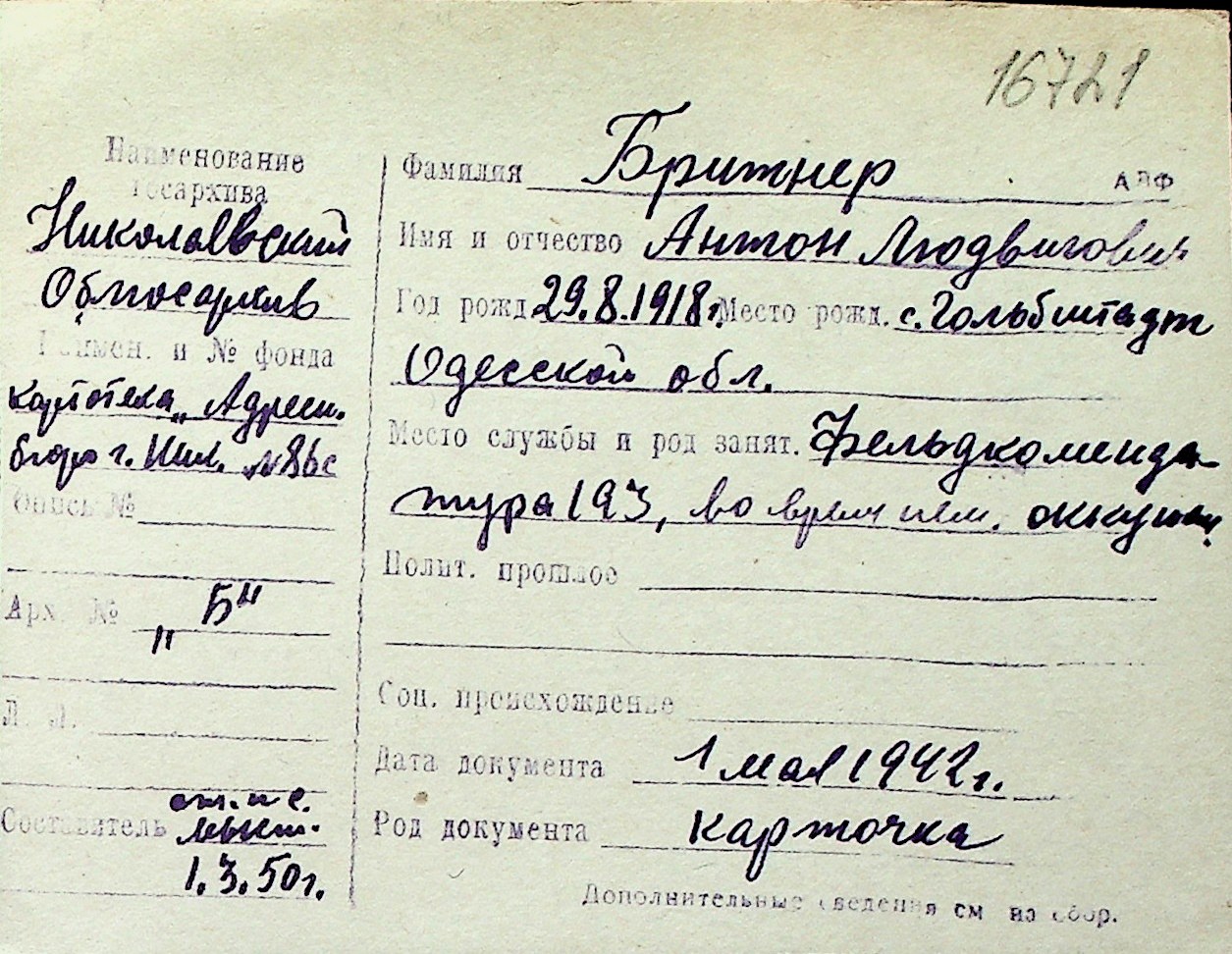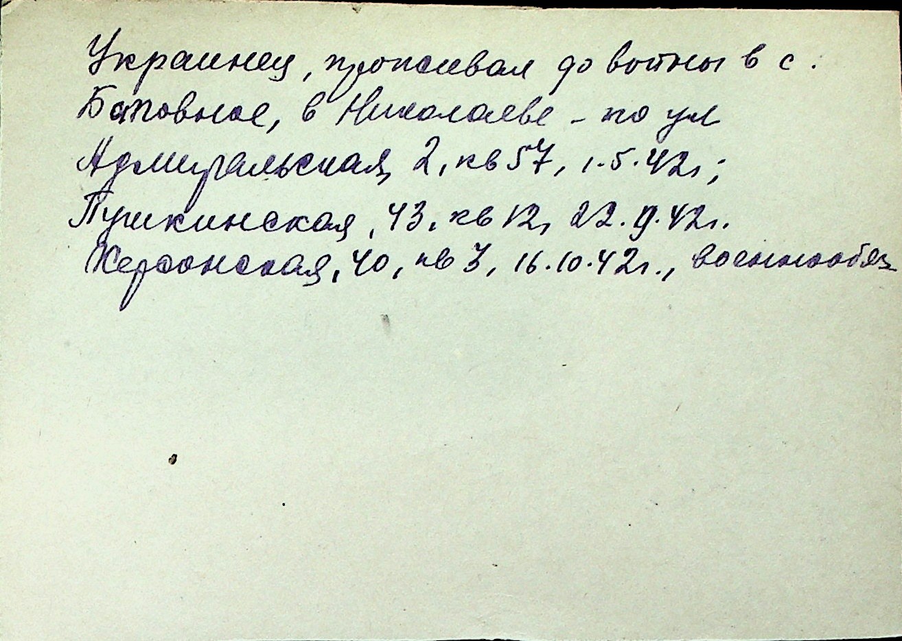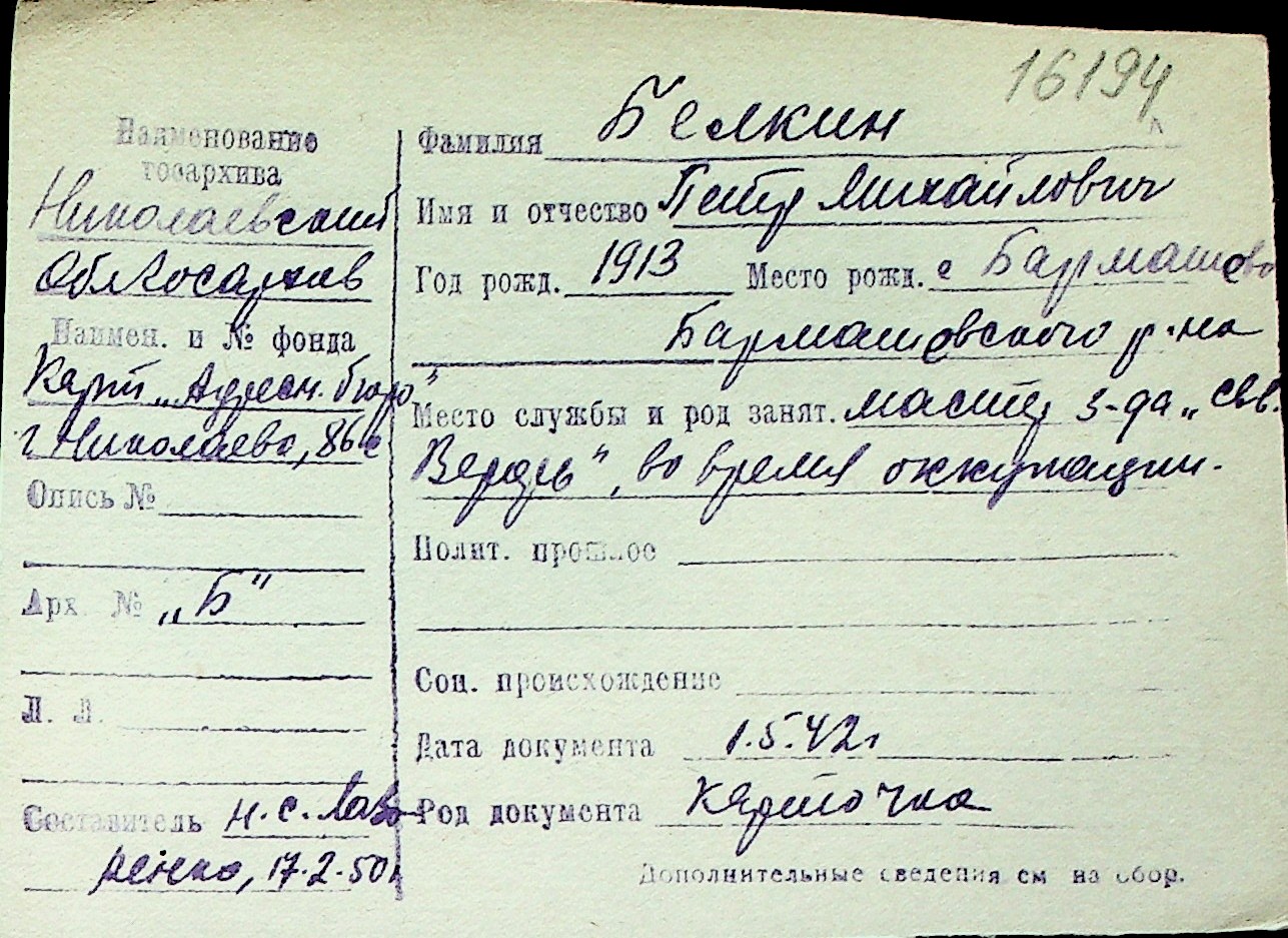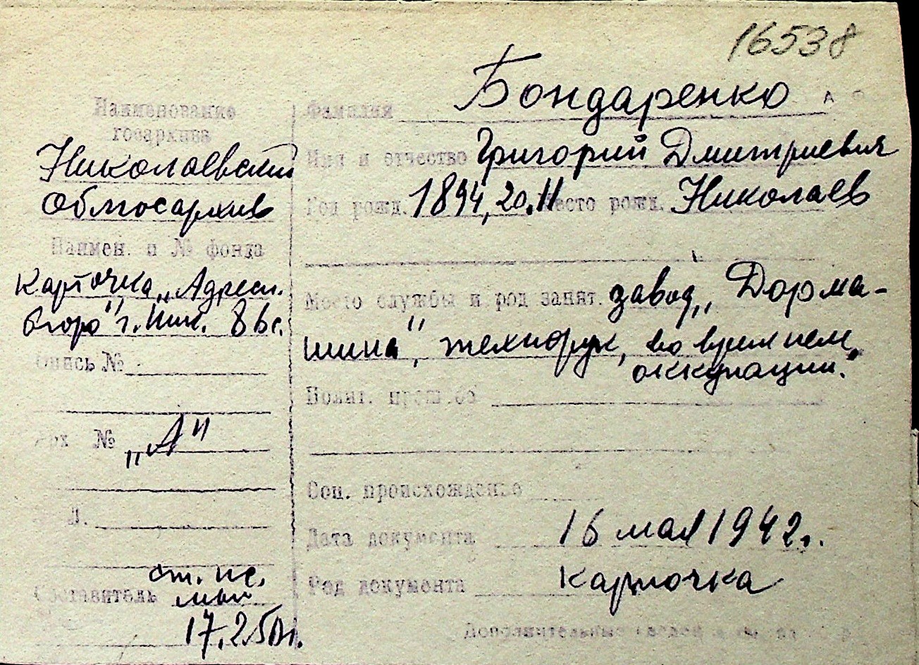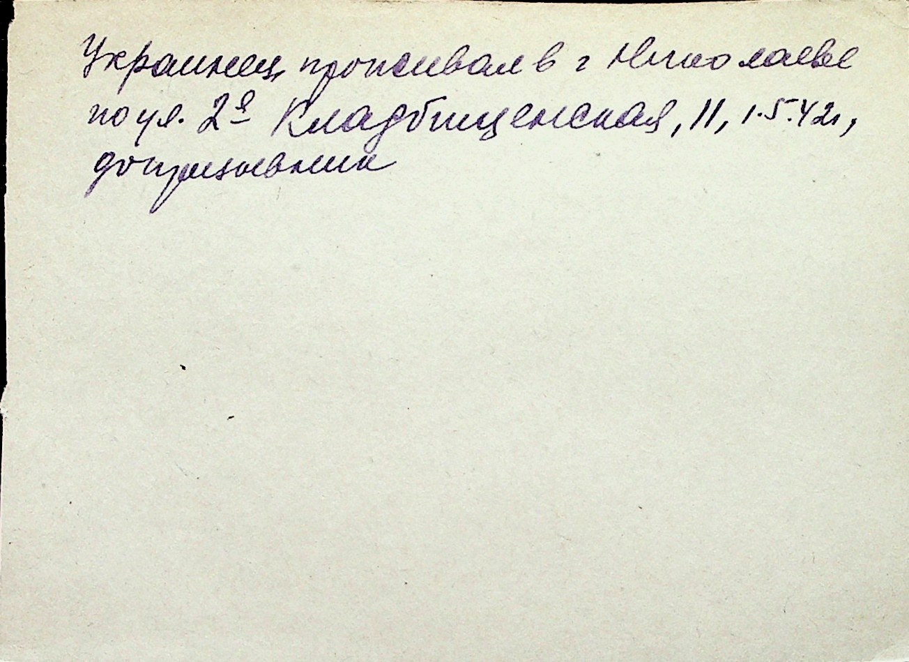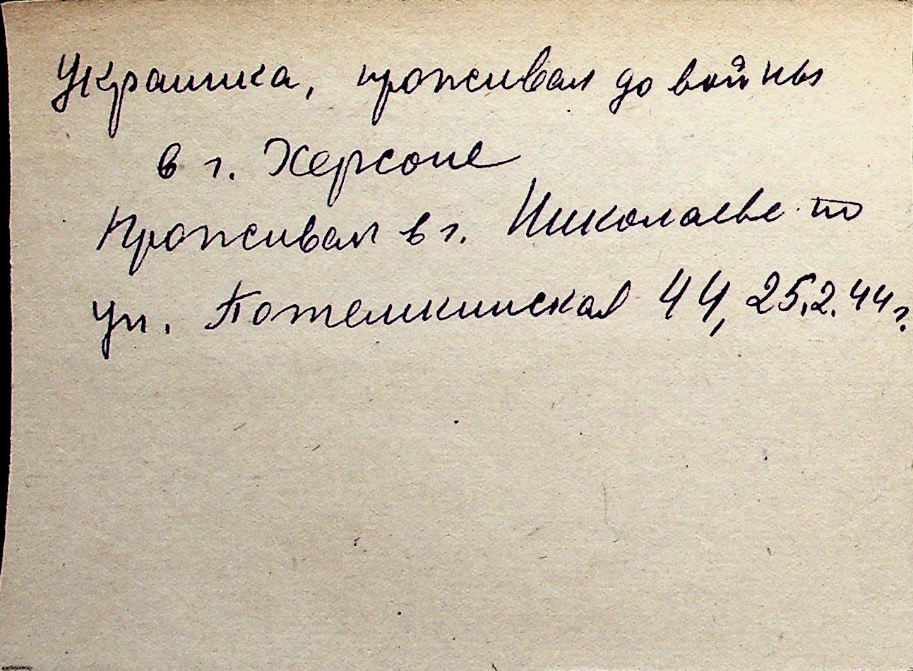 ◦ ◦ Перелік карток на осіб, які мешкали у м. Миколаїв у період окупації 1941–1944 років