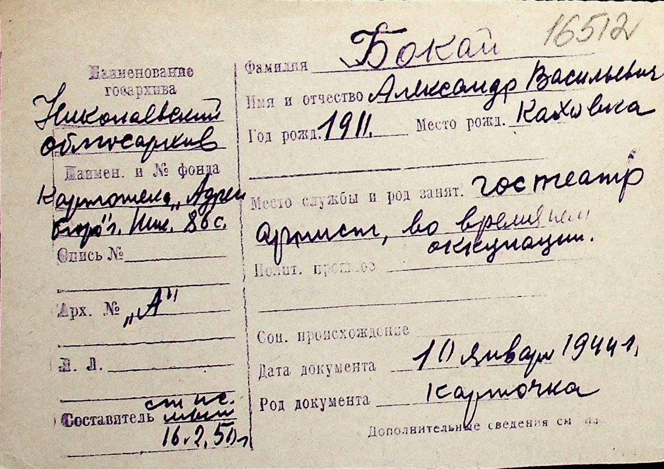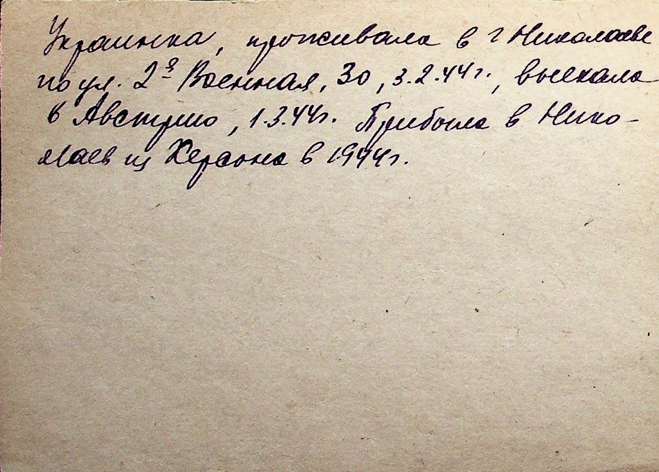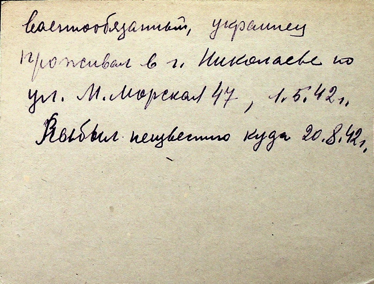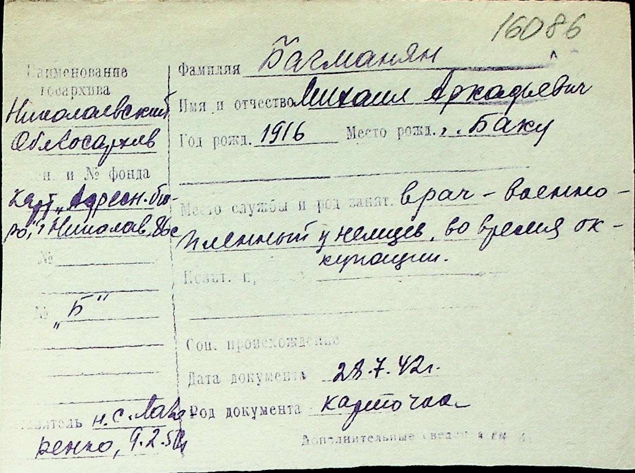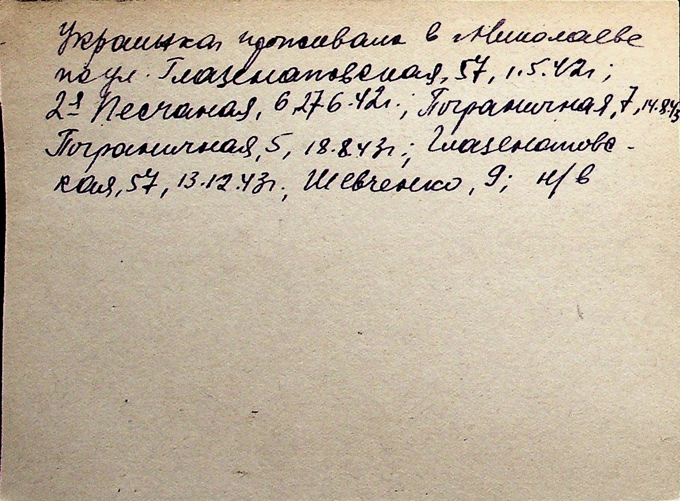 ◦ ◦ Перелік карток на осіб, які мешкали у м. Миколаїв у період окупації 1941–1944 років