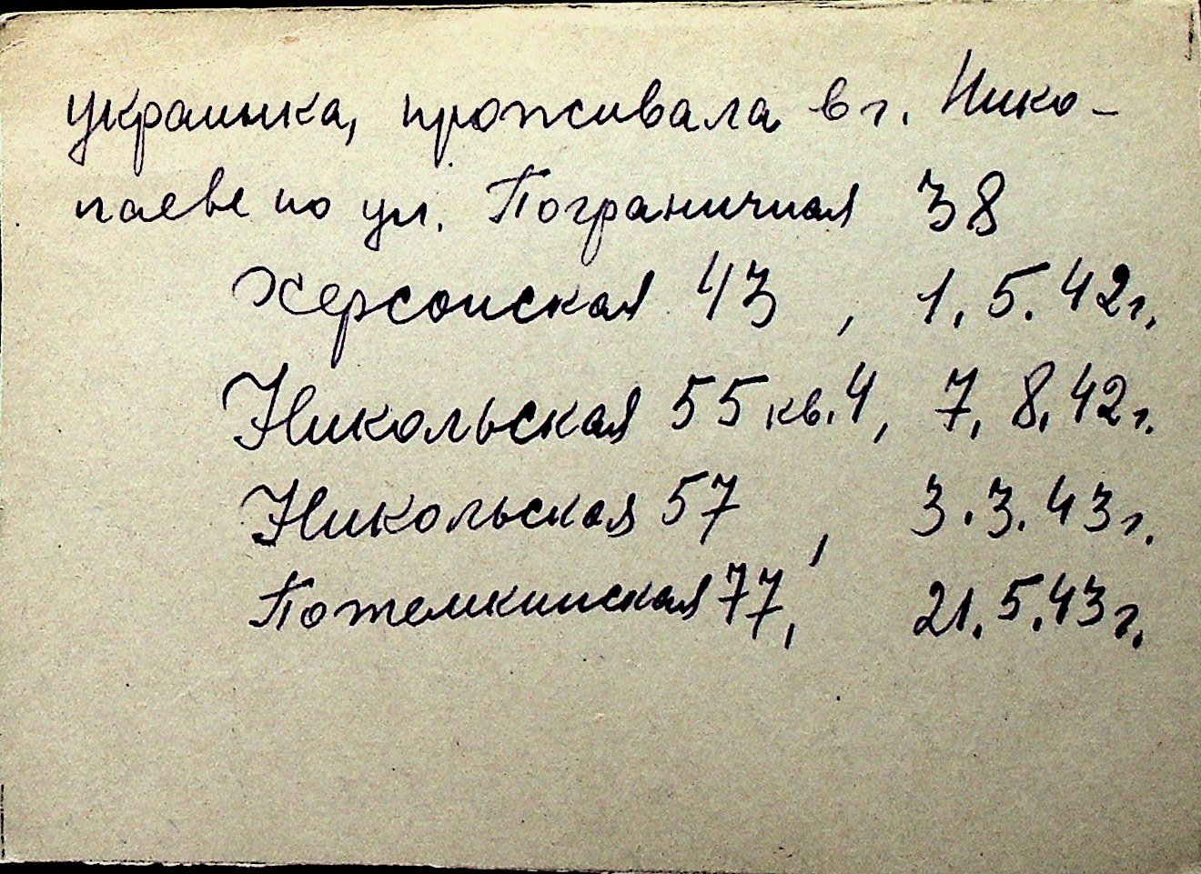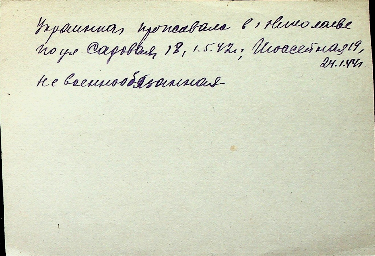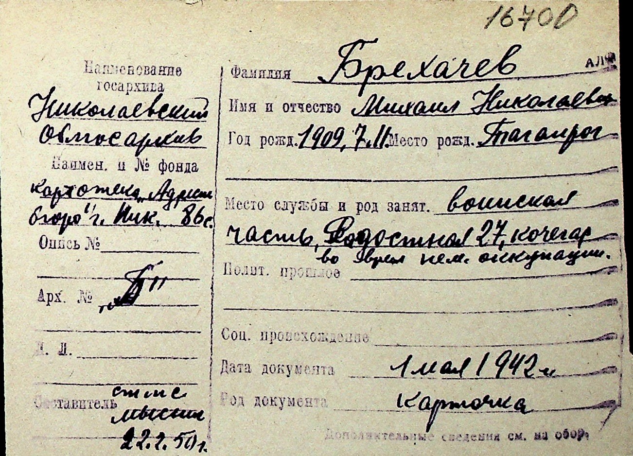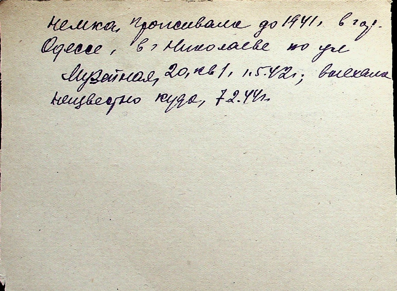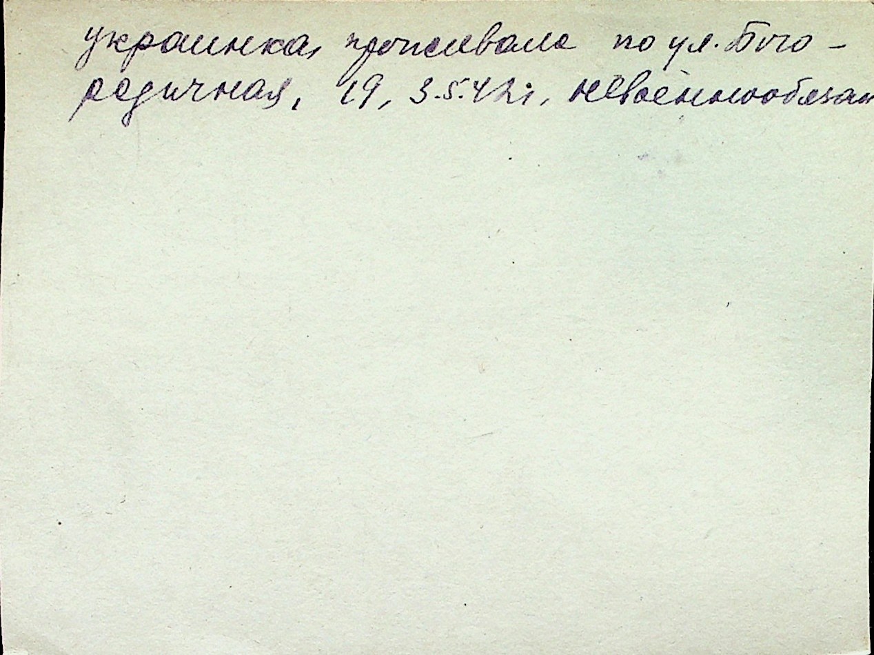 ◦ ◦ Перелік карток на осіб, які мешкали у м. Миколаїв у період окупації 1941–1944 років