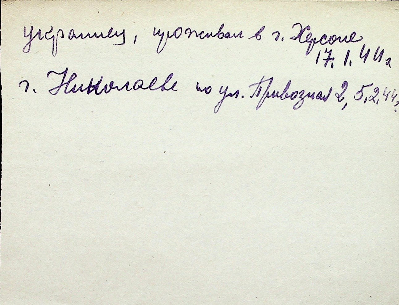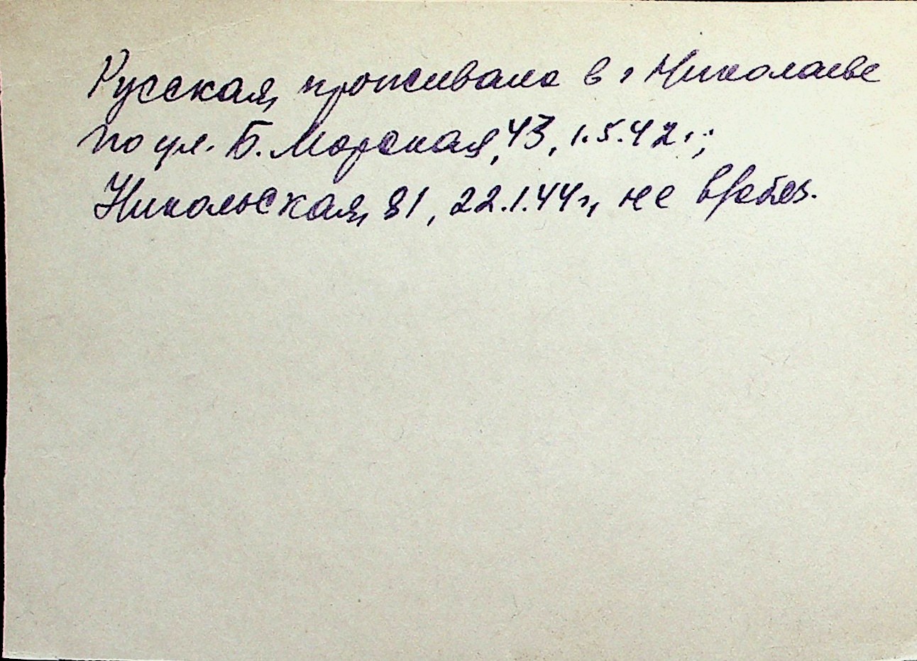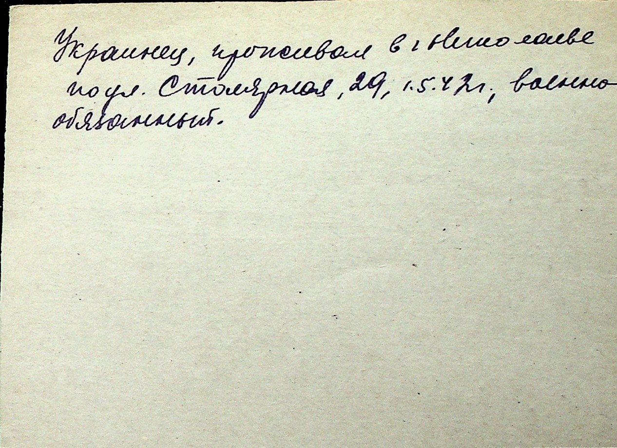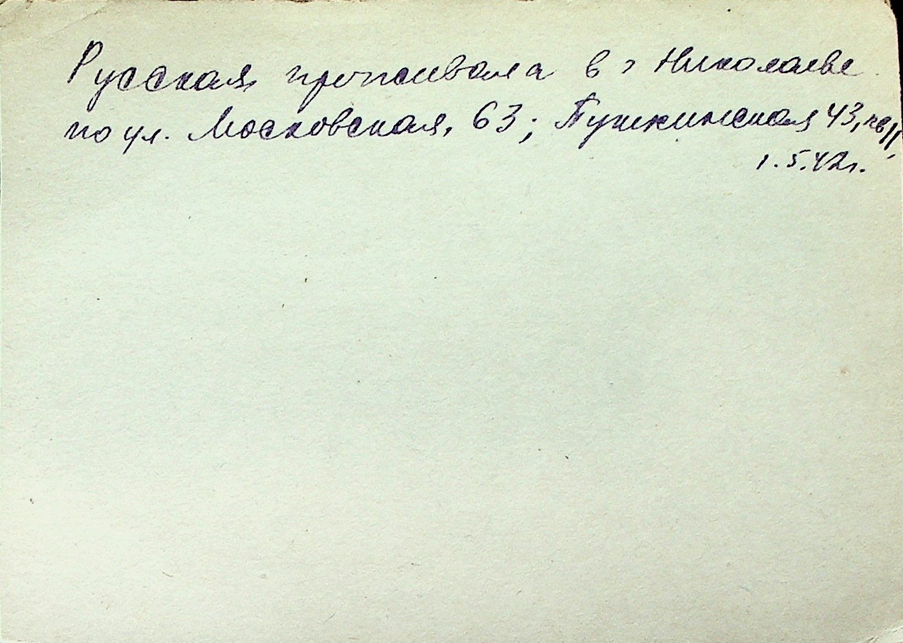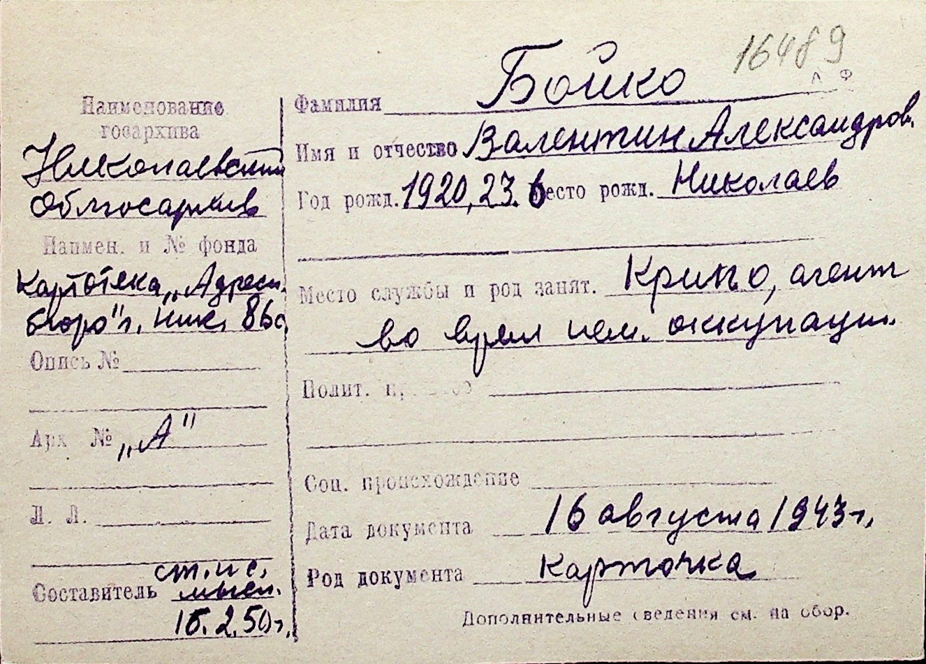 ◦ ◦ Перелік карток на осіб, які мешкали у м. Миколаїв у період окупації 1941–1944 років