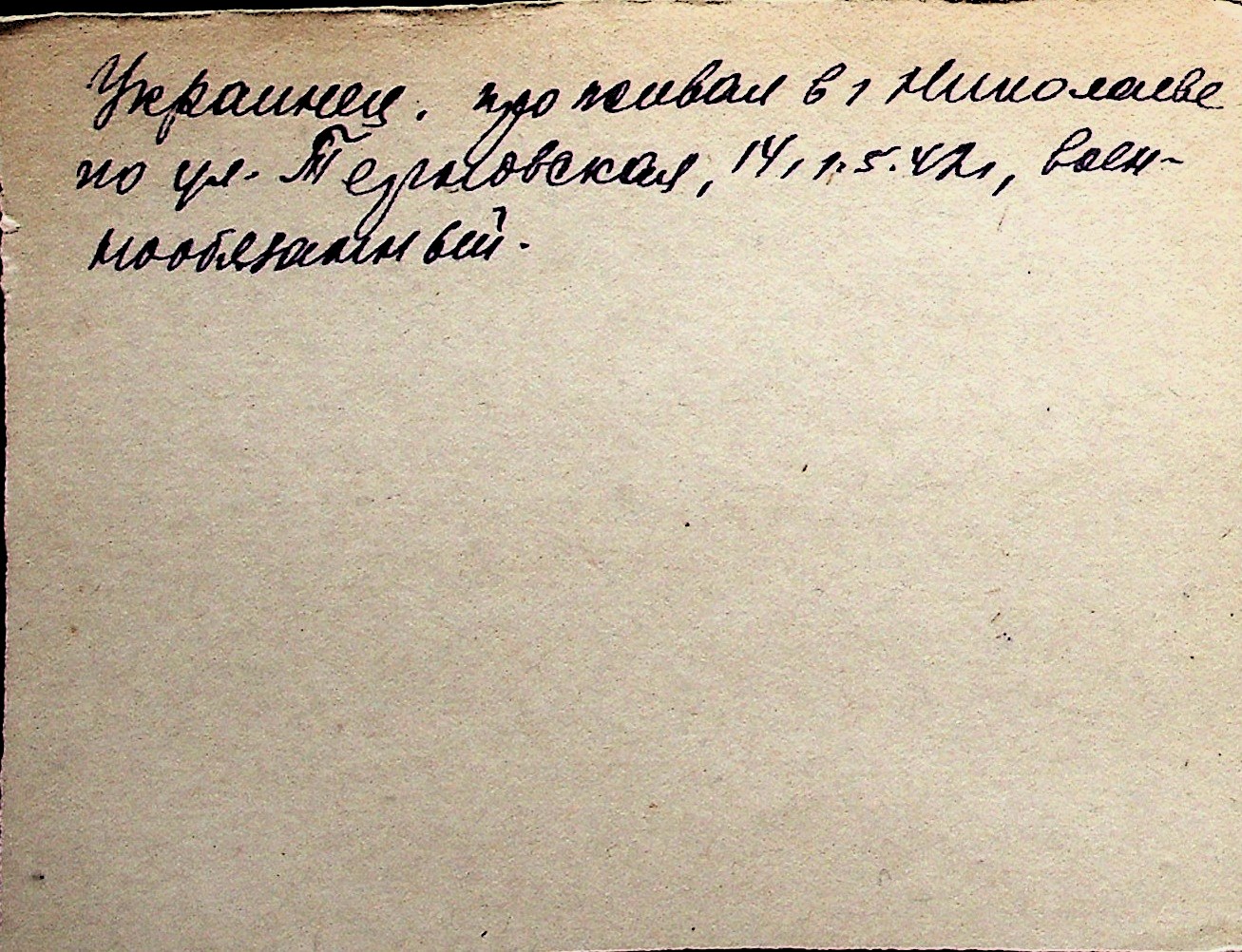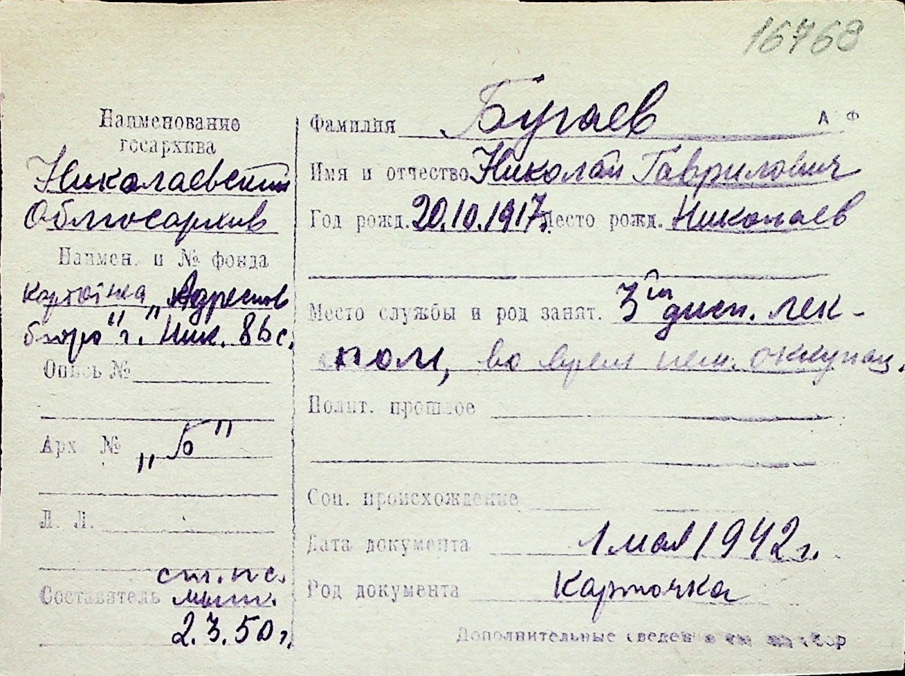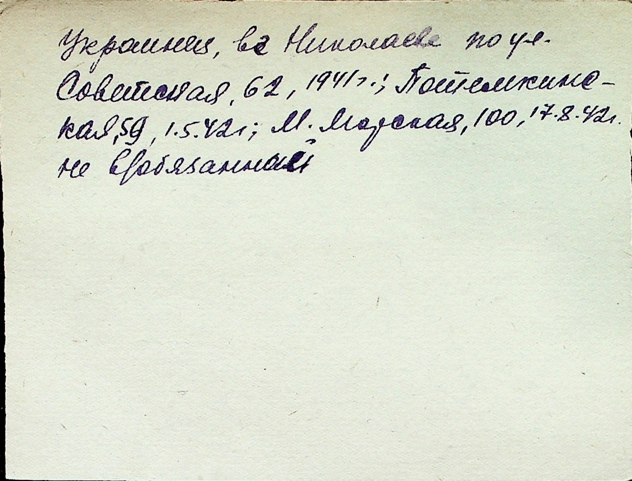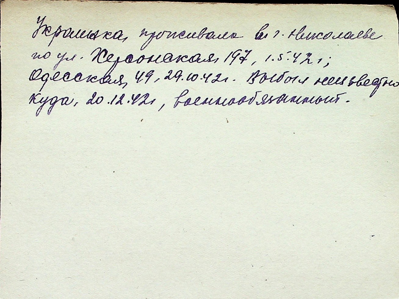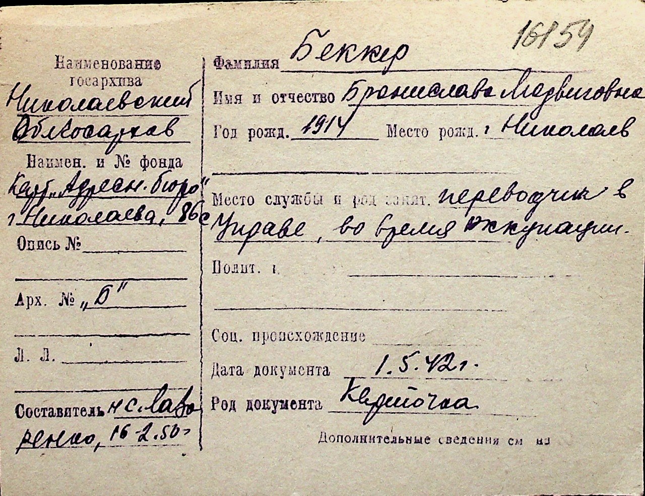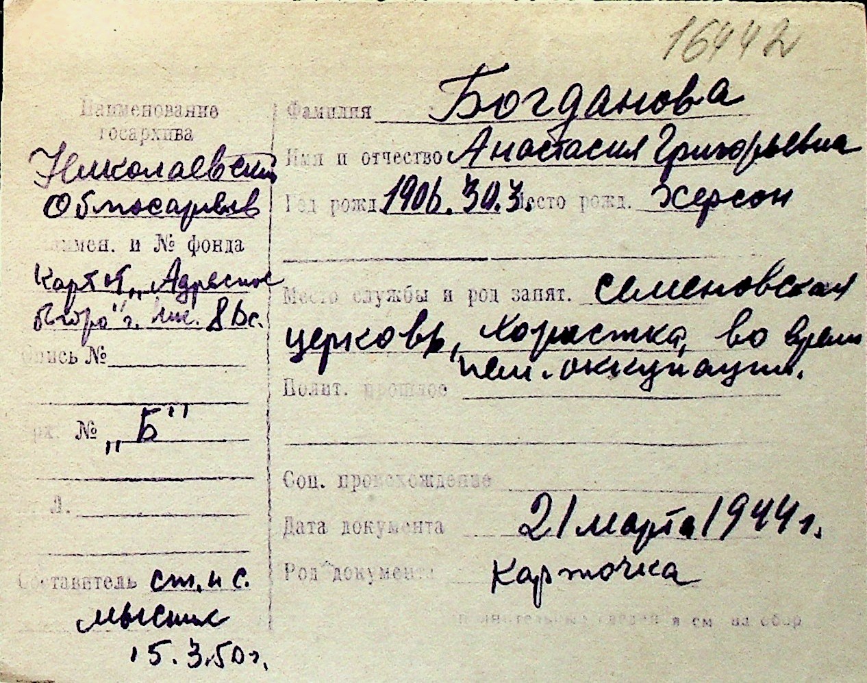 ◦ ◦ Перелік карток на осіб, які мешкали у м. Миколаїв у період окупації 1941–1944 років