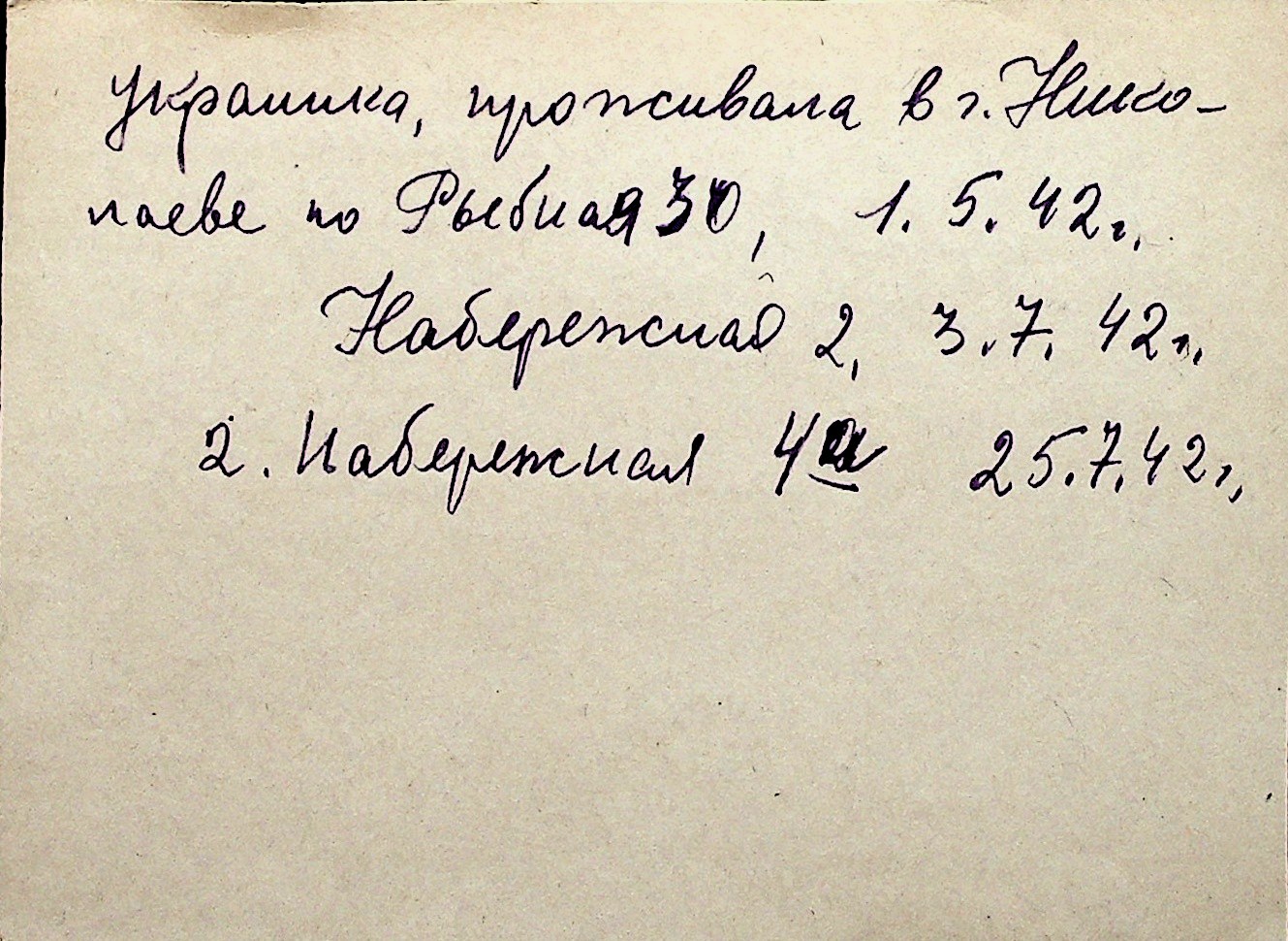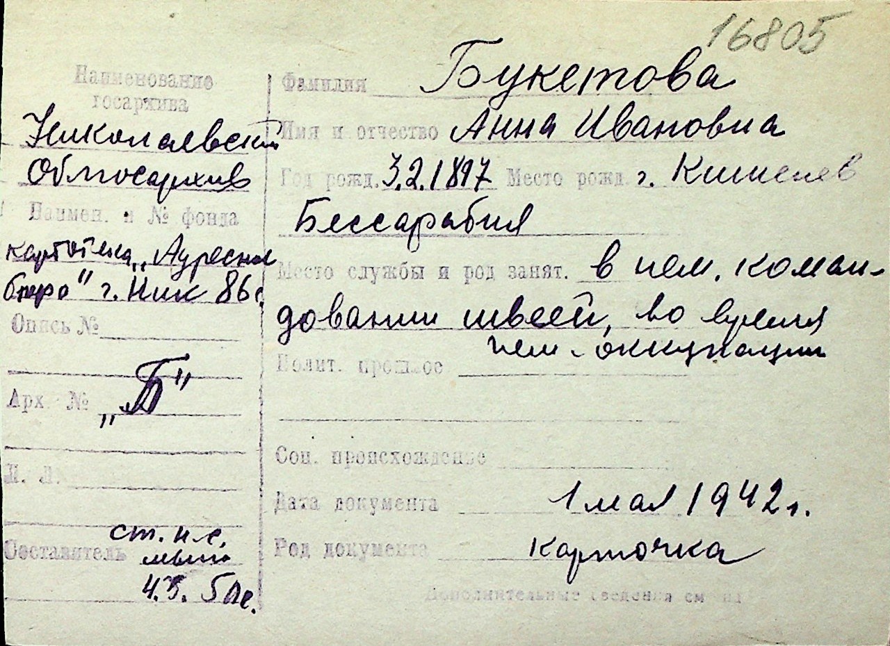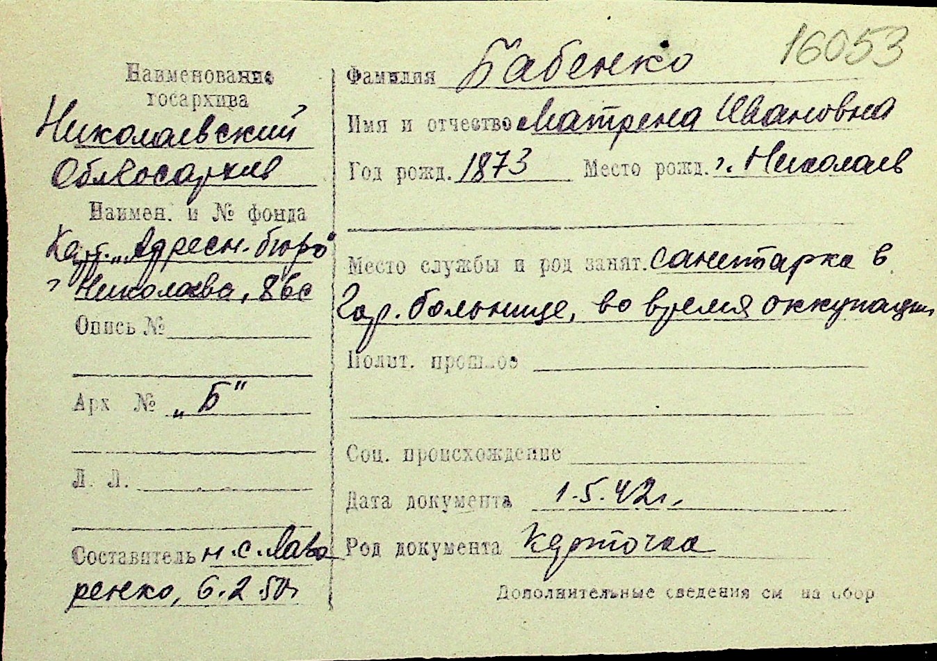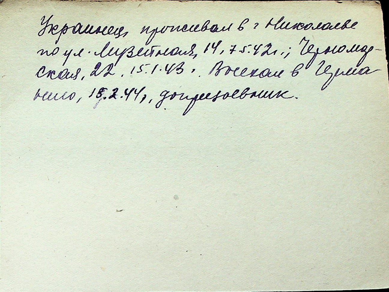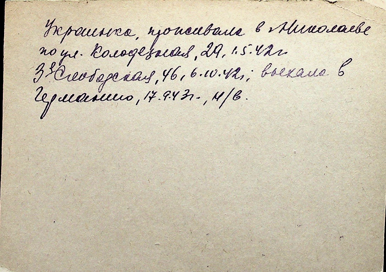 ◦ ◦ Перелік карток на осіб, які мешкали у м. Миколаїв у період окупації 1941–1944 років