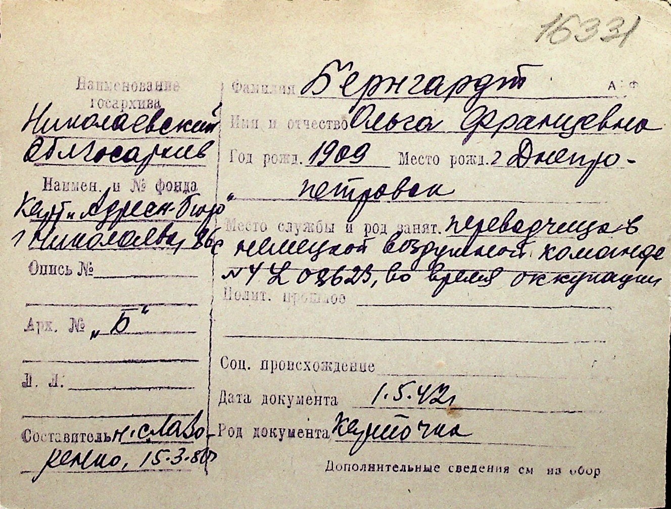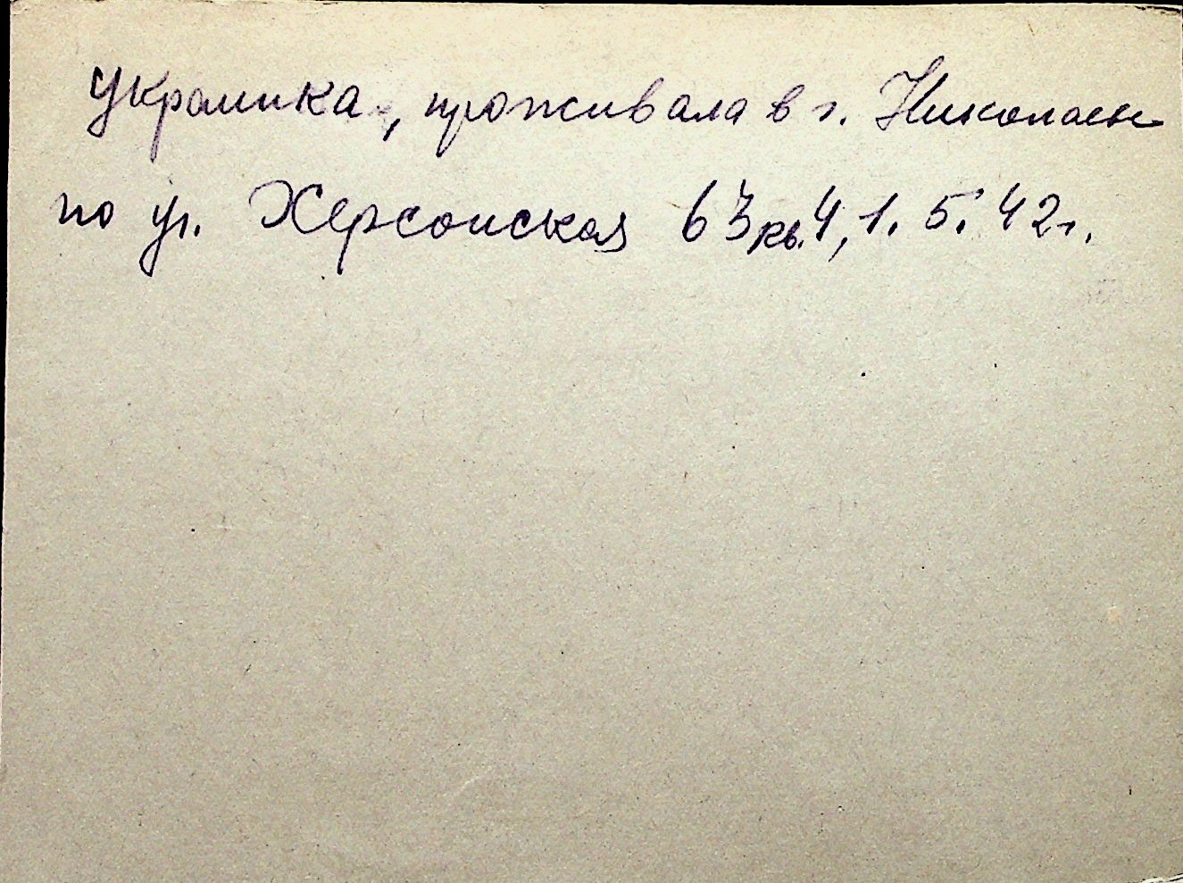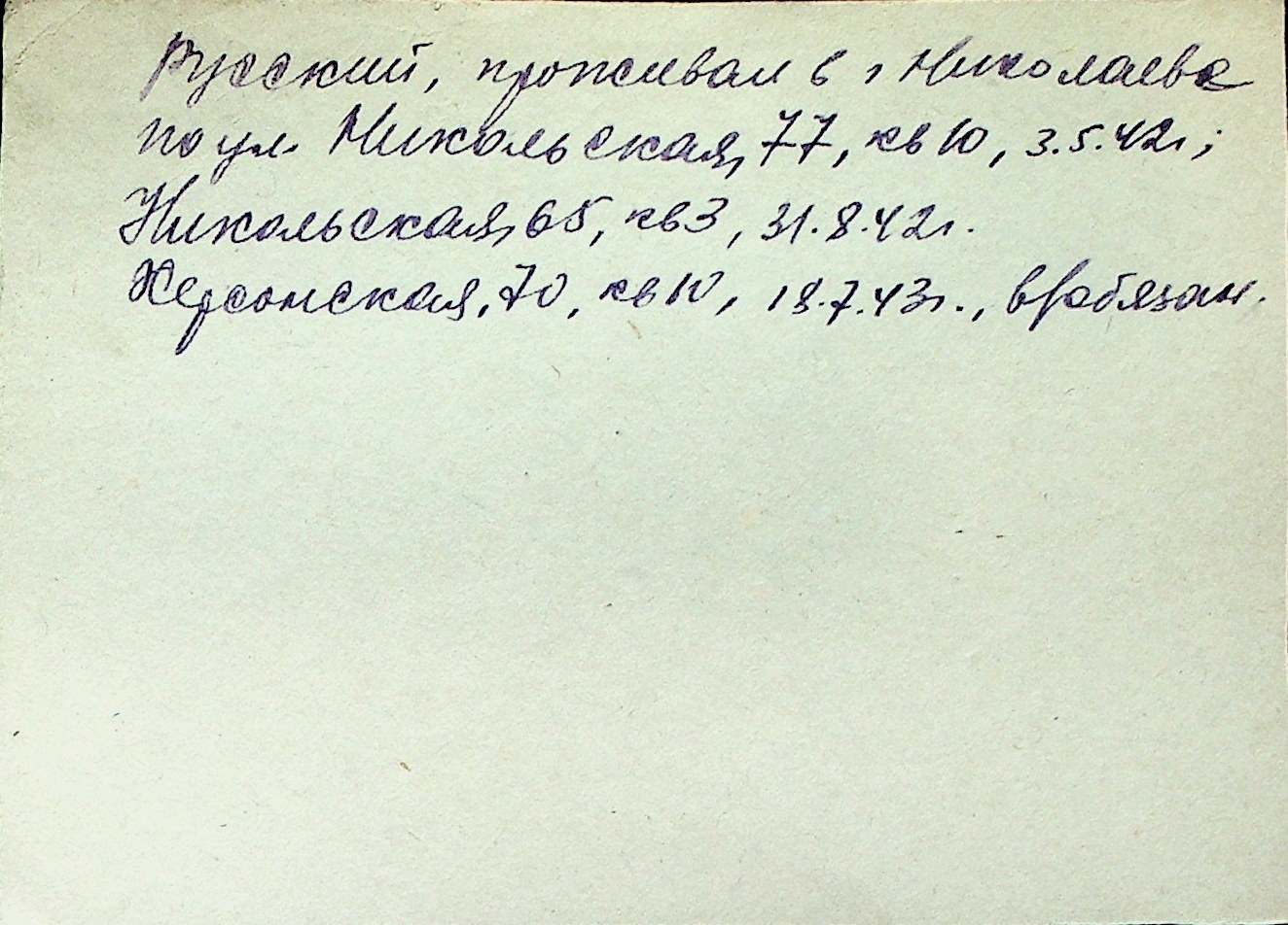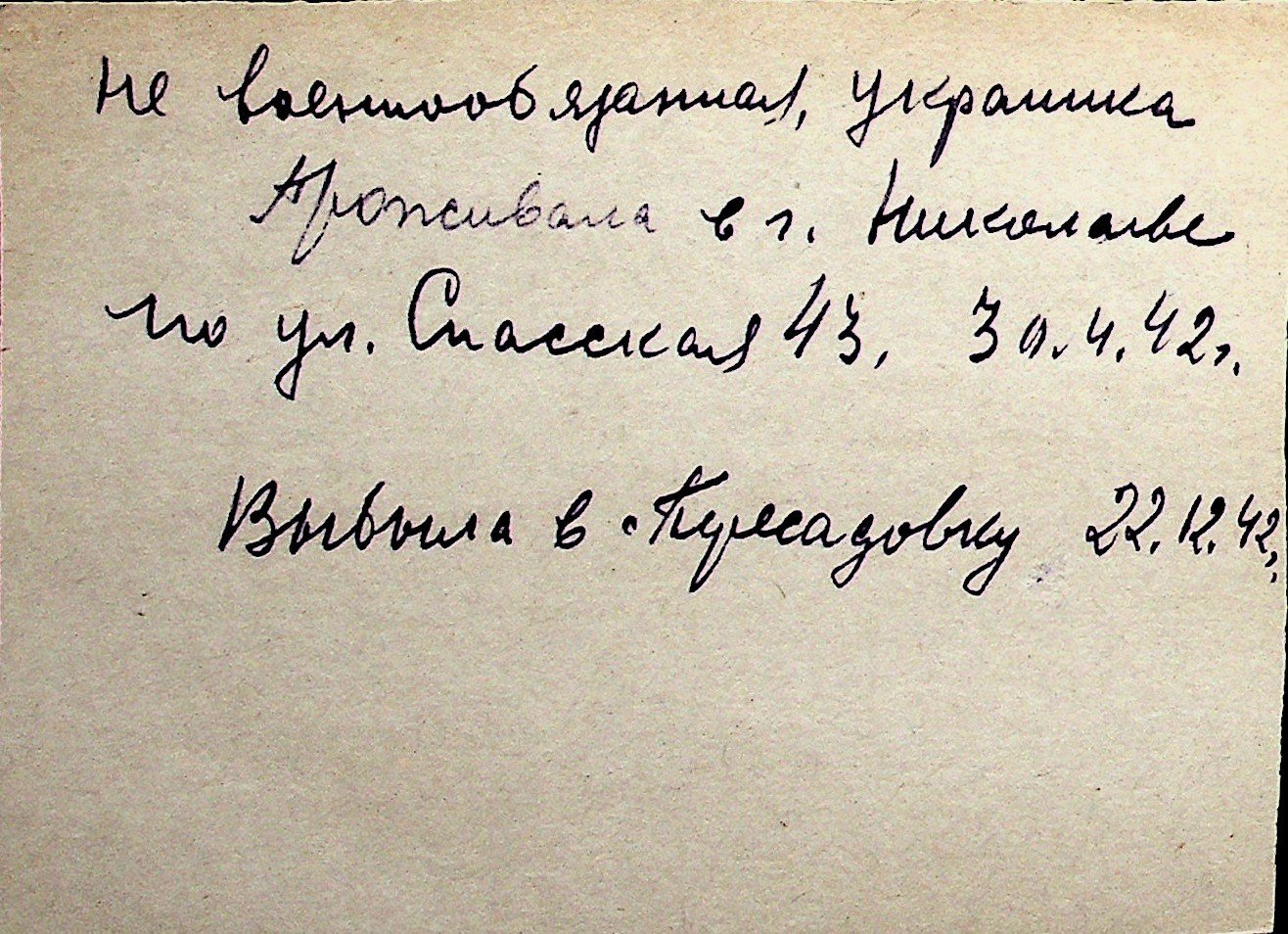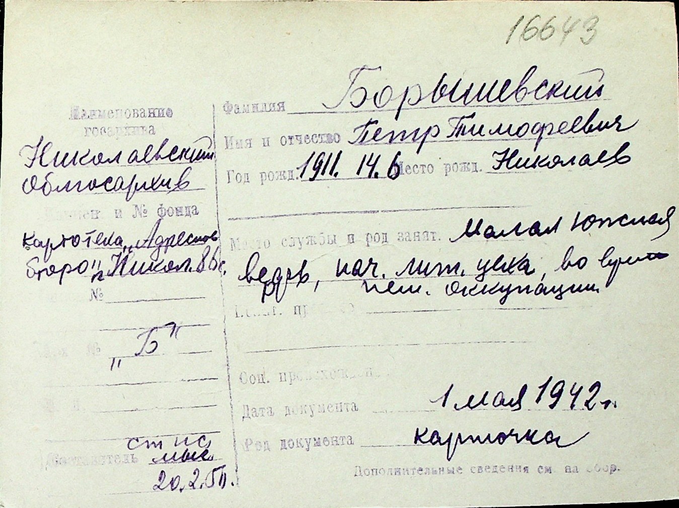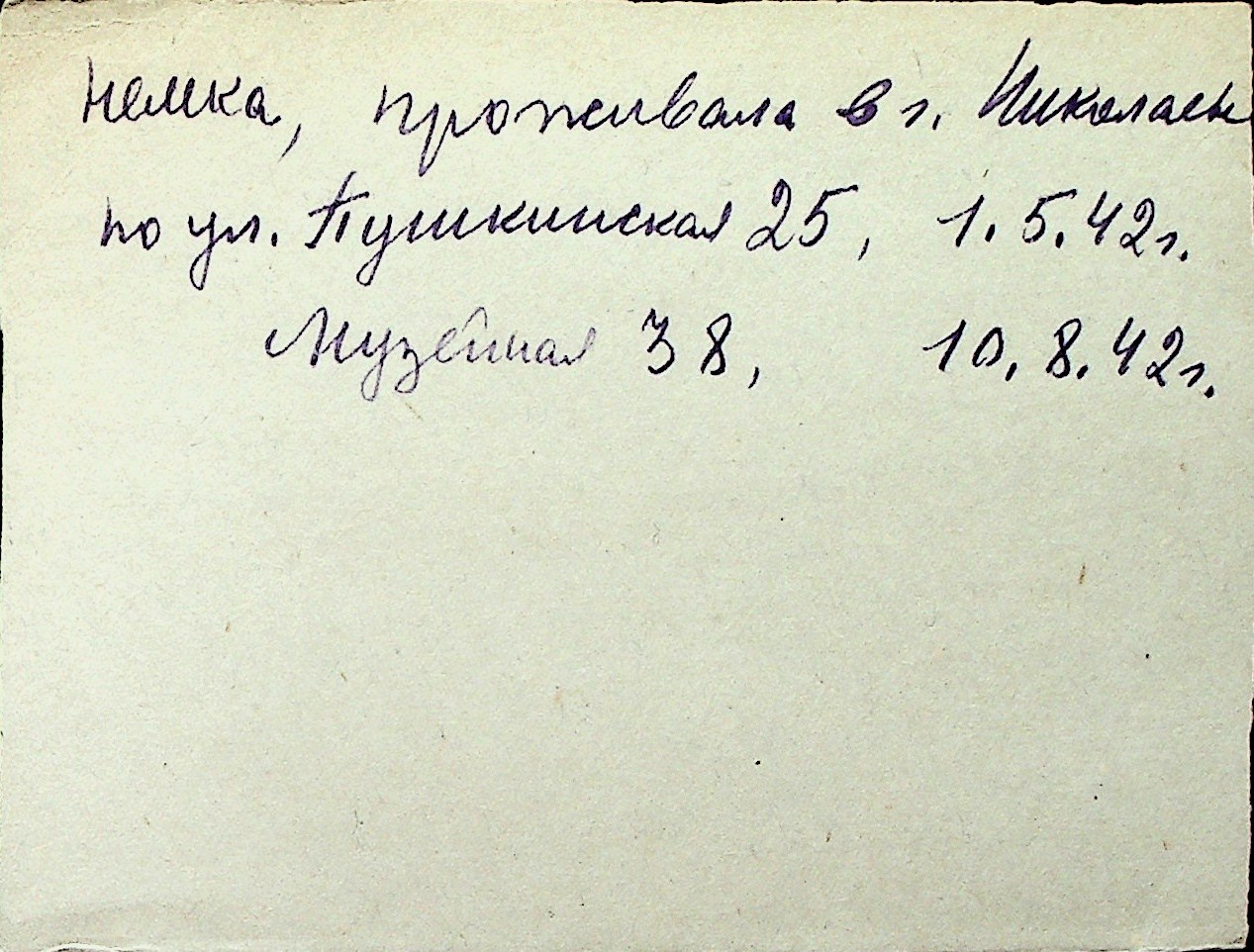 ◦ ◦ Перелік карток на осіб, які мешкали у м. Миколаїв у період окупації 1941–1944 років