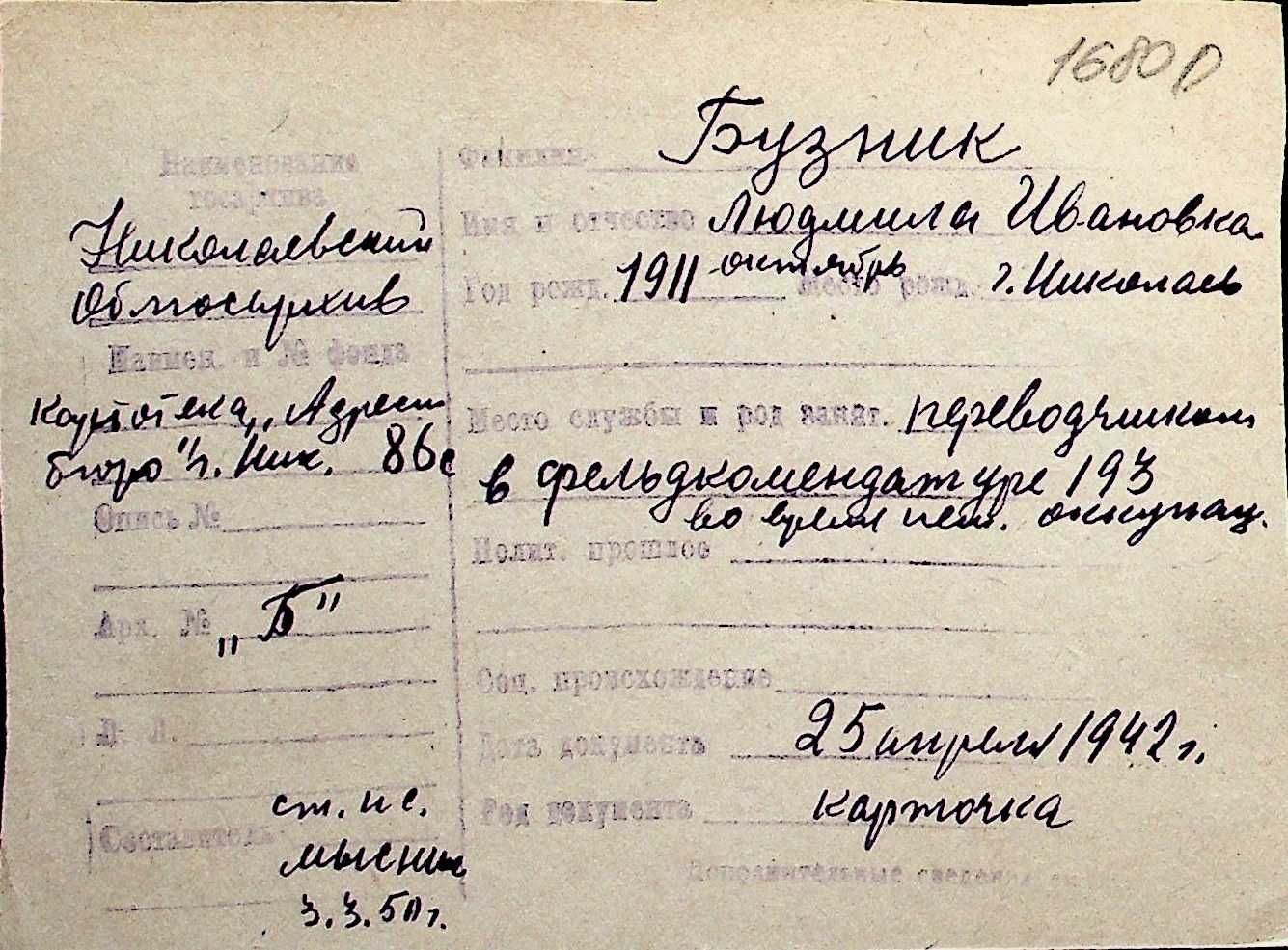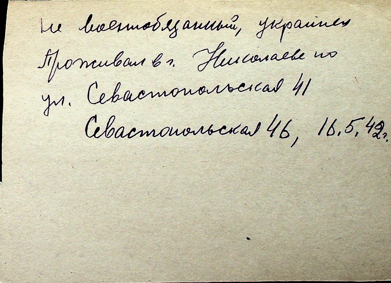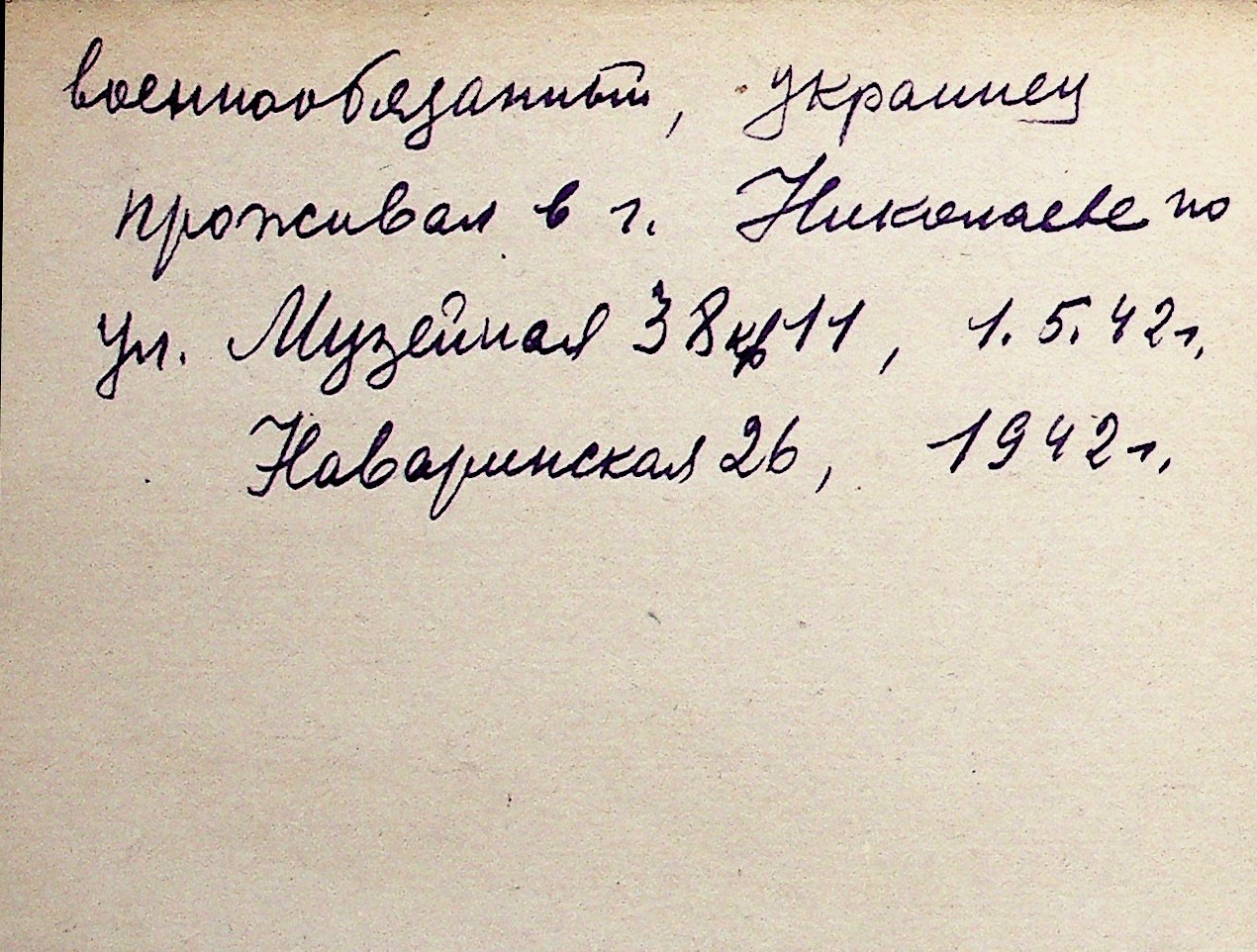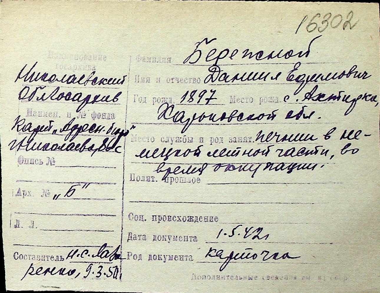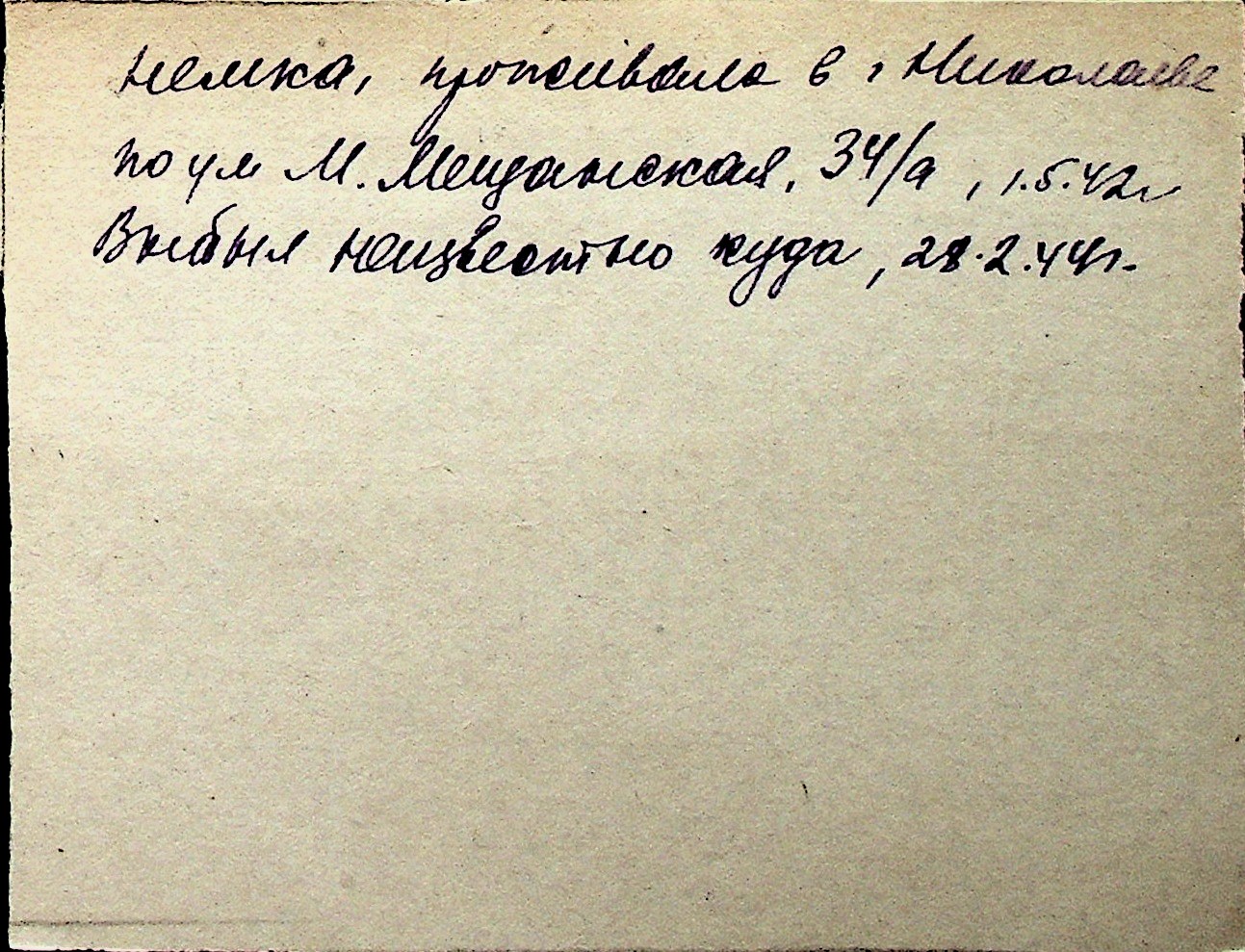 ◦ ◦ Перелік карток на осіб, які мешкали у м. Миколаїв у період окупації 1941–1944 років
