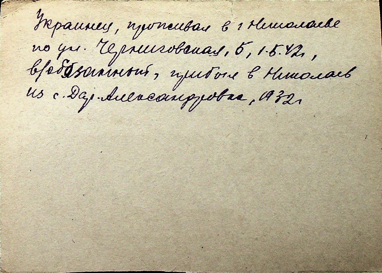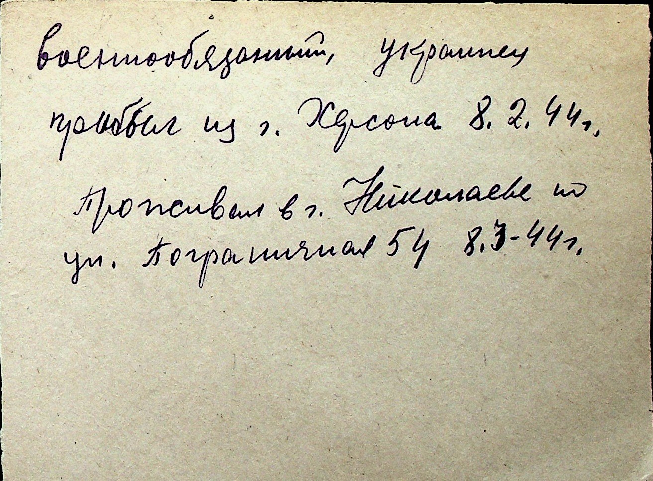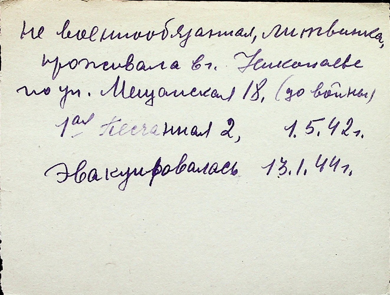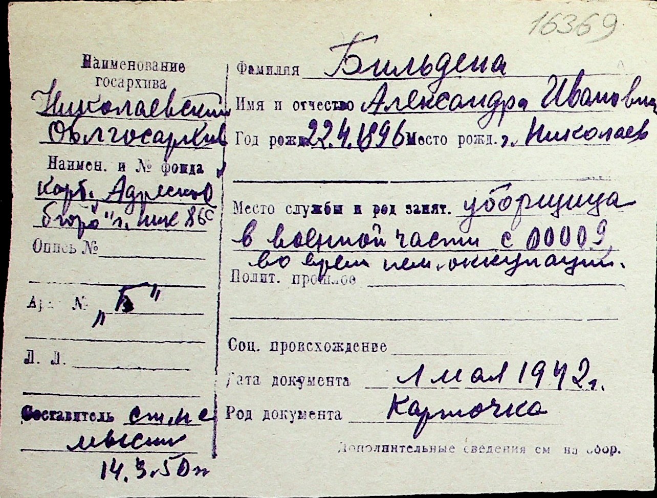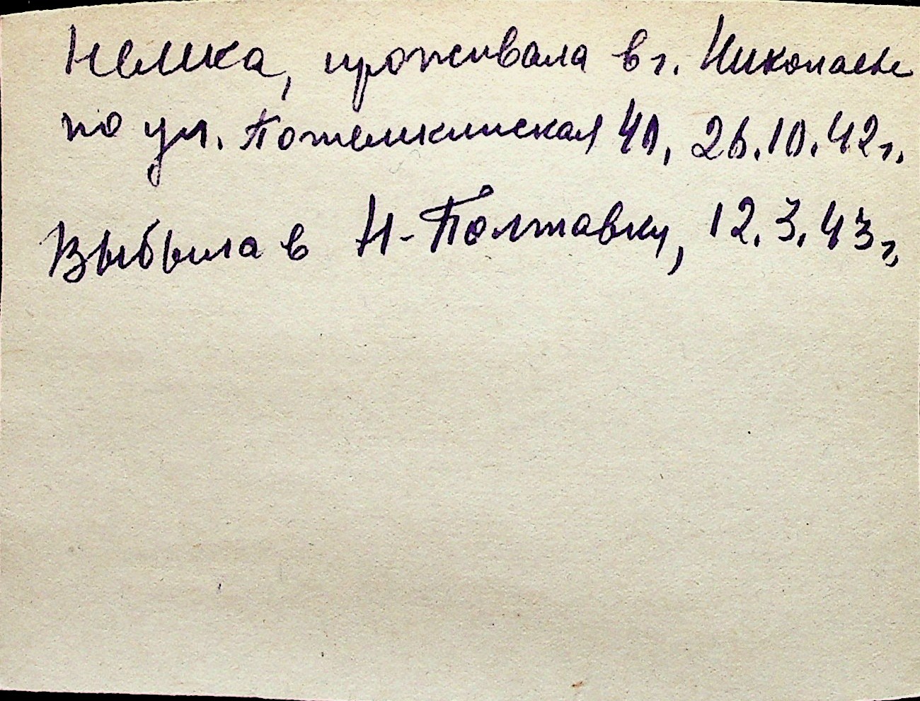 ◦ ◦ Перелік карток на осіб, які мешкали у м. Миколаїв у період окупації 1941–1944 років