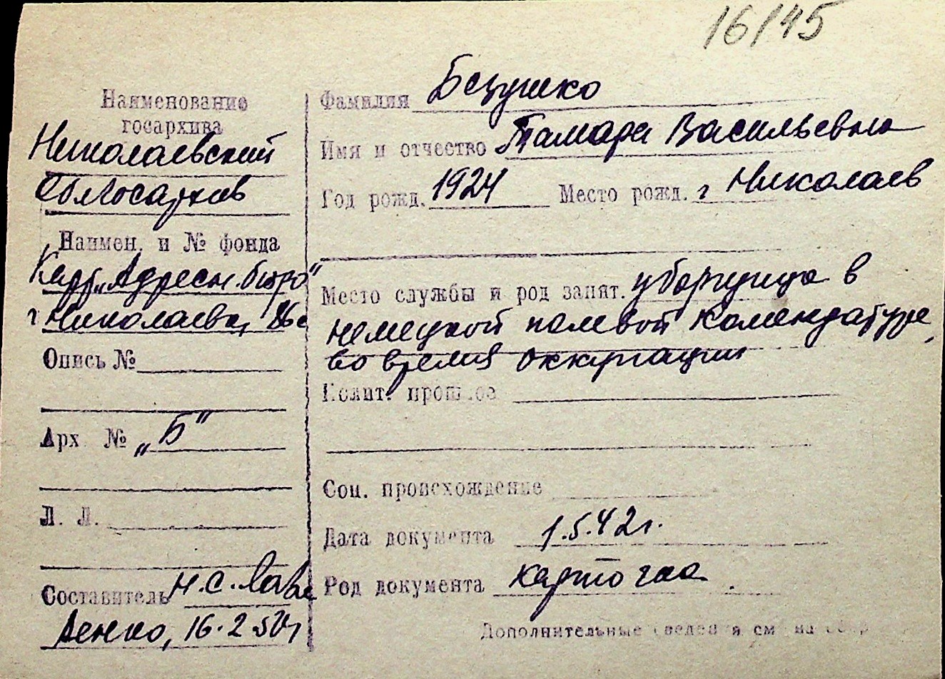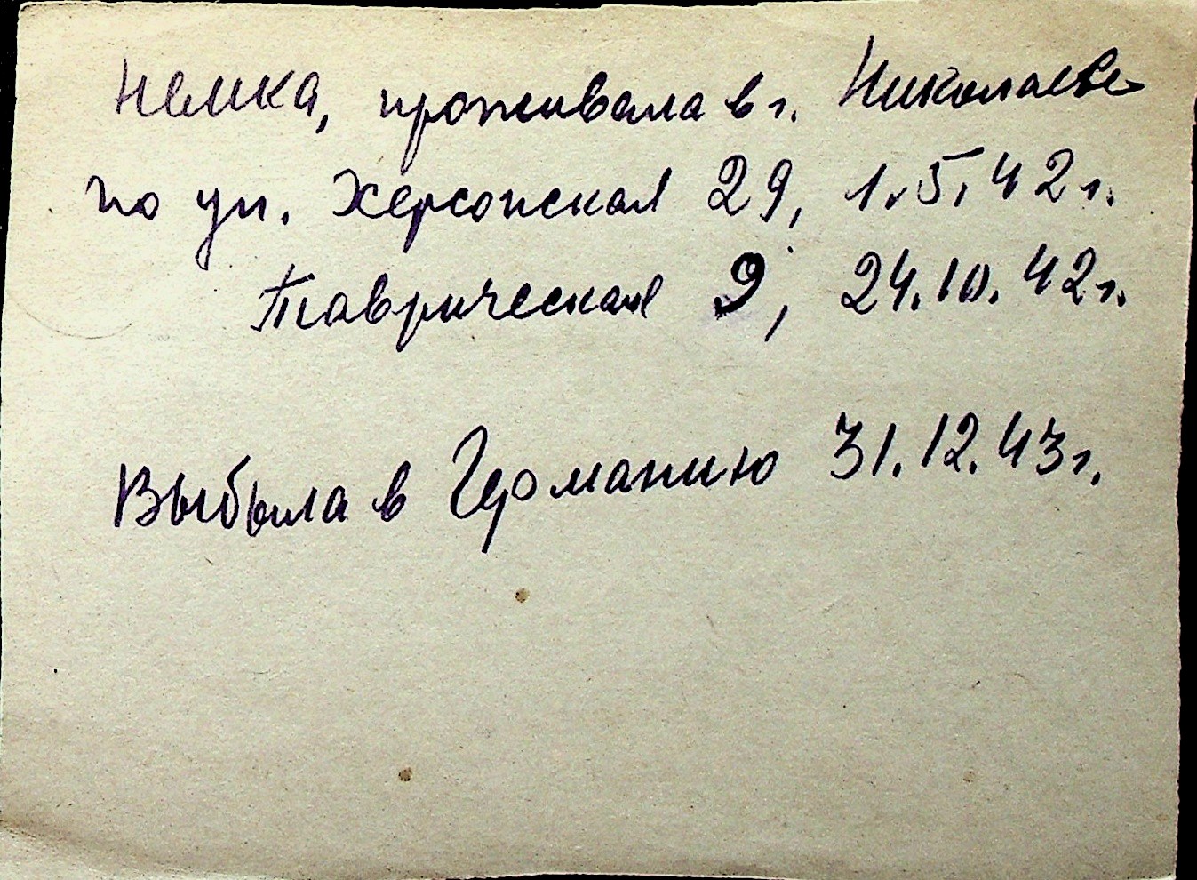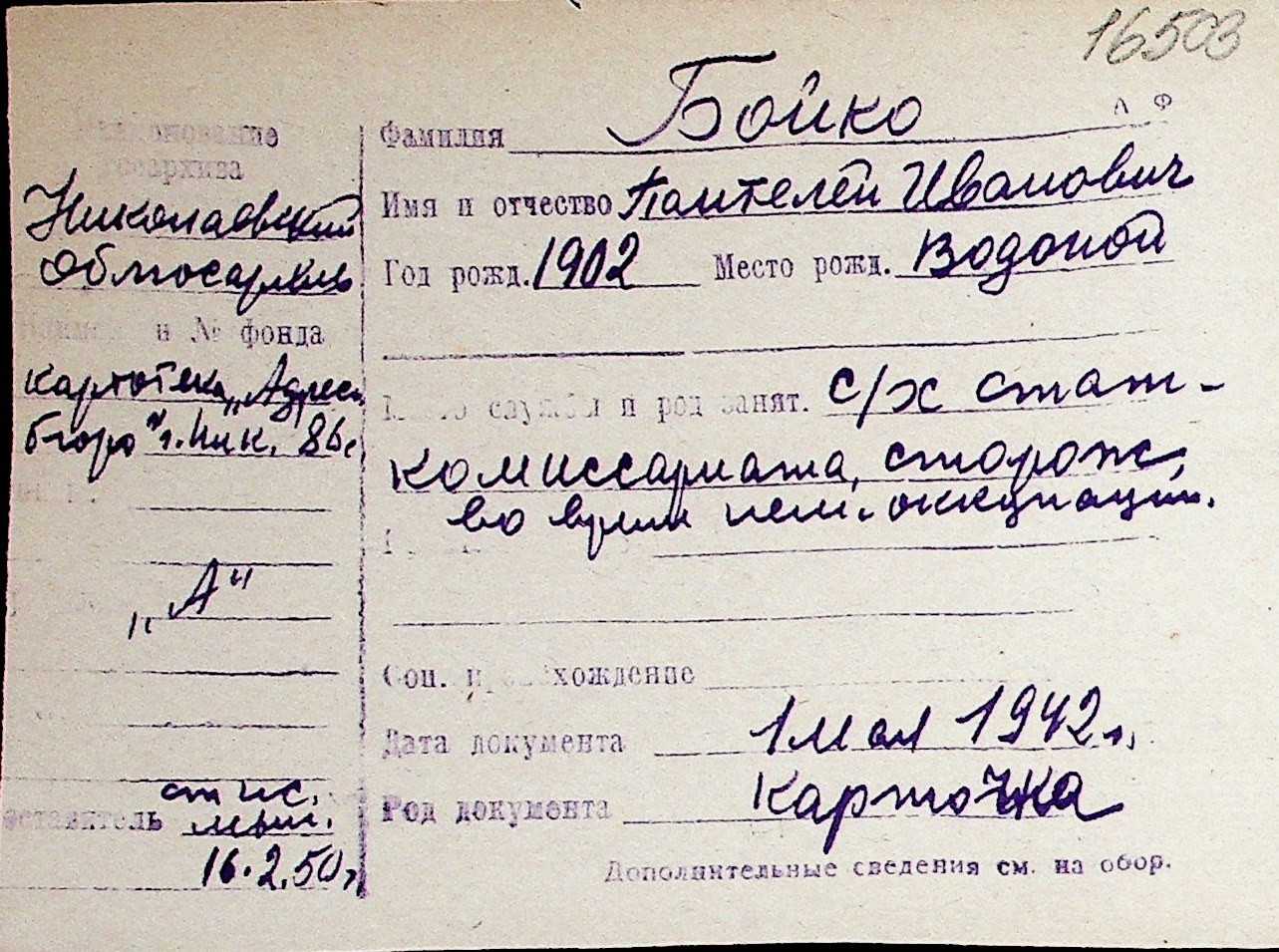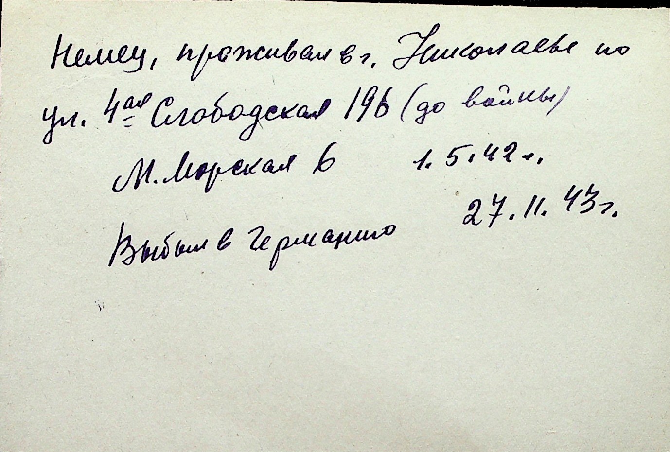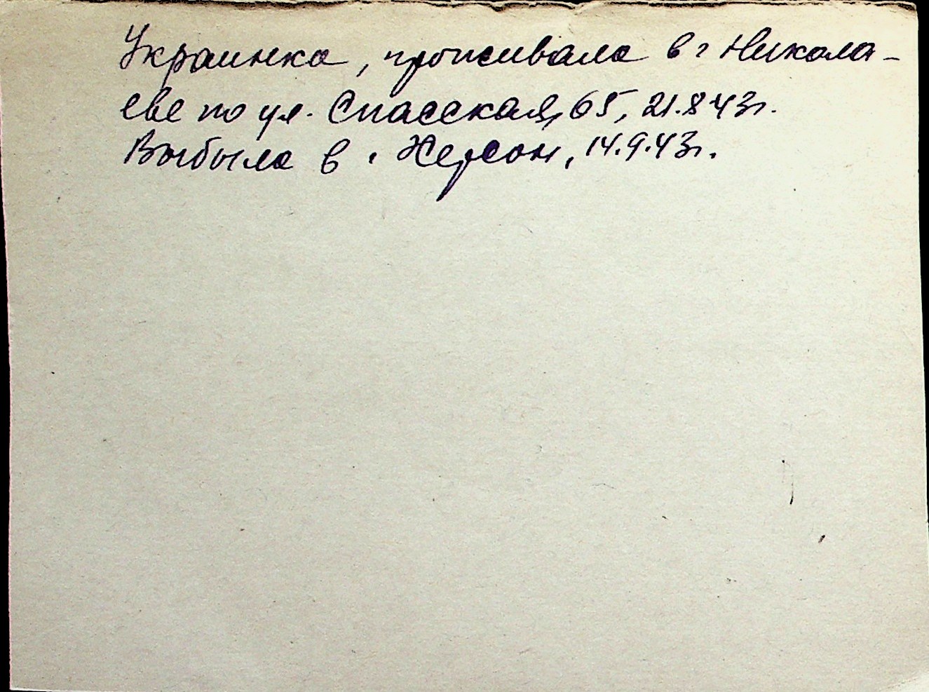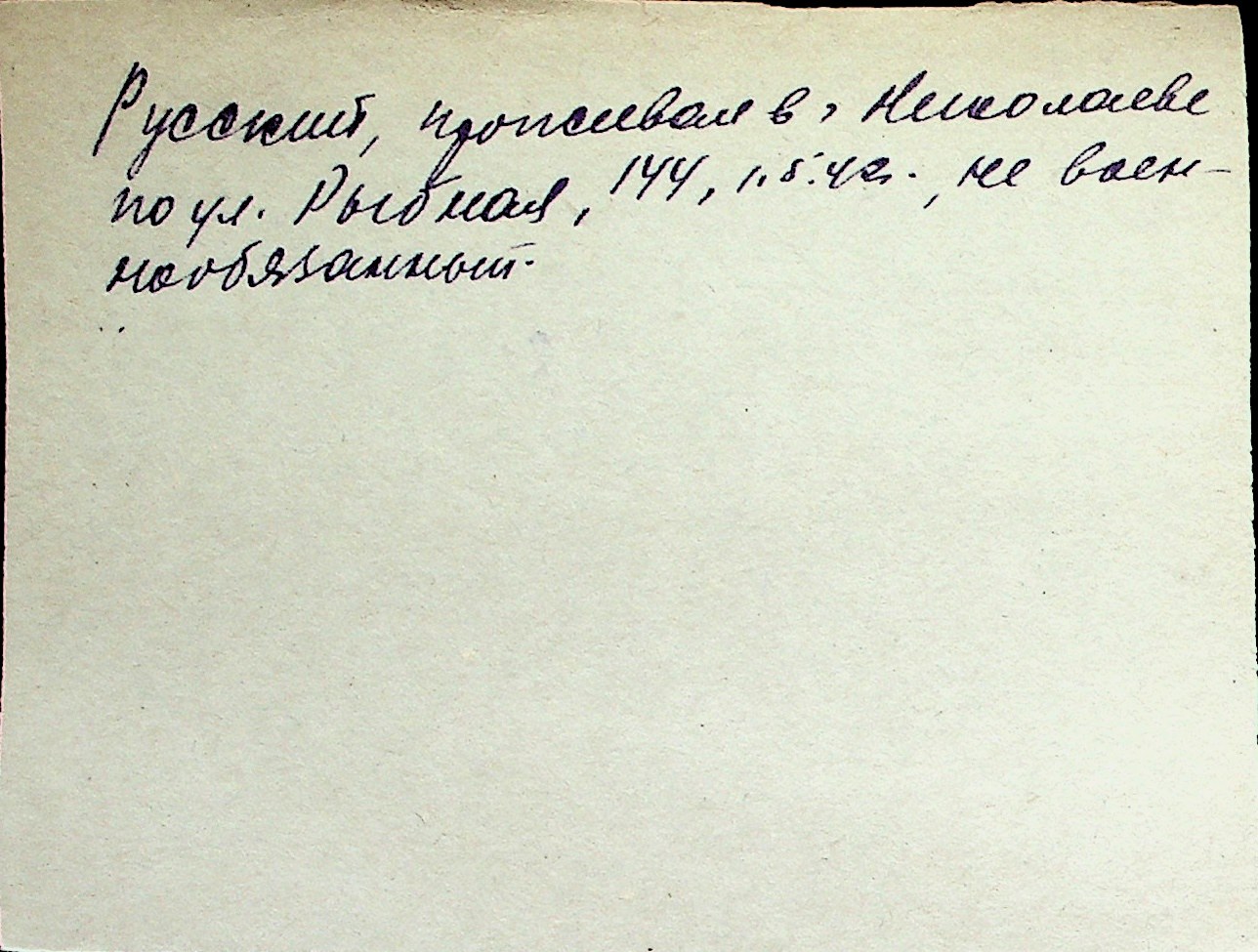 ◦ ◦ Перелік карток на осіб, які мешкали у м. Миколаїв у період окупації 1941–1944 років