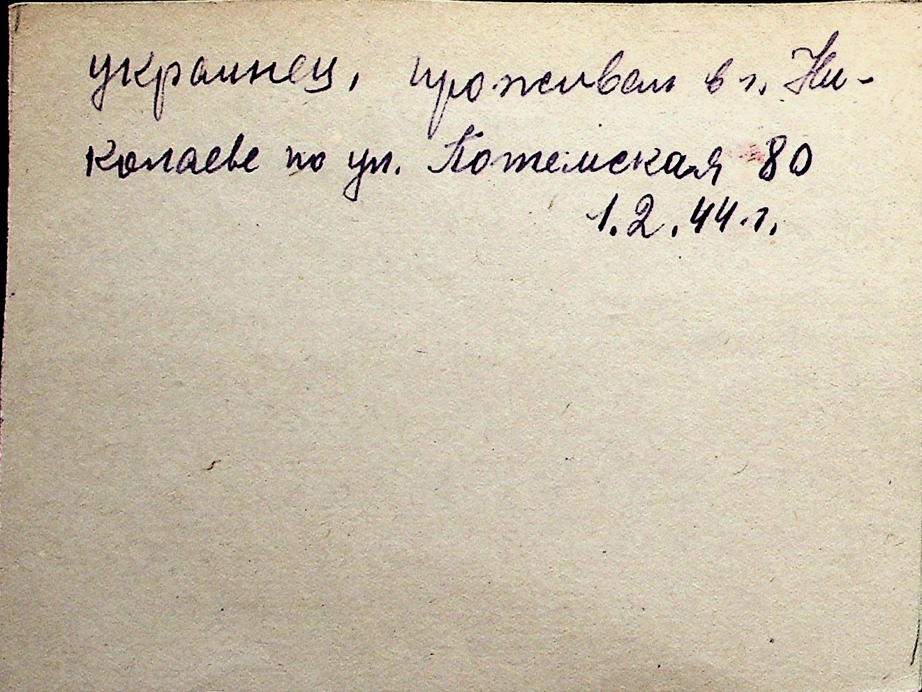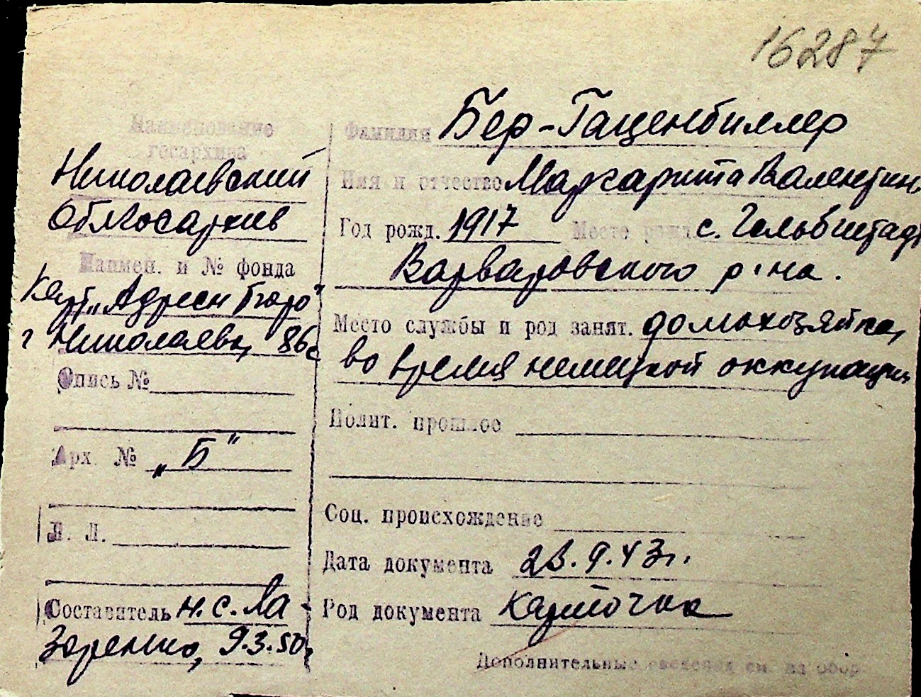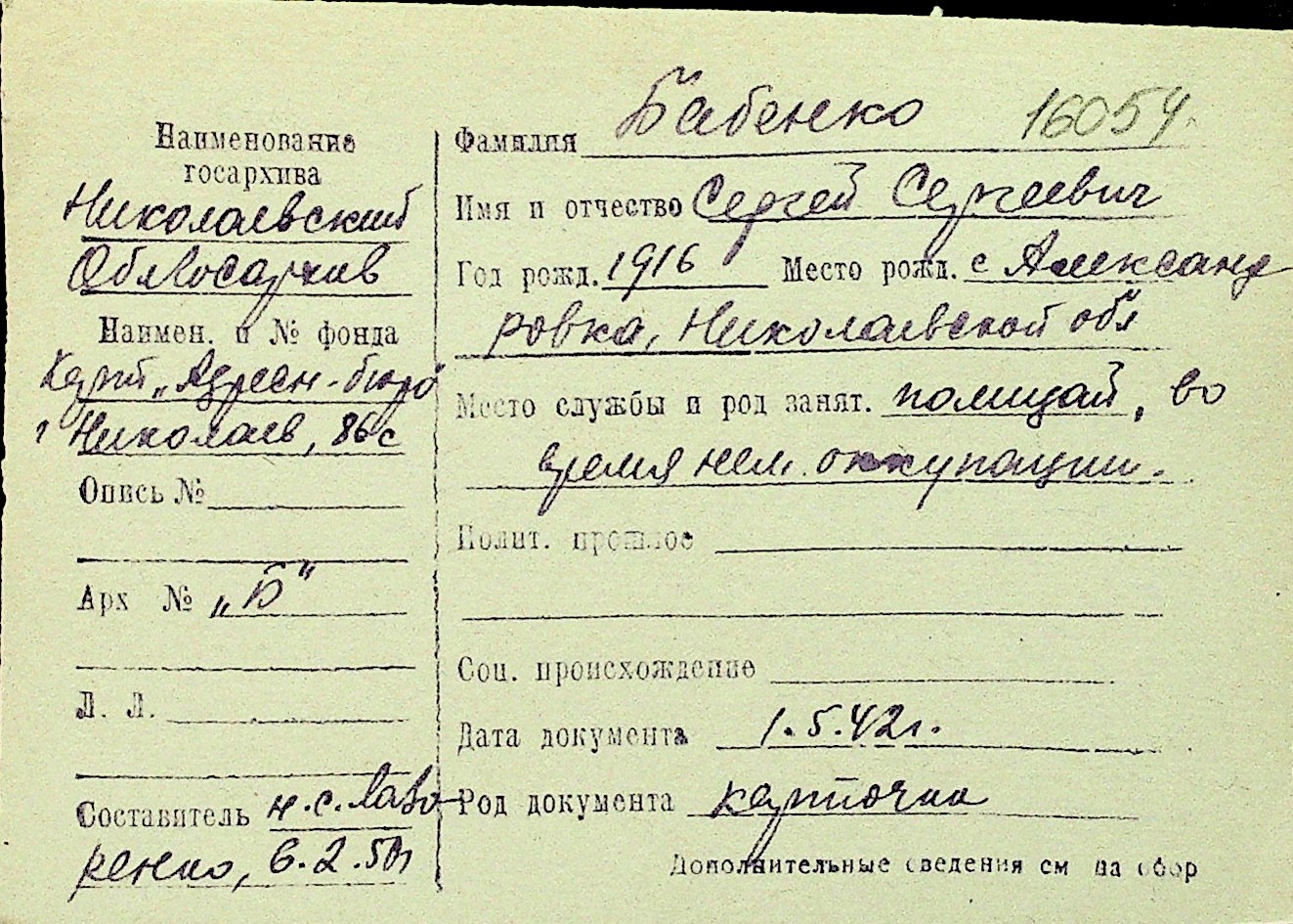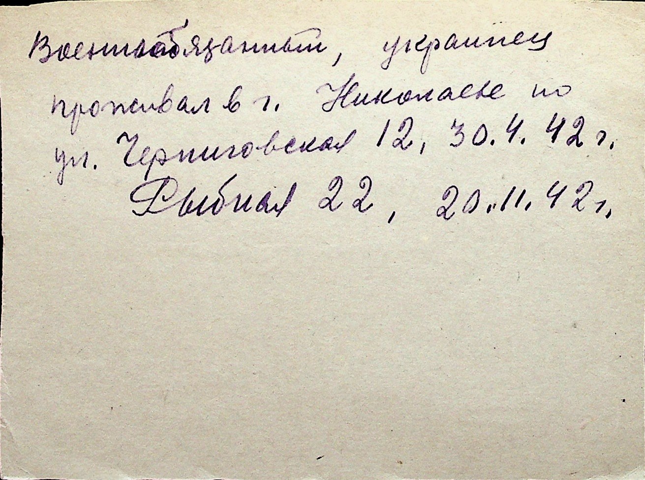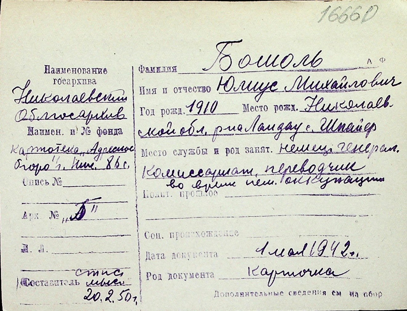◦ ◦ Перелік карток на осіб, які мешкали у м. Миколаїв у період окупації 1941–1944 років