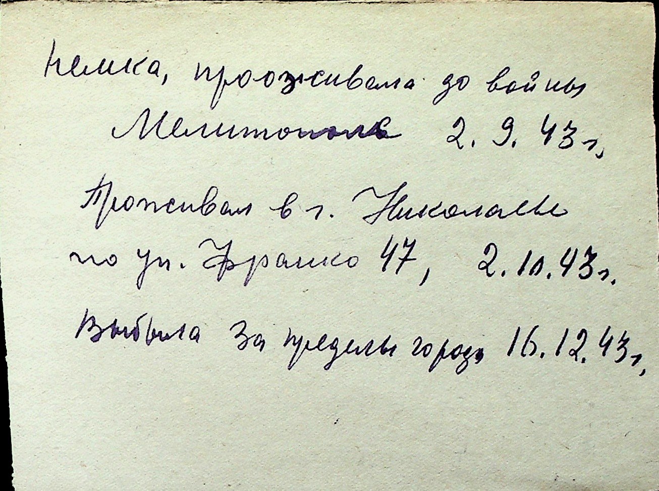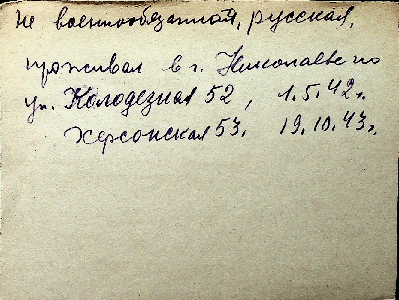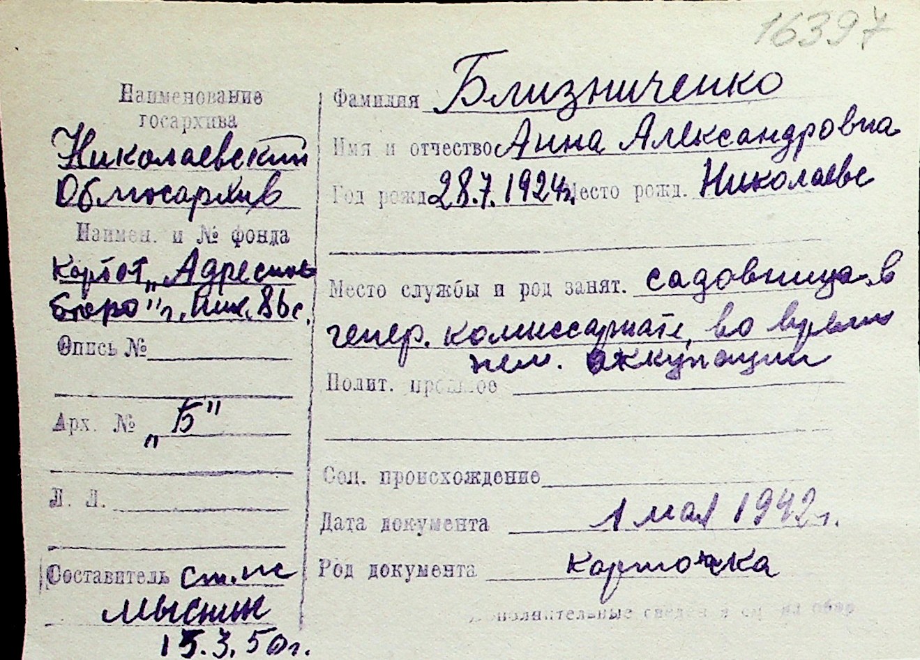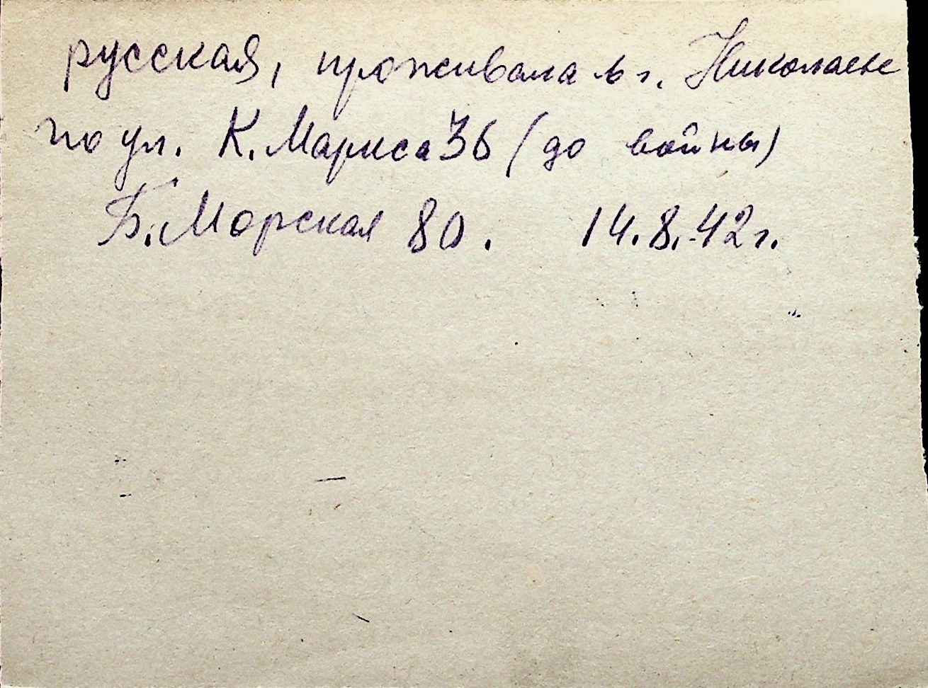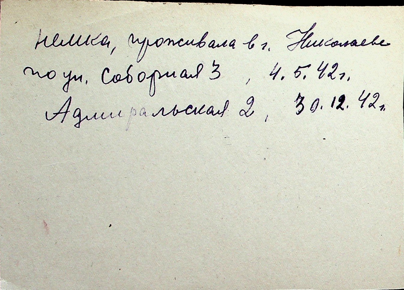 ◦ ◦ Перелік карток на осіб, які мешкали у м. Миколаїв у період окупації 1941–1944 років