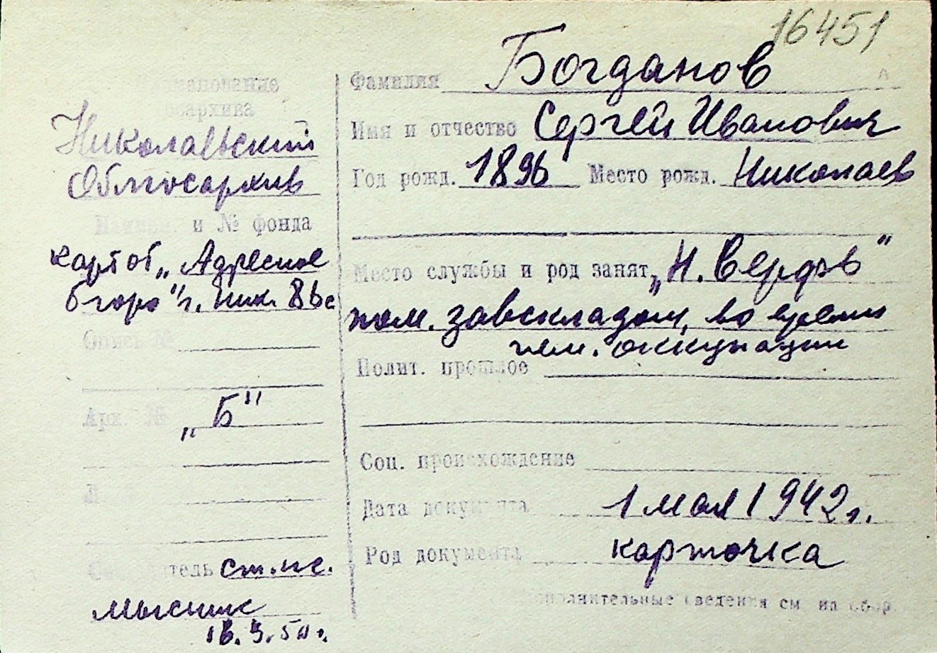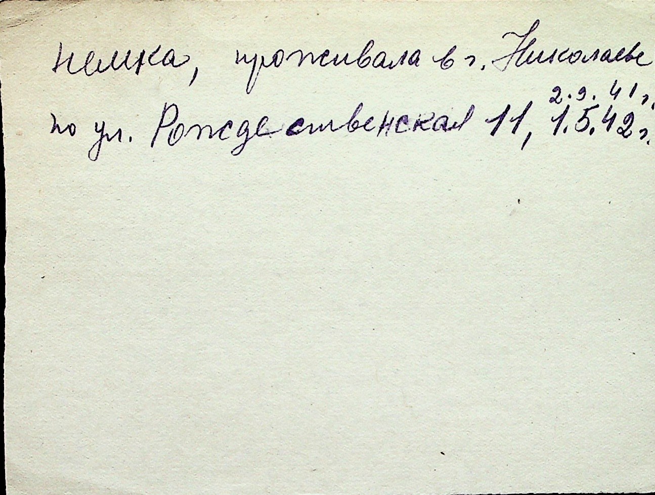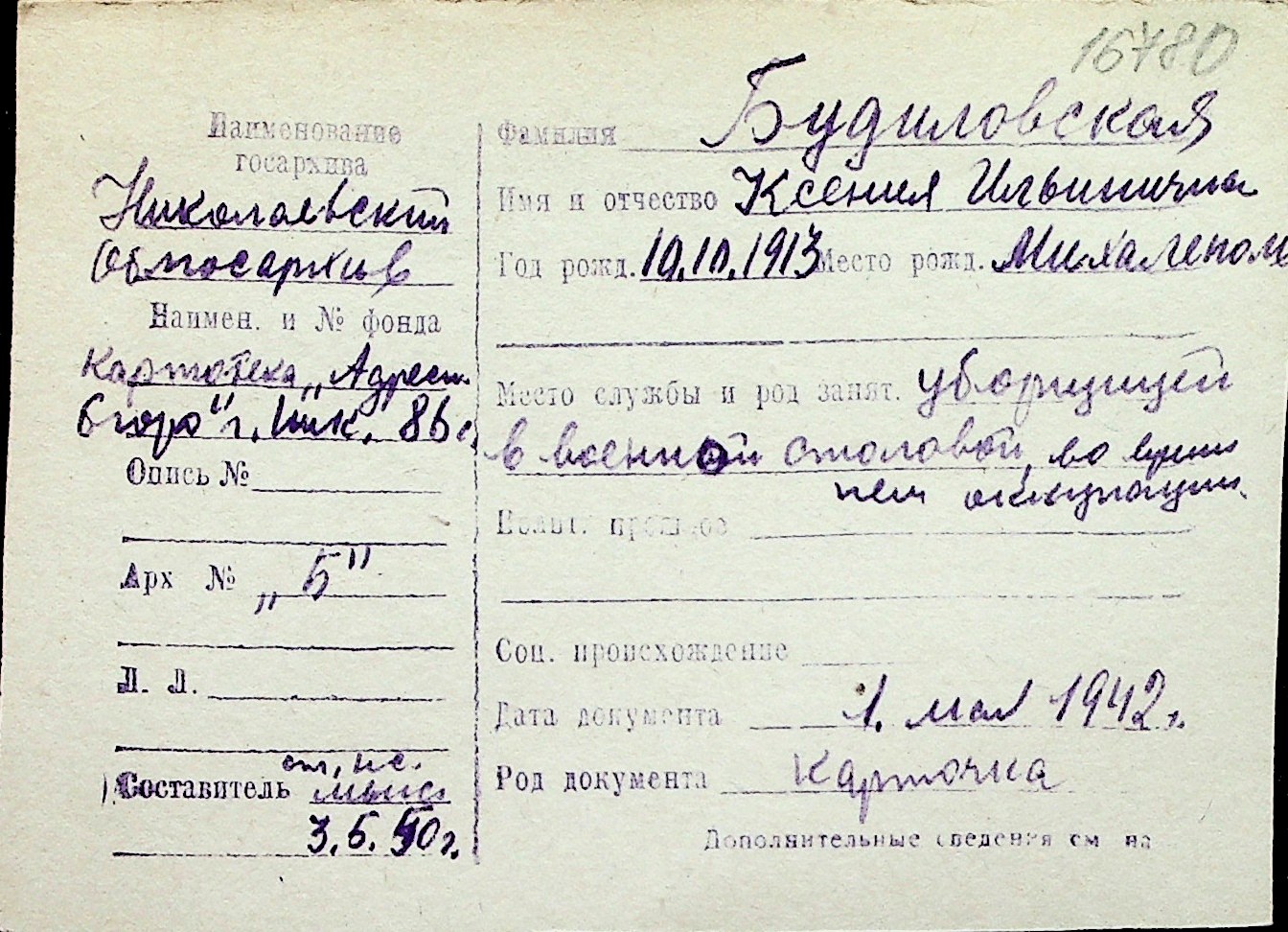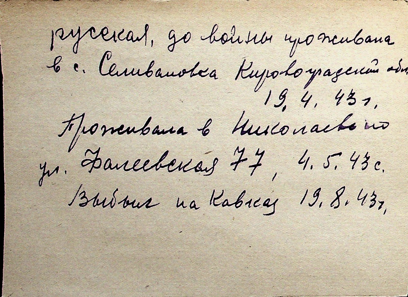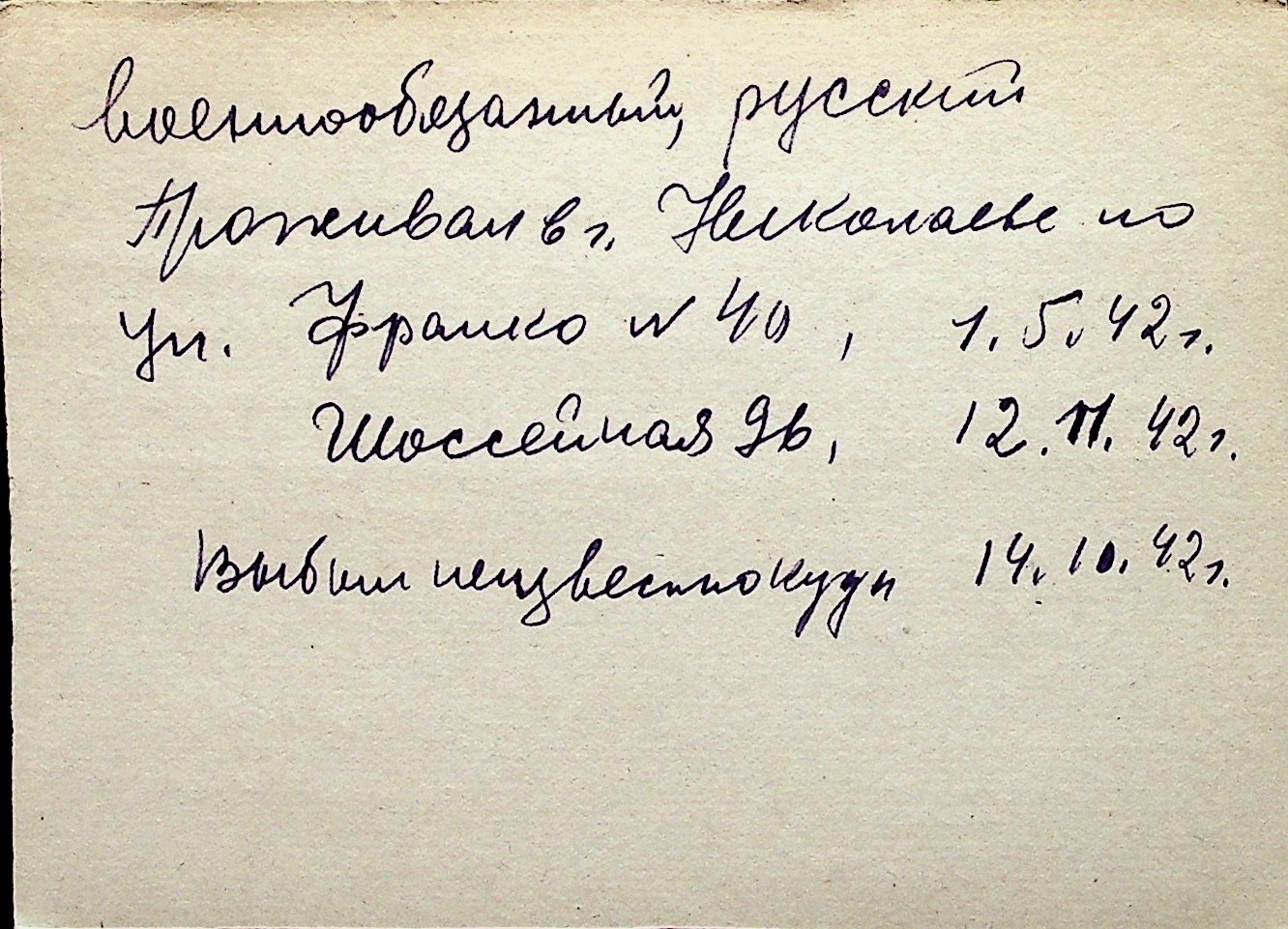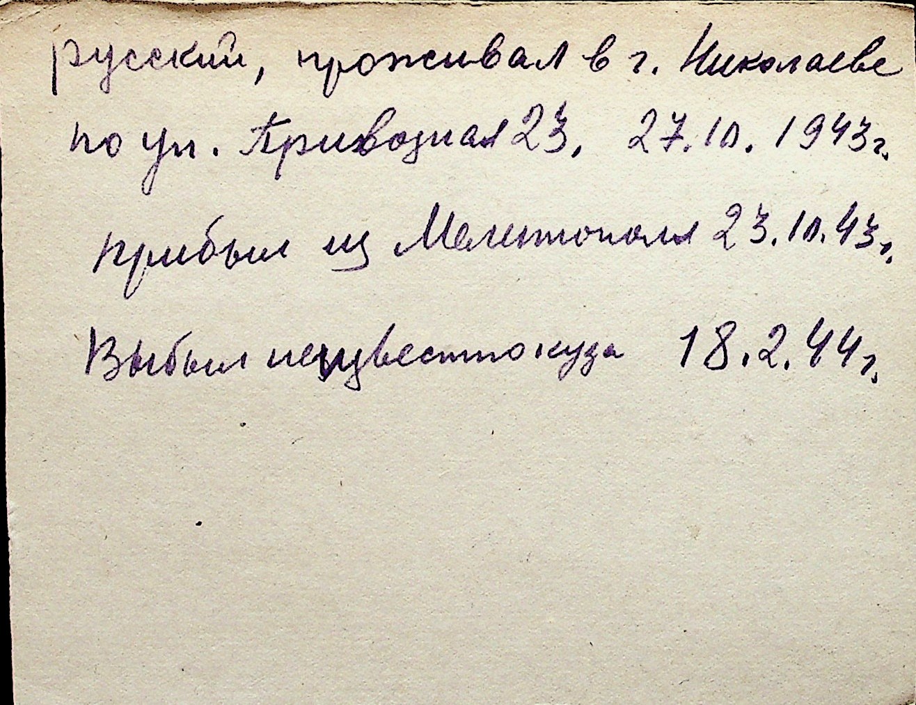 ◦ ◦ Перелік карток на осіб, які мешкали у м. Миколаїв у період окупації 1941–1944 років