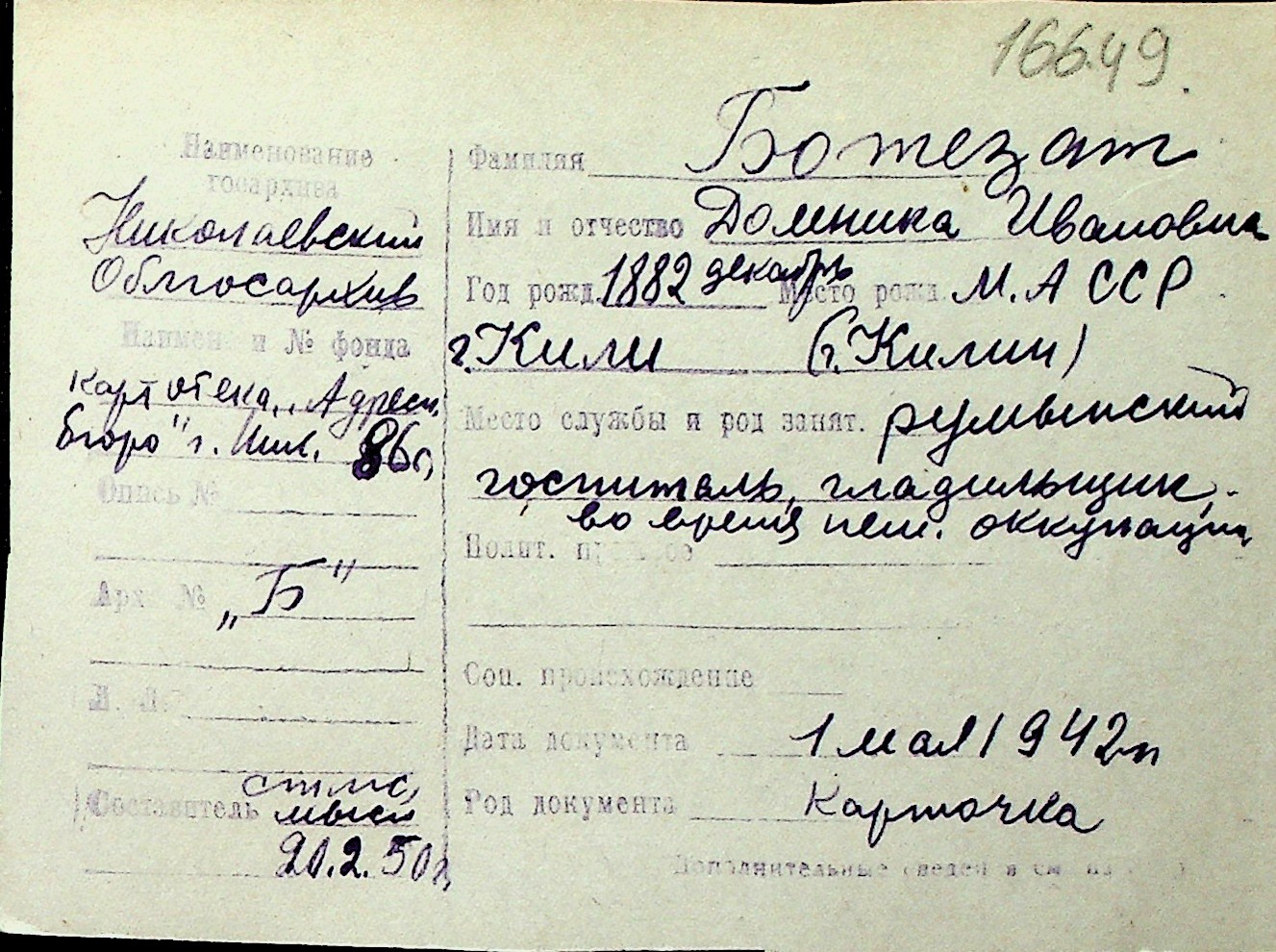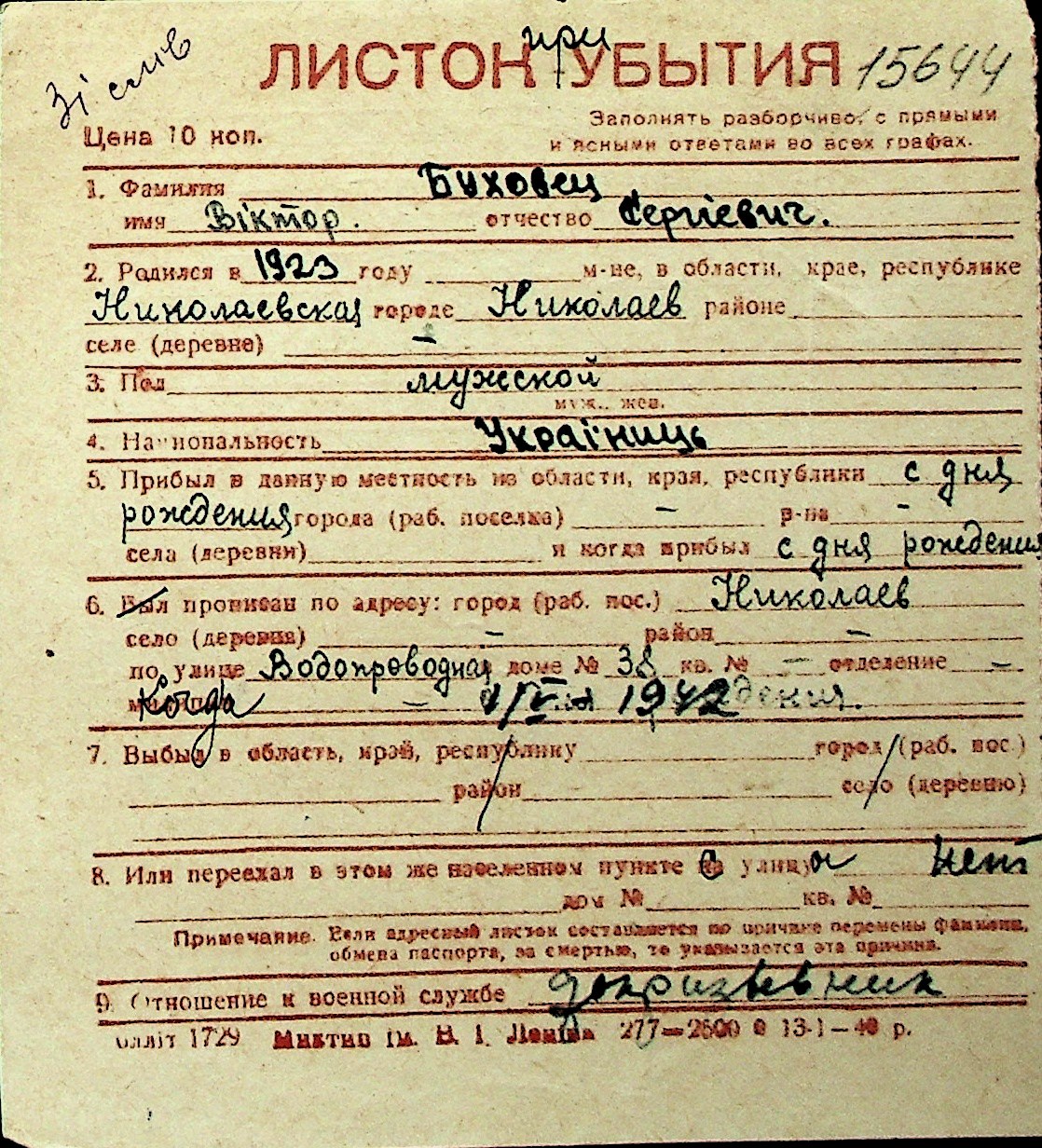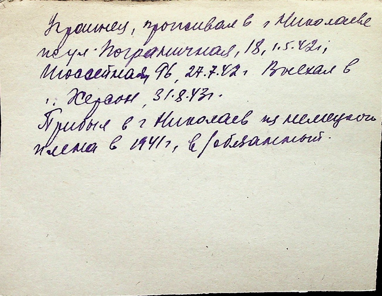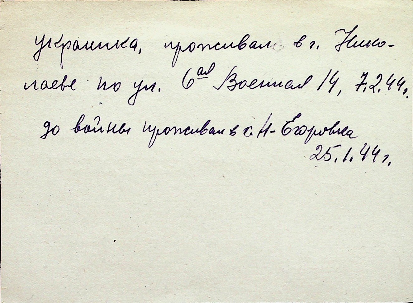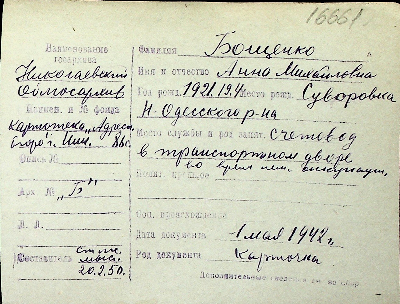 ◦ ◦ Перелік карток на осіб, які мешкали у м. Миколаїв у період окупації 1941–1944 років