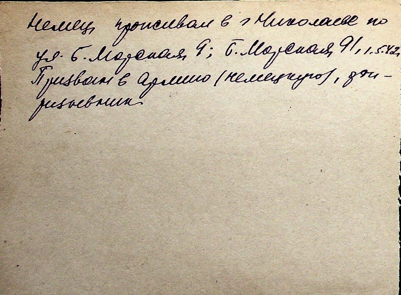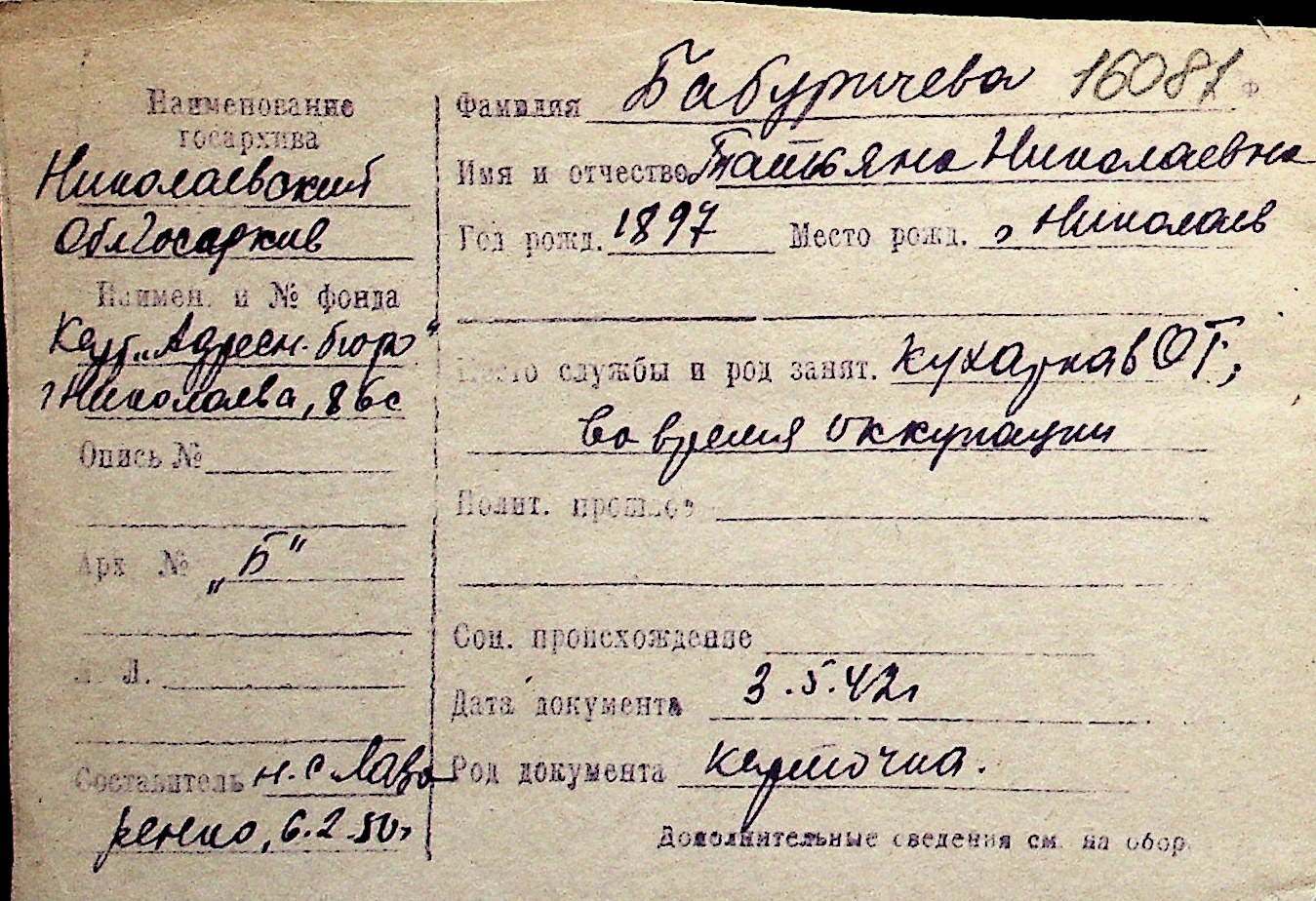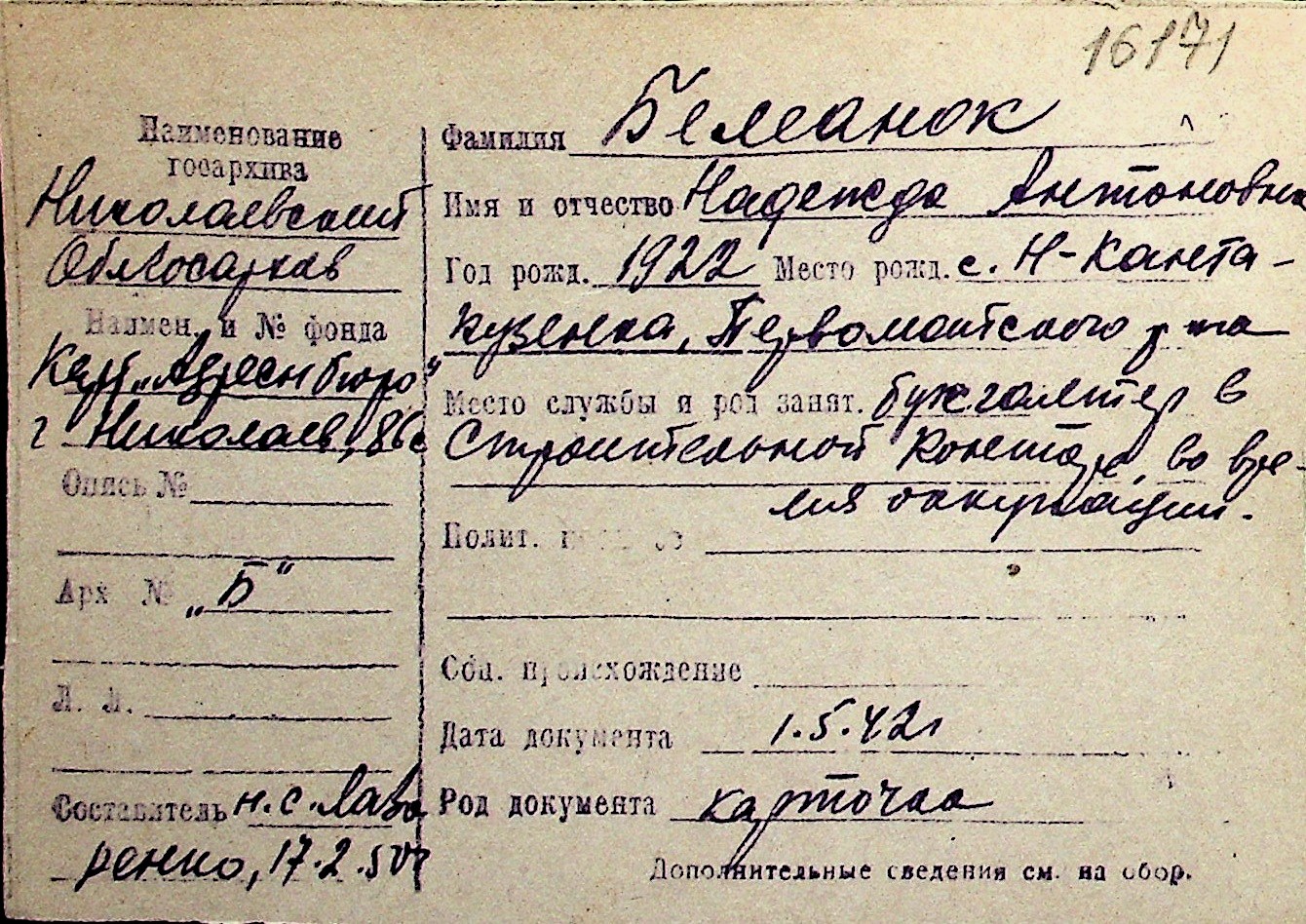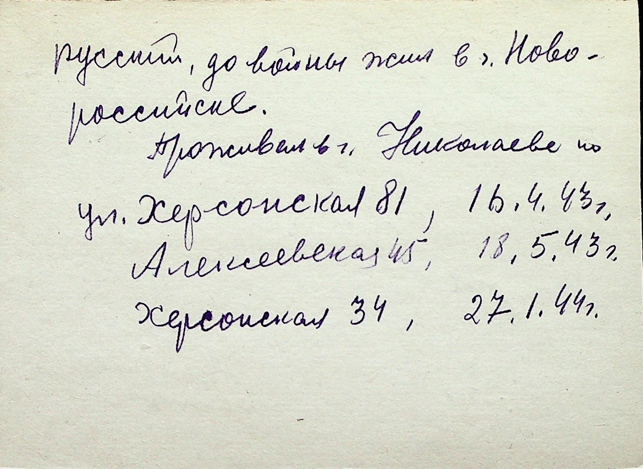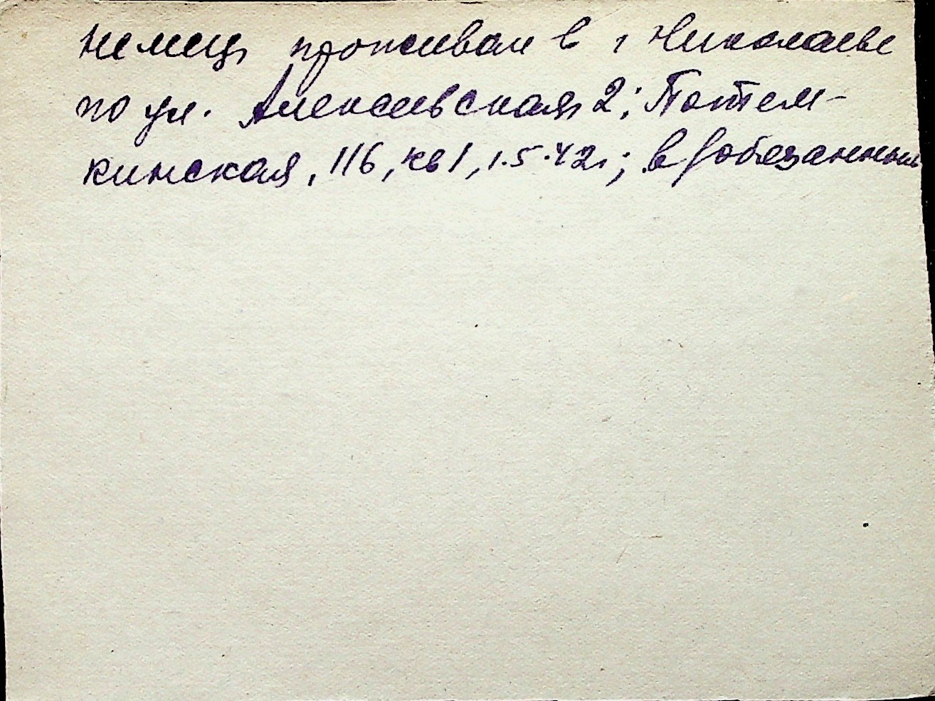 ◦ ◦ Перелік карток на осіб, які мешкали у м. Миколаїв у період окупації 1941–1944 років