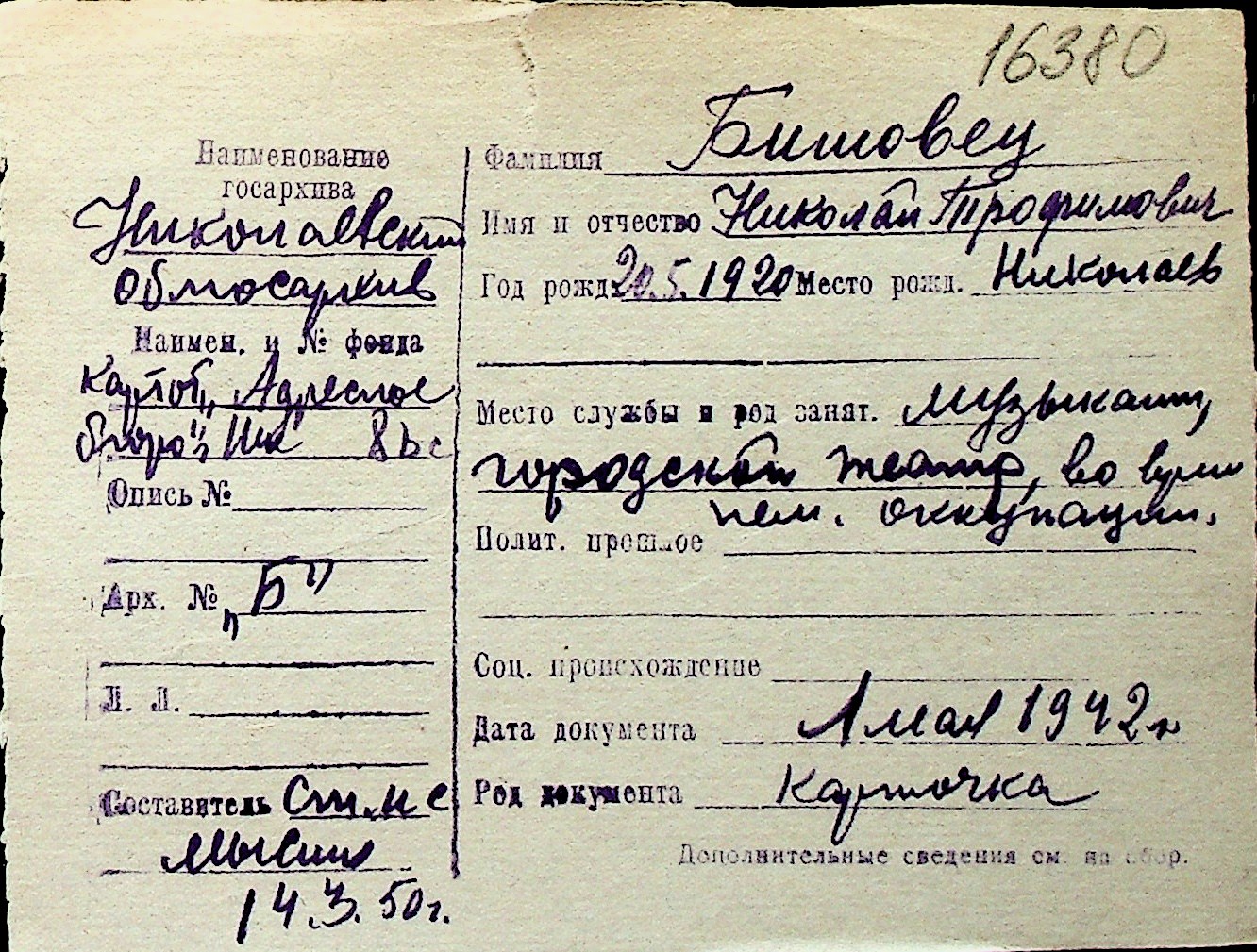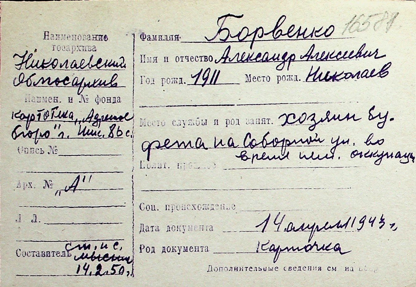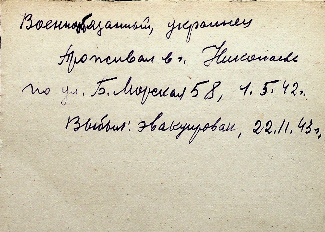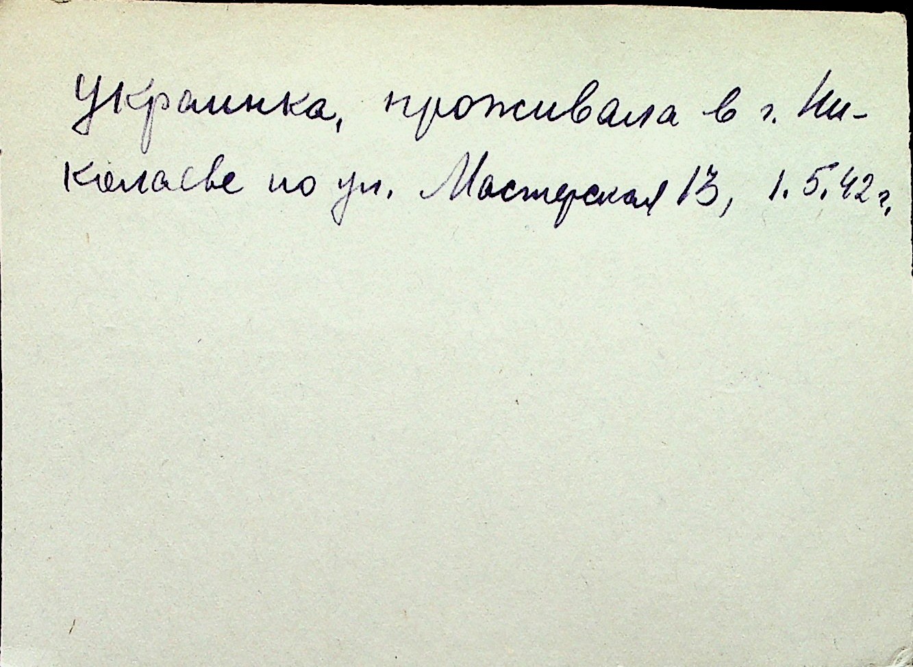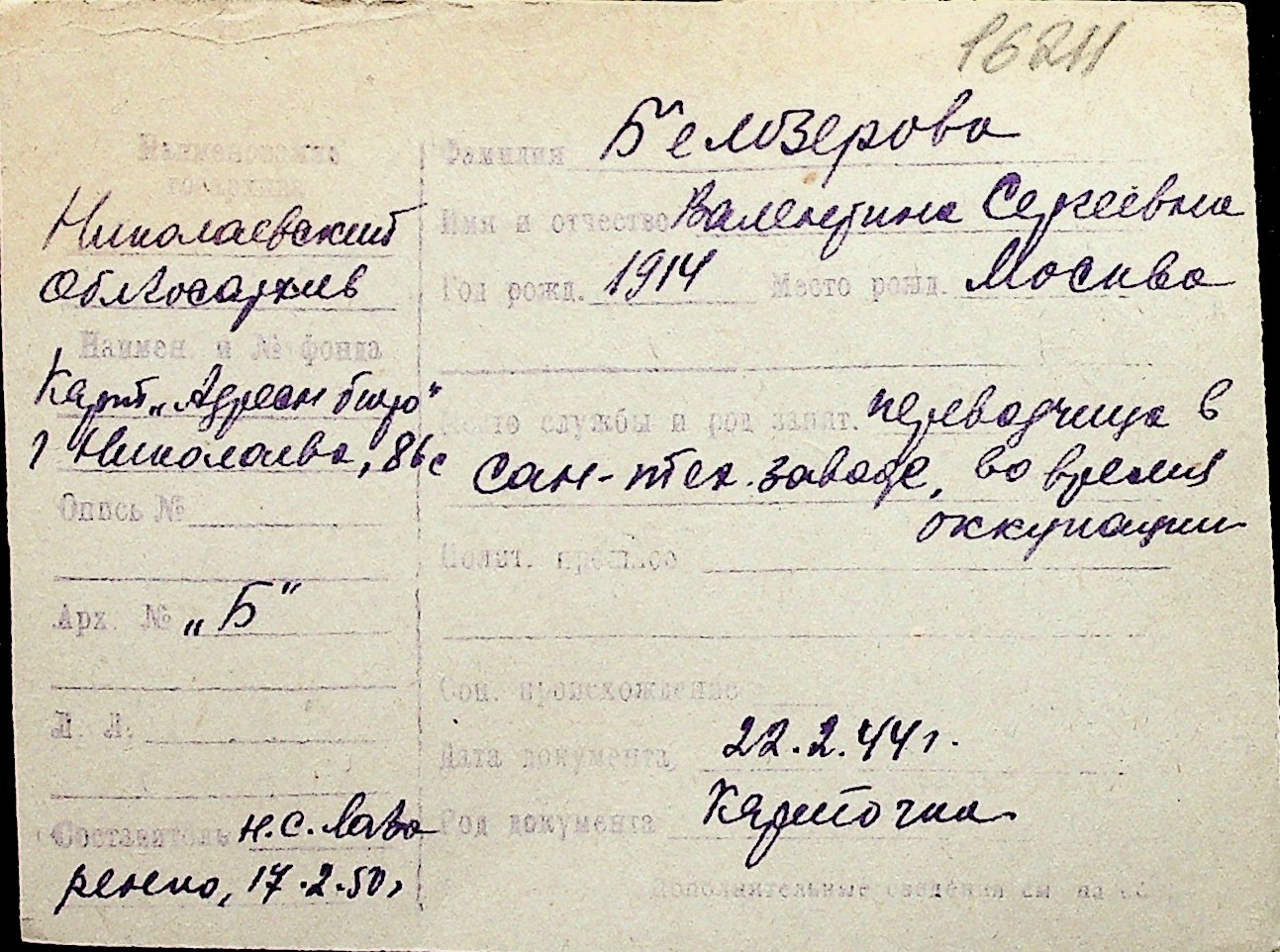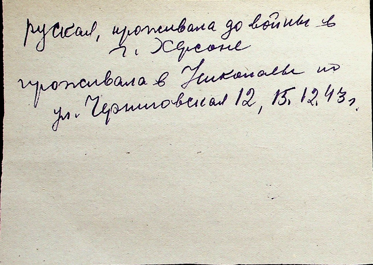 ◦ ◦ Перелік карток на осіб, які мешкали у м. Миколаїв у період окупації 1941–1944 років