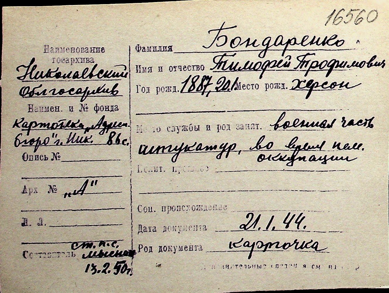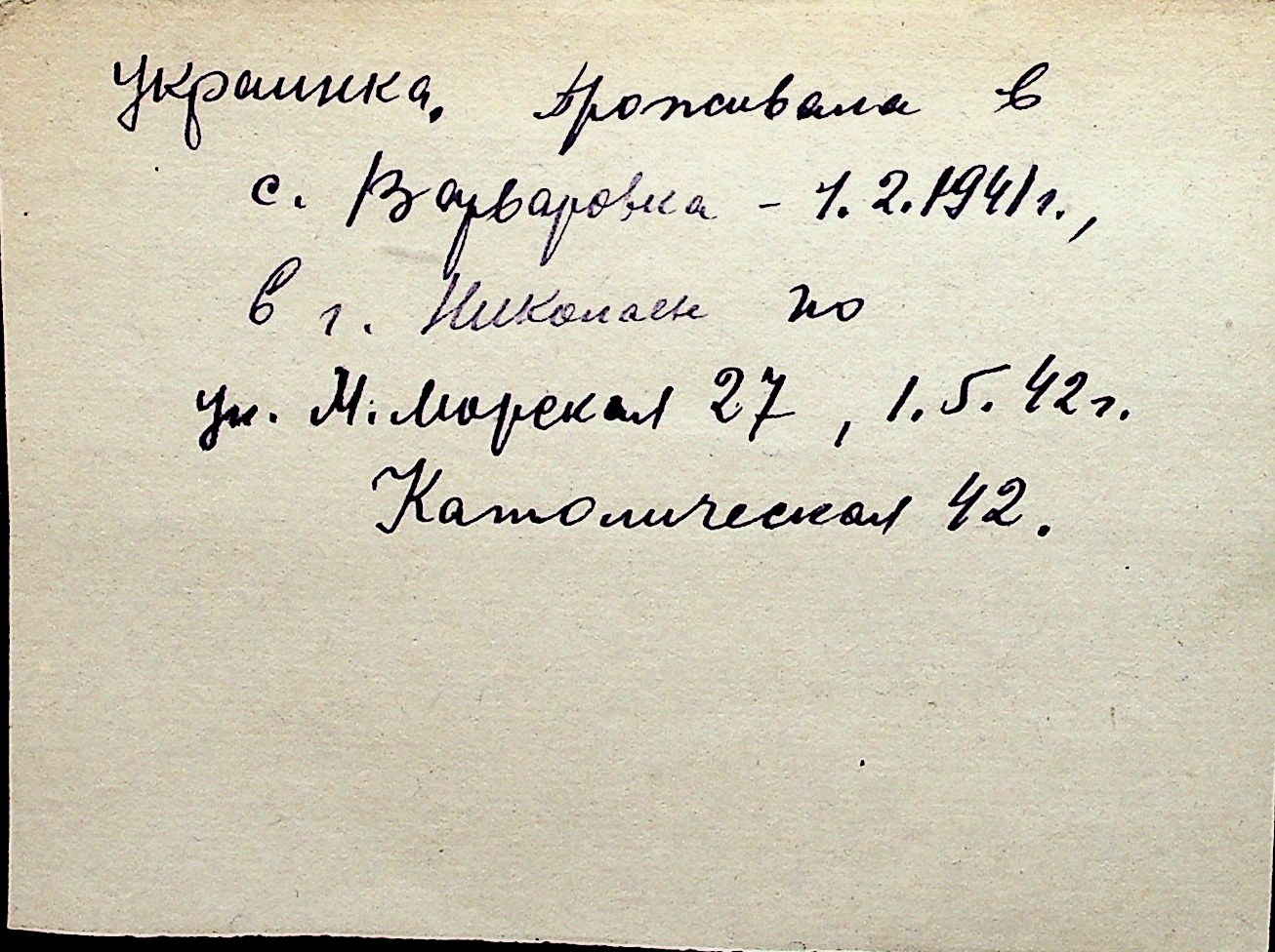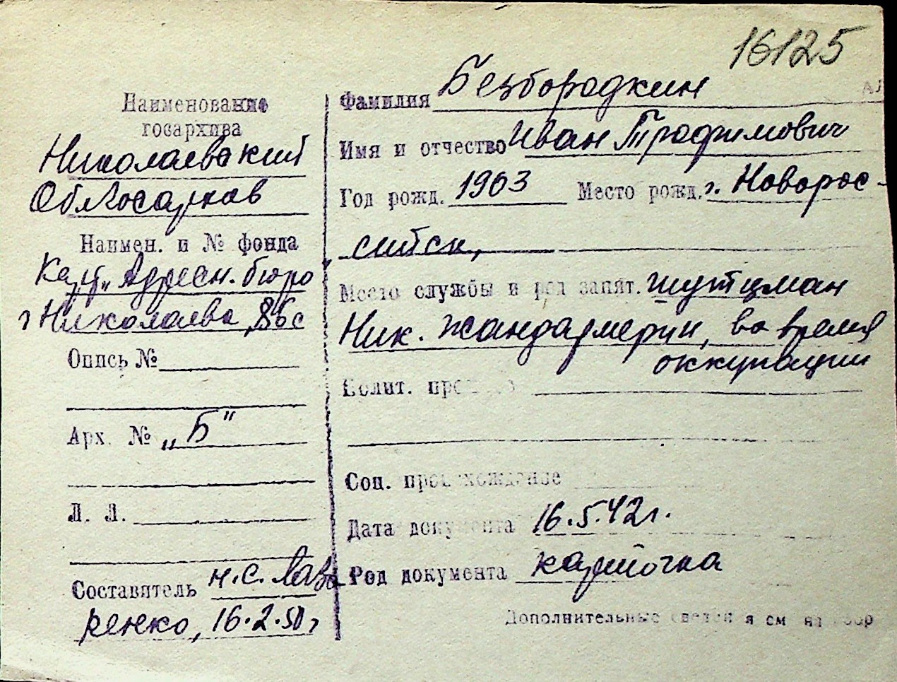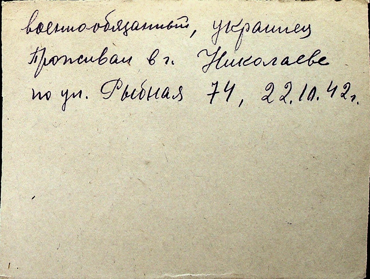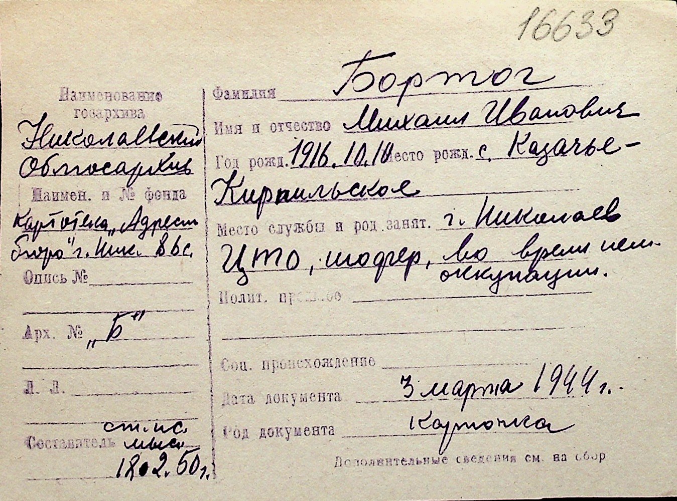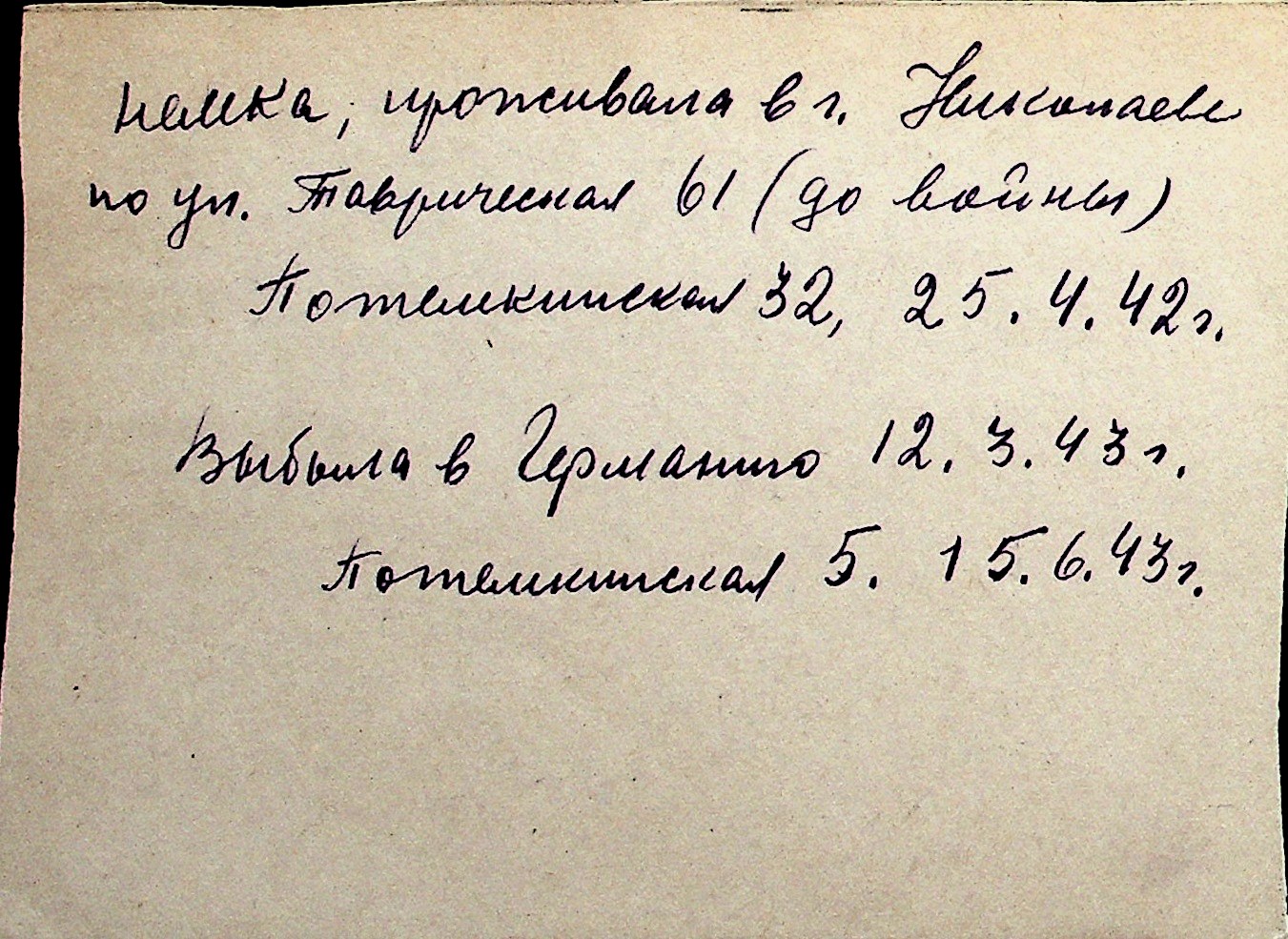 ◦ ◦ Перелік карток на осіб, які мешкали у м. Миколаїв у період окупації 1941–1944 років