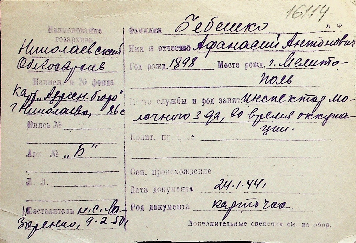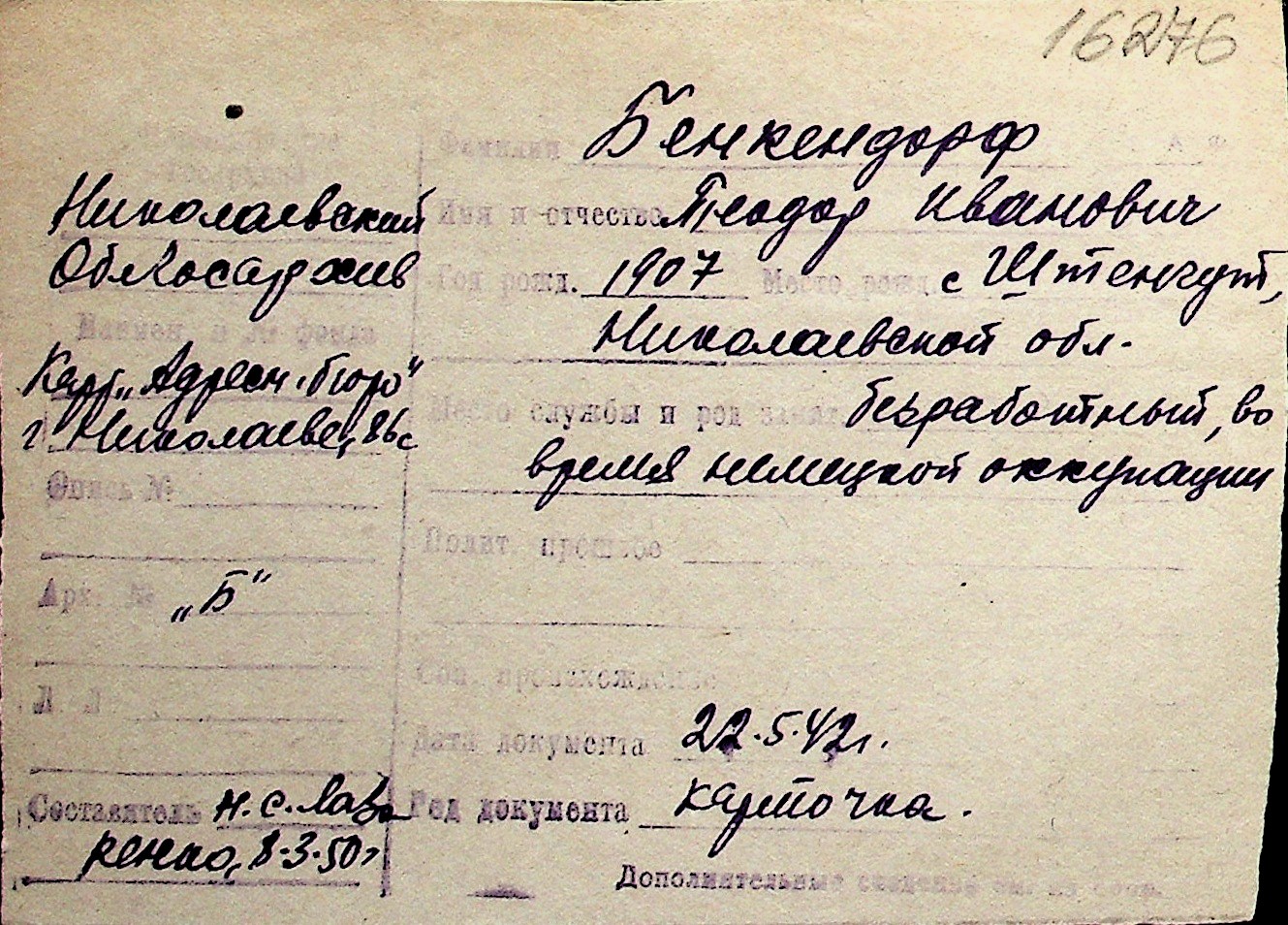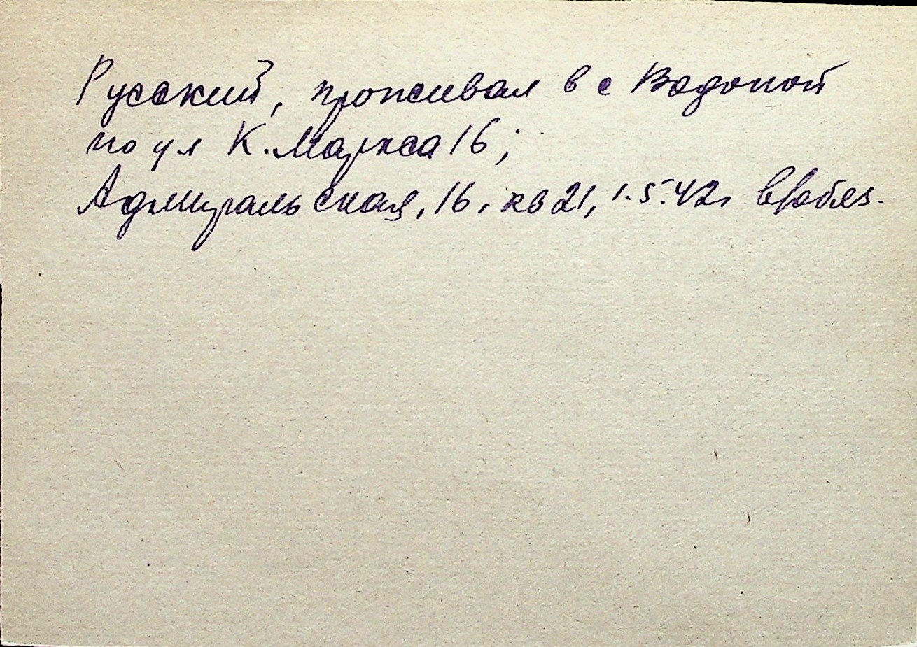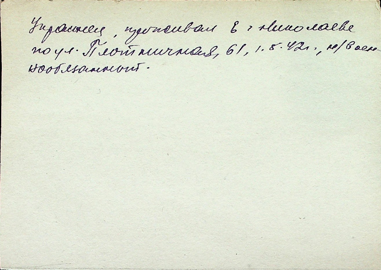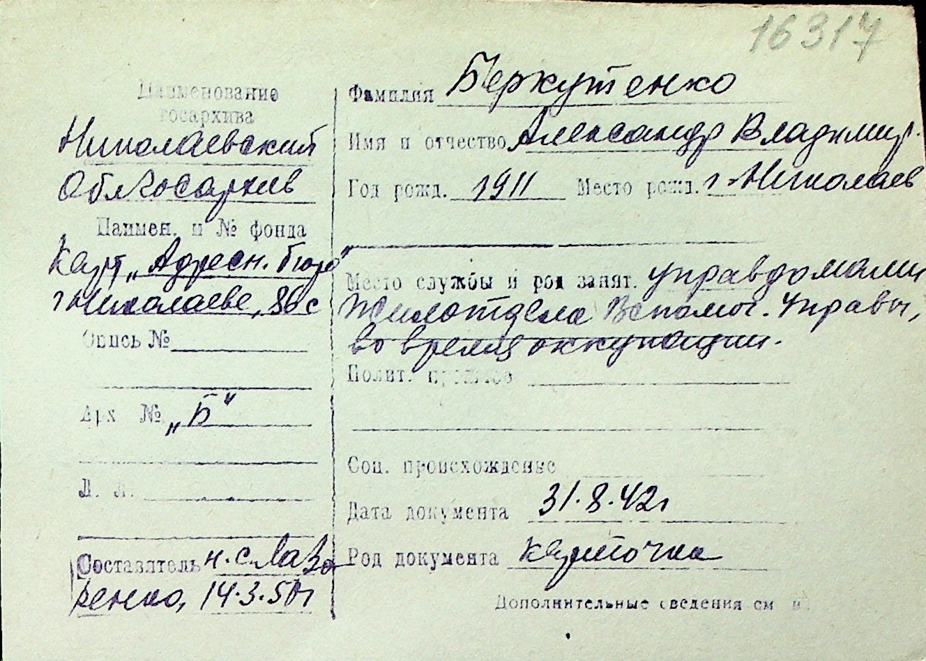 ◦ ◦ Перелік карток на осіб, які мешкали у м. Миколаїв у період окупації 1941–1944 років